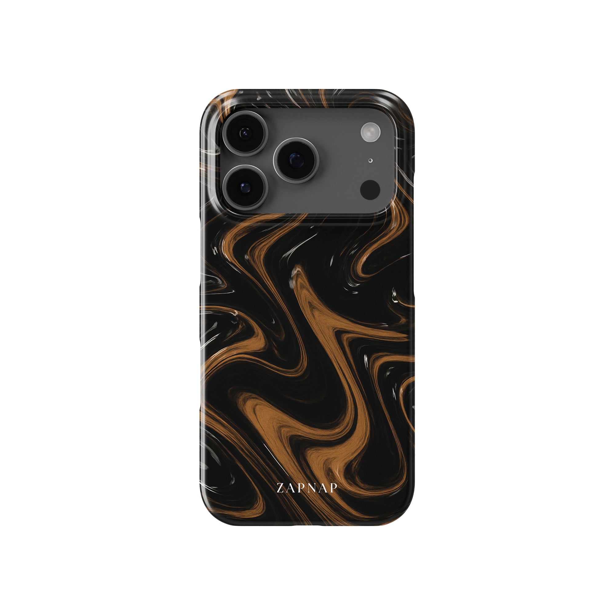 Dark bold and smooth. Expresso swirls rich espresso tones through inky black with a glossy finish. Like your favorite brew it’s intense addictive and made to stir attention.