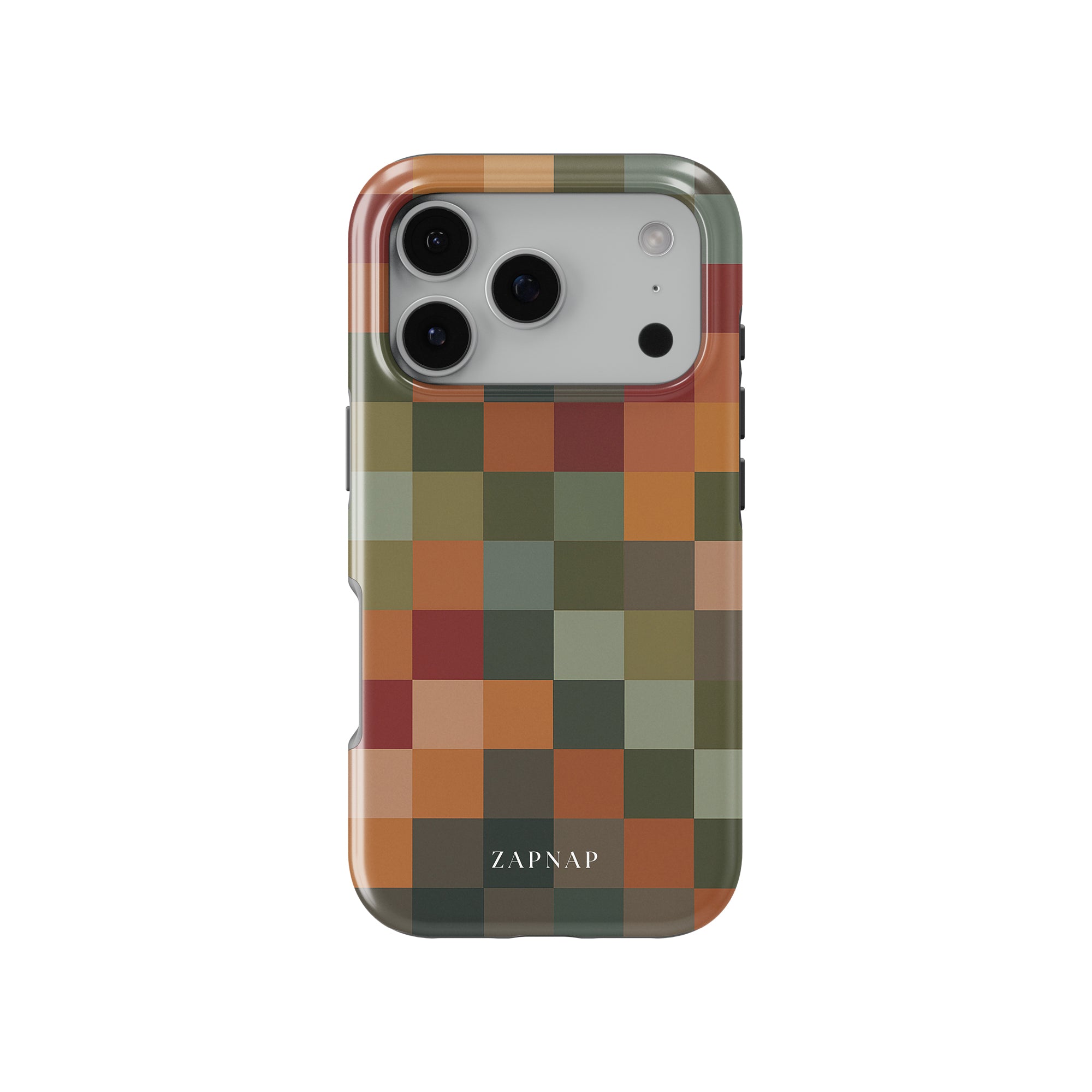 Terrana blends earthy calm with timeless style, pairing sunbaked reds, olive greens, and dusty golds in a warm grid. Each block feels grounded and soulful, like nature wrapped in quiet elegance.