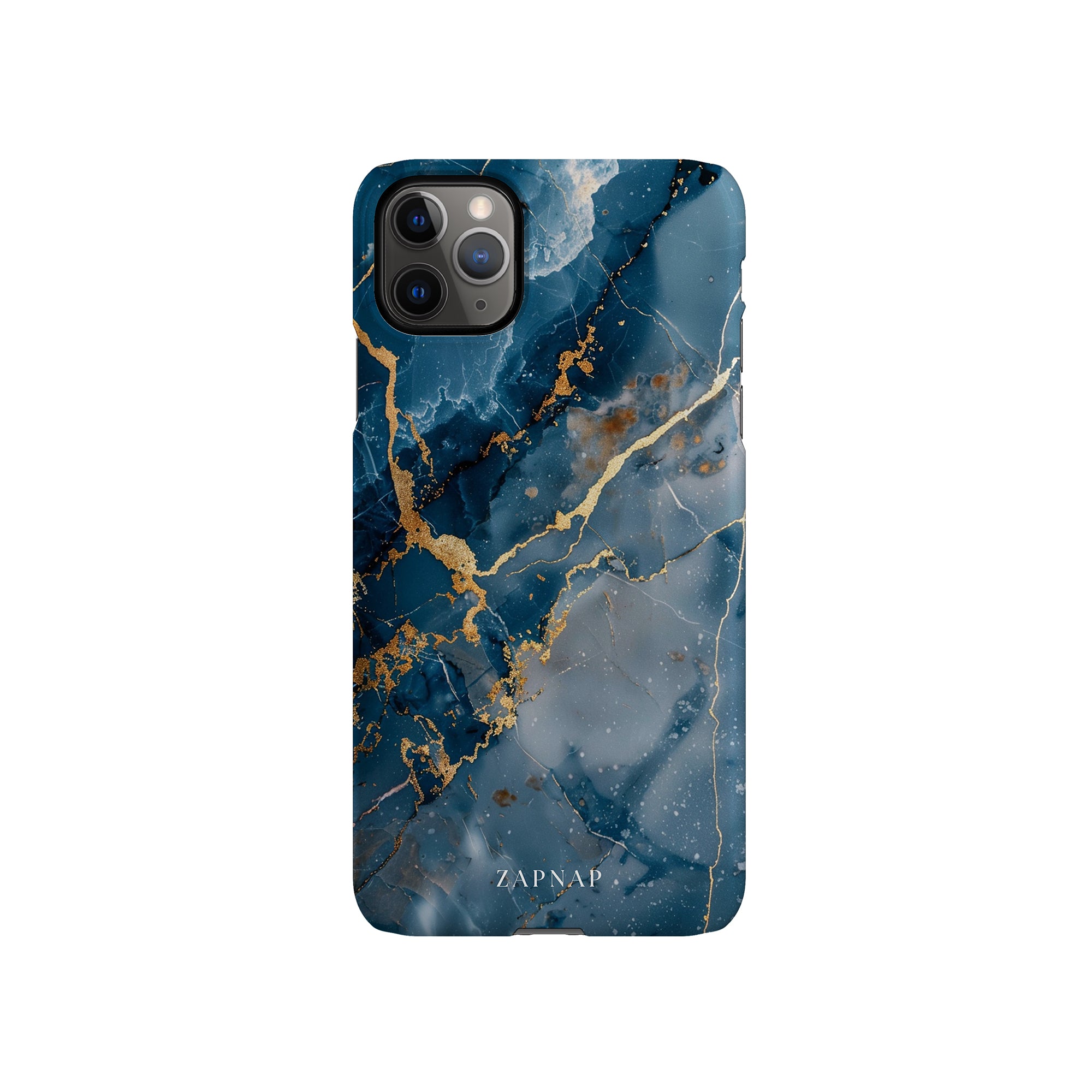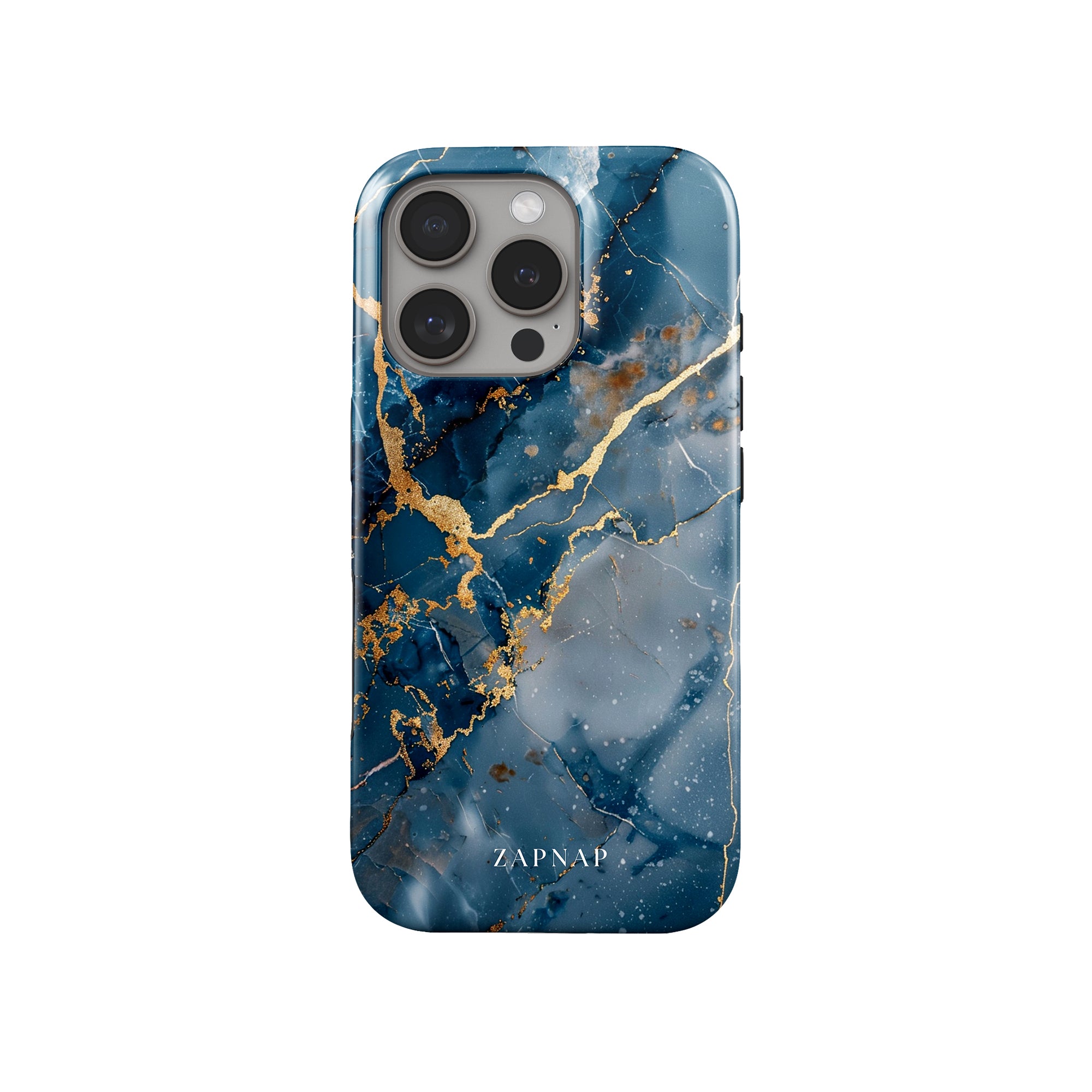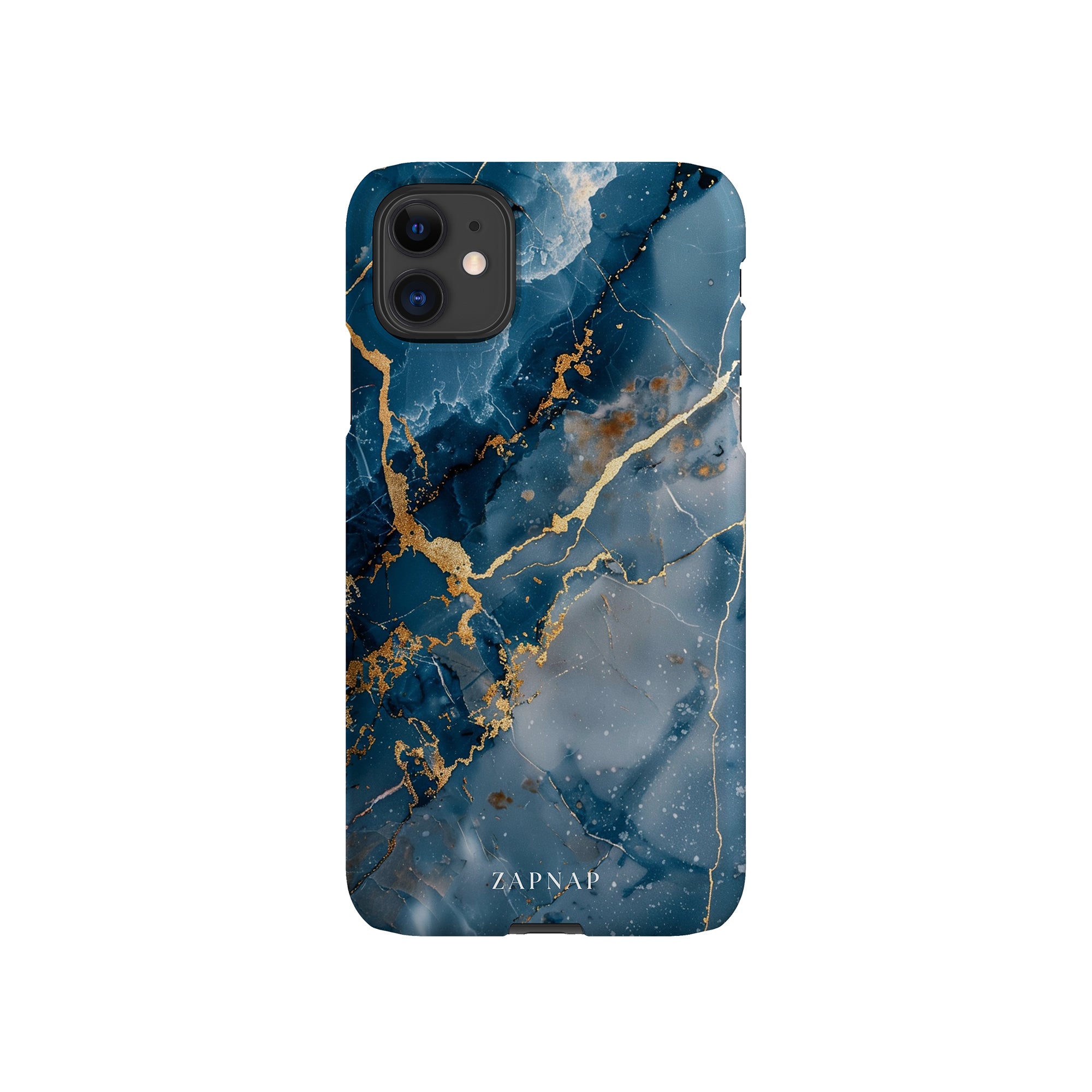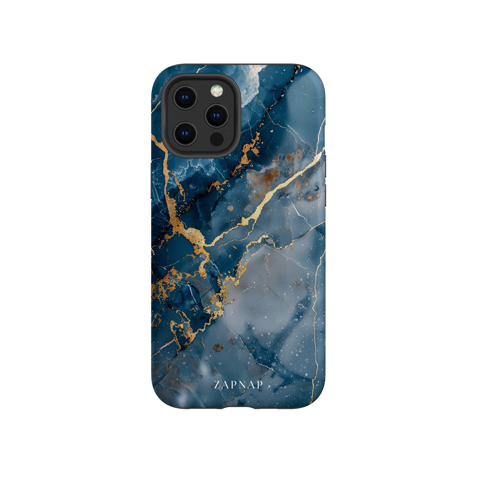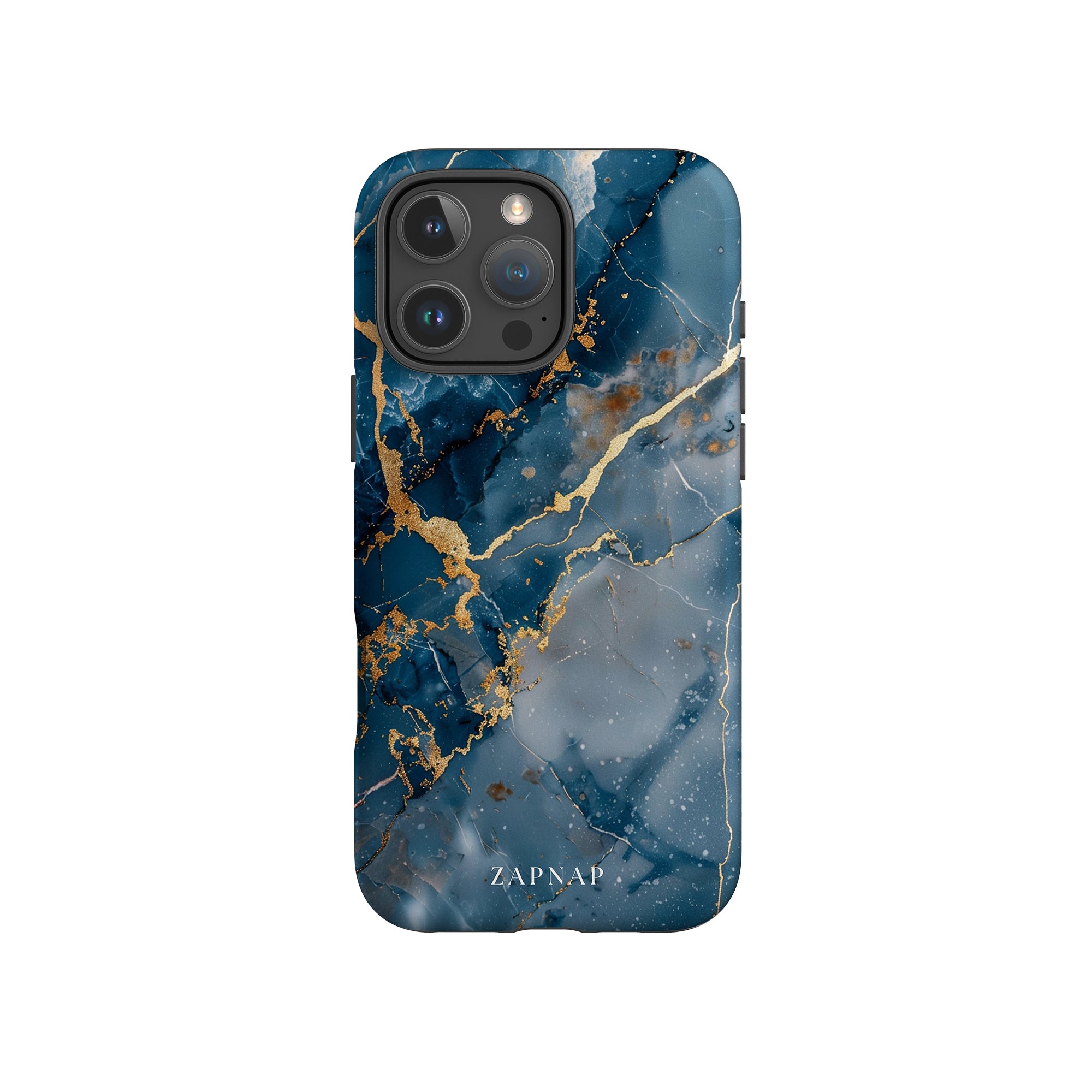 This phone case features a captivating display of deep blue marbling with stunning gold veining. The rich azure hues and luxurious gold accents create a sophisticated and elegant aesthetic. A great name for this design could be 'Azure Luxe.' This name captures the gemstone-like color scheme and the intricate, vein-like patterns, making it a perfect choice for anyone looking to add a touch of opulence and style to their device. Ideal for those who appreciate refined and unique designs, 'Azure Luxe' is sure to make a striking statement.