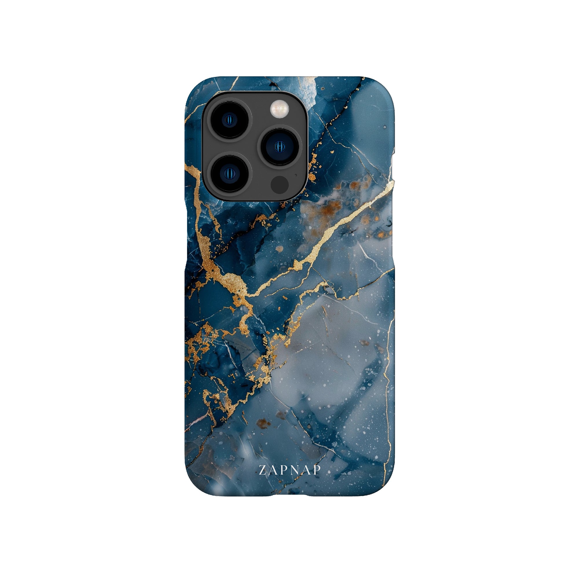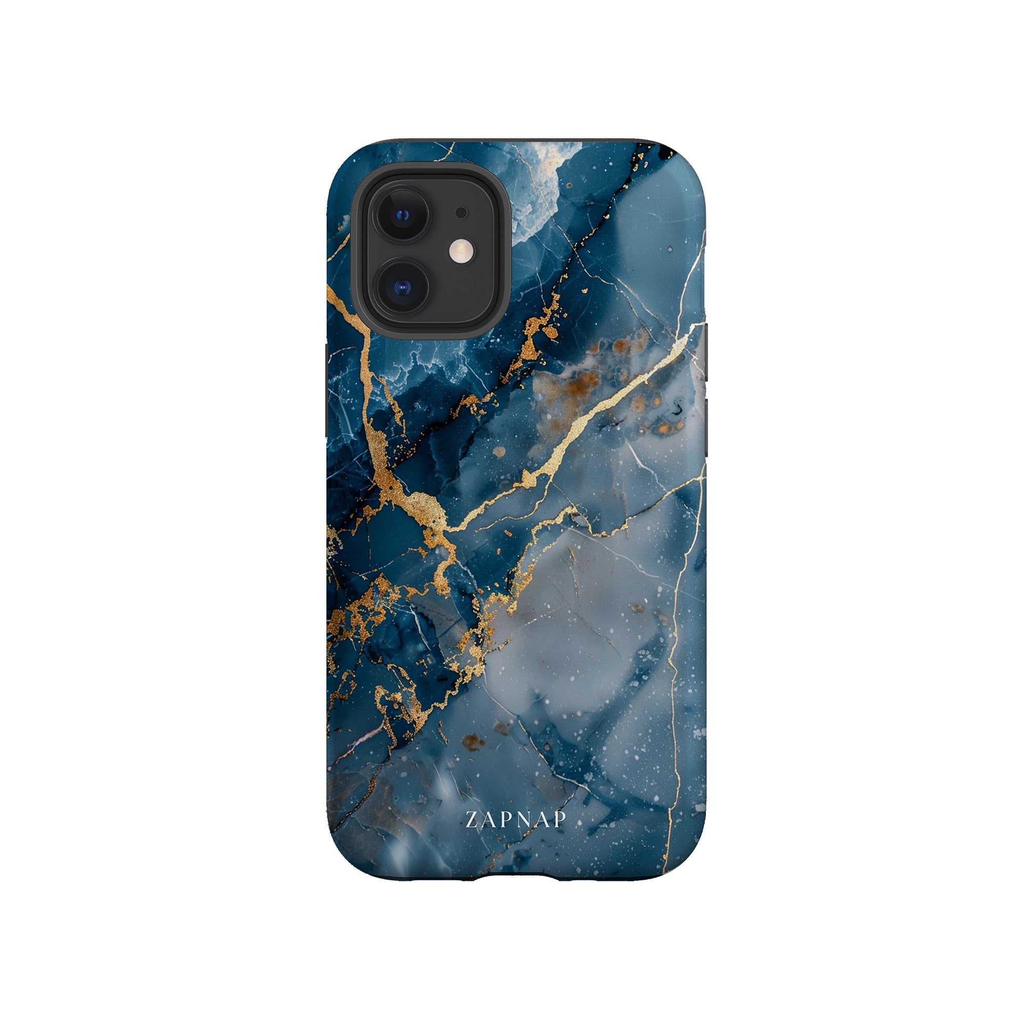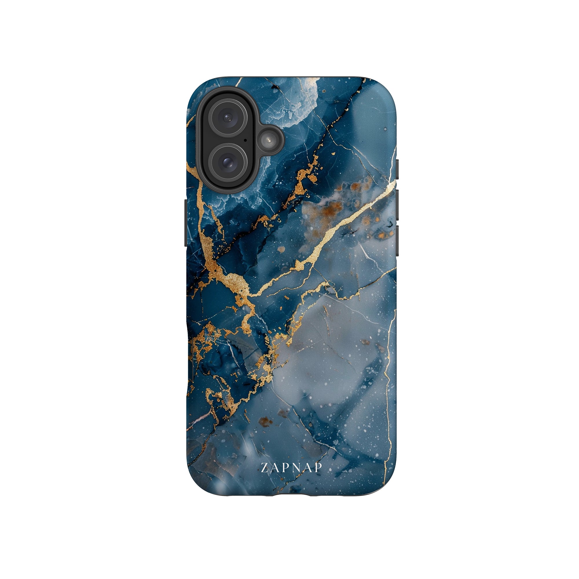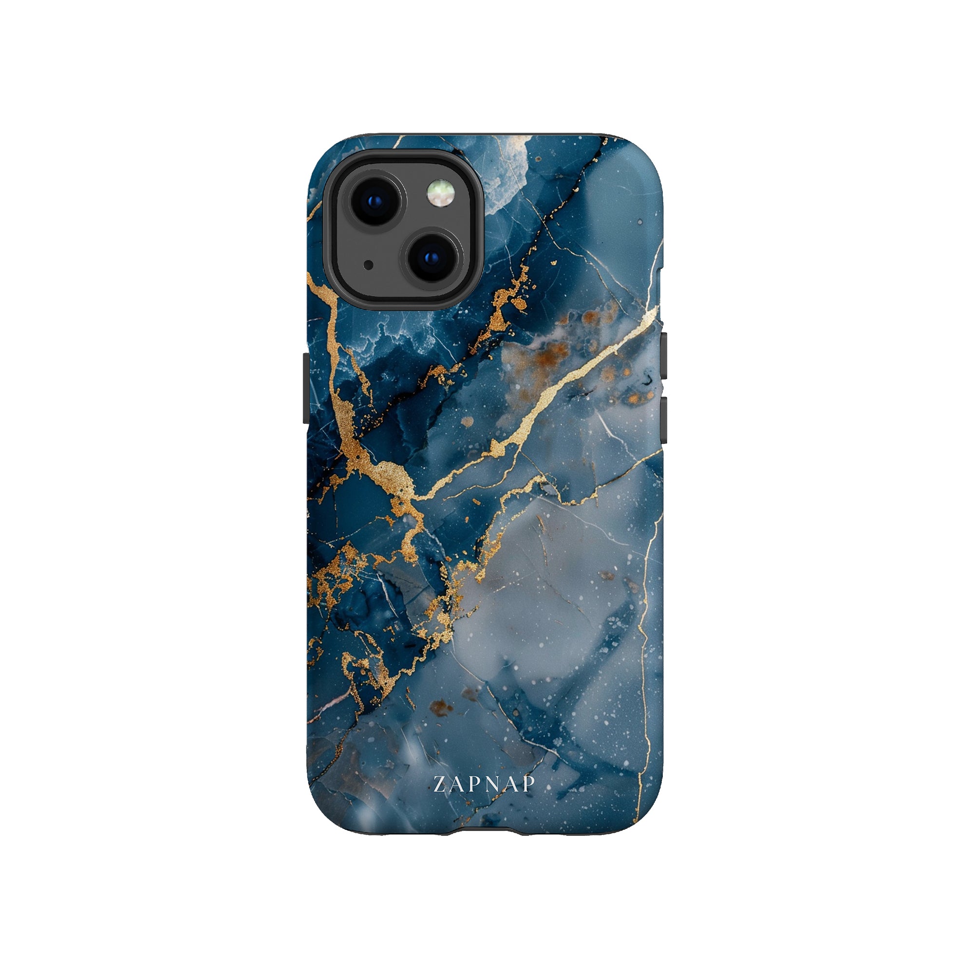 This phone case features a captivating display of deep blue marbling with stunning gold veining. The rich azure hues and luxurious gold accents create a sophisticated and elegant aesthetic. A great name for this design could be 'Azure Luxe.' This name captures the gemstone-like color scheme and the intricate, vein-like patterns, making it a perfect choice for anyone looking to add a touch of opulence and style to their device. Ideal for those who appreciate refined and unique designs, 'Azure Luxe' is sure to make a striking statement.