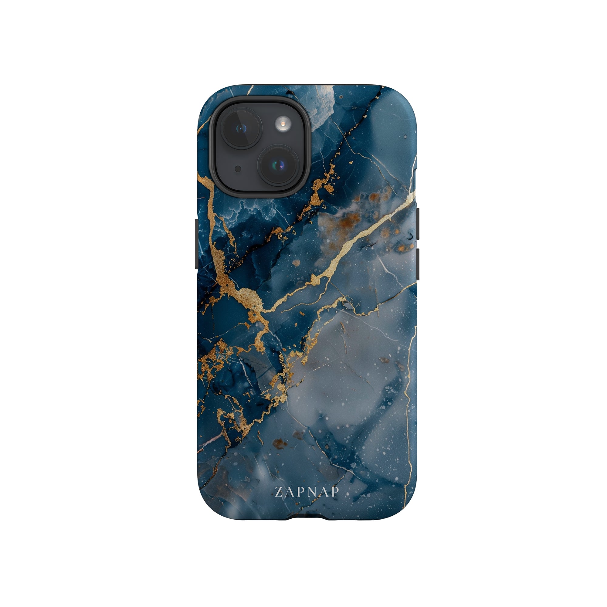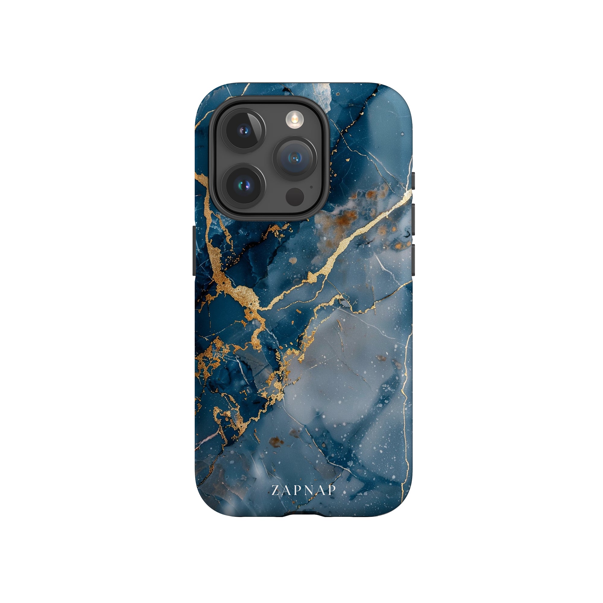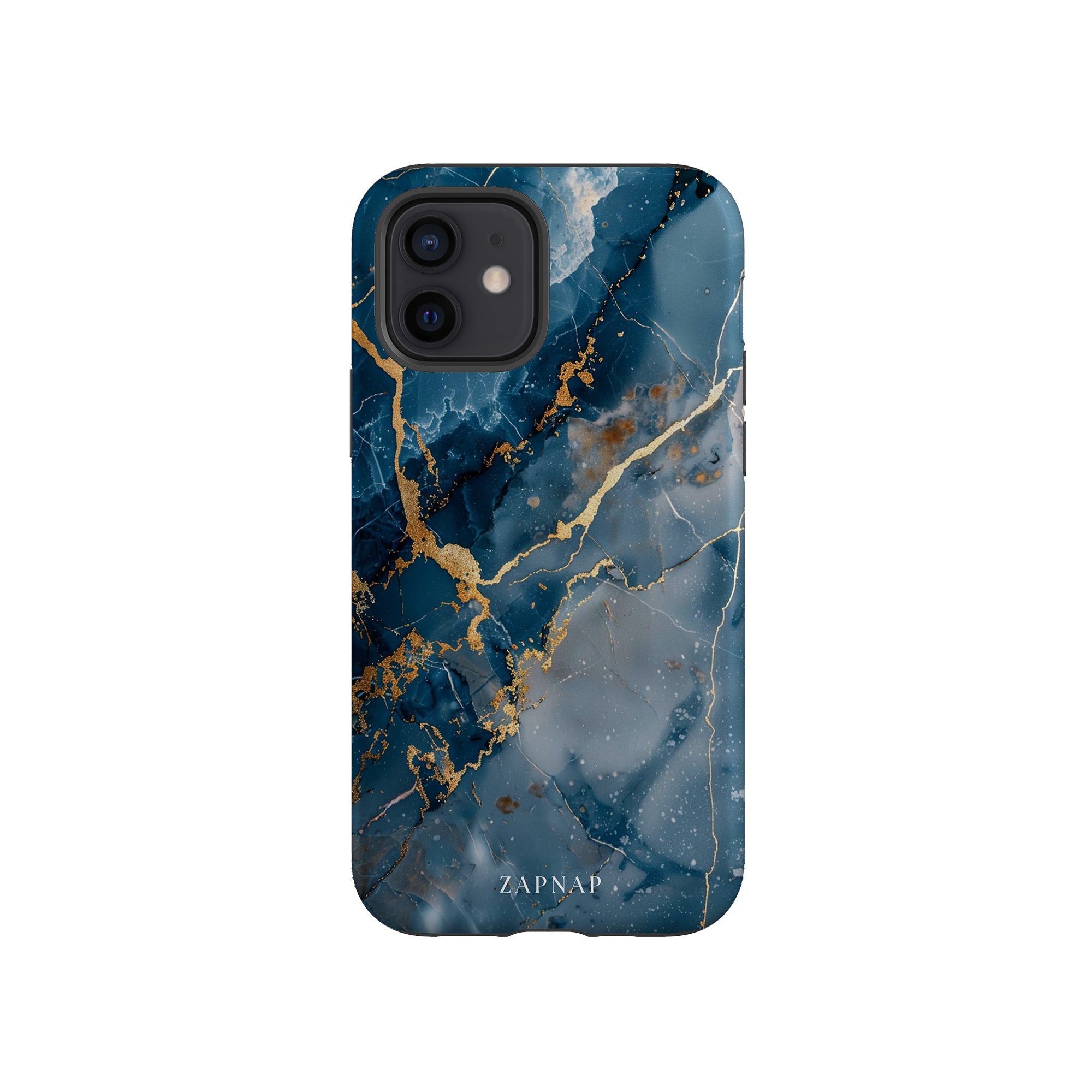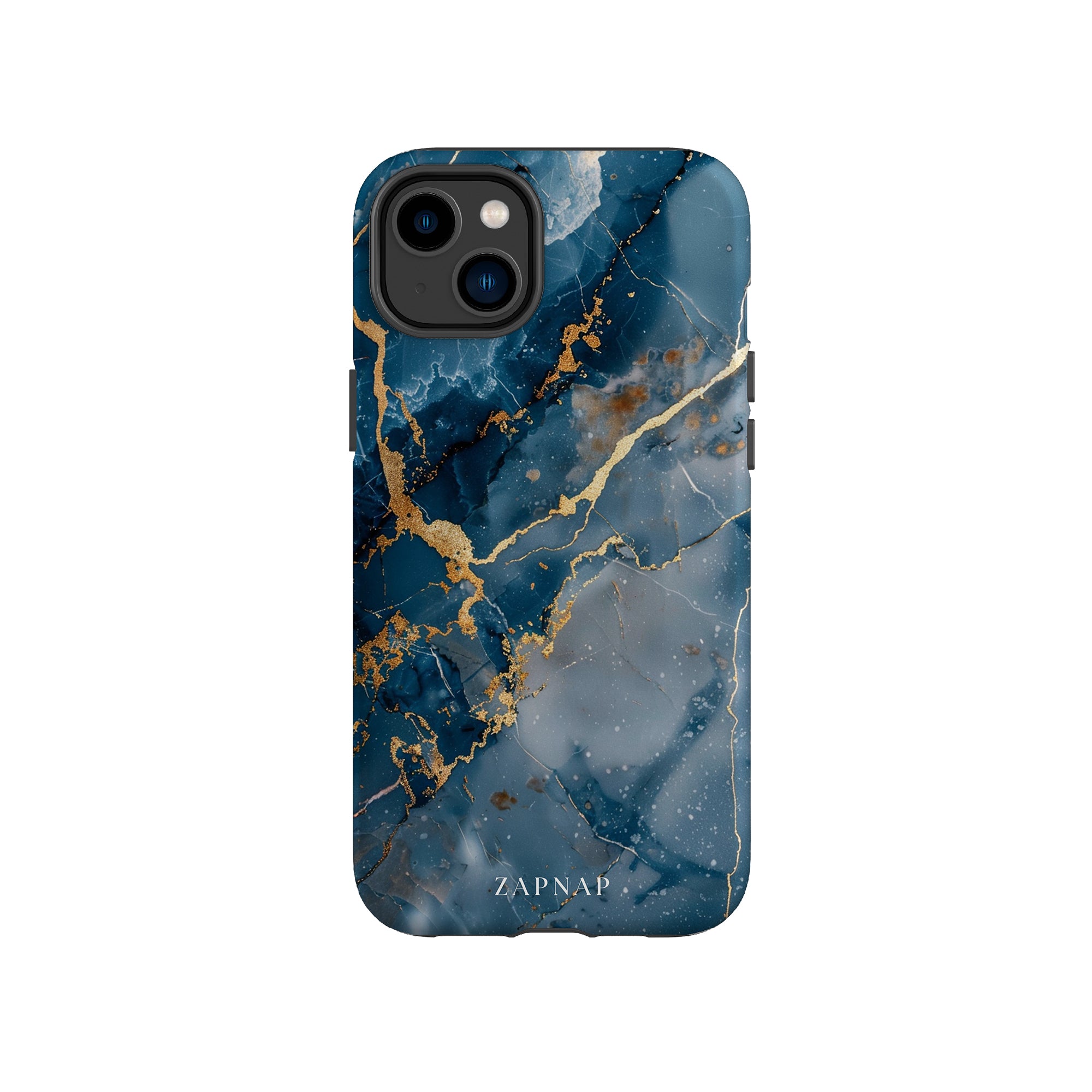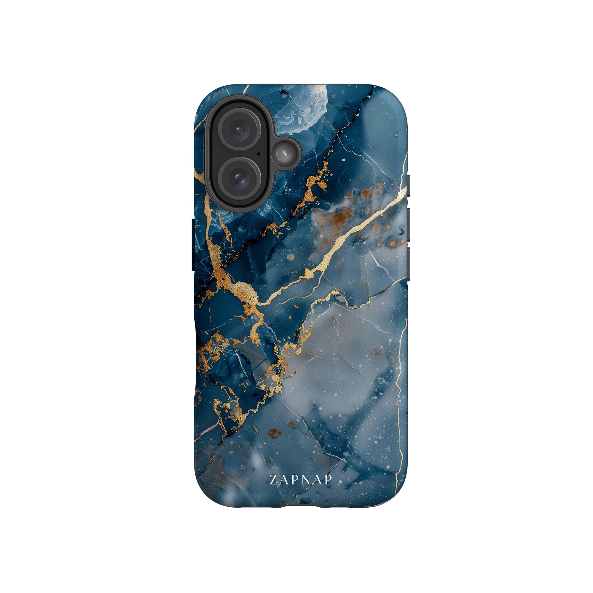 This phone case features a captivating display of deep blue marbling with stunning gold veining. The rich azure hues and luxurious gold accents create a sophisticated and elegant aesthetic. A great name for this design could be 'Azure Luxe.' This name captures the gemstone-like color scheme and the intricate, vein-like patterns, making it a perfect choice for anyone looking to add a touch of opulence and style to their device. Ideal for those who appreciate refined and unique designs, 'Azure Luxe' is sure to make a striking statement.