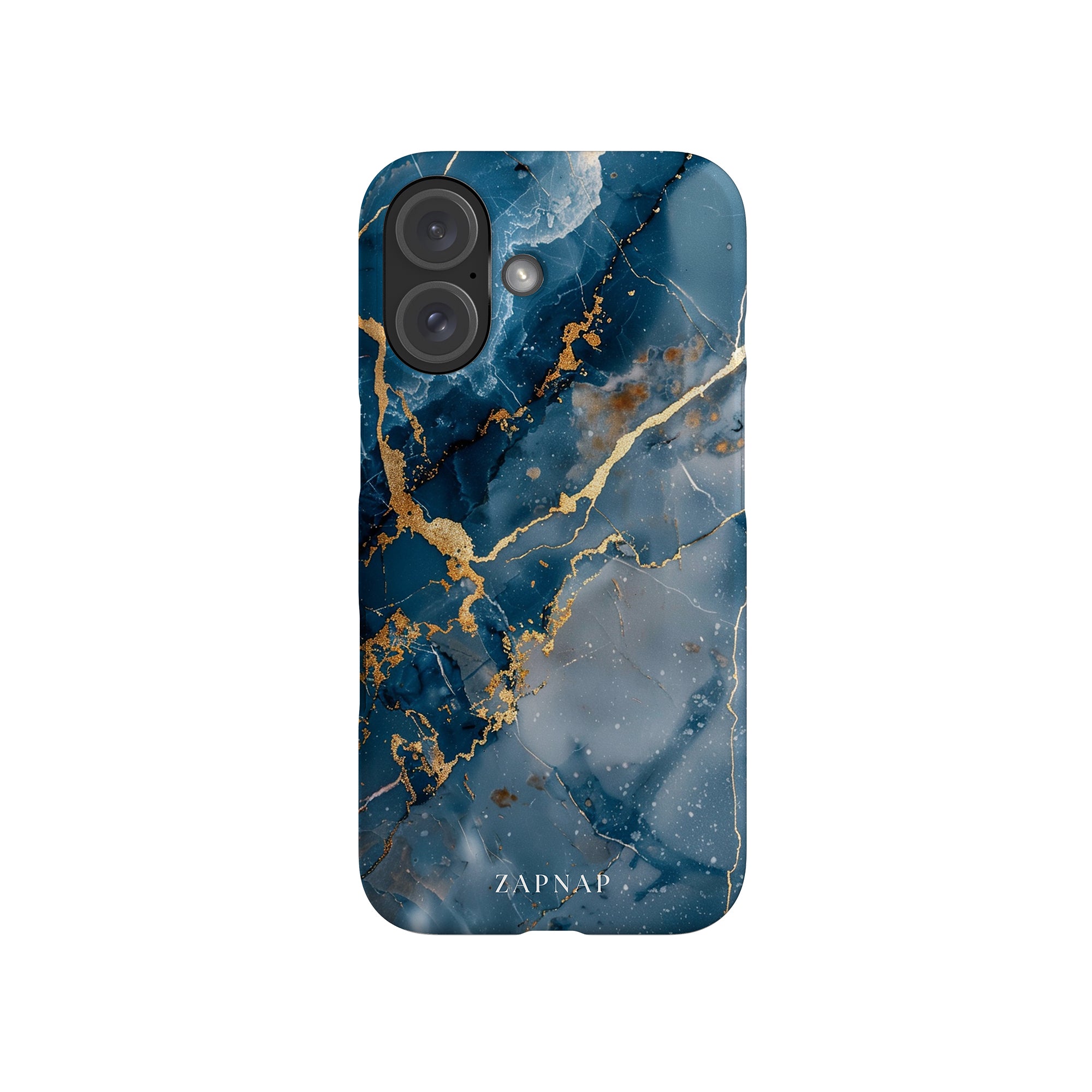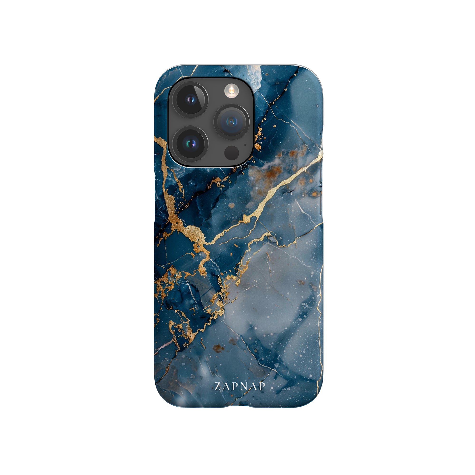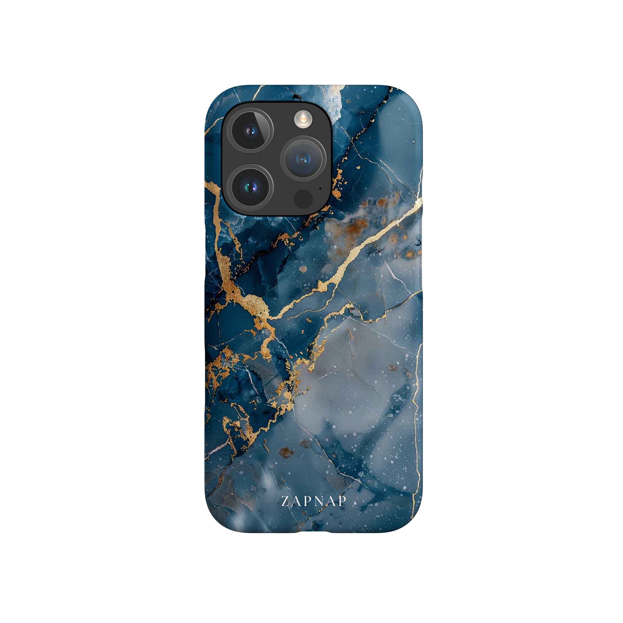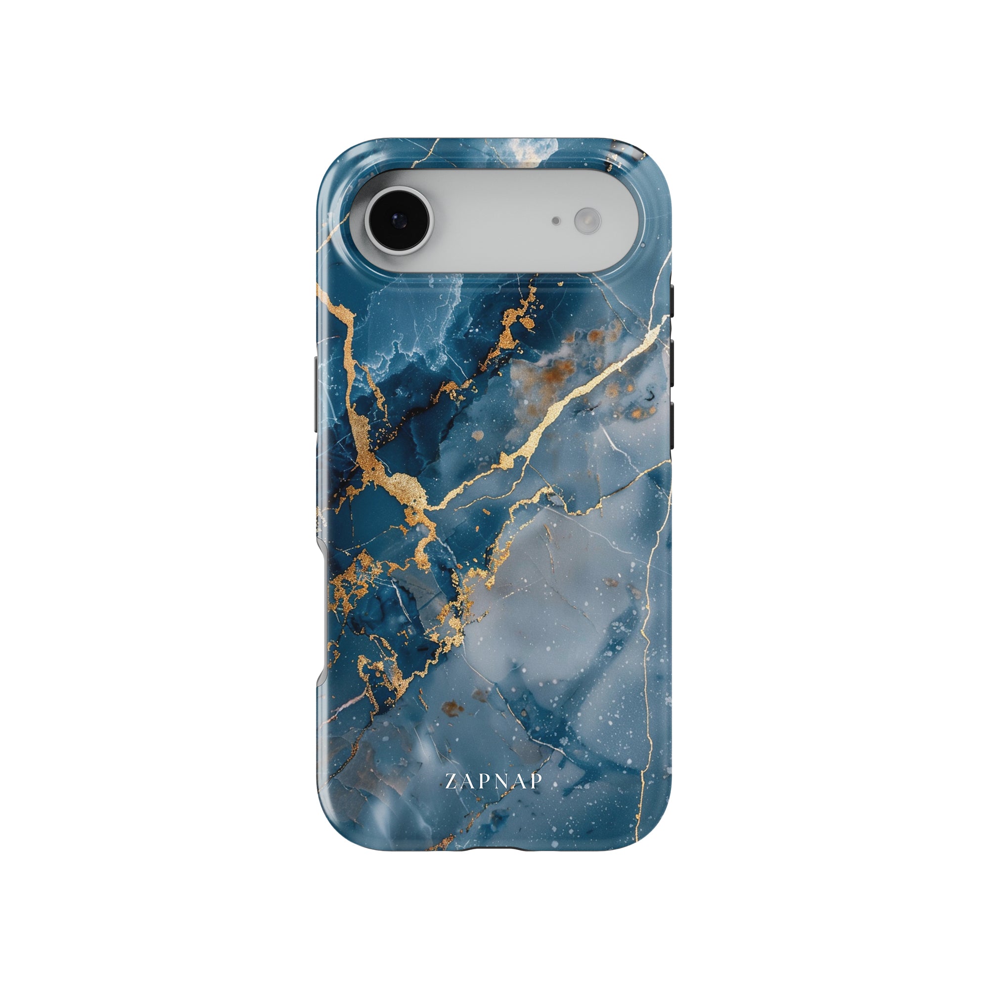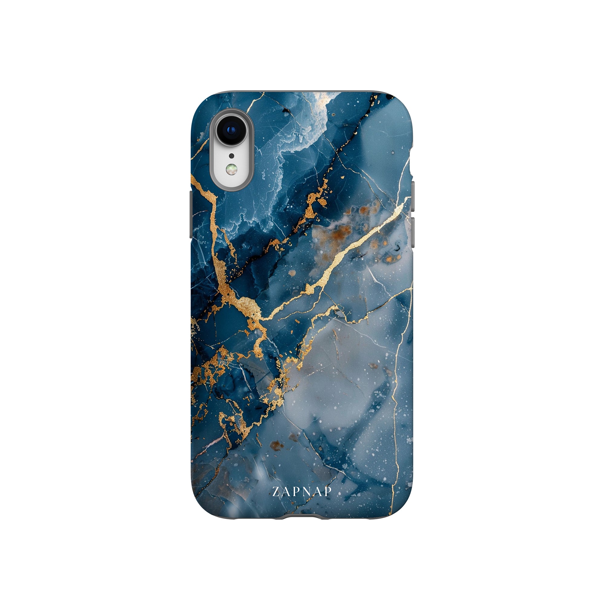 This phone case features a captivating display of deep blue marbling with stunning gold veining. The rich azure hues and luxurious gold accents create a sophisticated and elegant aesthetic. A great name for this design could be 'Azure Luxe.' This name captures the gemstone-like color scheme and the intricate, vein-like patterns, making it a perfect choice for anyone looking to add a touch of opulence and style to their device. Ideal for those who appreciate refined and unique designs, 'Azure Luxe' is sure to make a striking statement.
