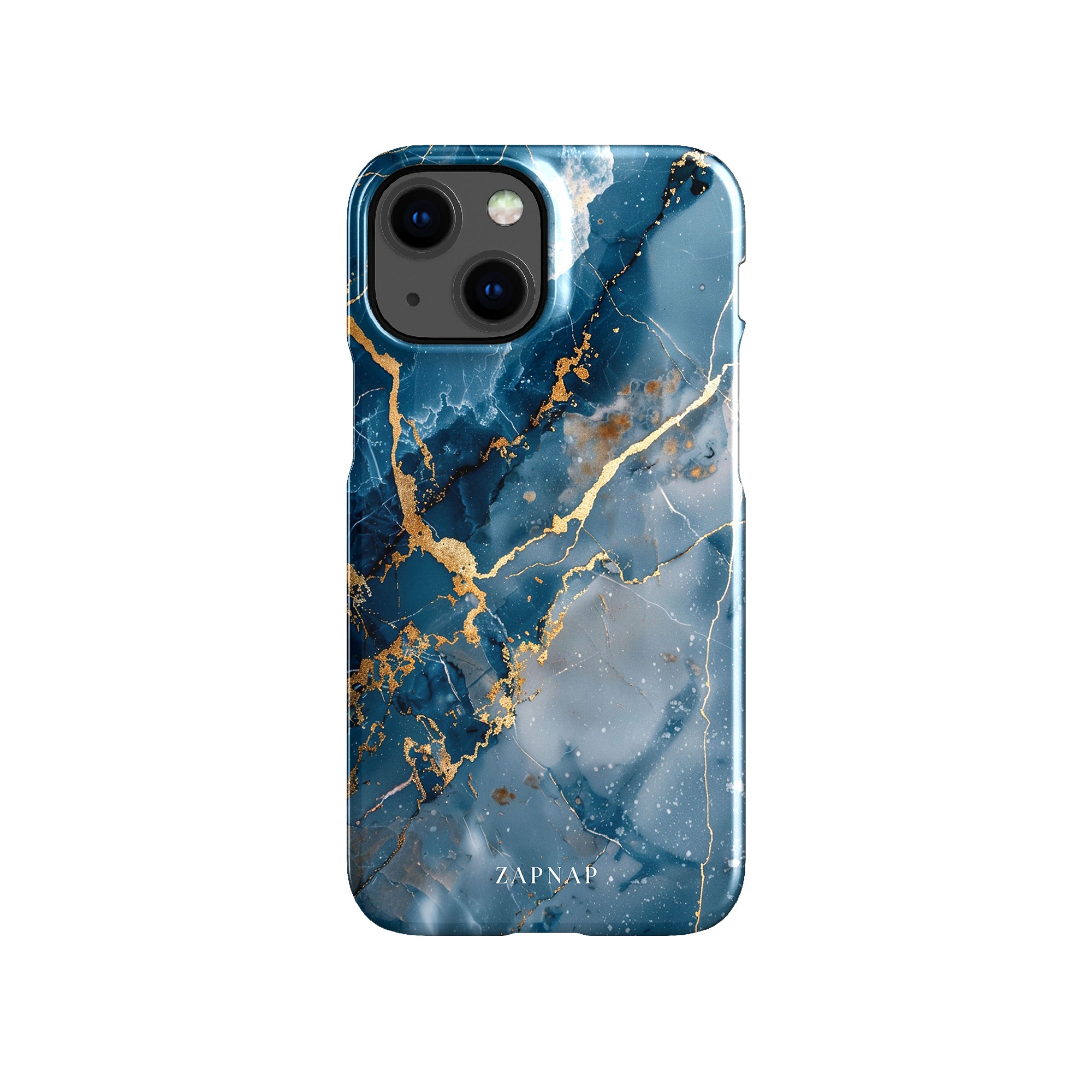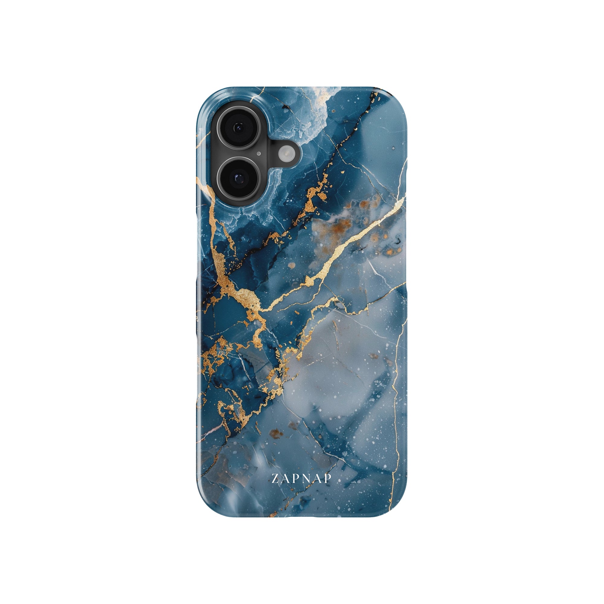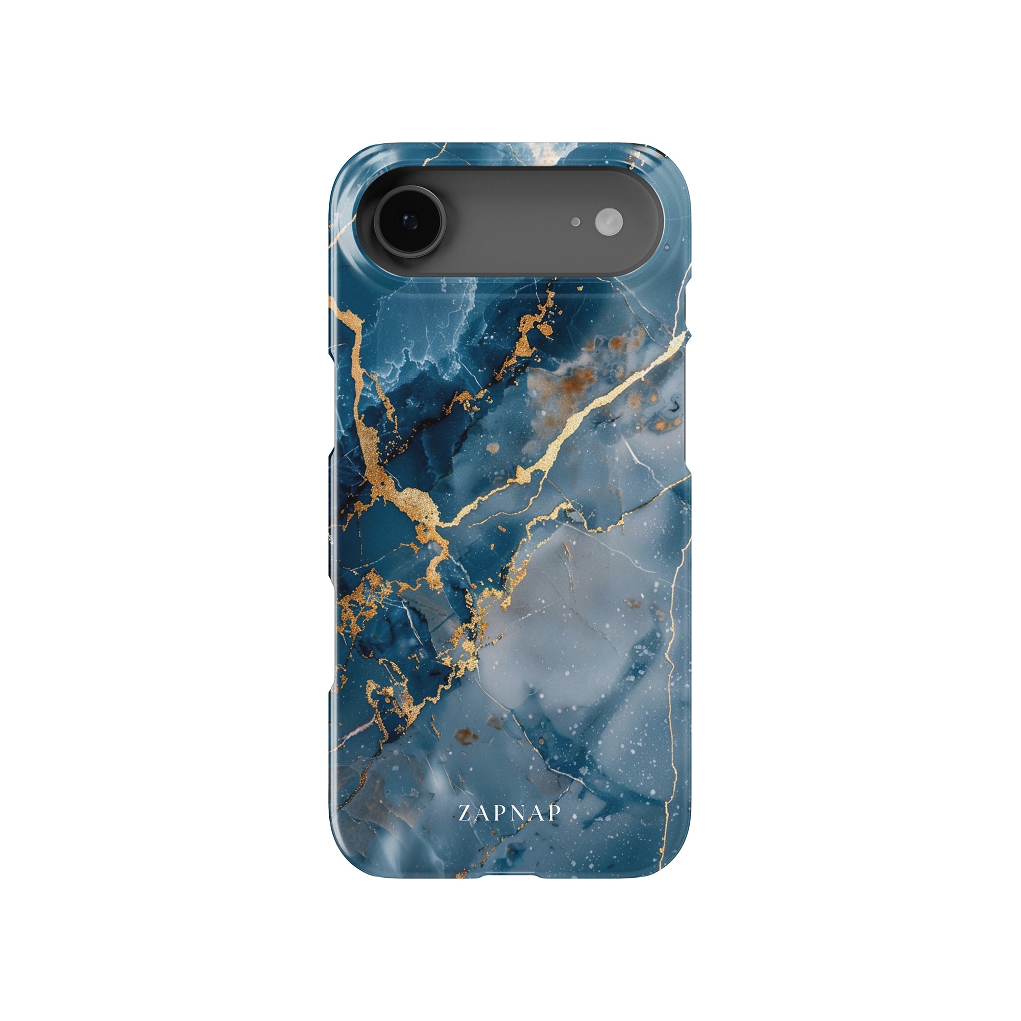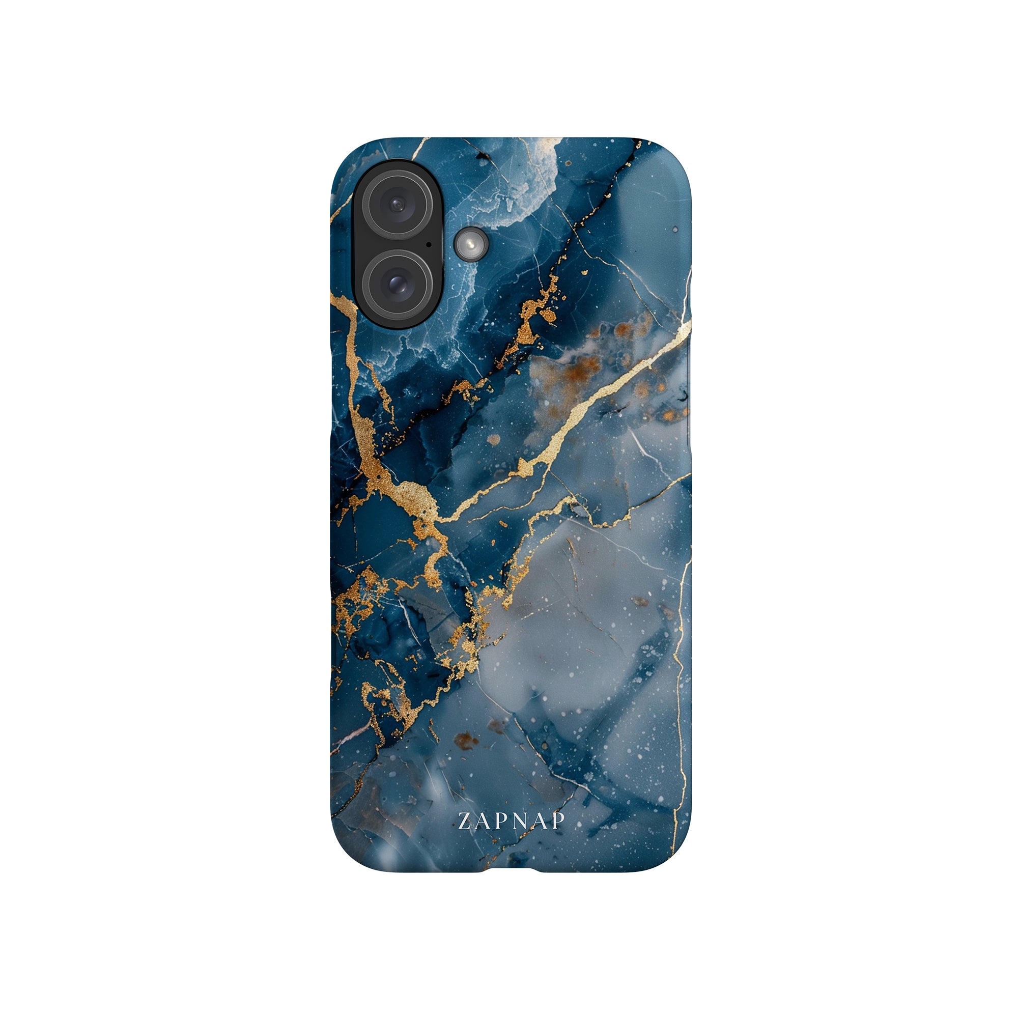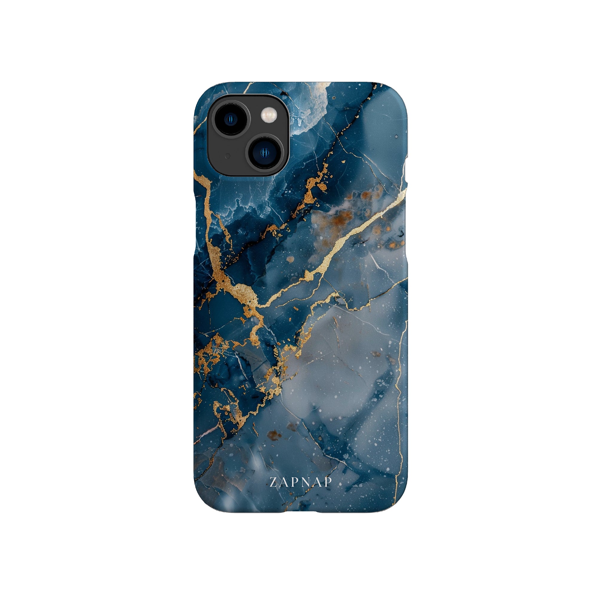 This phone case features a captivating display of deep blue marbling with stunning gold veining. The rich azure hues and luxurious gold accents create a sophisticated and elegant aesthetic. A great name for this design could be 'Azure Luxe.' This name captures the gemstone-like color scheme and the intricate, vein-like patterns, making it a perfect choice for anyone looking to add a touch of opulence and style to their device. Ideal for those who appreciate refined and unique designs, 'Azure Luxe' is sure to make a striking statement.