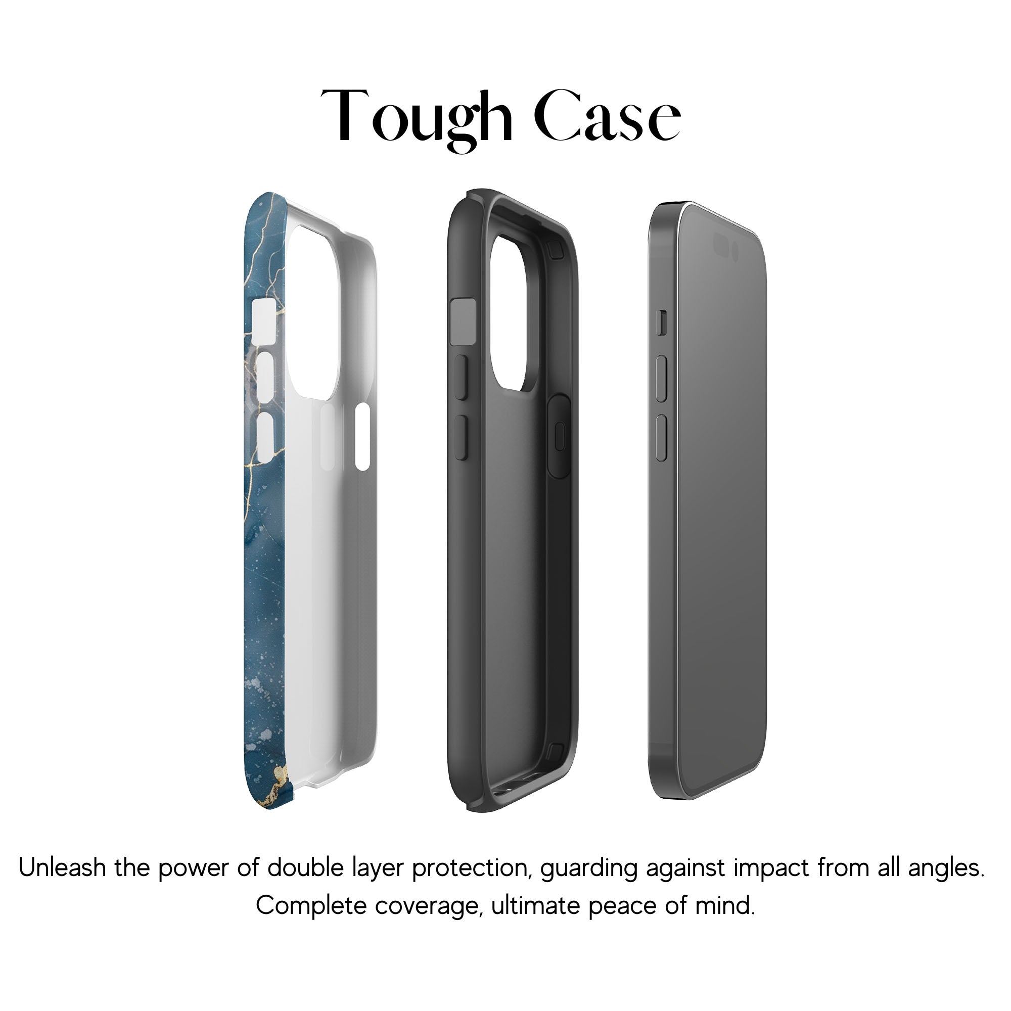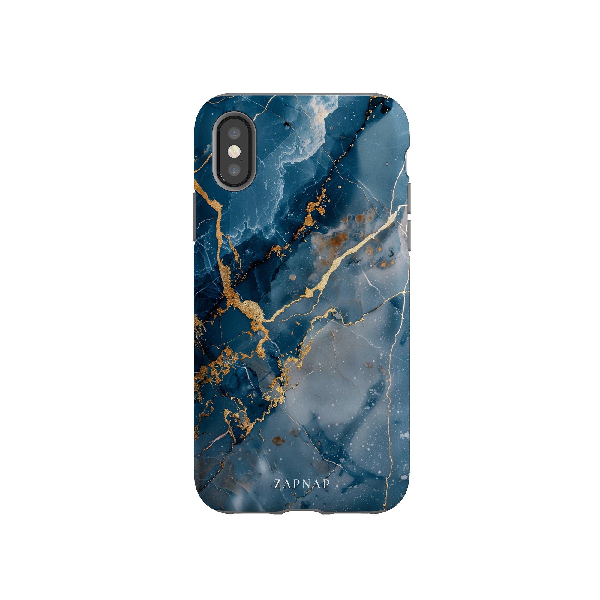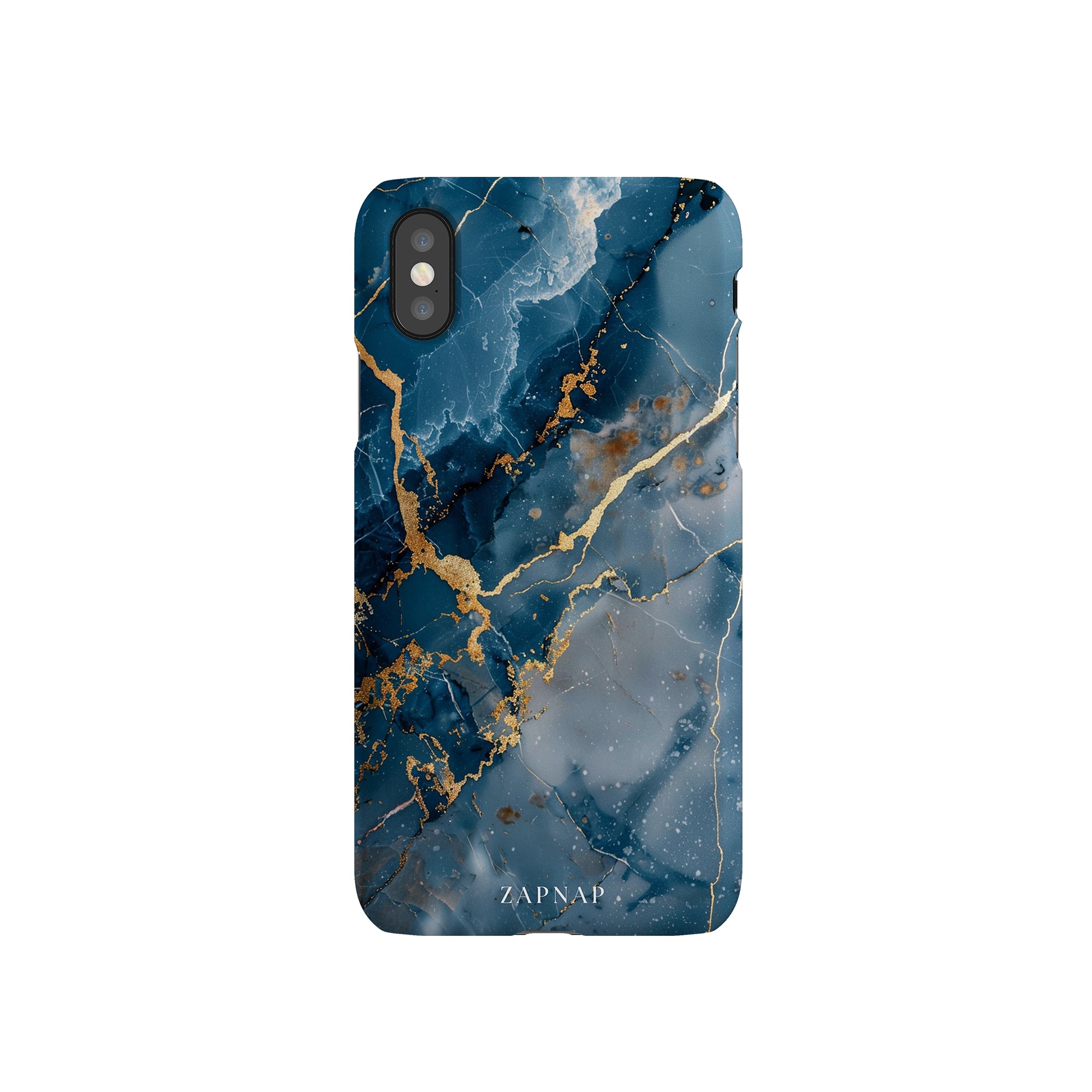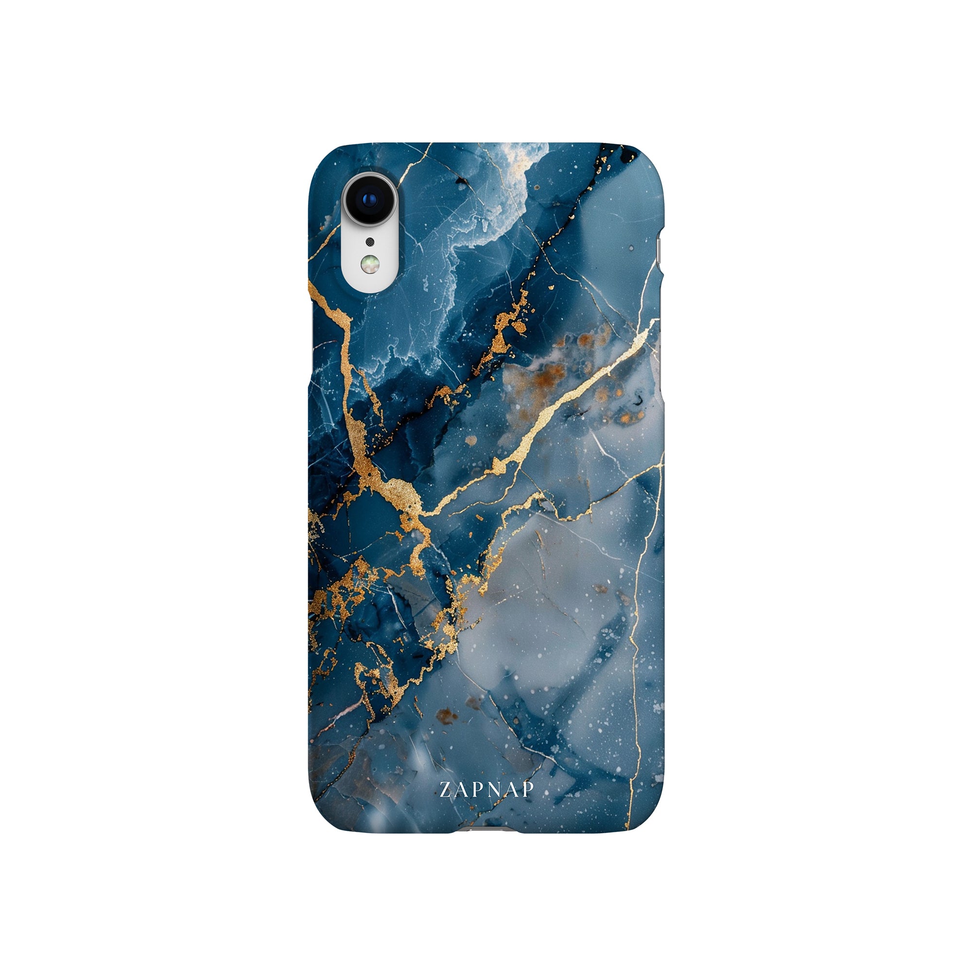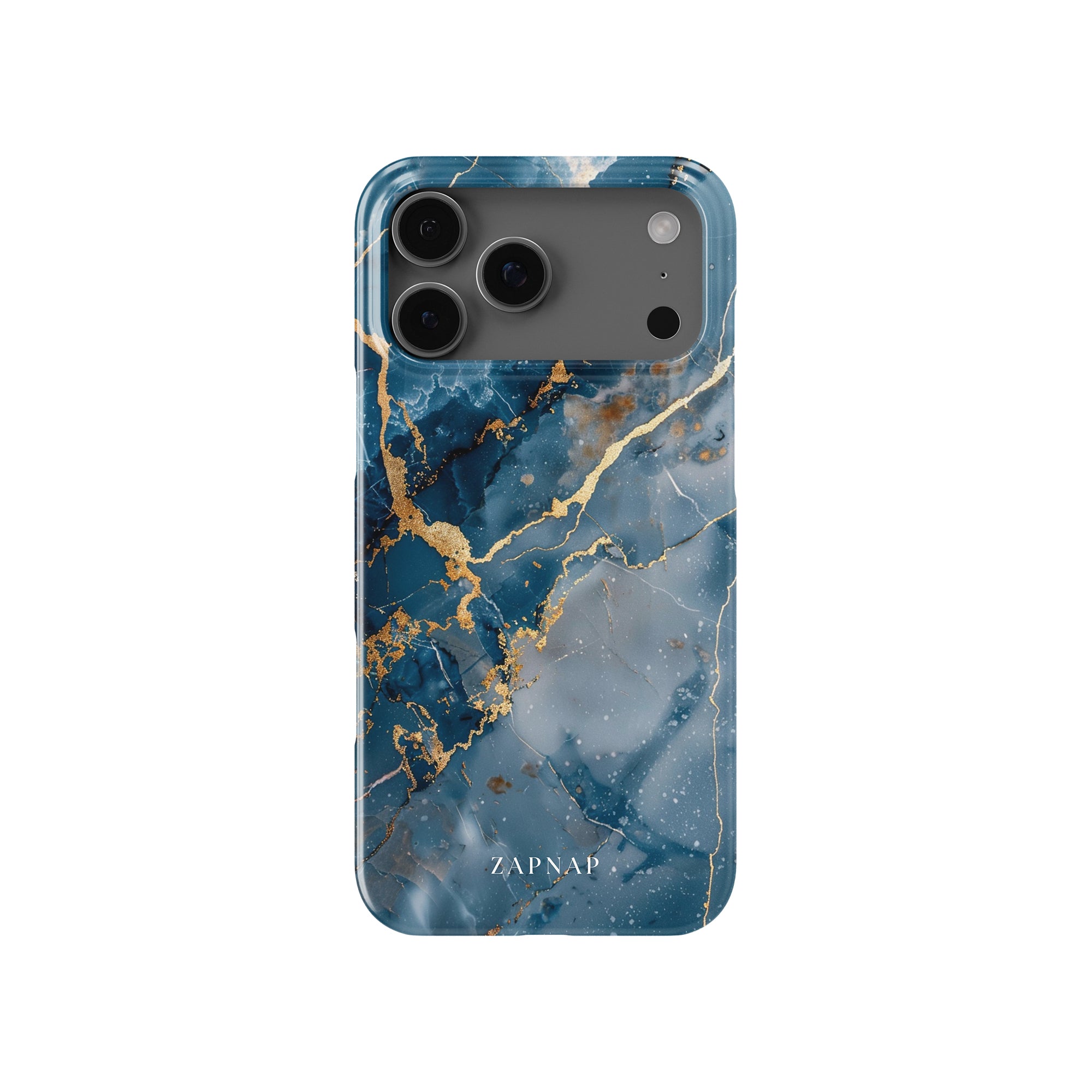 This phone case features a captivating display of deep blue marbling with stunning gold veining. The rich azure hues and luxurious gold accents create a sophisticated and elegant aesthetic. A great name for this design could be 'Azure Luxe.' This name captures the gemstone-like color scheme and the intricate, vein-like patterns, making it a perfect choice for anyone looking to add a touch of opulence and style to their device. Ideal for those who appreciate refined and unique designs, 'Azure Luxe' is sure to make a striking statement.