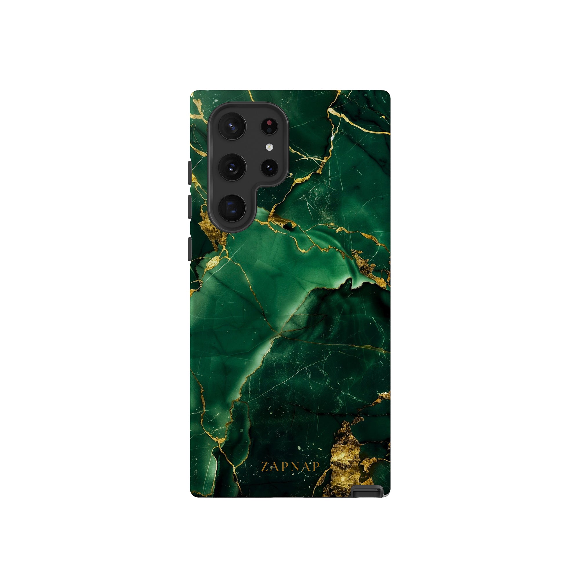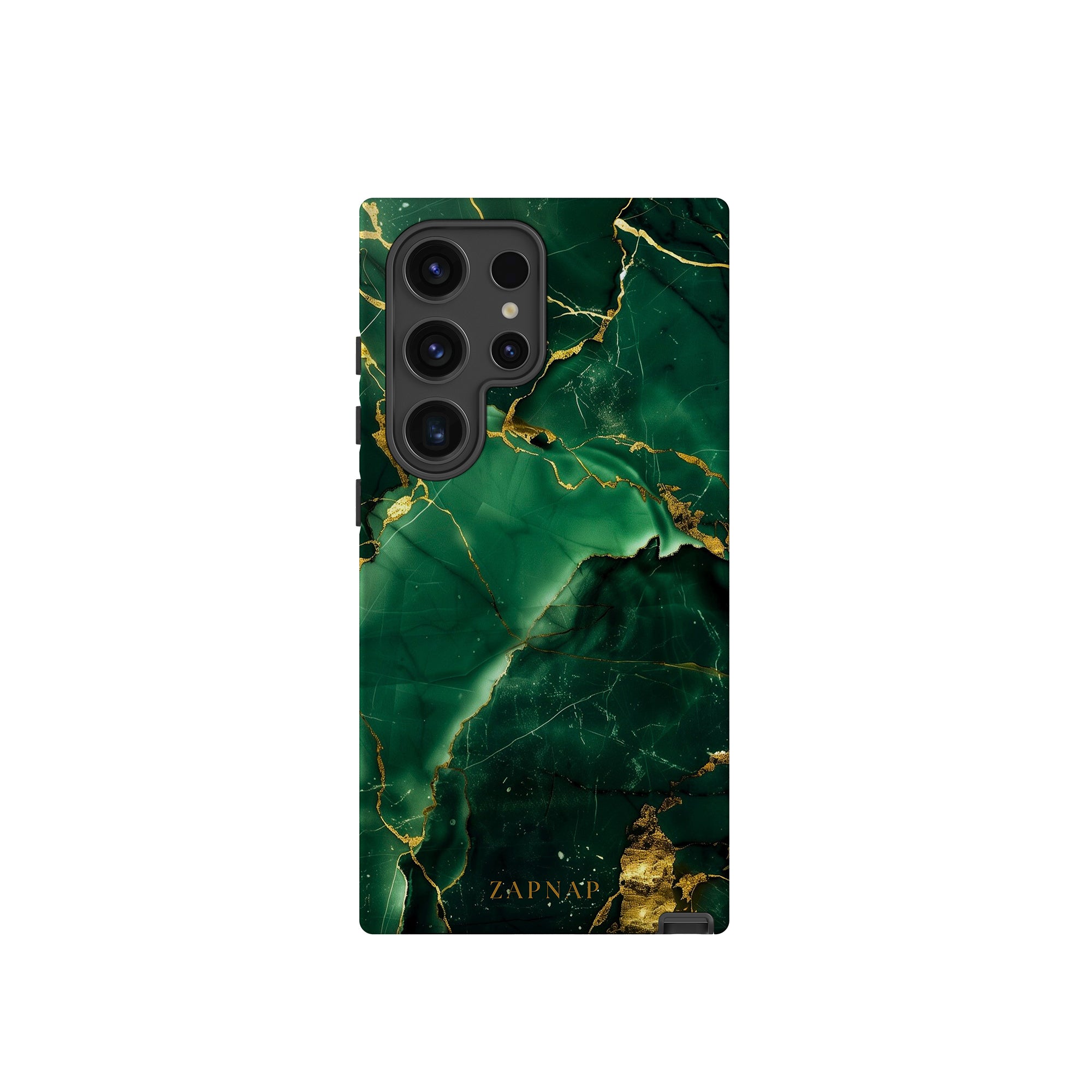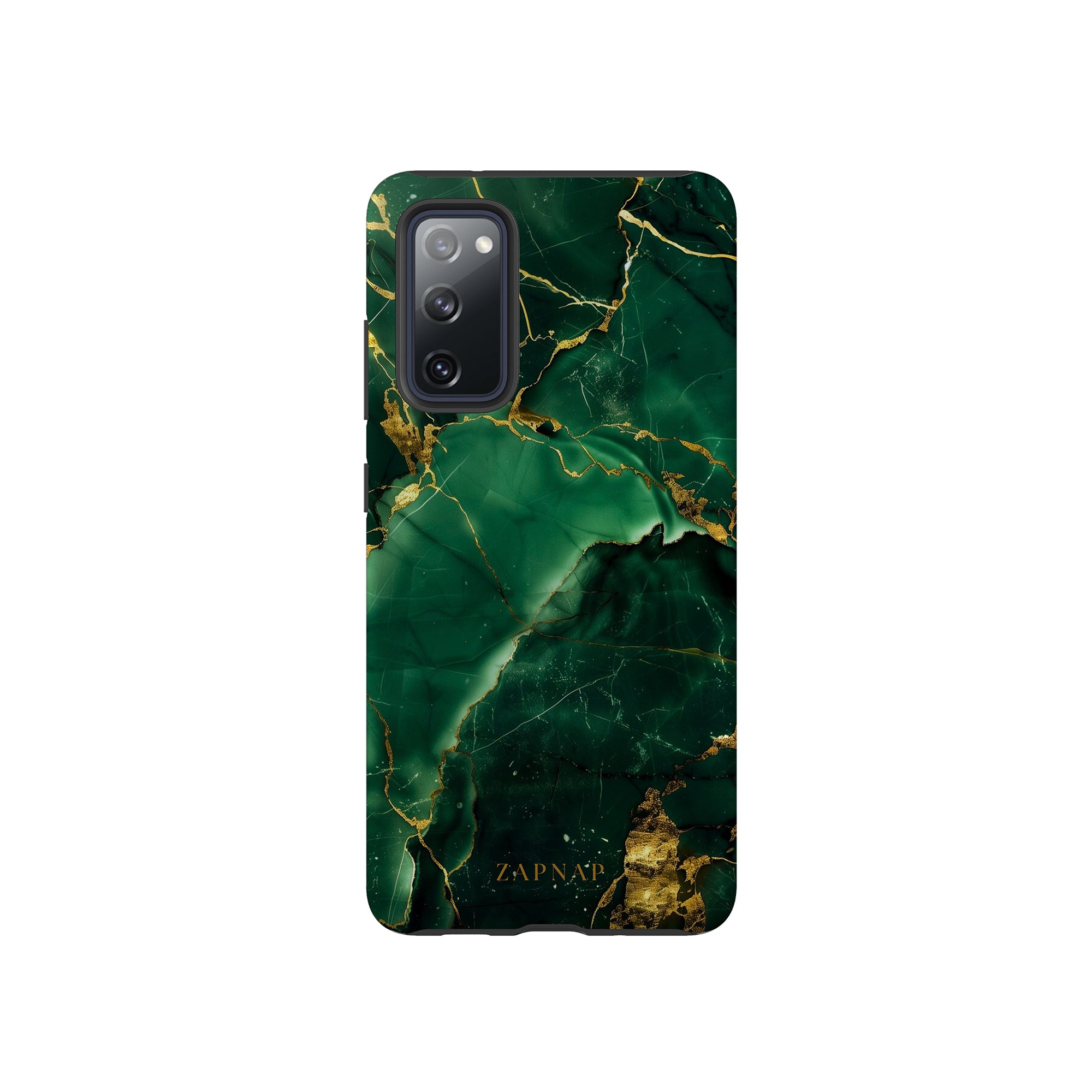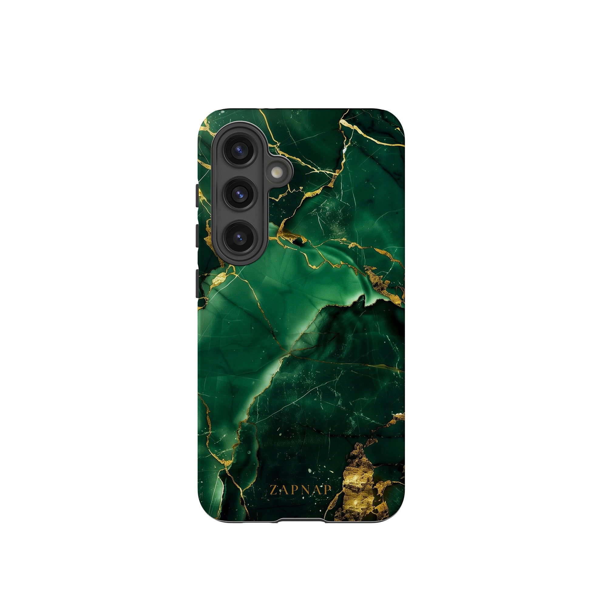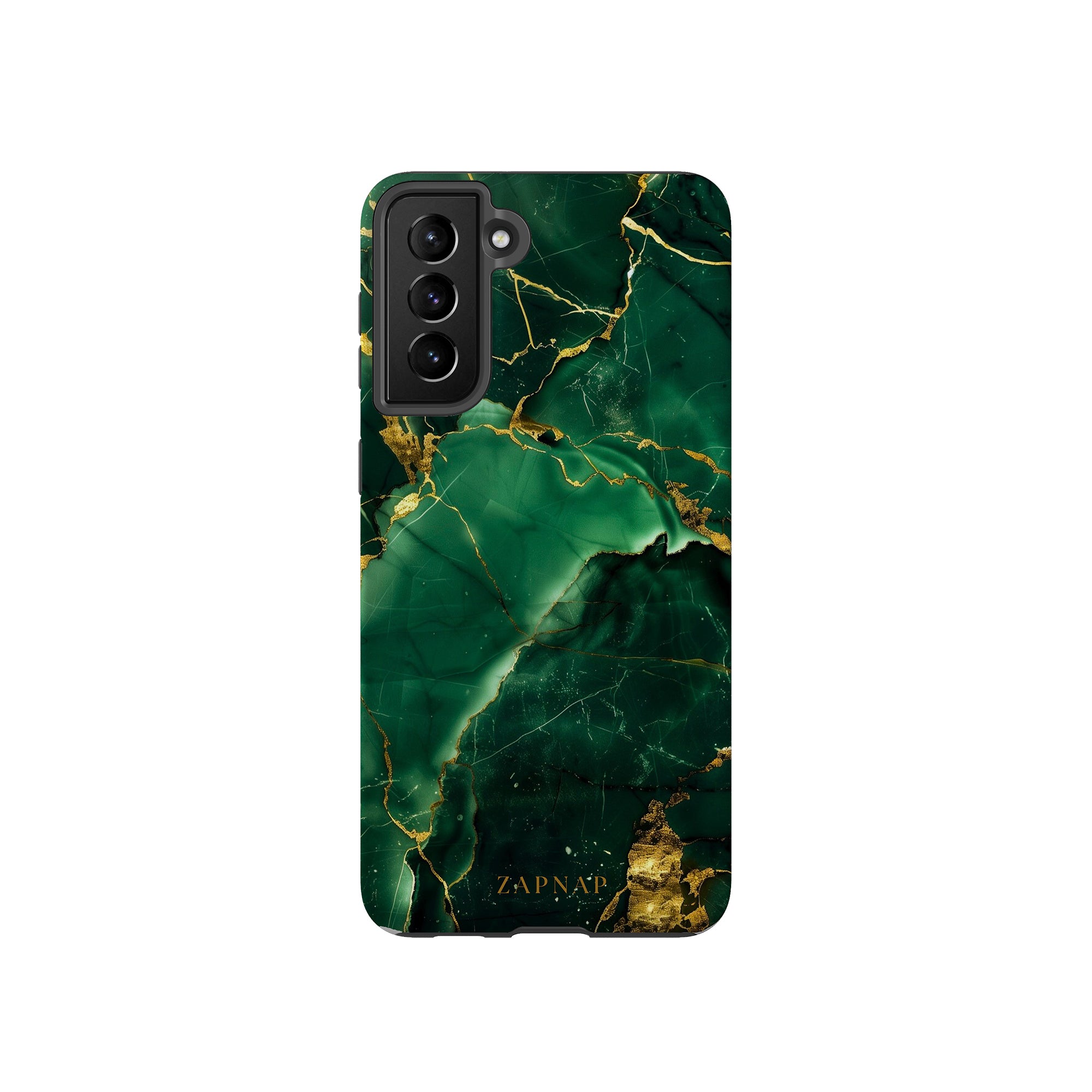 This phone case features a stunning display of deep green marbling with exquisite gold veining. The rich emerald hues and shimmering gold accents create a luxurious and sophisticated aesthetic. A great name for this design could be 'Emerald Elegance.' This name captures the gemstone-like color scheme and the intricate, vein-like patterns, making it a perfect choice for anyone looking to add a touch of opulence and style to their device. Ideal for those who appreciate refined and unique designs, 'Emerald Elegance' is sure to make a striking statement.