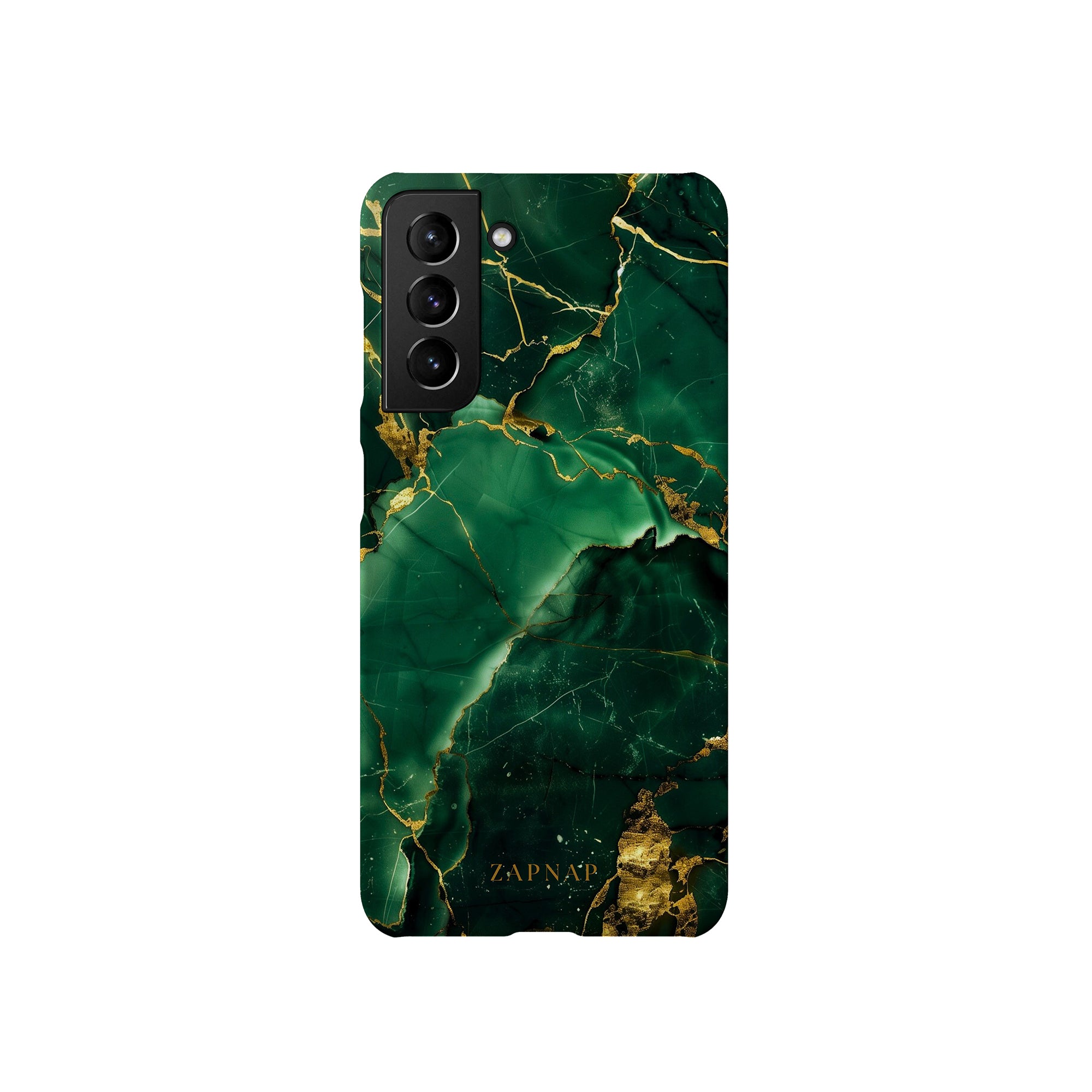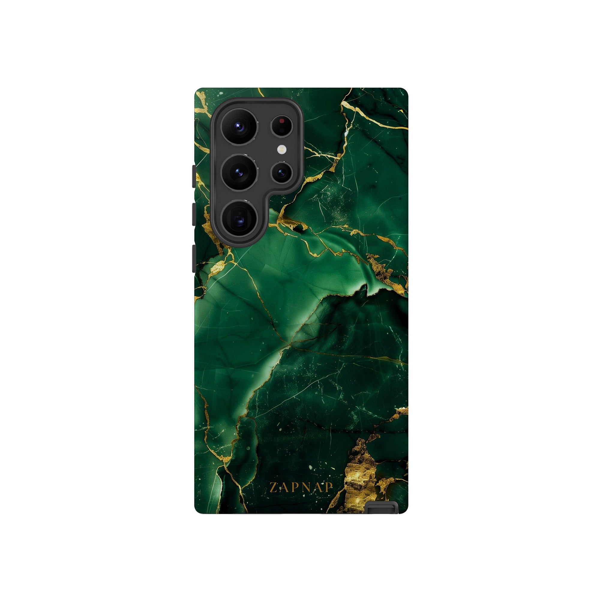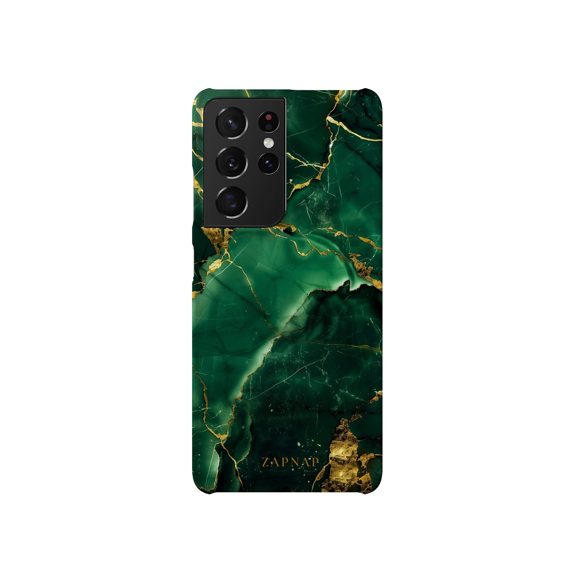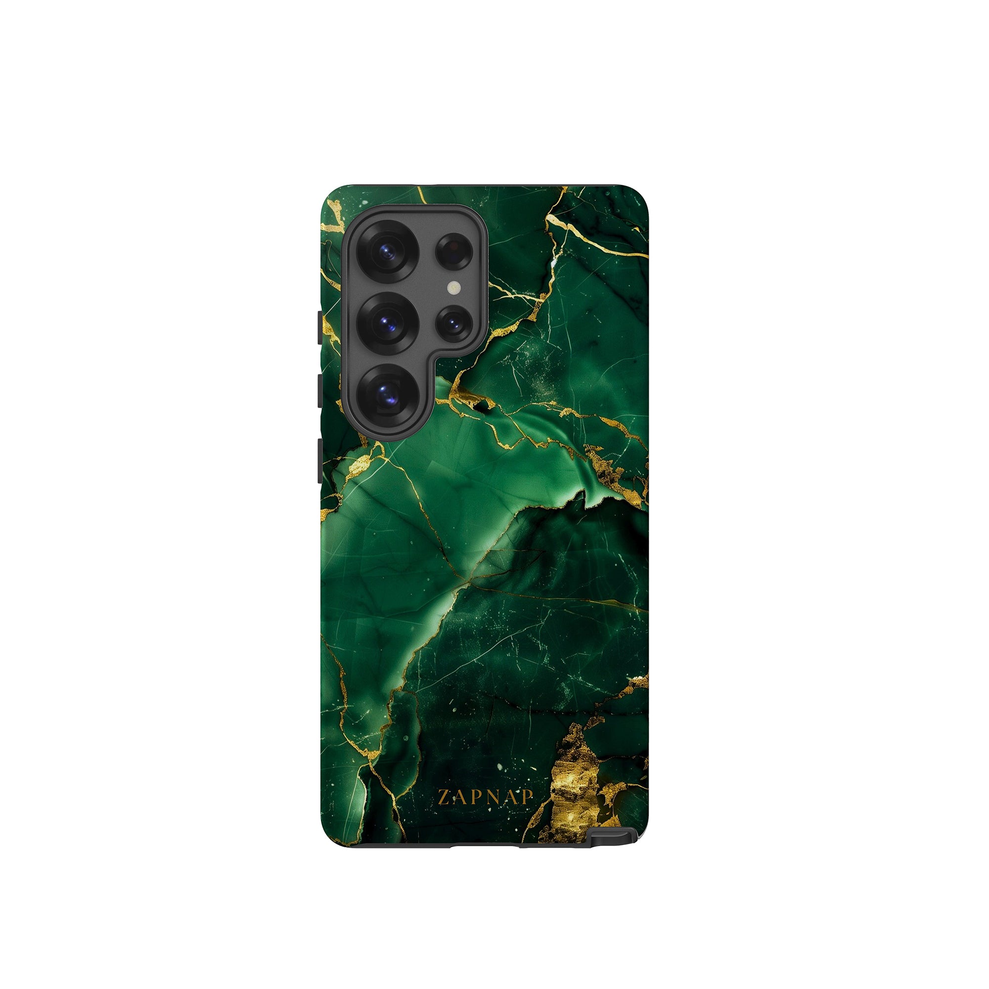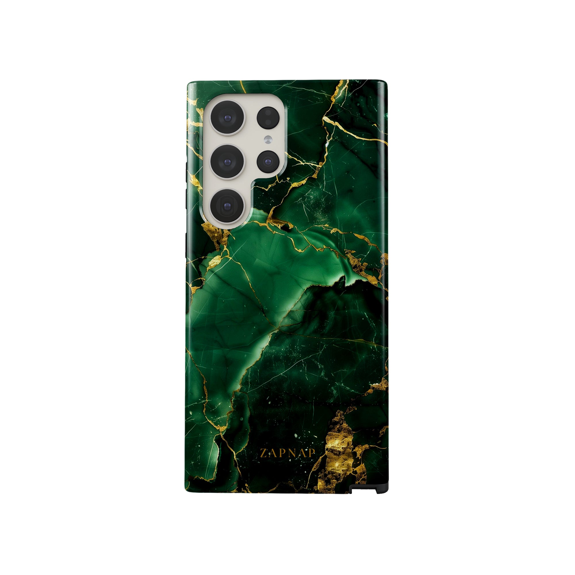 This phone case features a stunning display of deep green marbling with exquisite gold veining. The rich emerald hues and shimmering gold accents create a luxurious and sophisticated aesthetic. A great name for this design could be 'Emerald Elegance.' This name captures the gemstone-like color scheme and the intricate, vein-like patterns, making it a perfect choice for anyone looking to add a touch of opulence and style to their device. Ideal for those who appreciate refined and unique designs, 'Emerald Elegance' is sure to make a striking statement.