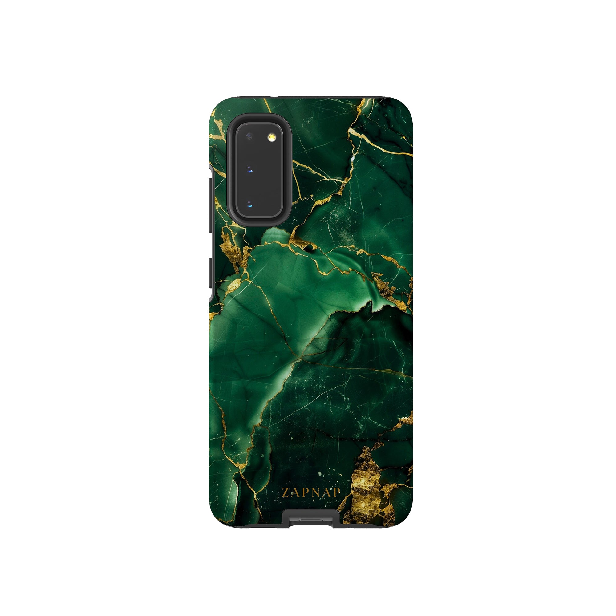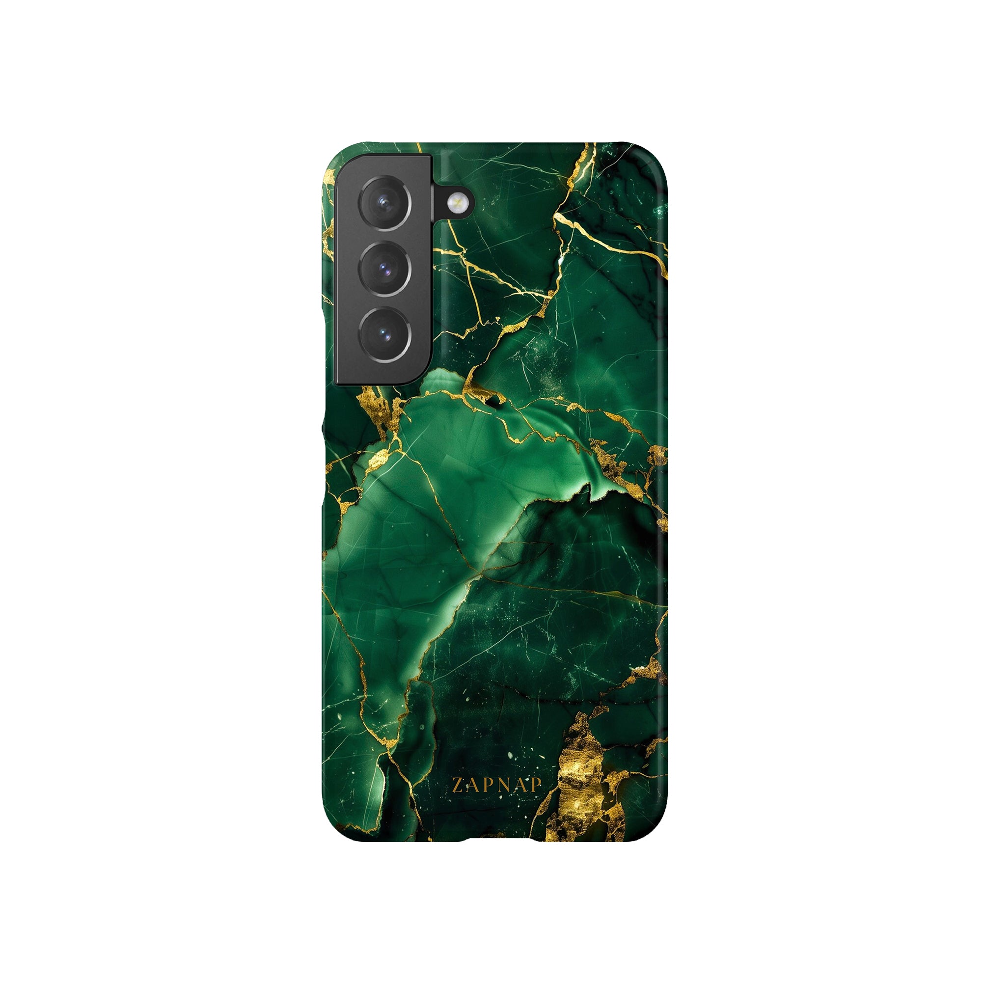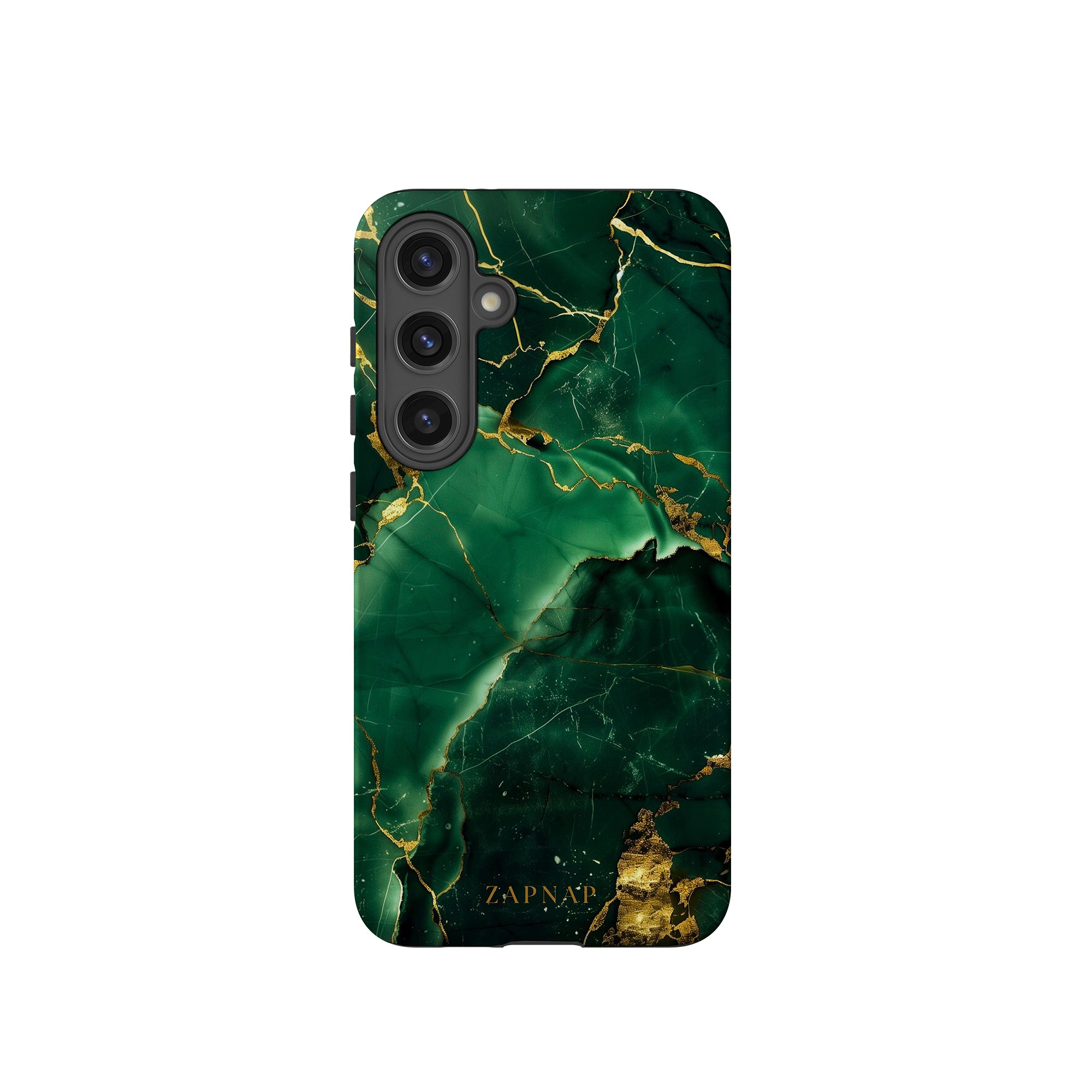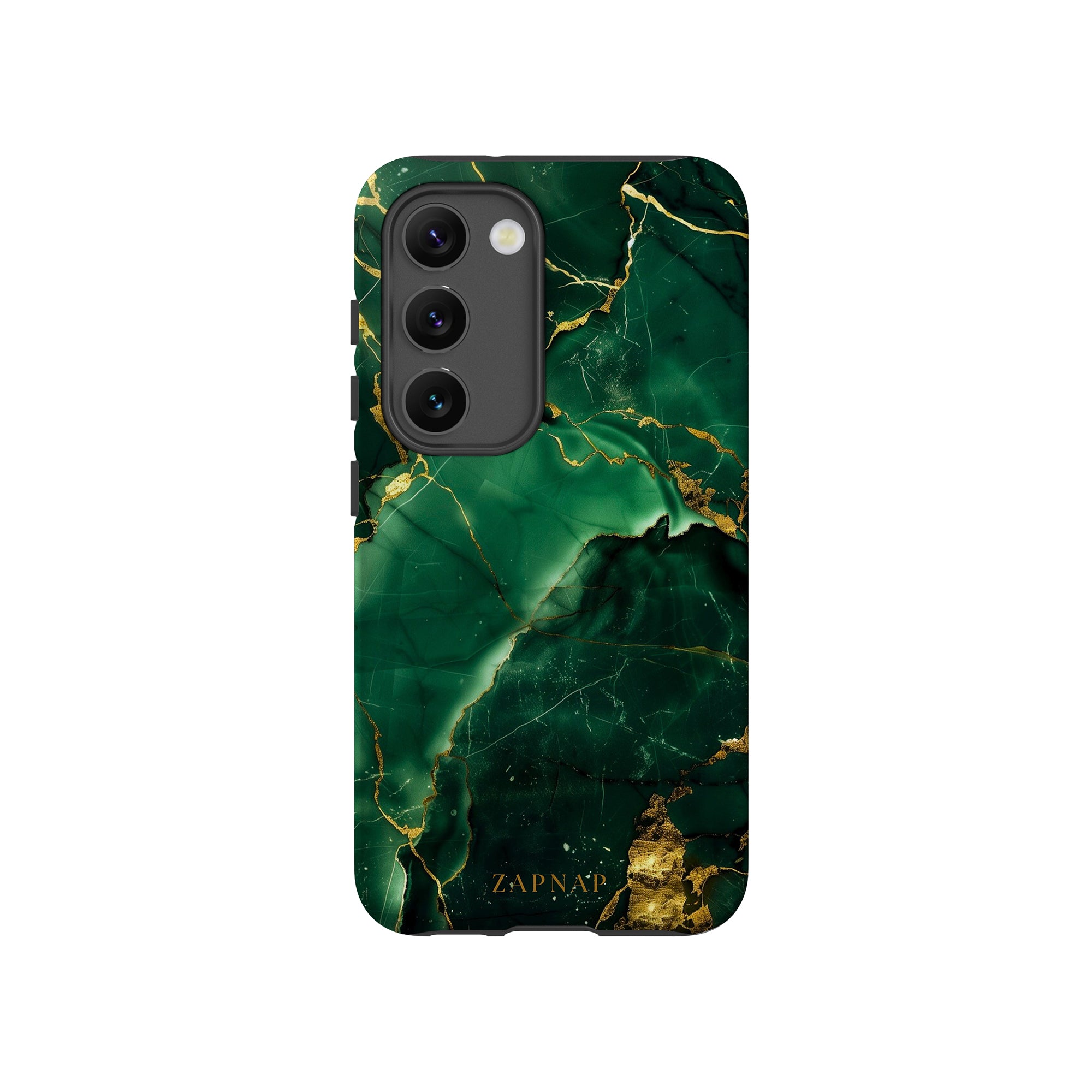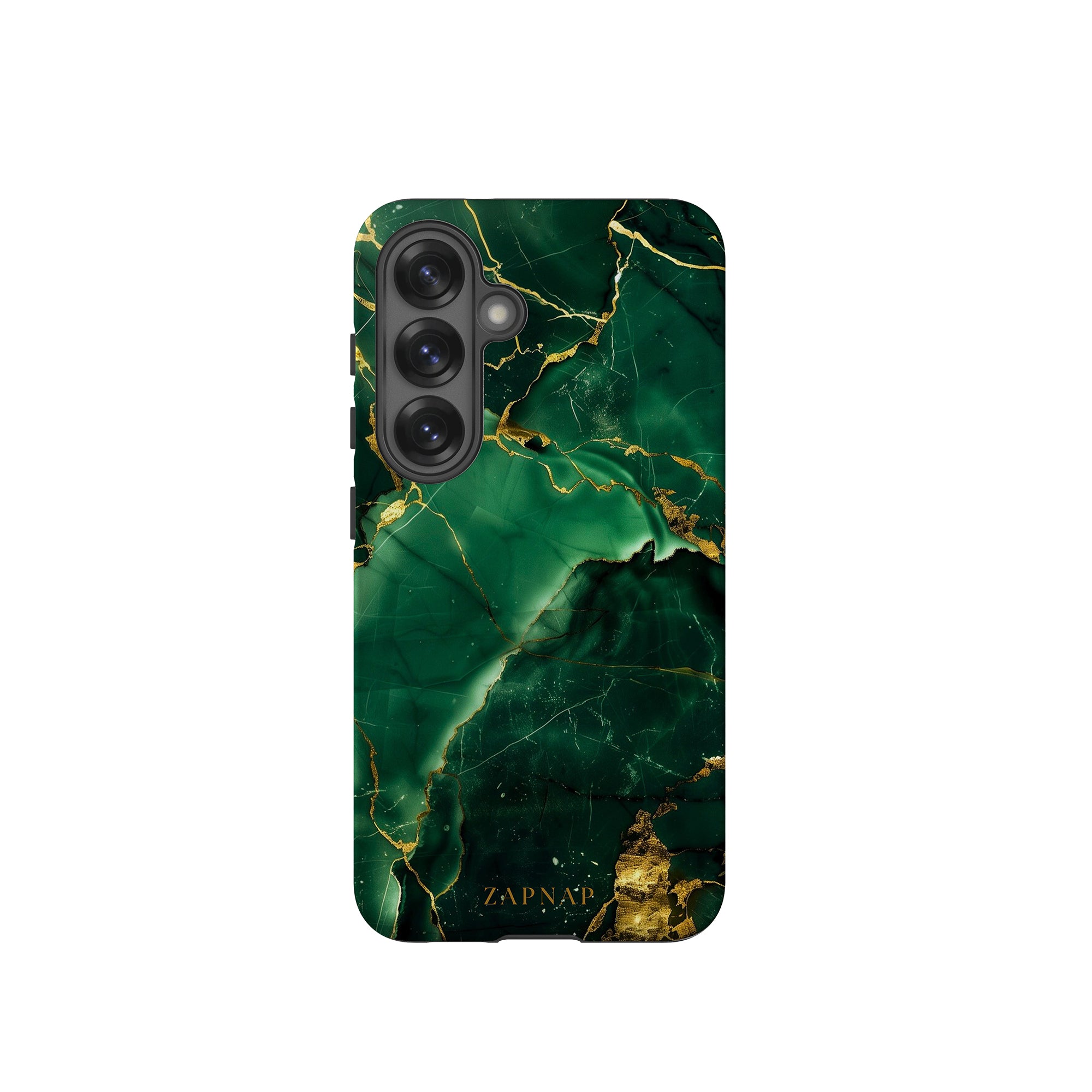 This phone case features a stunning display of deep green marbling with exquisite gold veining. The rich emerald hues and shimmering gold accents create a luxurious and sophisticated aesthetic. A great name for this design could be 'Emerald Elegance.' This name captures the gemstone-like color scheme and the intricate, vein-like patterns, making it a perfect choice for anyone looking to add a touch of opulence and style to their device. Ideal for those who appreciate refined and unique designs, 'Emerald Elegance' is sure to make a striking statement.