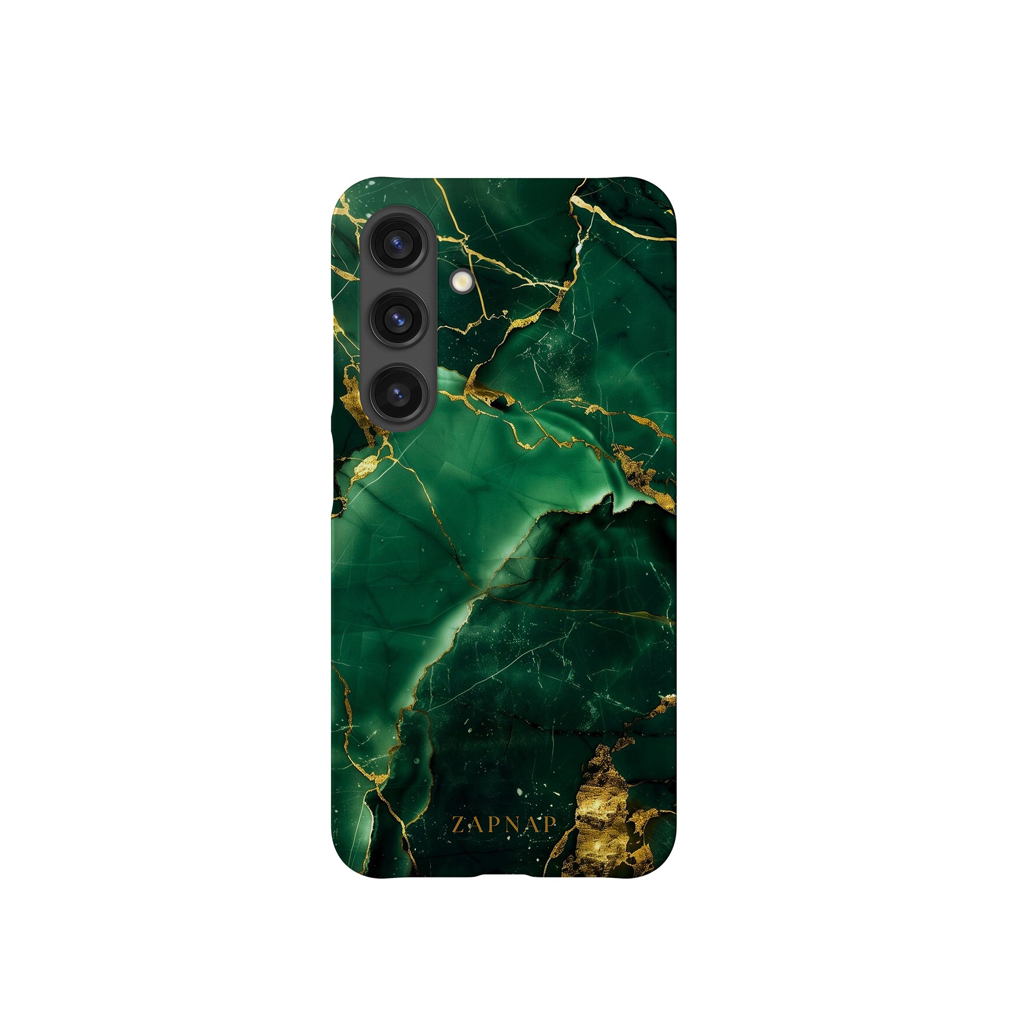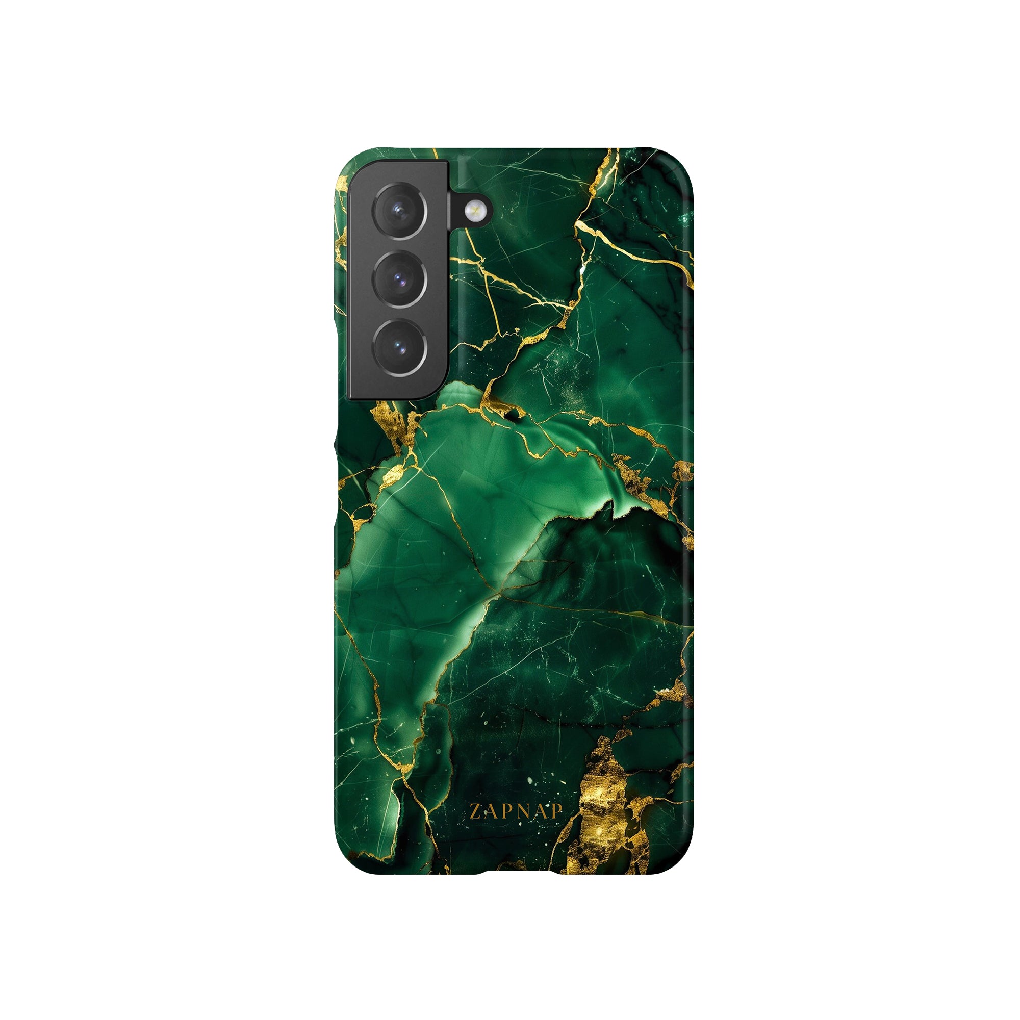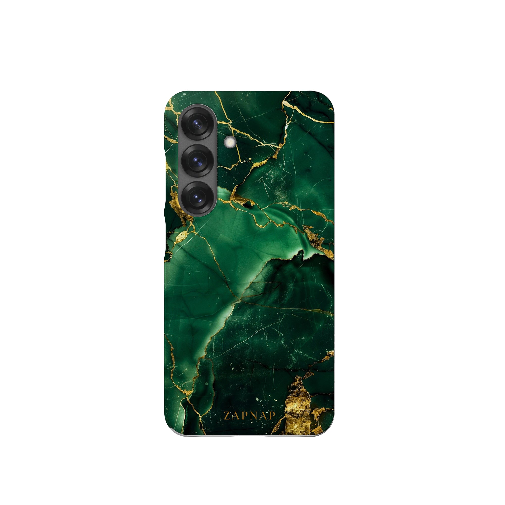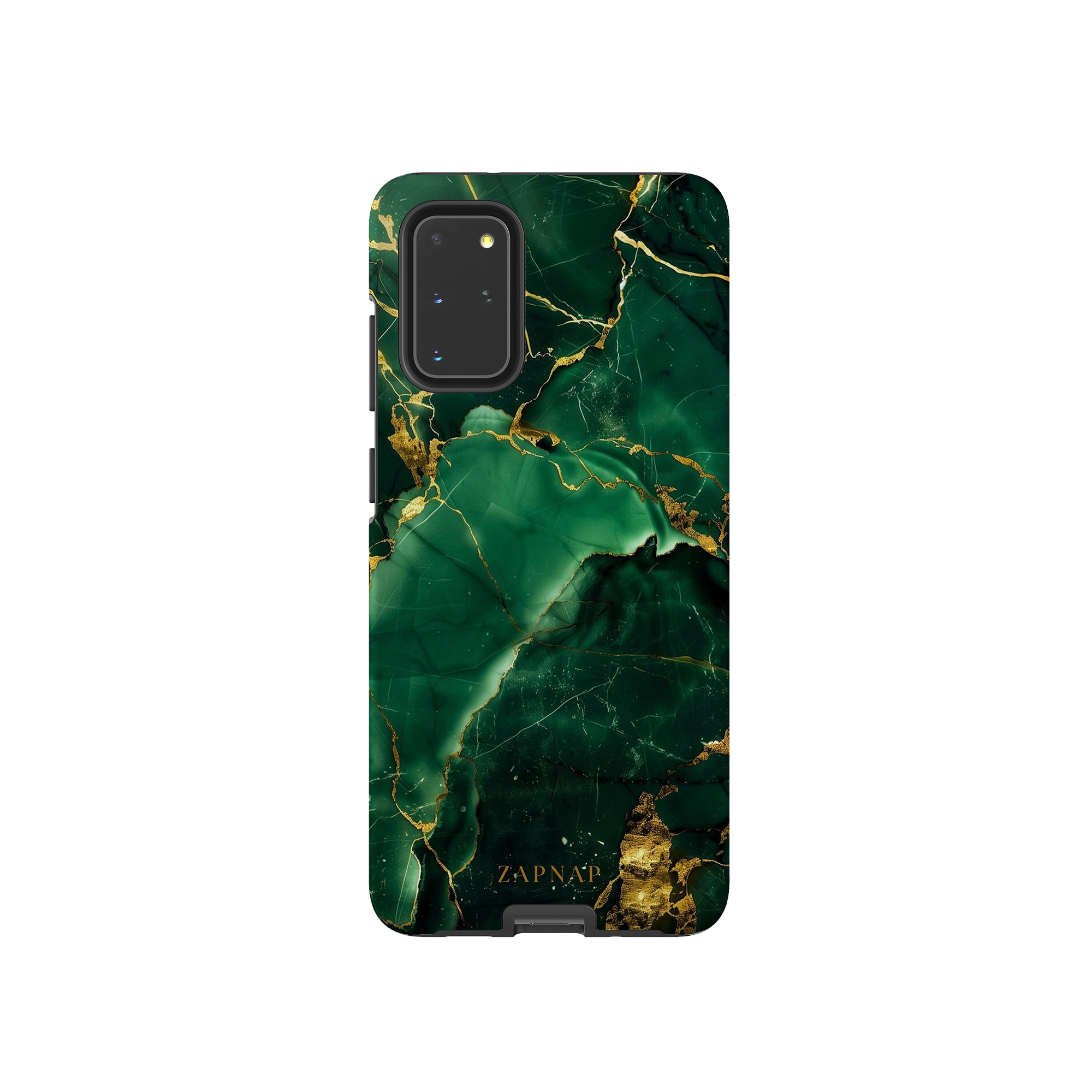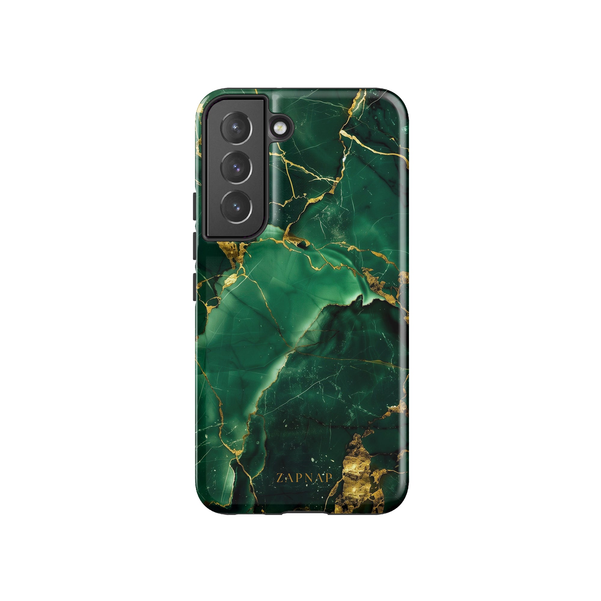 This phone case features a stunning display of deep green marbling with exquisite gold veining. The rich emerald hues and shimmering gold accents create a luxurious and sophisticated aesthetic. A great name for this design could be 'Emerald Elegance.' This name captures the gemstone-like color scheme and the intricate, vein-like patterns, making it a perfect choice for anyone looking to add a touch of opulence and style to their device. Ideal for those who appreciate refined and unique designs, 'Emerald Elegance' is sure to make a striking statement.