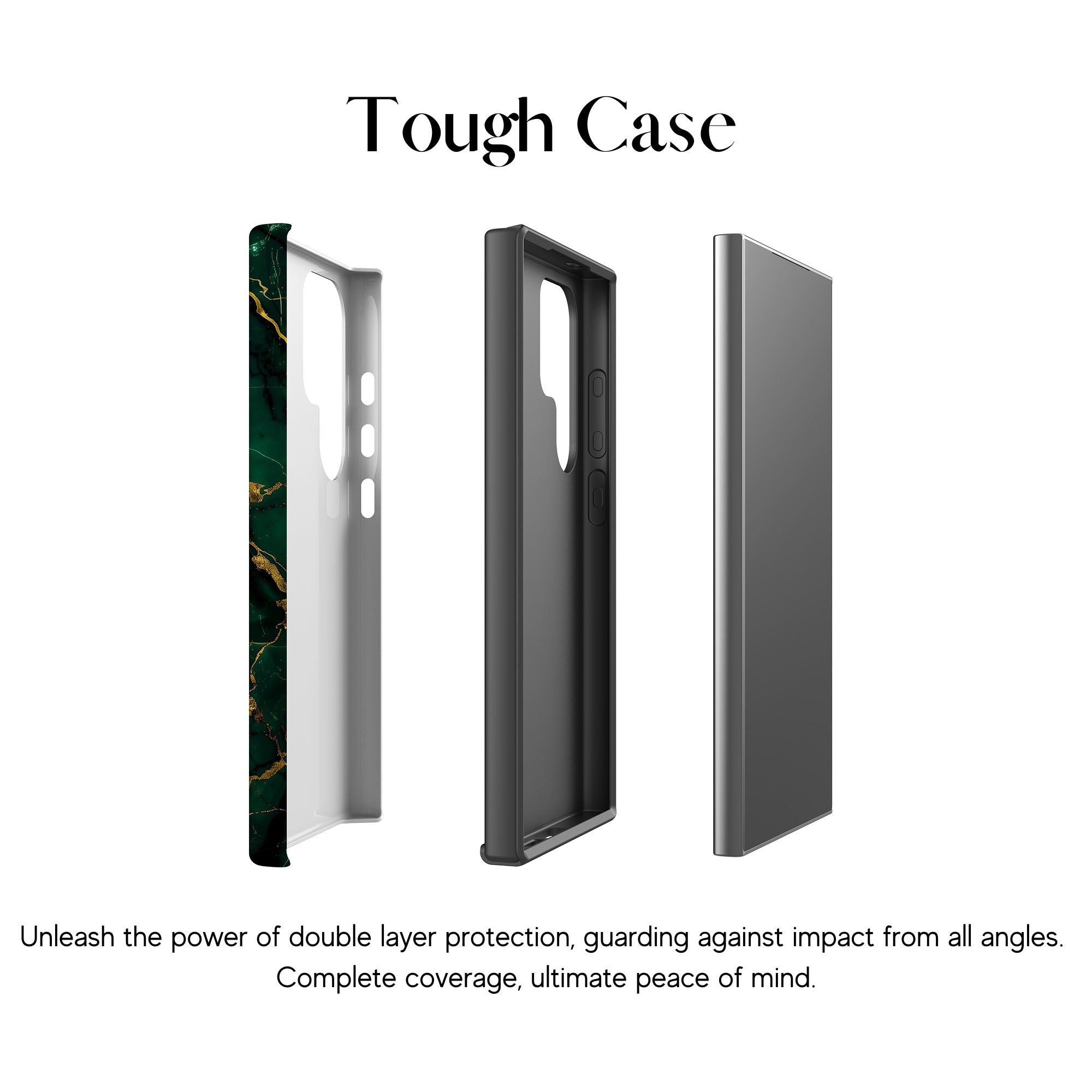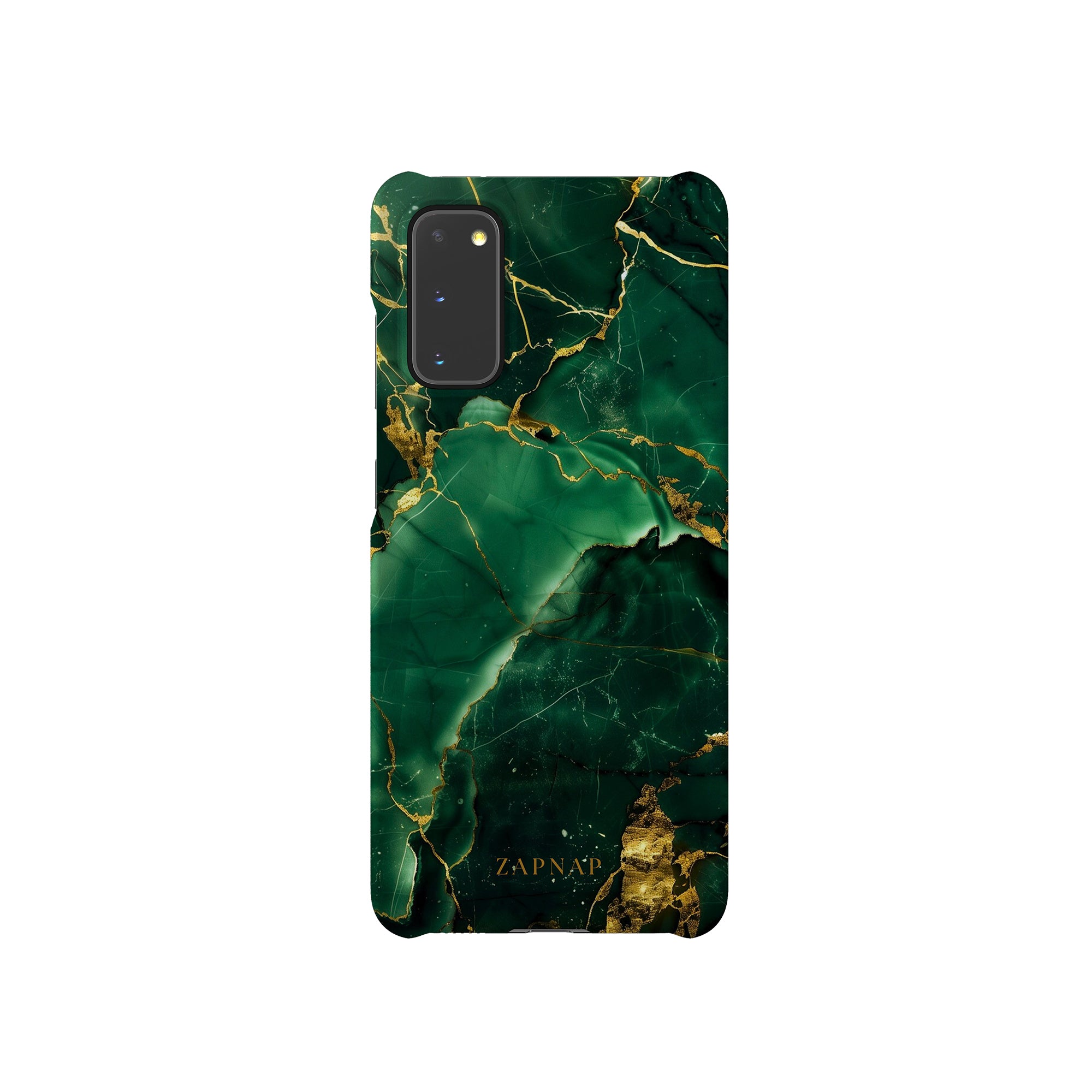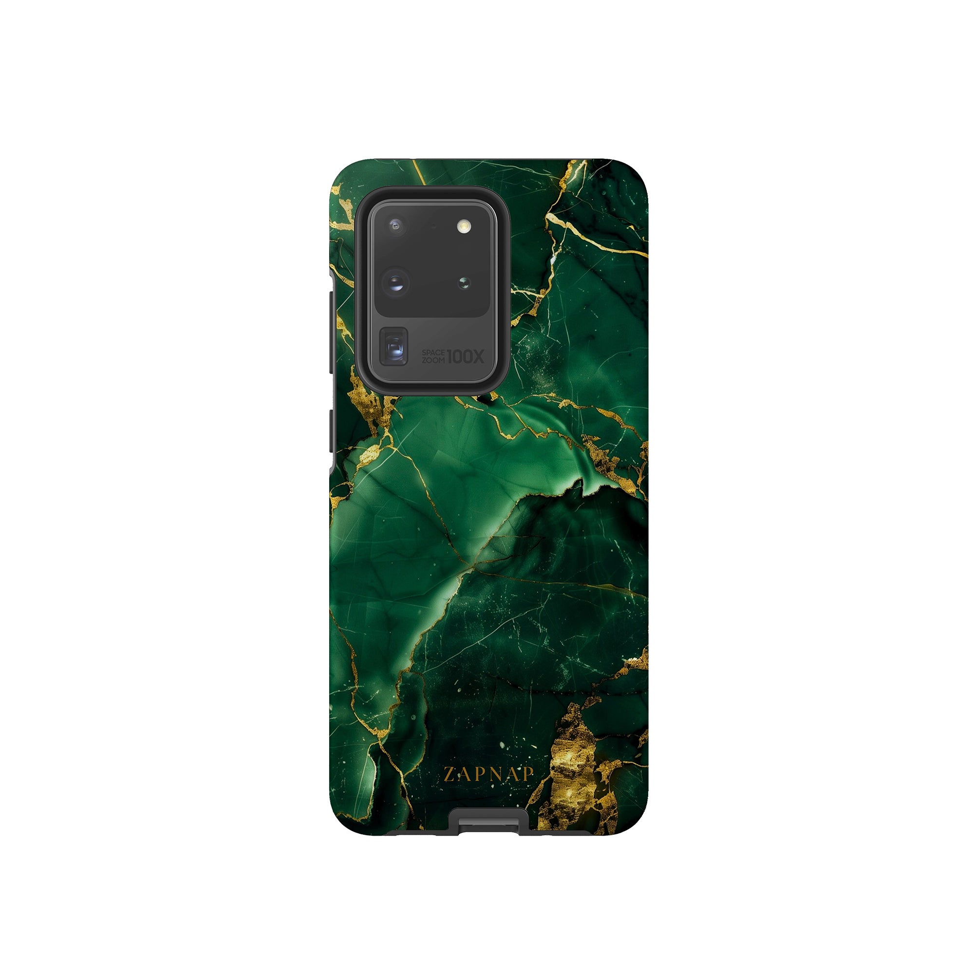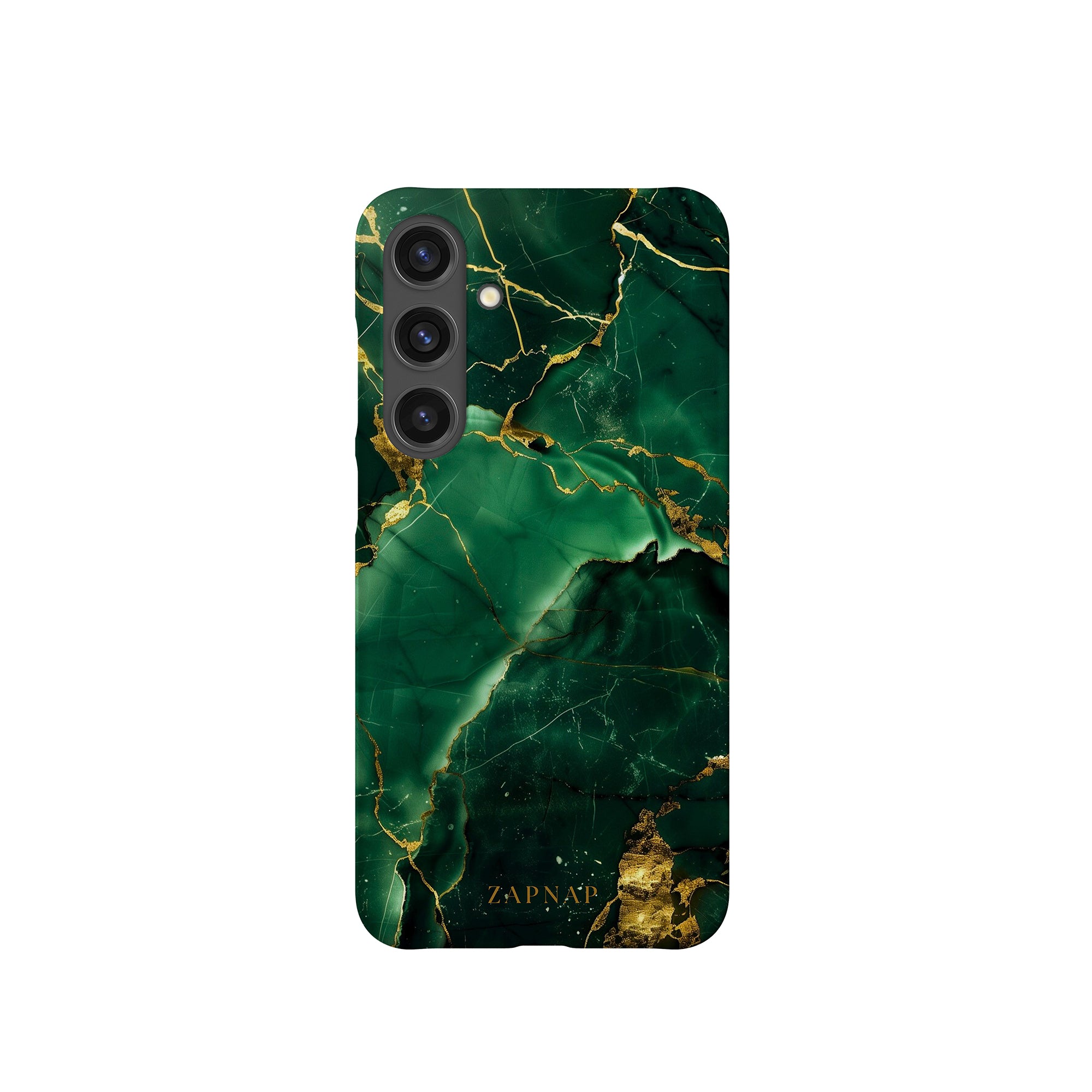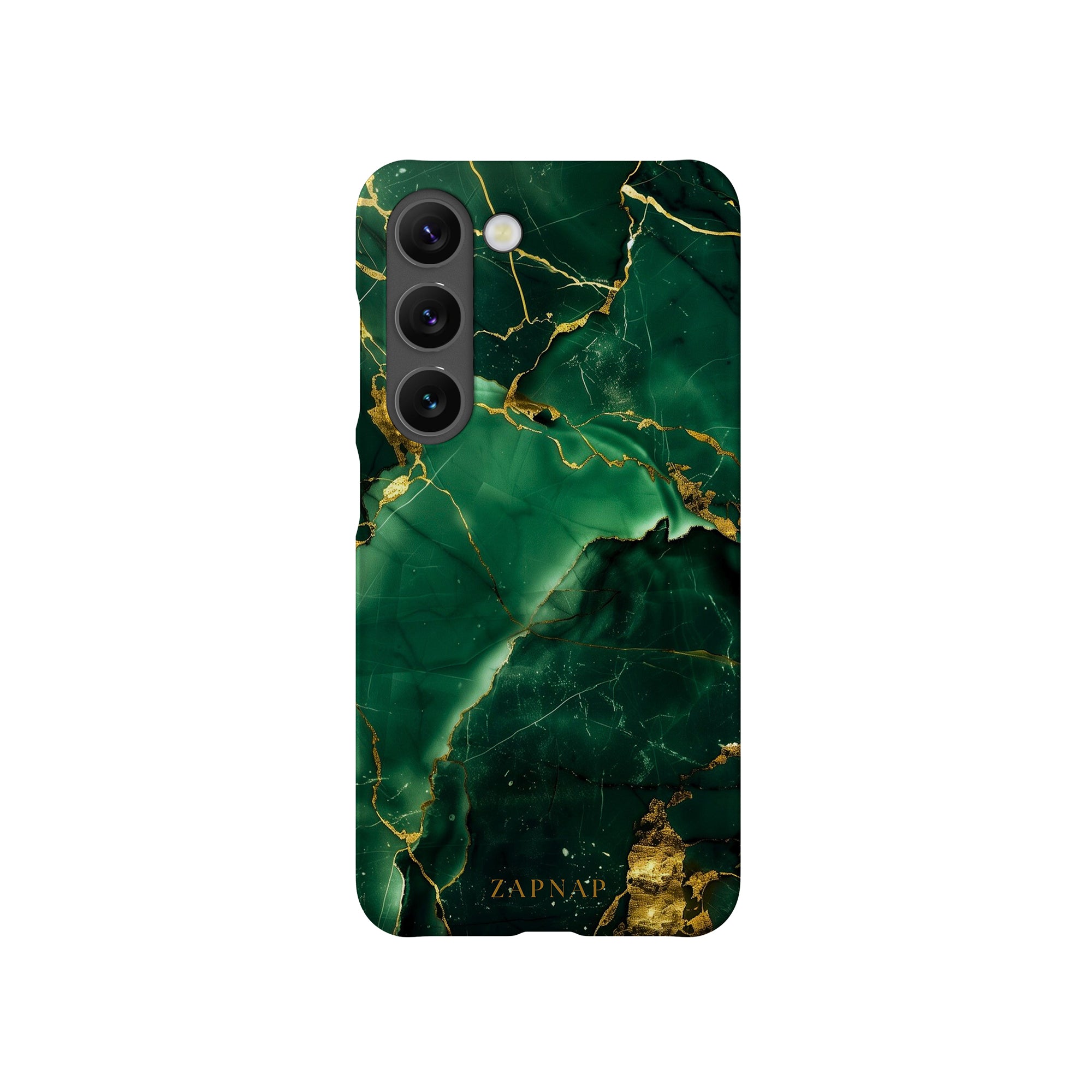 This phone case features a stunning display of deep green marbling with exquisite gold veining. The rich emerald hues and shimmering gold accents create a luxurious and sophisticated aesthetic. A great name for this design could be 'Emerald Elegance.' This name captures the gemstone-like color scheme and the intricate, vein-like patterns, making it a perfect choice for anyone looking to add a touch of opulence and style to their device. Ideal for those who appreciate refined and unique designs, 'Emerald Elegance' is sure to make a striking statement.