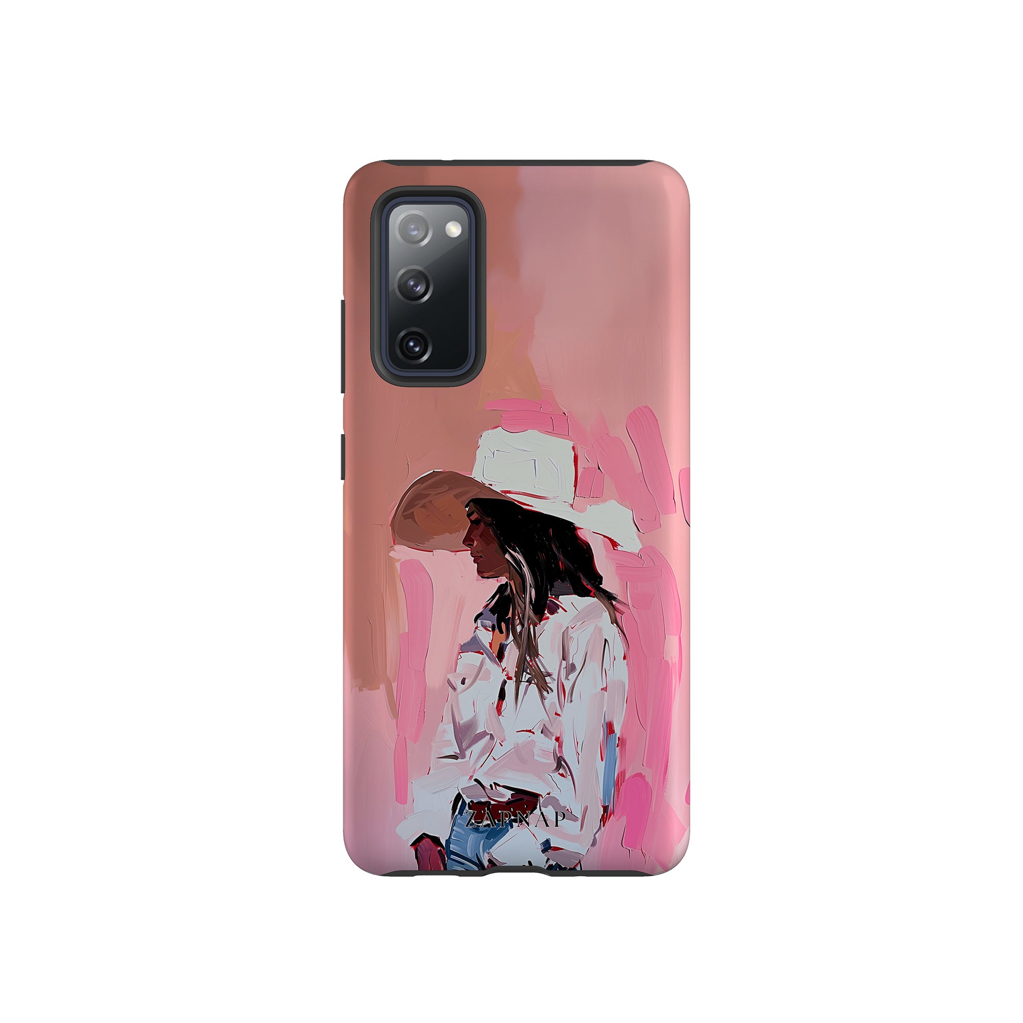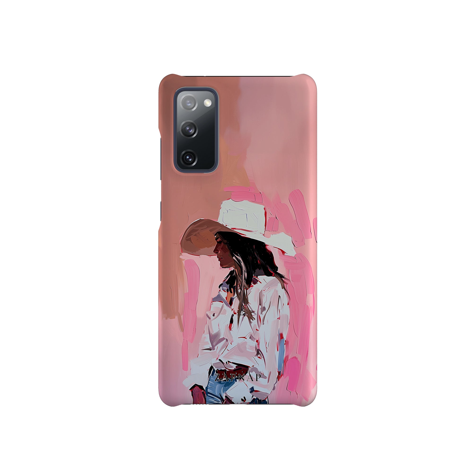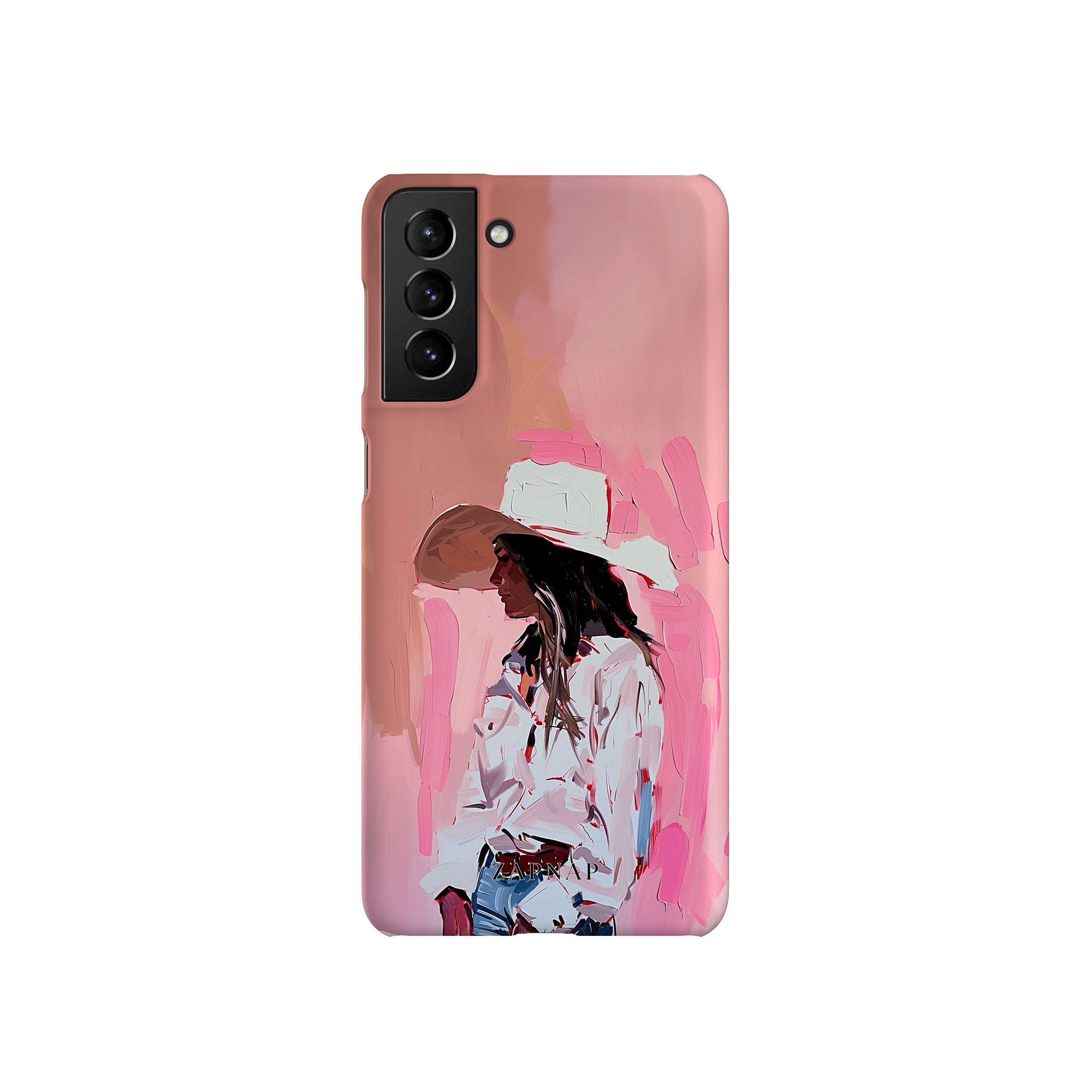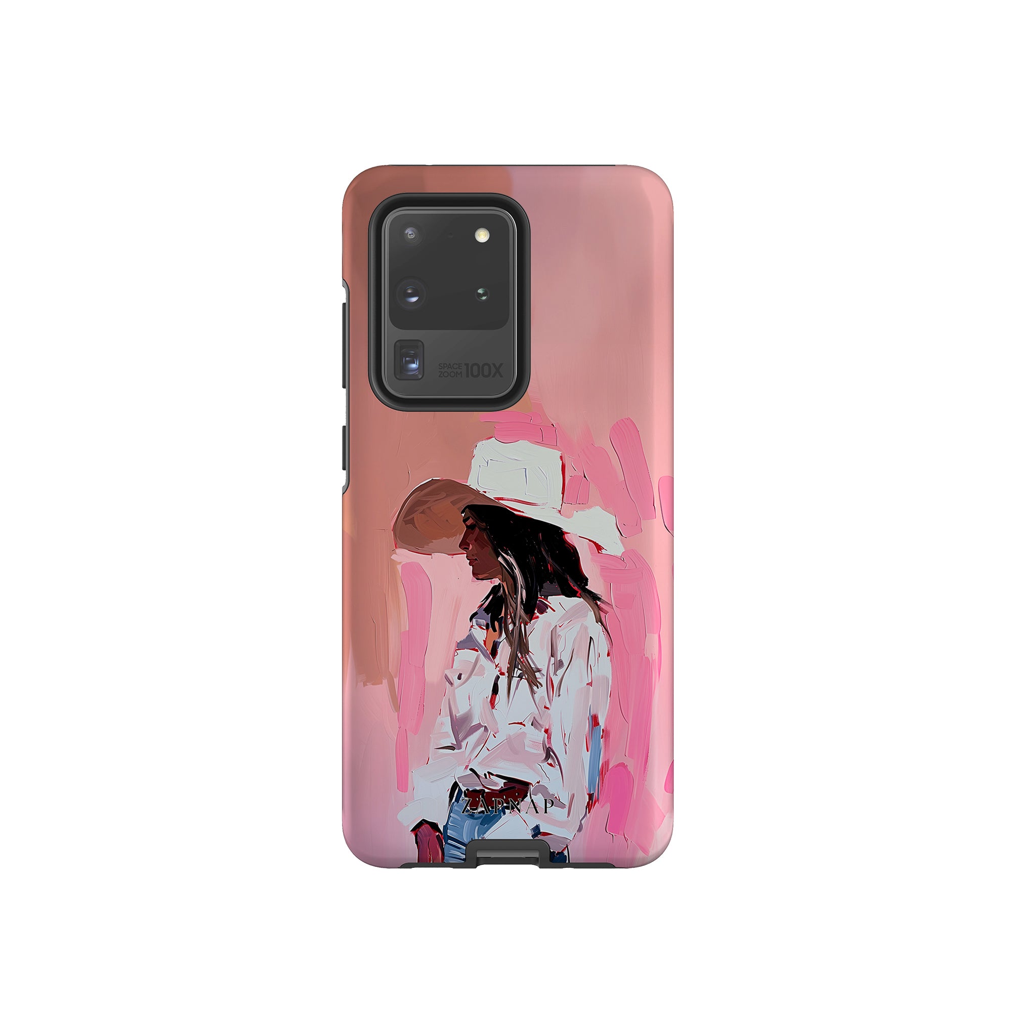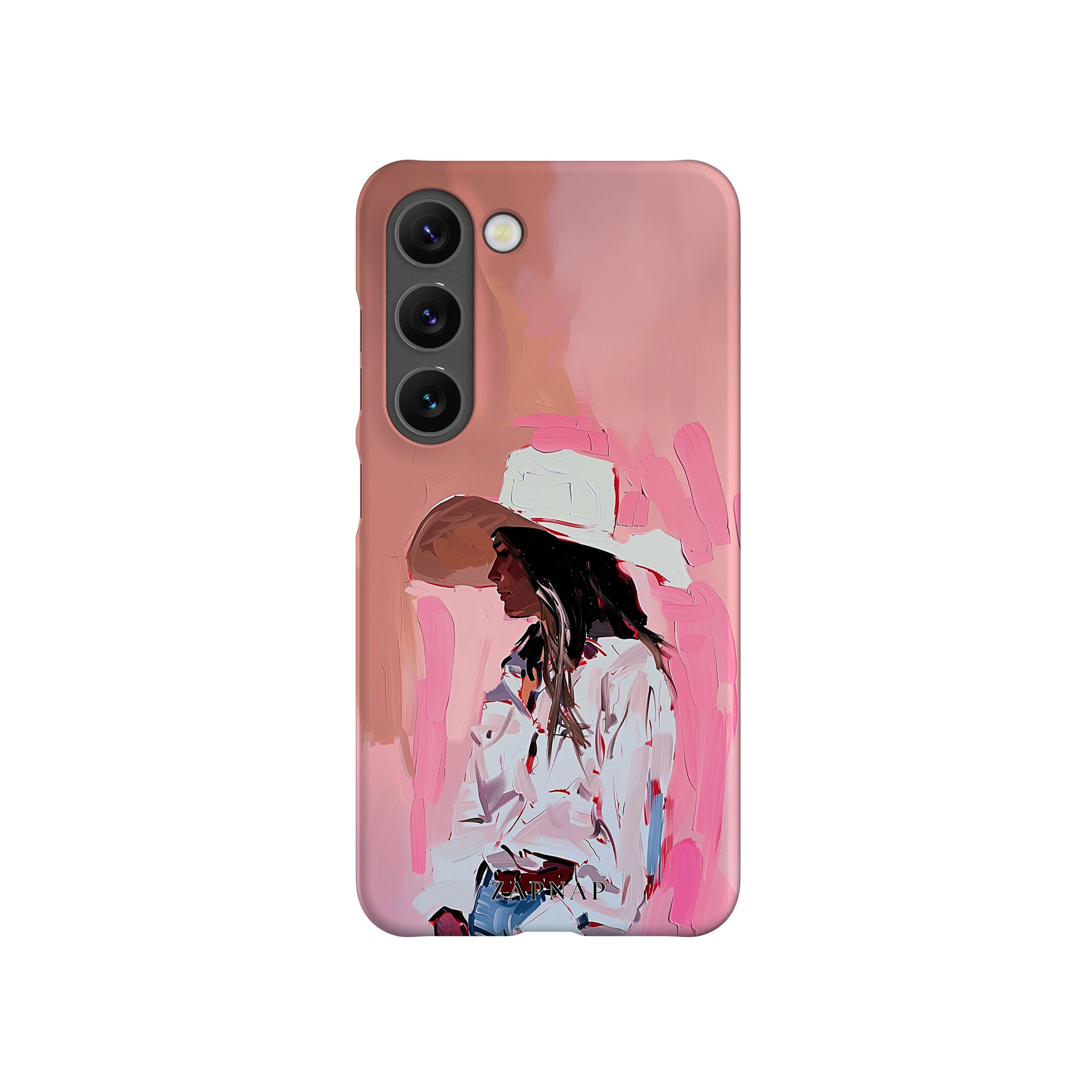 Texas Serenade portrays a contemplative cowgirl, capturing the essence of quiet strength and grace against a backdrop of soft, flowing pinks. The subtle brushstrokes highlight her poised demeanour and the timeless spirit of the Lone Star State.