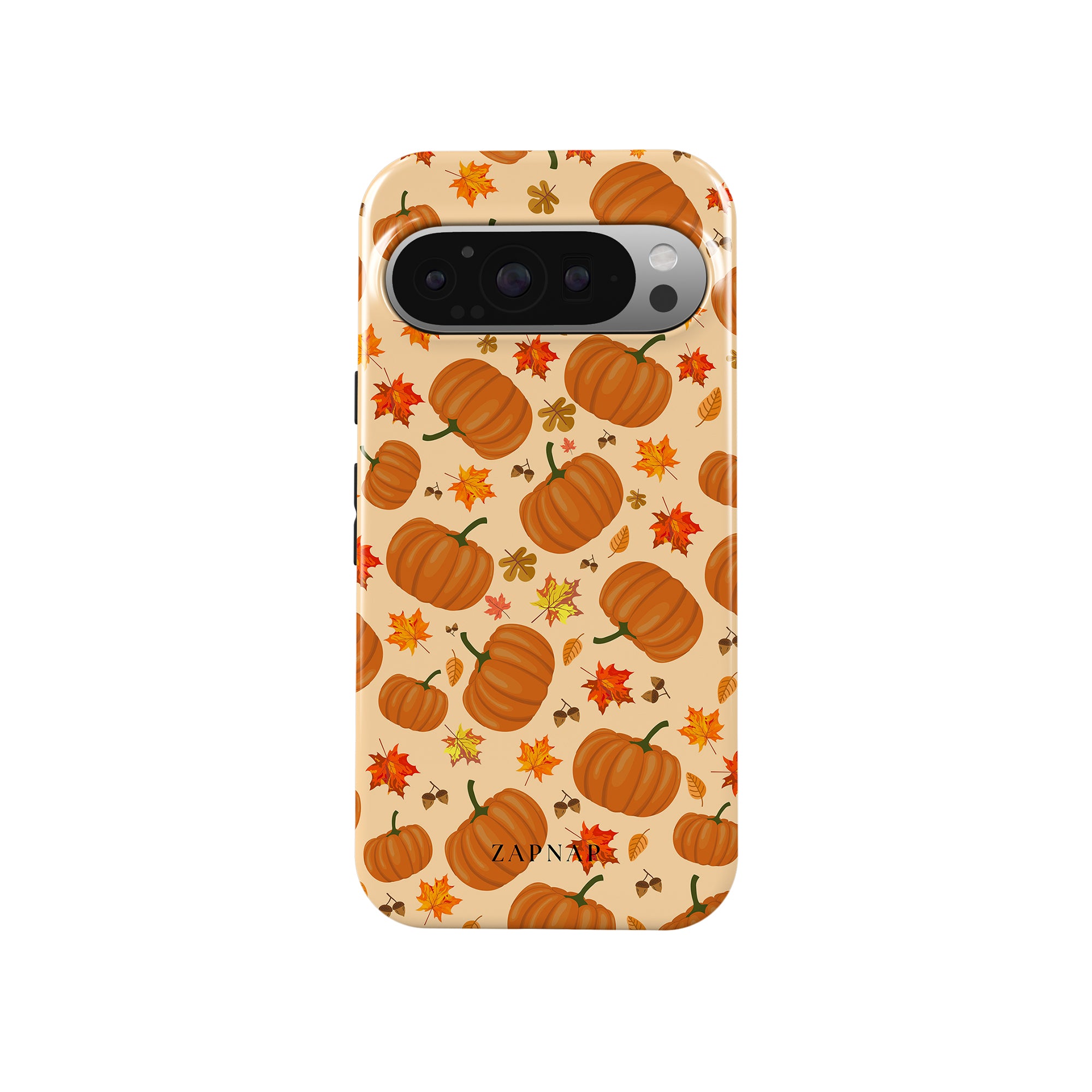 The ''Pumpkin Parade'' design showcases an array of pumpkins, colorful leaves, and acorns scattered across a soft background. The warm tones and playful arrangement evoke a sense of abundance and rustic charm, perfect for adding a seasonal yet subtle touch of nature to any product.