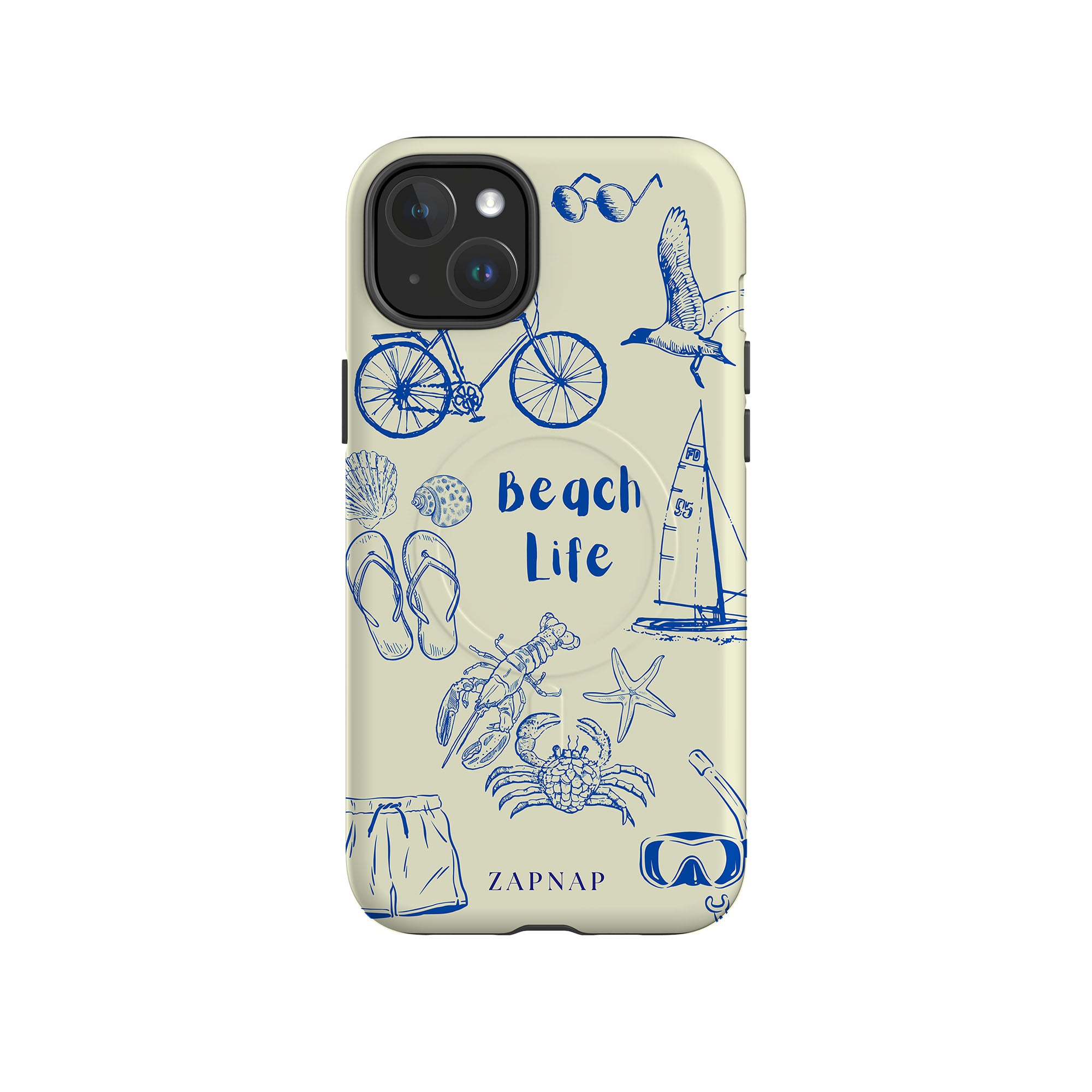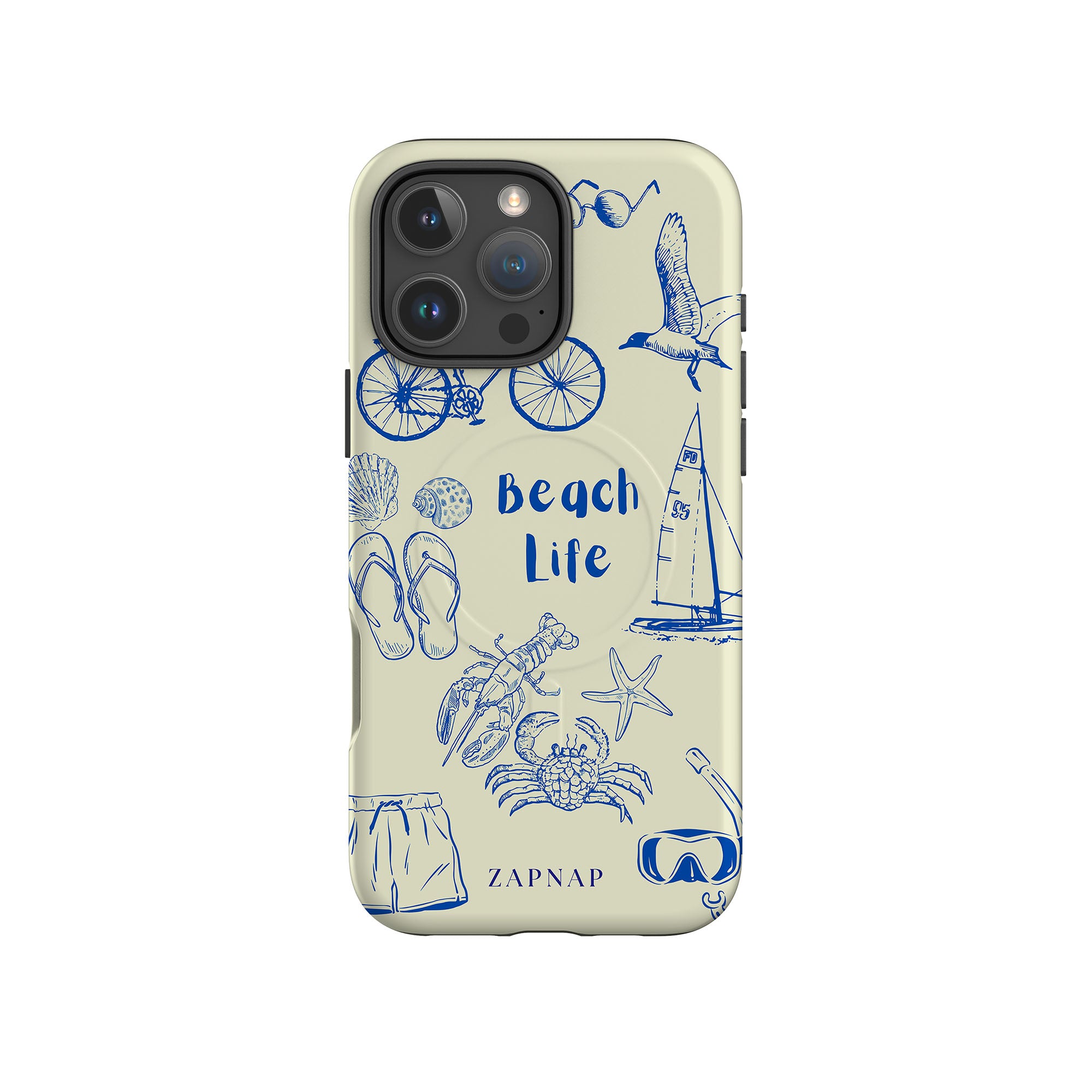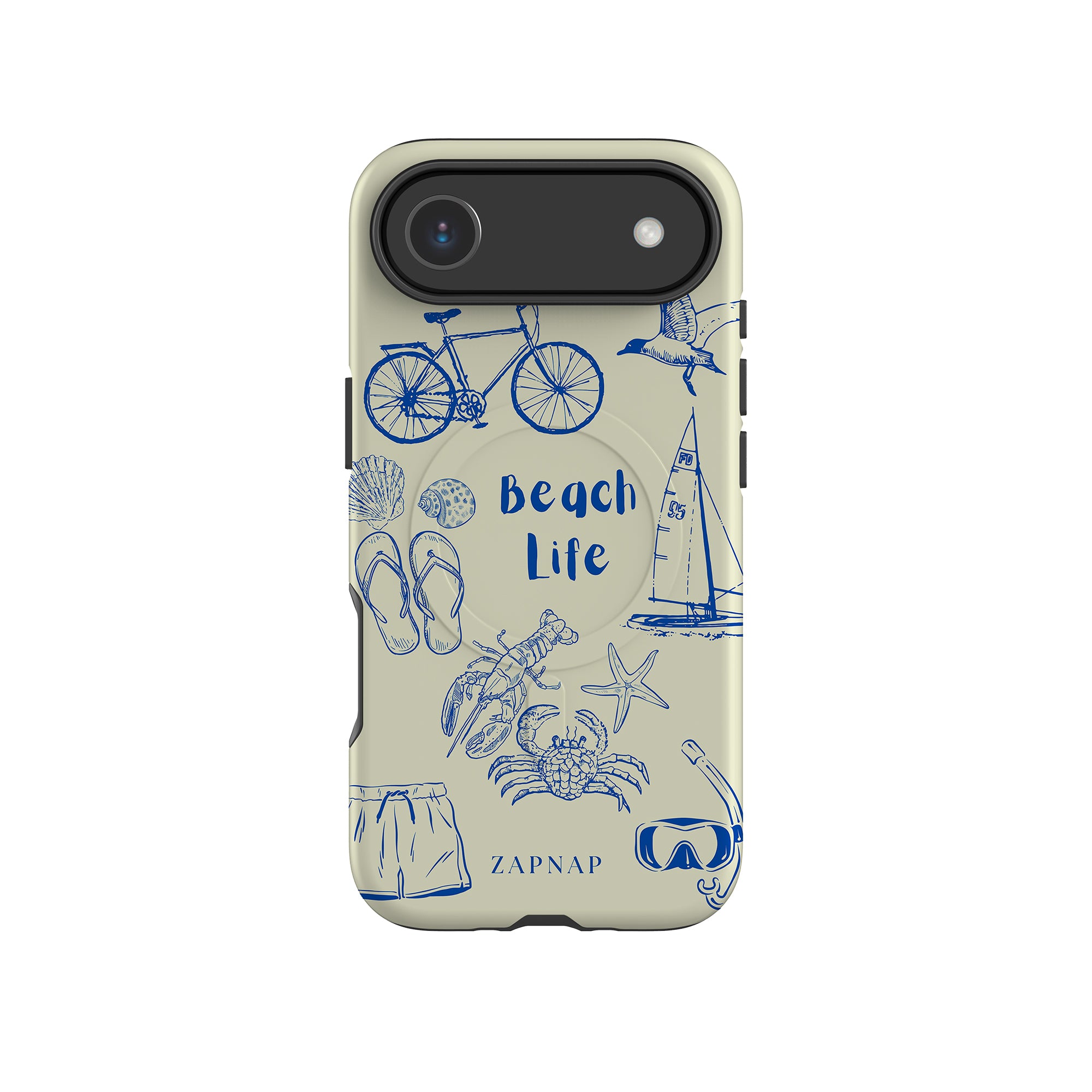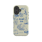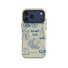 This delightful design celebrates the charm of beach life with intricate, hand-drawn elements like seashells, flip-flops, crabs, lobsters, and a sailboat, set against a light and airy backdrop. The addition of sunglasses, bicycles, and snorkeling gear embodies the adventurous spirit of coastal exploration. Whether it’s a leisurely day by the water or a vibrant beach adventure, this design captures the joy and freedom of seaside living.