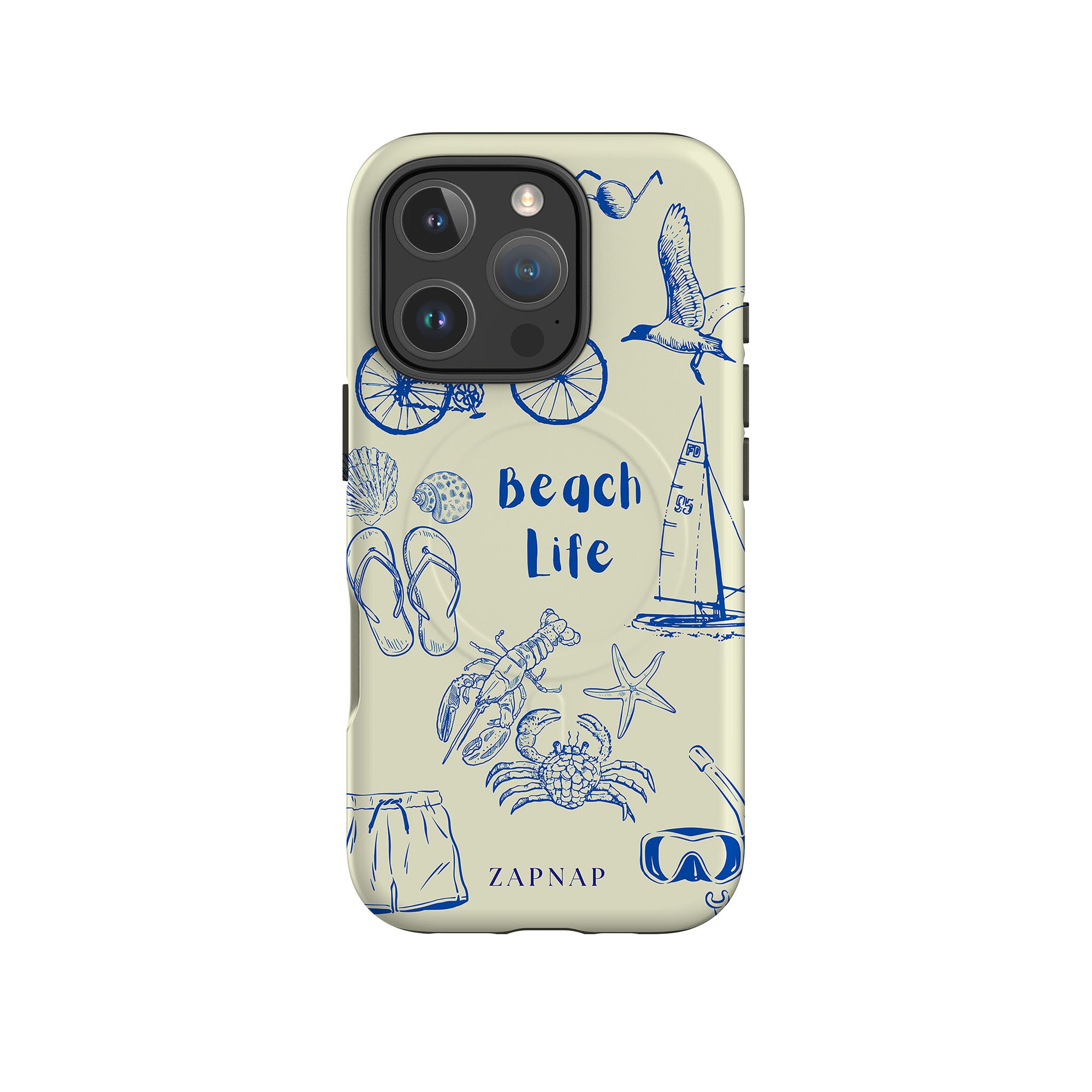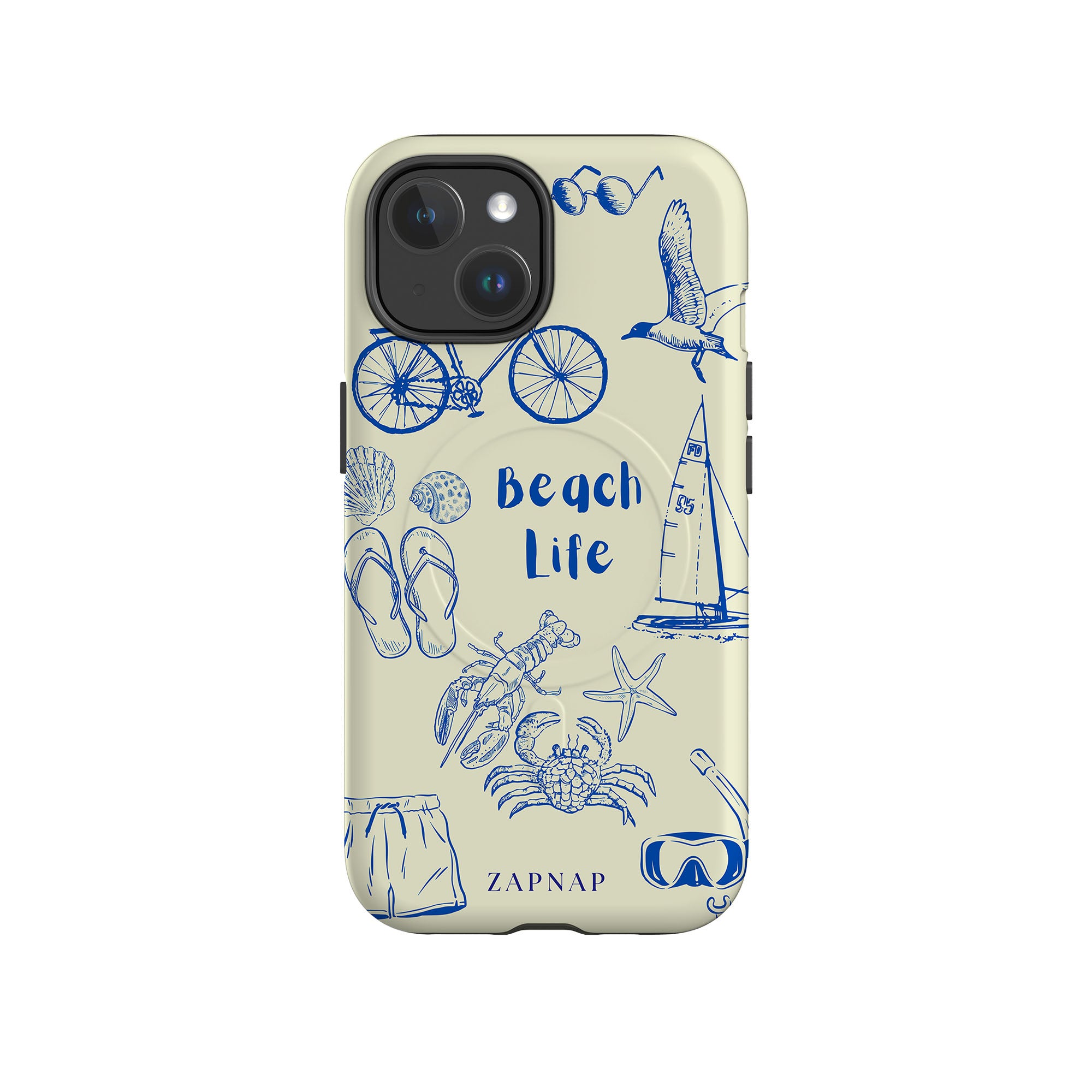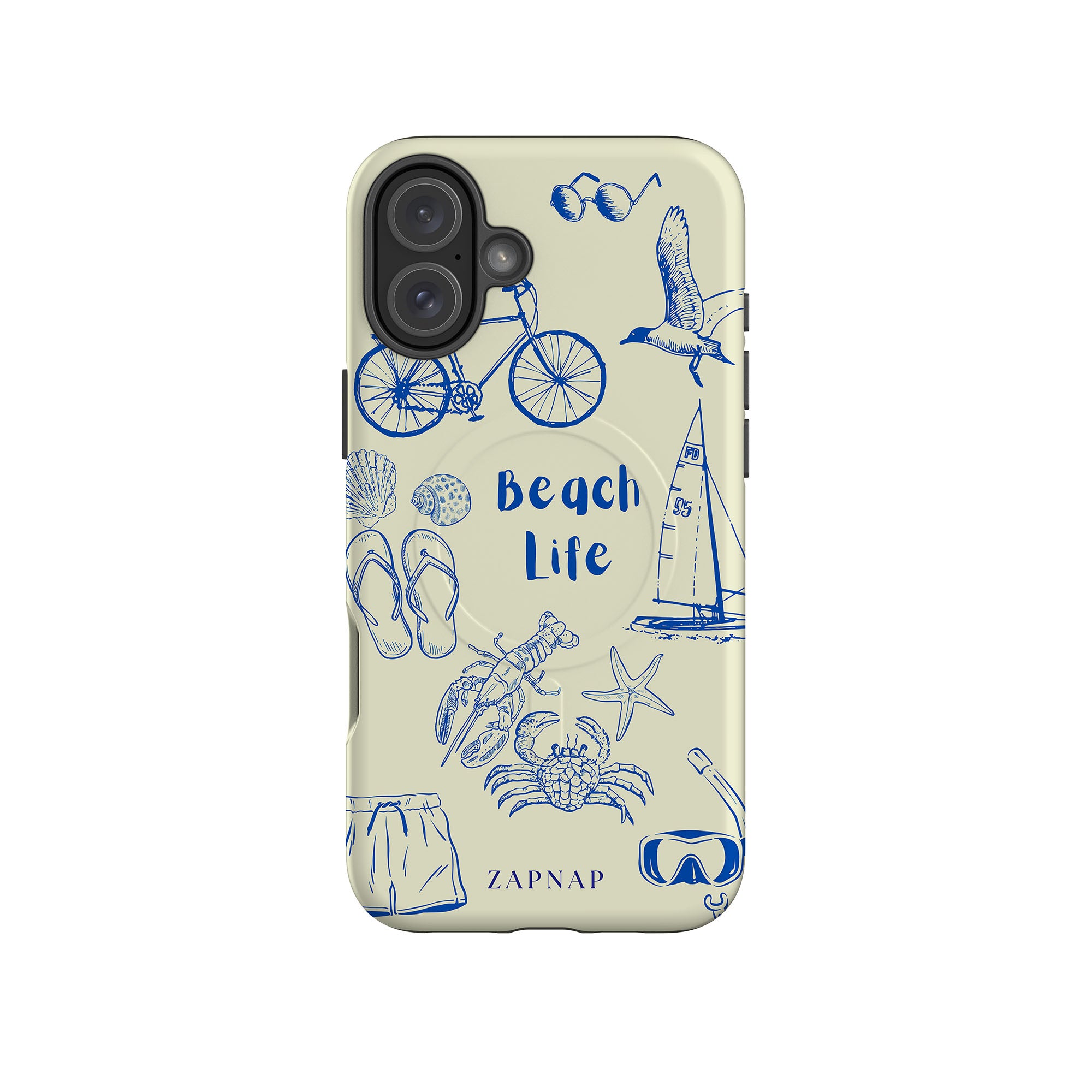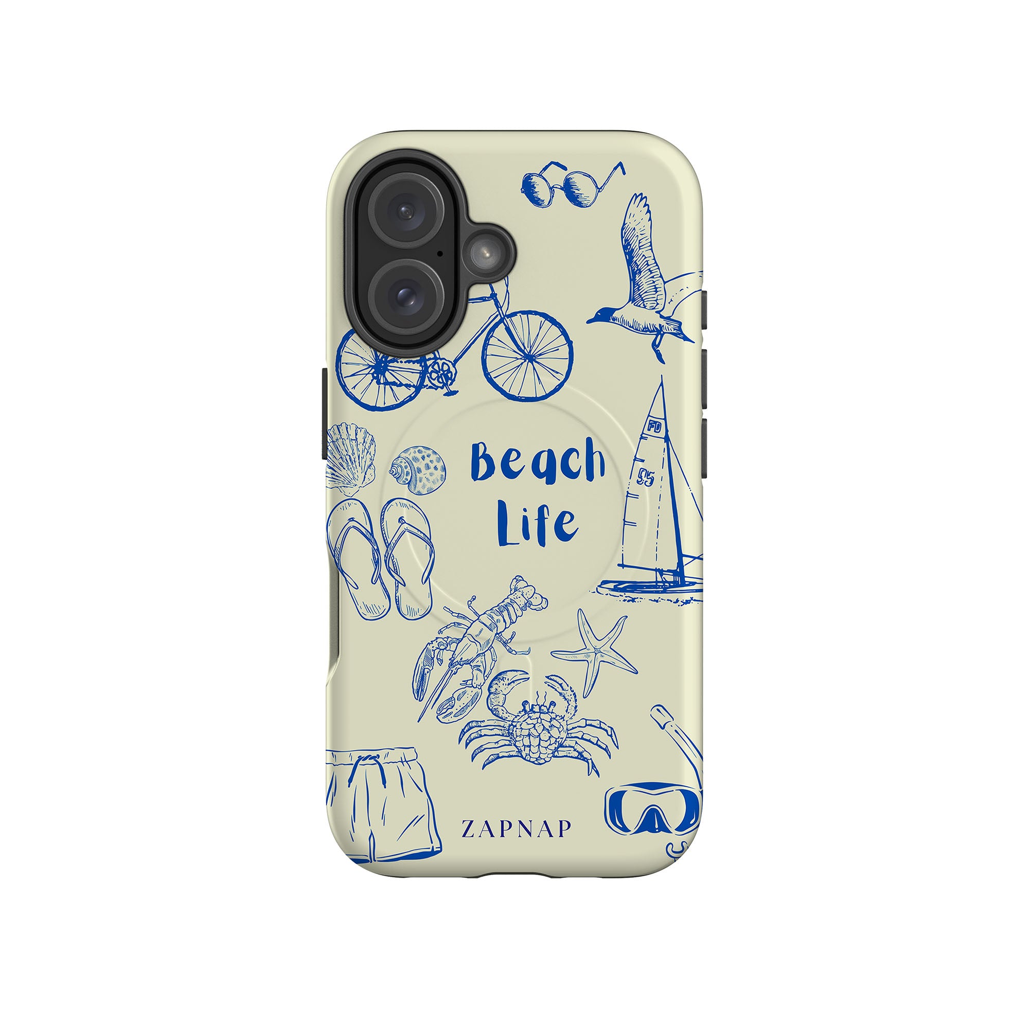This delightful design celebrates the charm of beach life with intricate, hand-drawn elements like seashells, flip-flops, crabs, lobsters, and a sailboat, set against a light and airy backdrop. The addition of sunglasses, bicycles, and snorkeling gear embodies the adventurous spirit of coastal exploration. Whether it’s a leisurely day by the water or a vibrant beach adventure, this design captures the joy and freedom of seaside living.