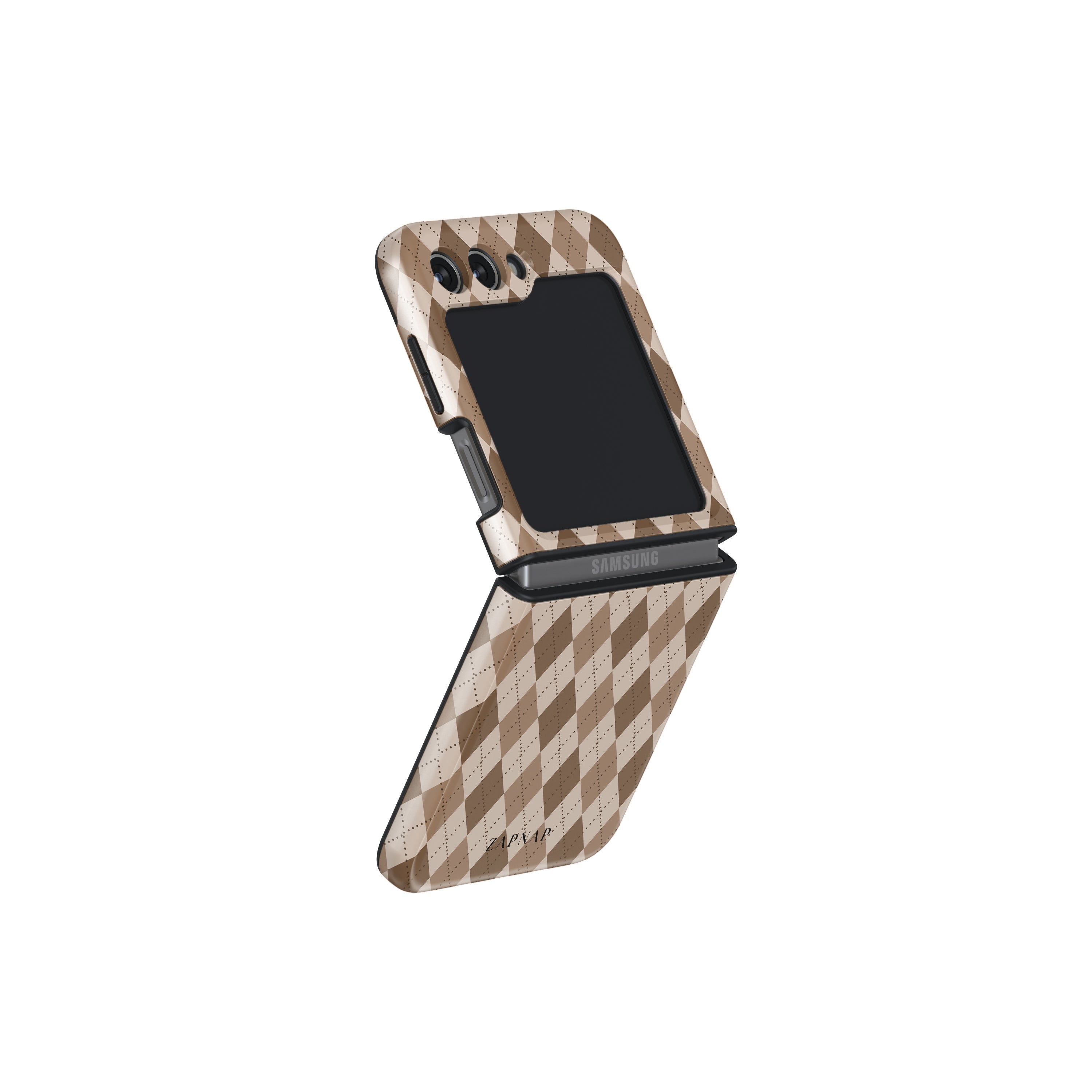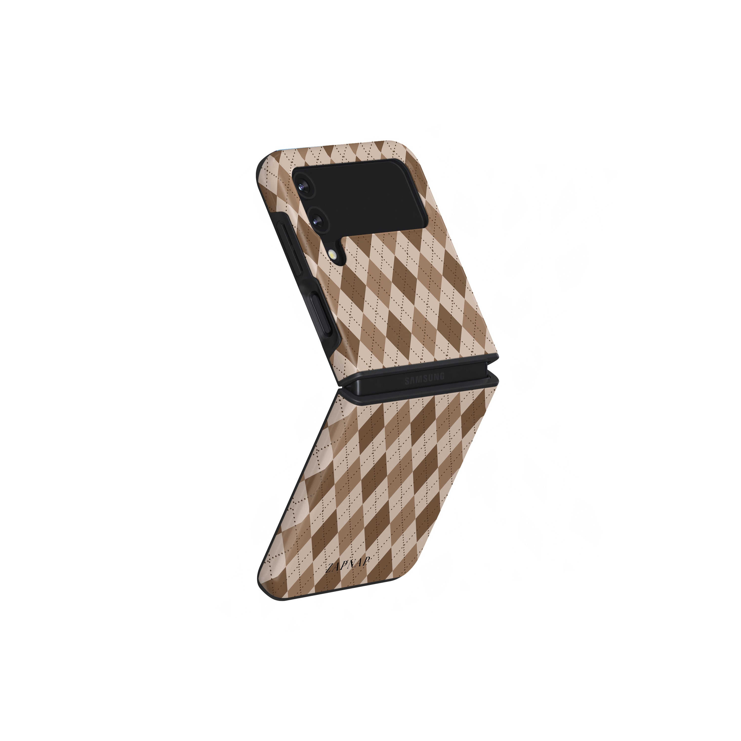 Featuring a warm, earthy argyle pattern in soft beige and brown tones, this phone case brings a sense of comfort and timeless elegance. The classic diamond checkered design is perfect for adding a touch of sophistication to your everyday style, while offering reliable protection for your device. Ideal for those who appreciate vintage-inspired patterns with a cozy, autumnal vibe.