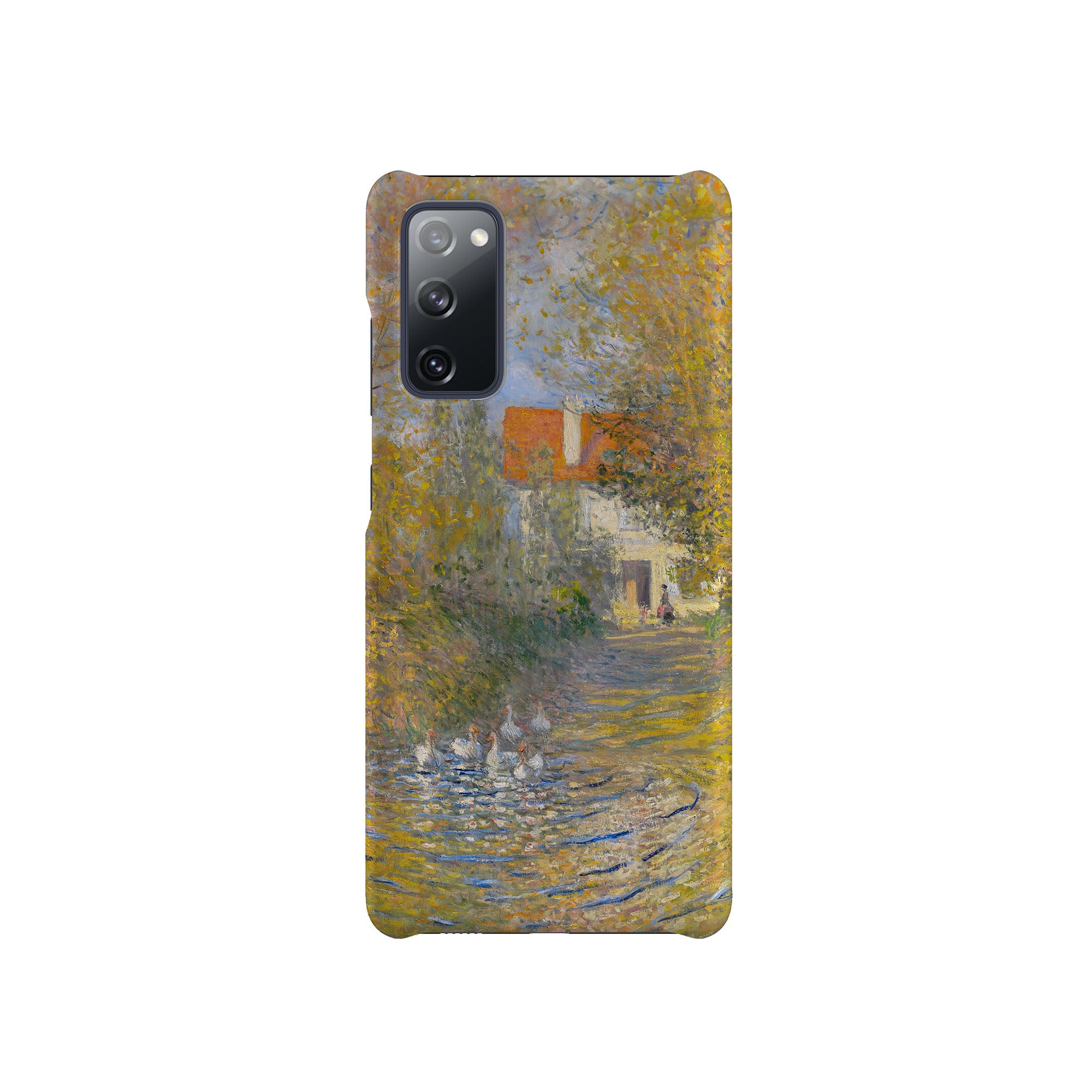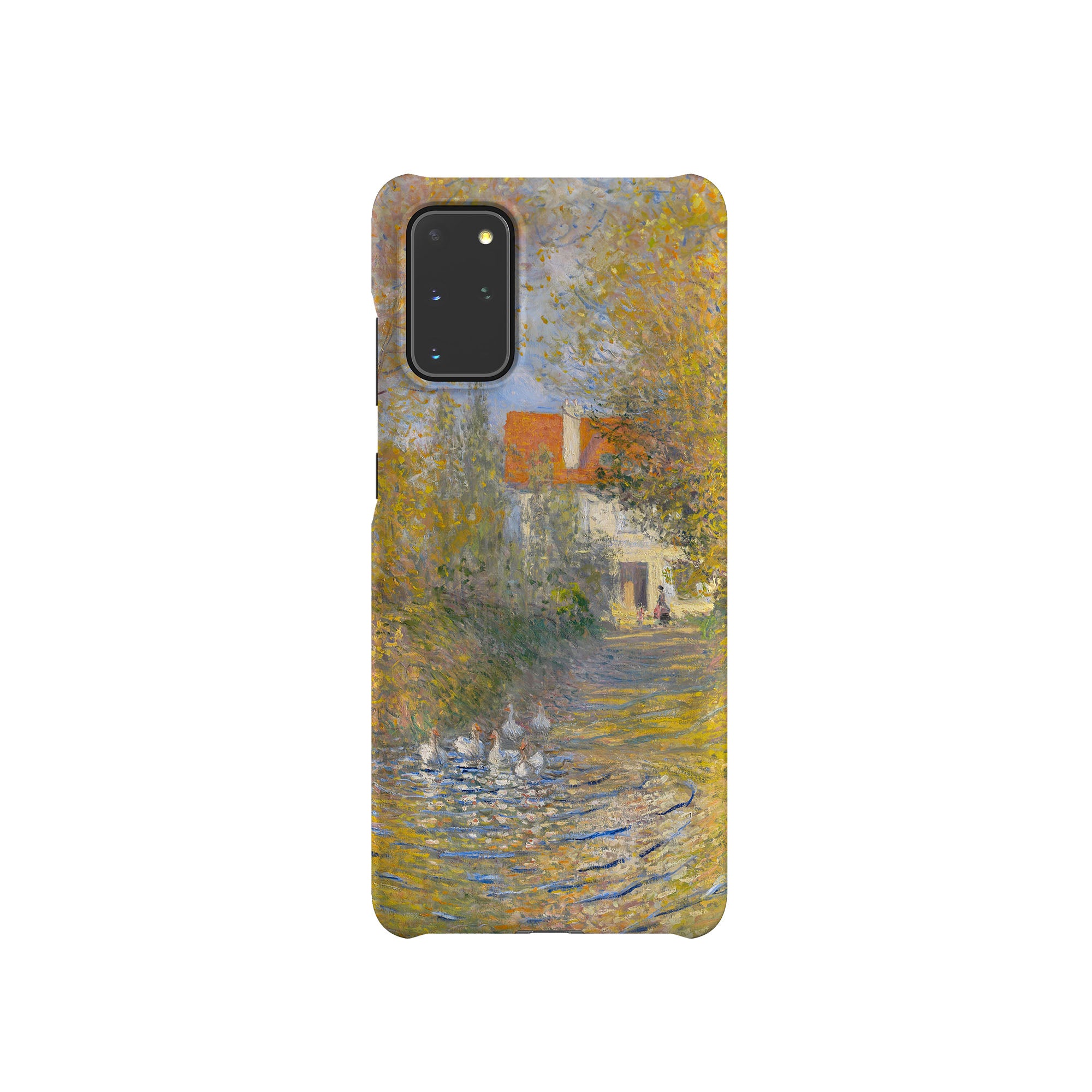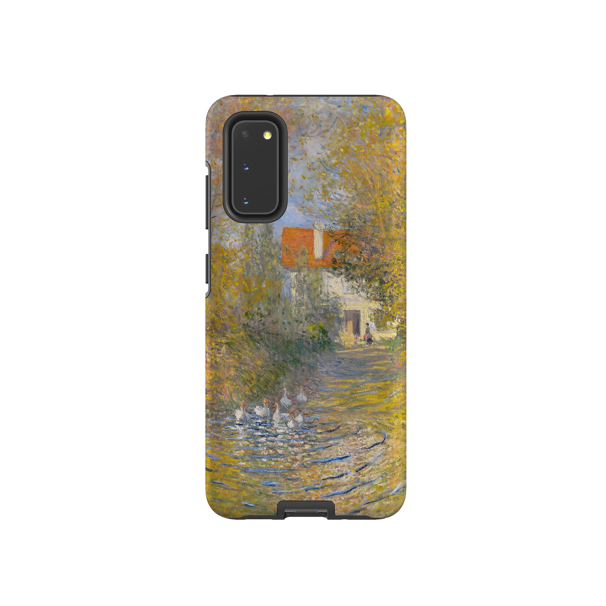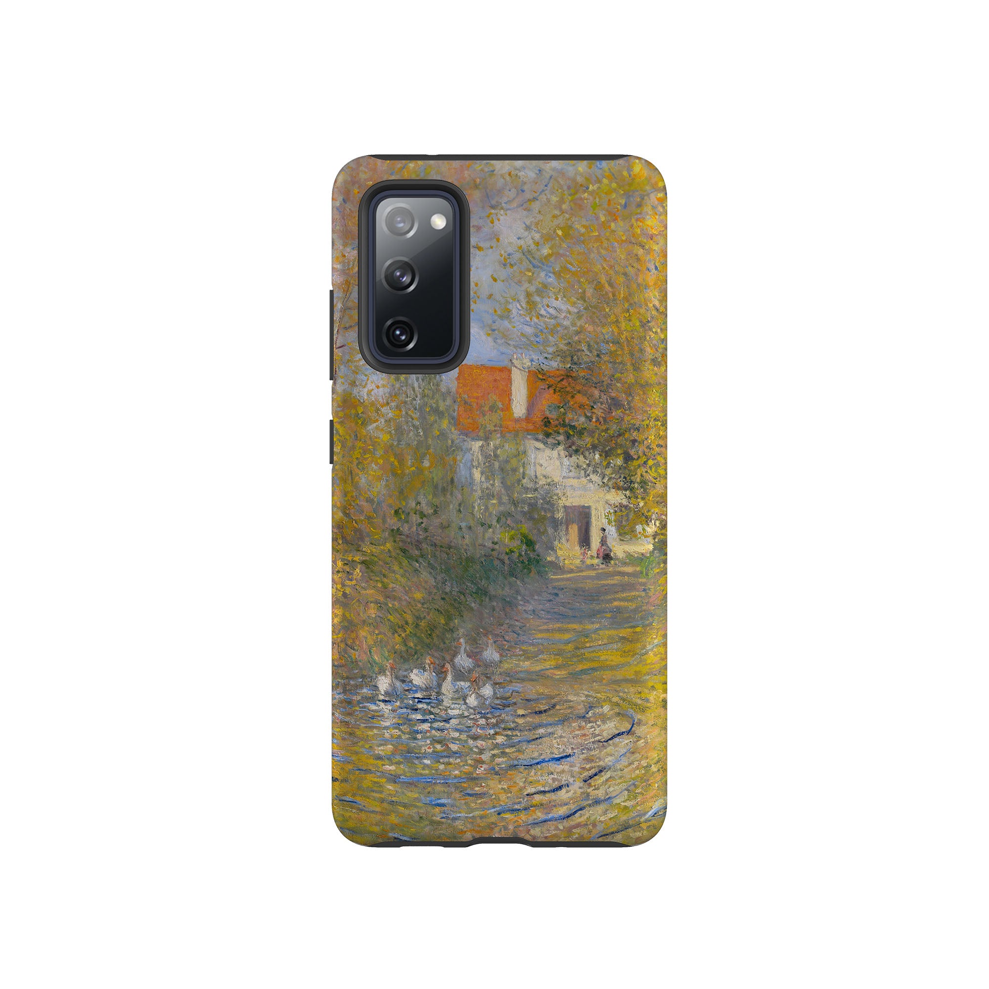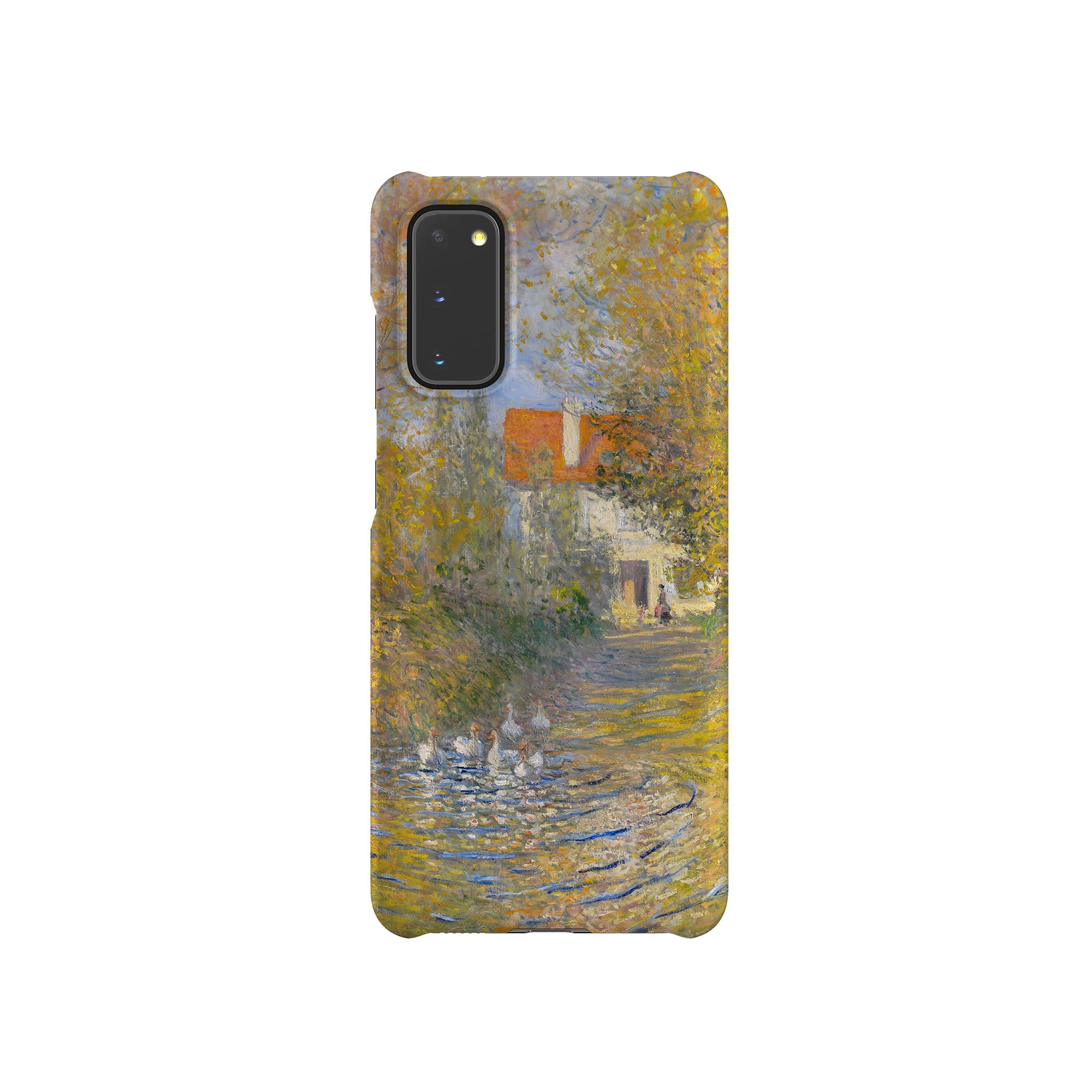 Claude Monet’s “The Geese” depicts a tranquil rural scene with geese swimming in a sunlit pond, surrounded by lush autumn foliage. The soft brushstrokes and warm colors create a peaceful, idyllic atmosphere, capturing the beauty of nature and the serenity of countryside life.