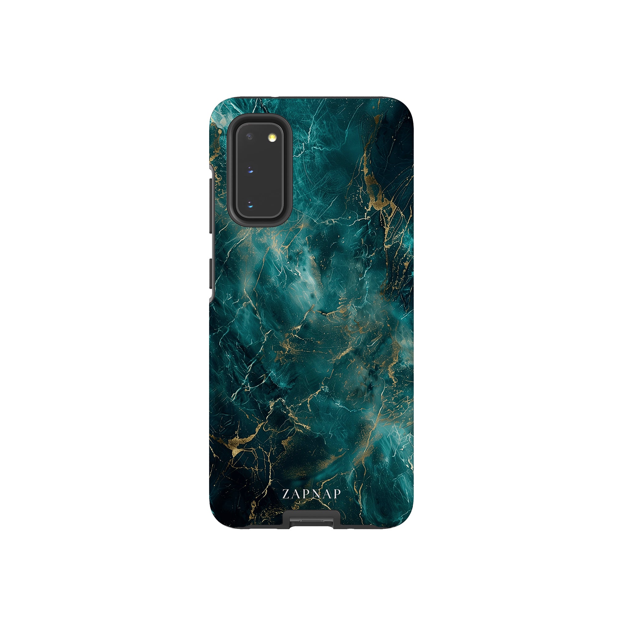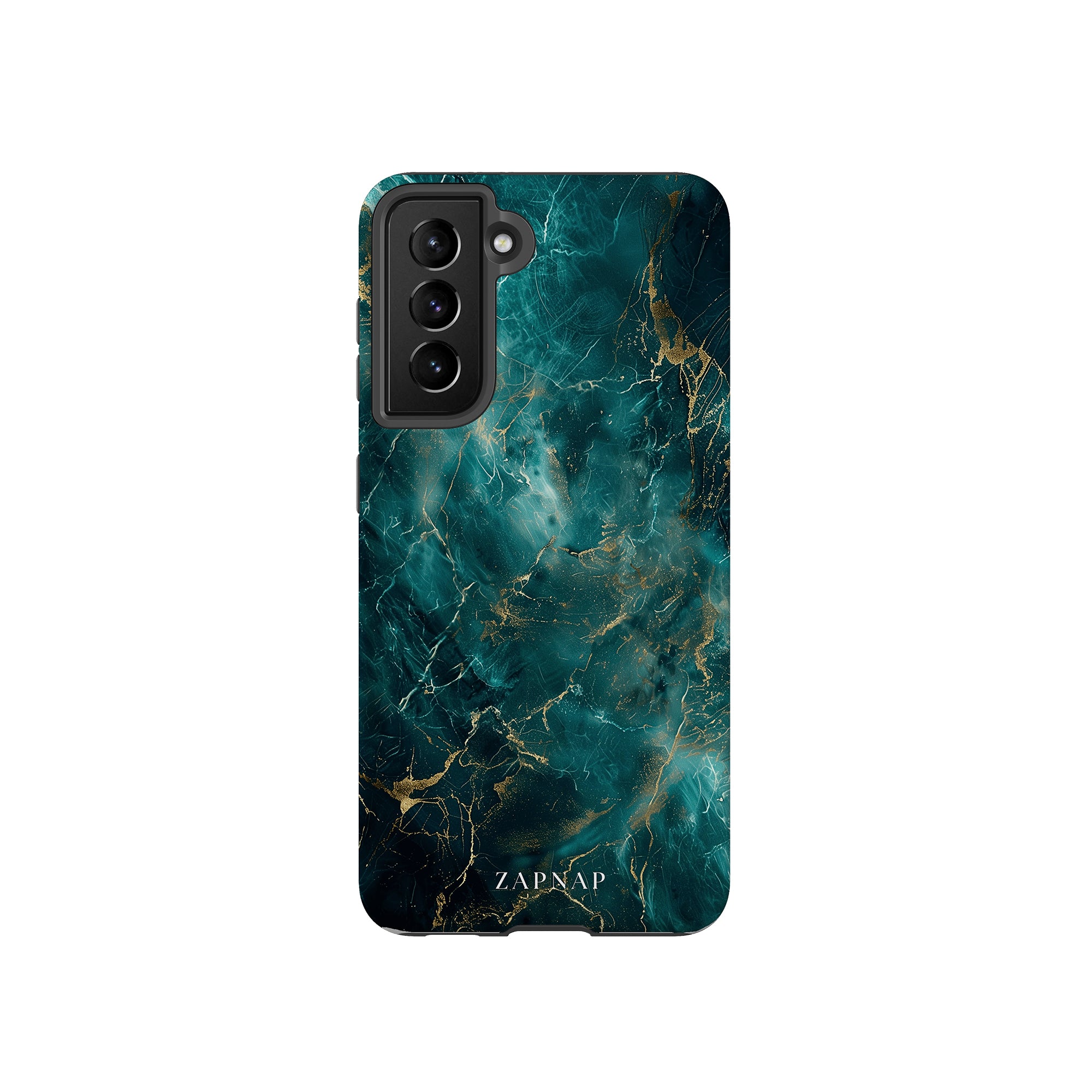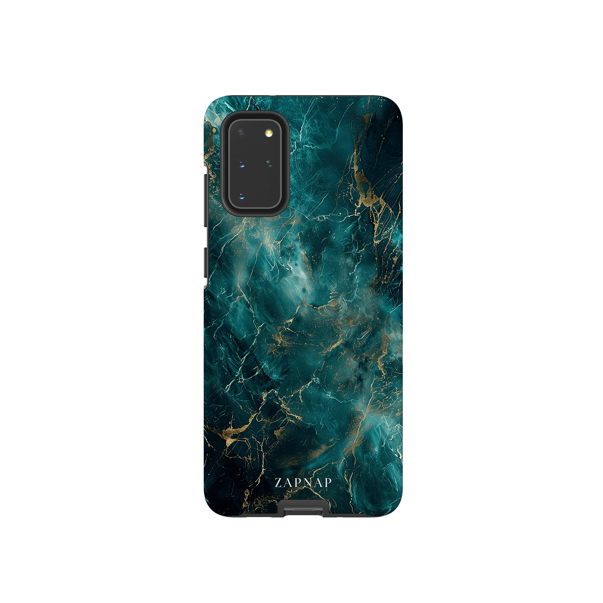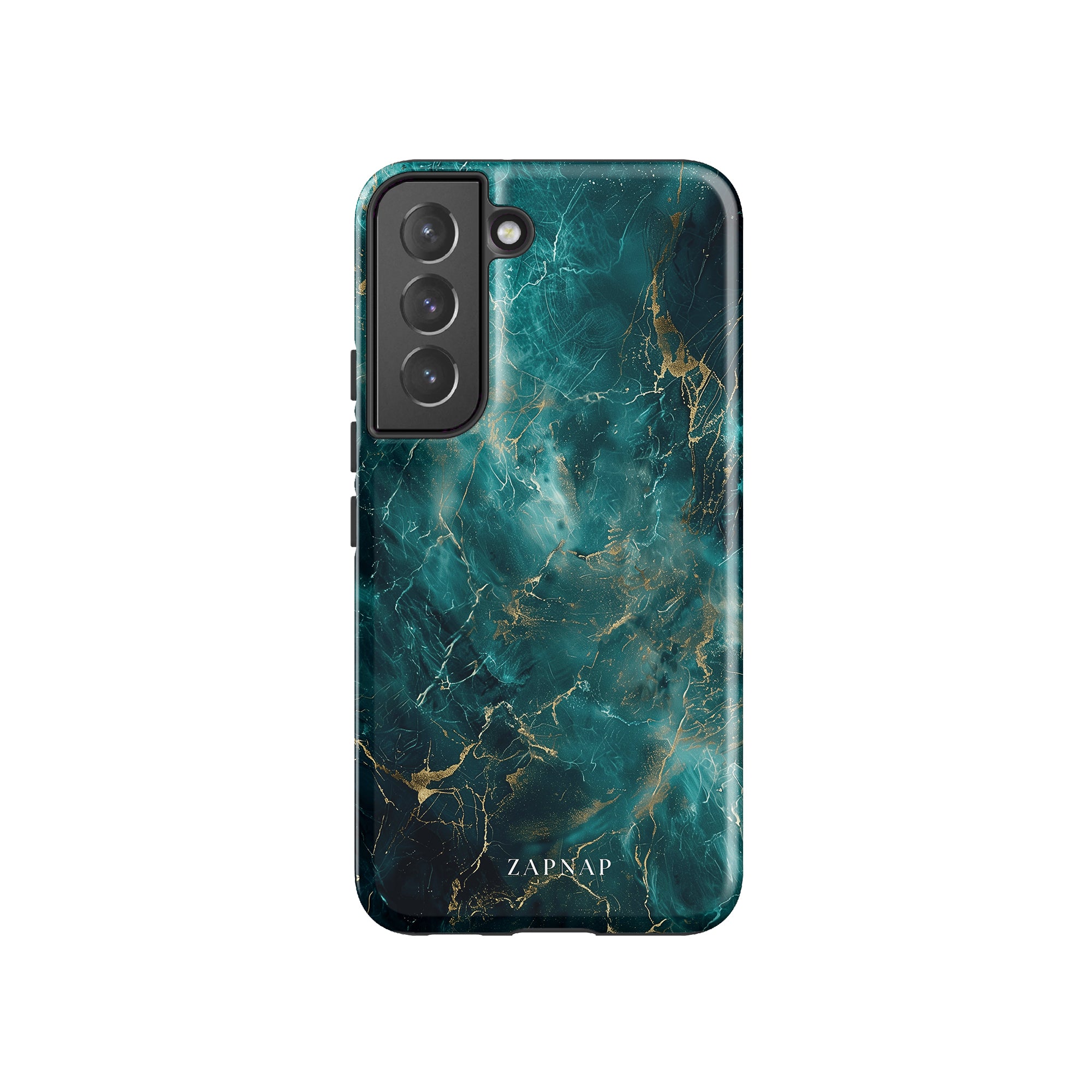 Nebula Streams is a captivating marble design reminiscent of a distant galaxy. Deep teal and turquoise hues swirl together like interstellar clouds, accented by shimmering gold veins that mimic the twinkling of stars. The intricate patterns and flowing forms create a cosmic landscape, evoking the awe and mystery of the universe.