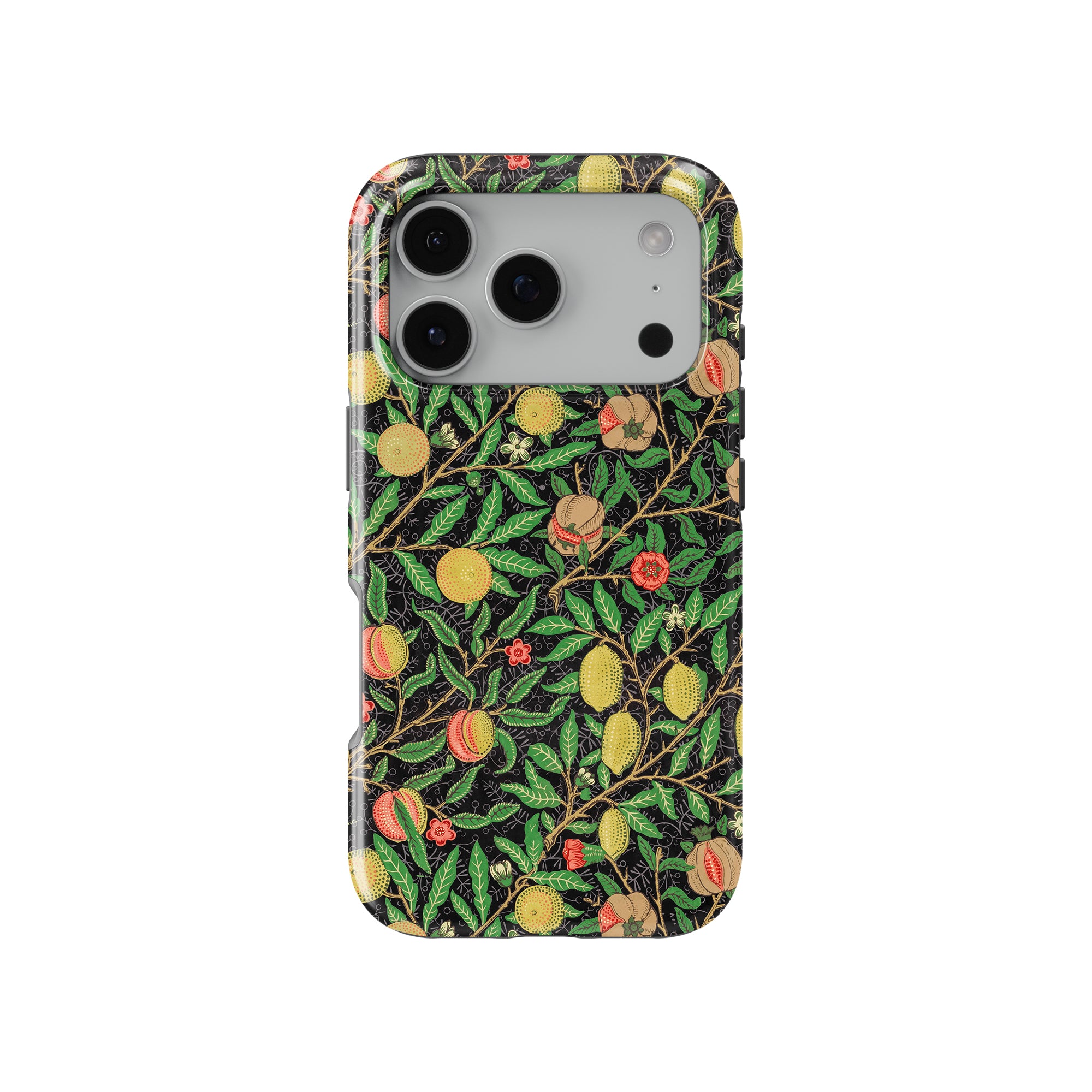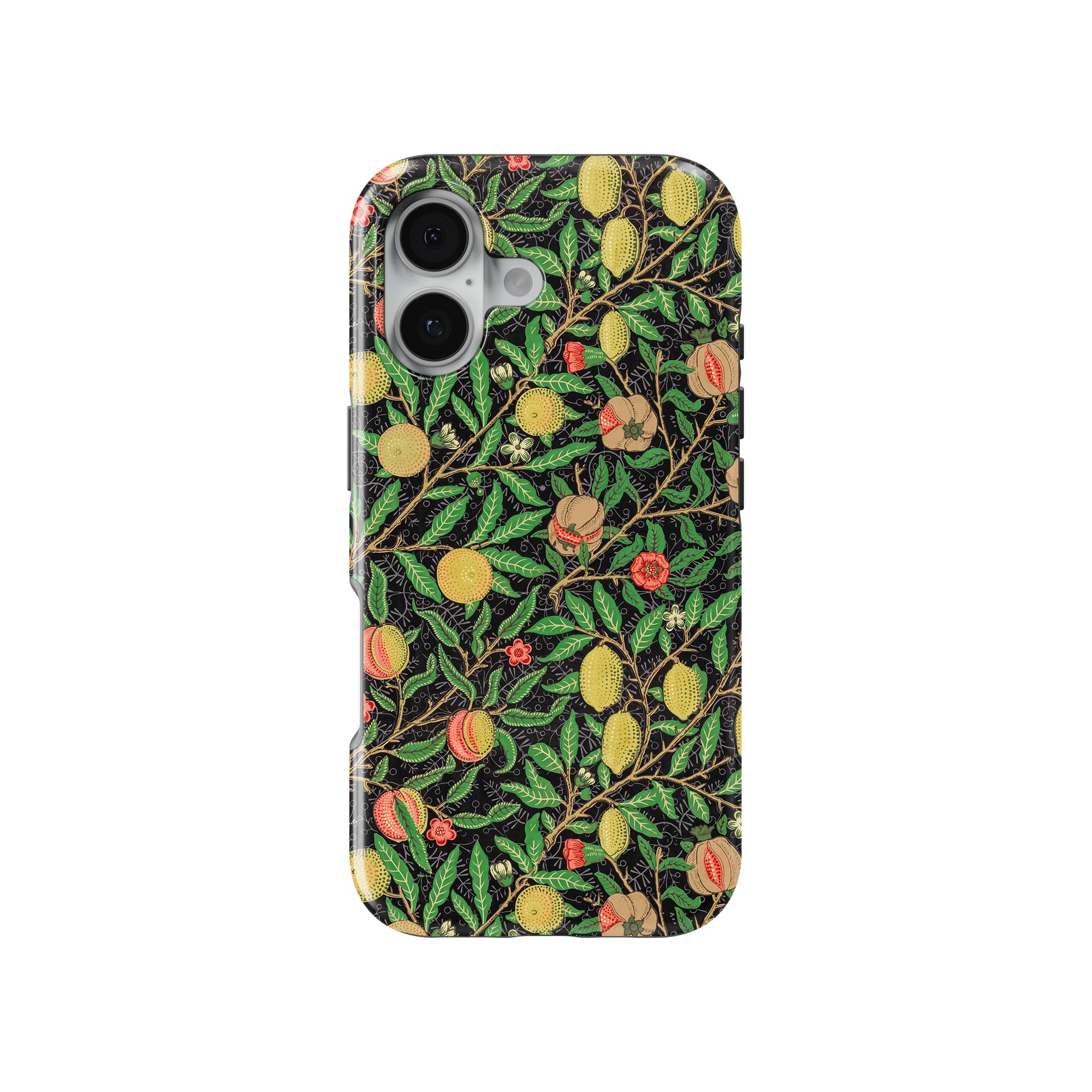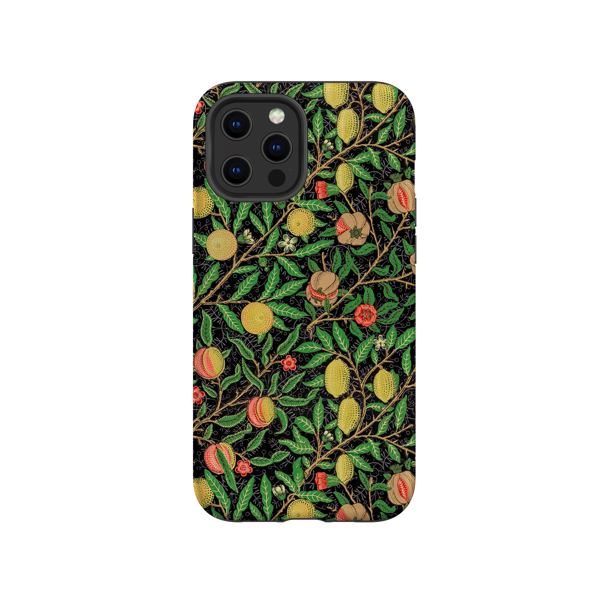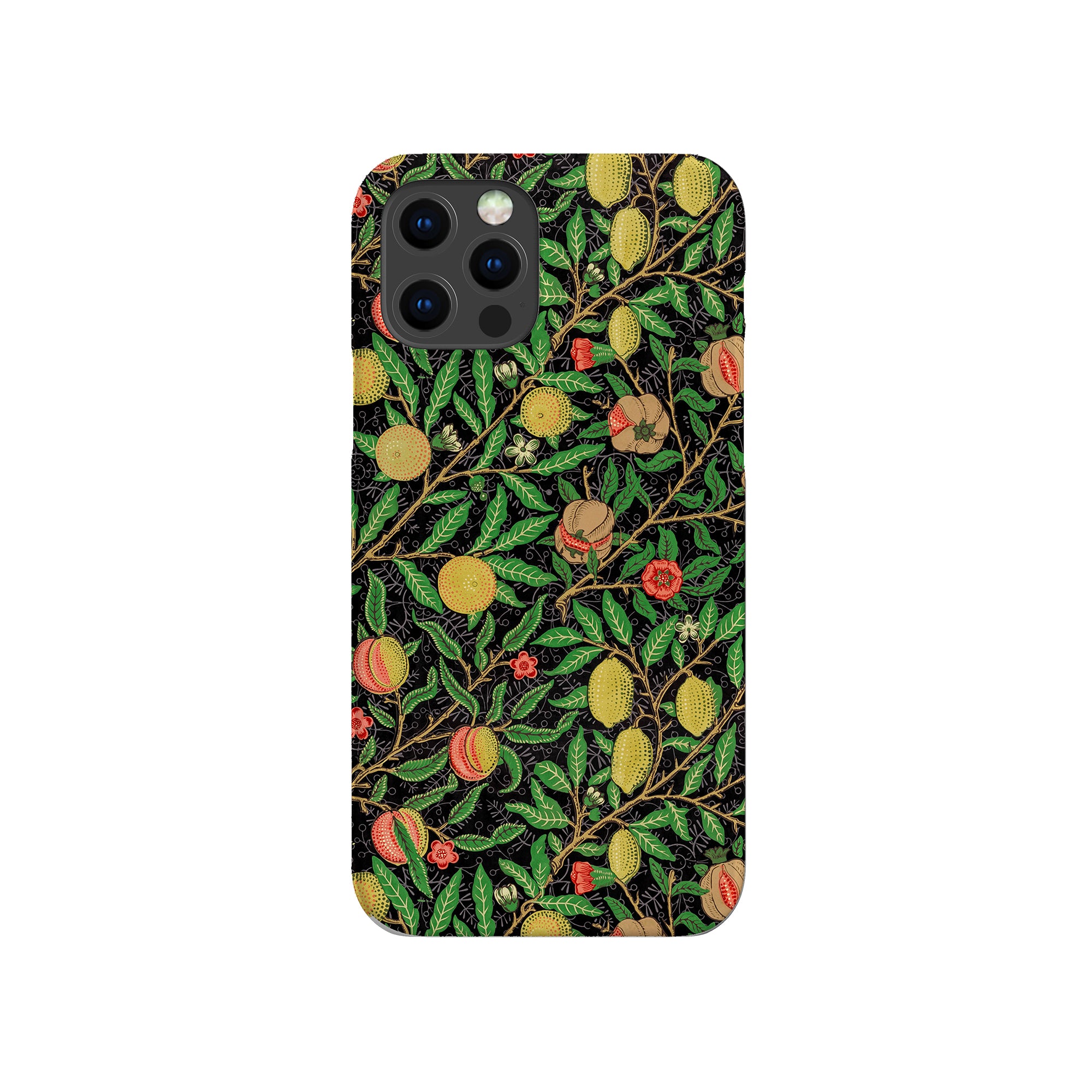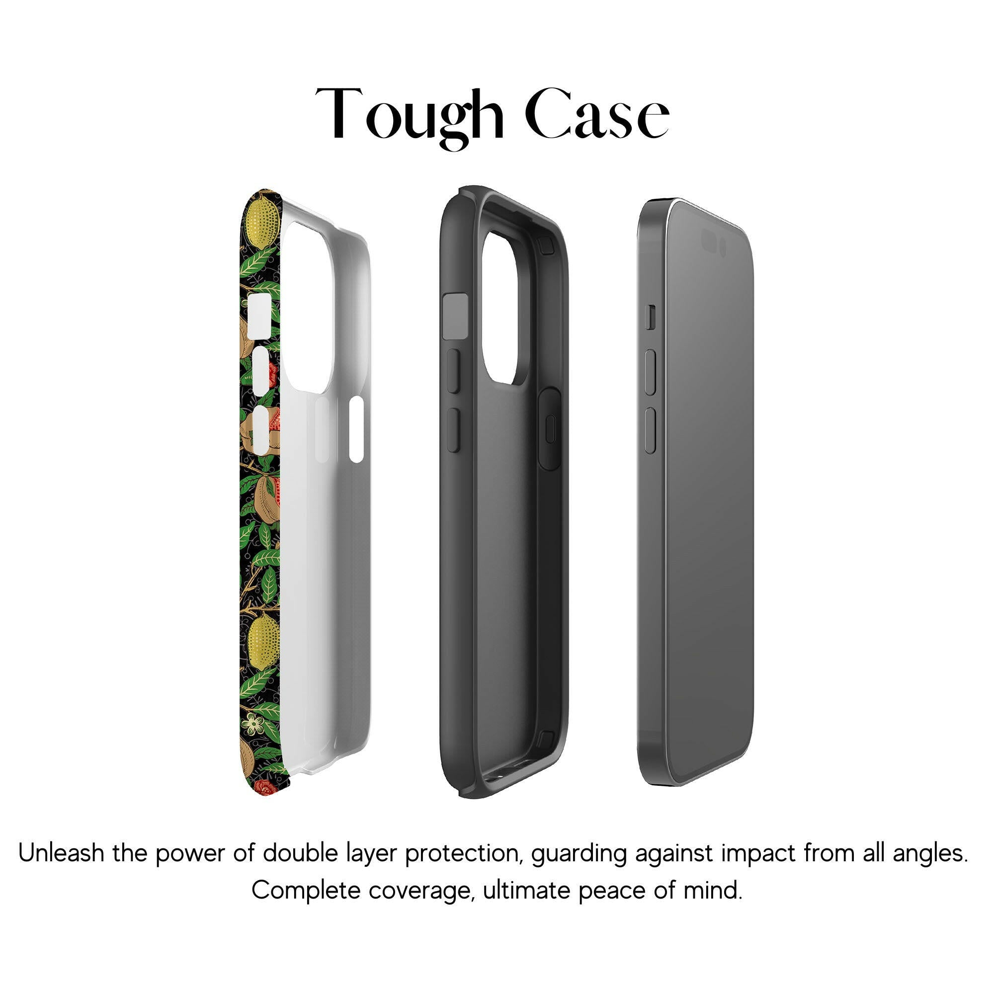 この携帯電話ケースは、ウィリアム・モリスにインスパイアされたデザインの優雅さを体現しており、濃い黒の背景にみずみずしい果物や葉が複雑に織り込まれています。鮮やかな色彩と精巧なアートワークが、時代を超えた洗練された外観を提供します。歴史的な芸術性と大胆な美学を大切にする人々にとって、「オーチャード ナイト」は文化の豊かさと現代的なスタイルのユニークな融合を提供し、デバイスを洗練されたアクセサリーに変えます。