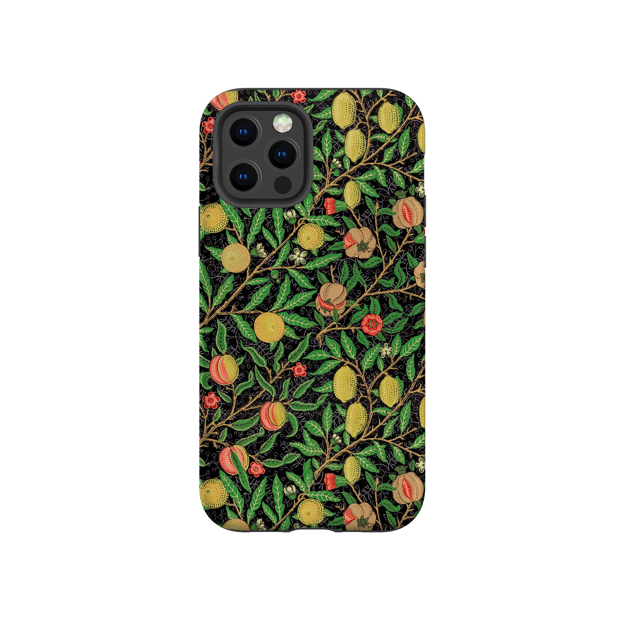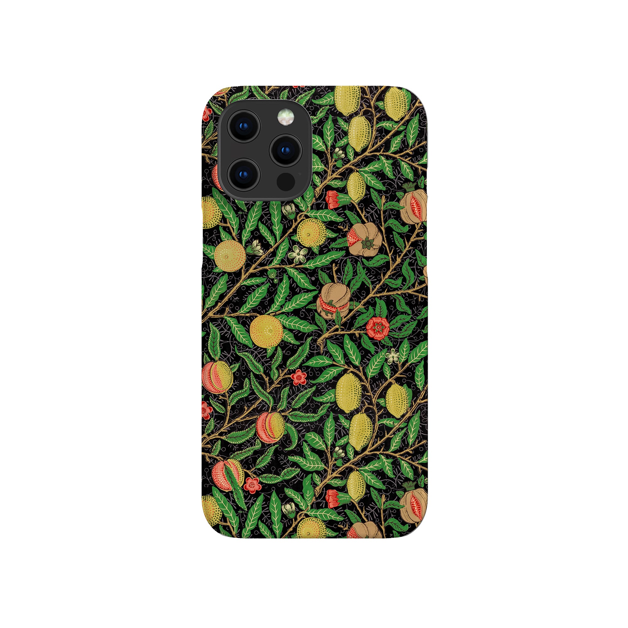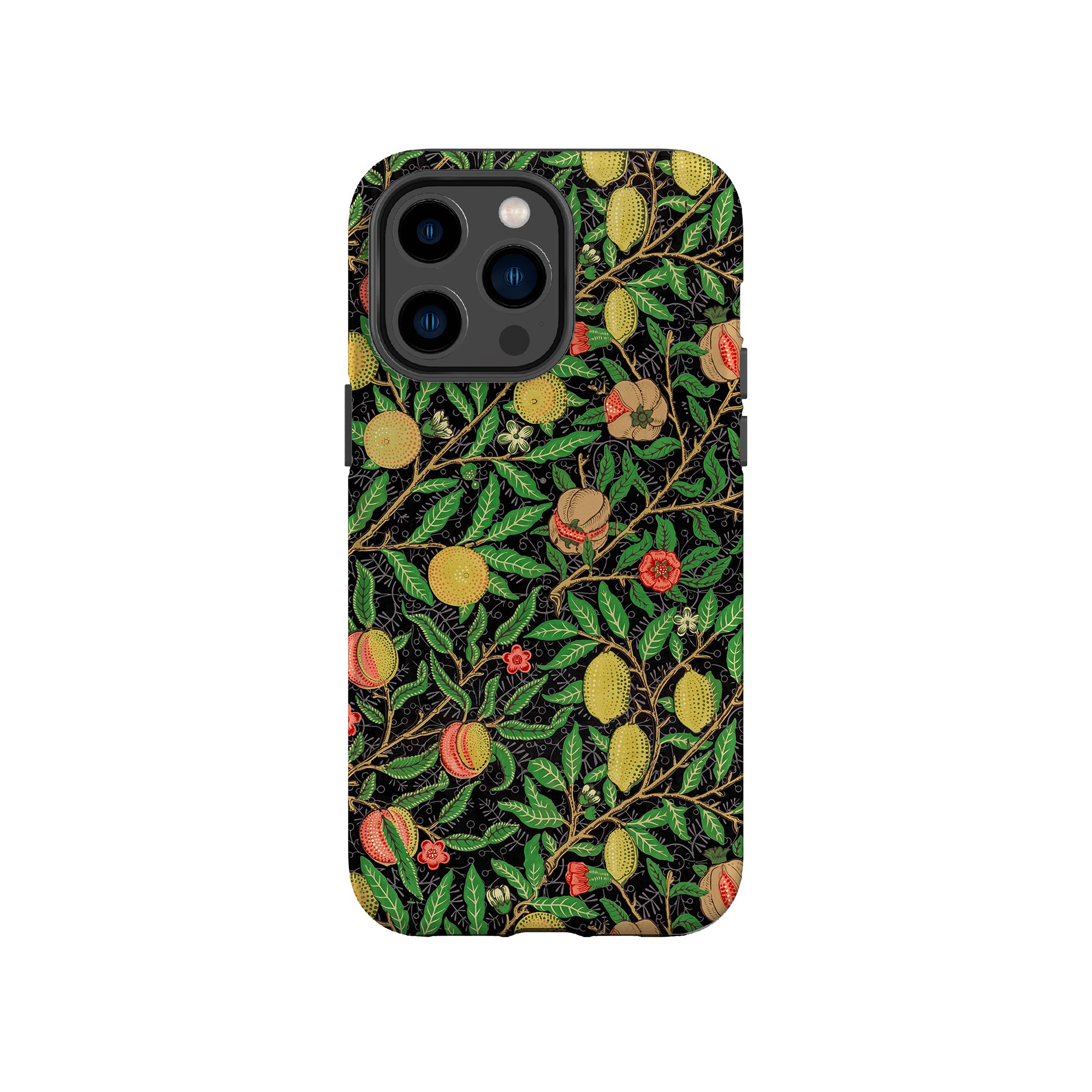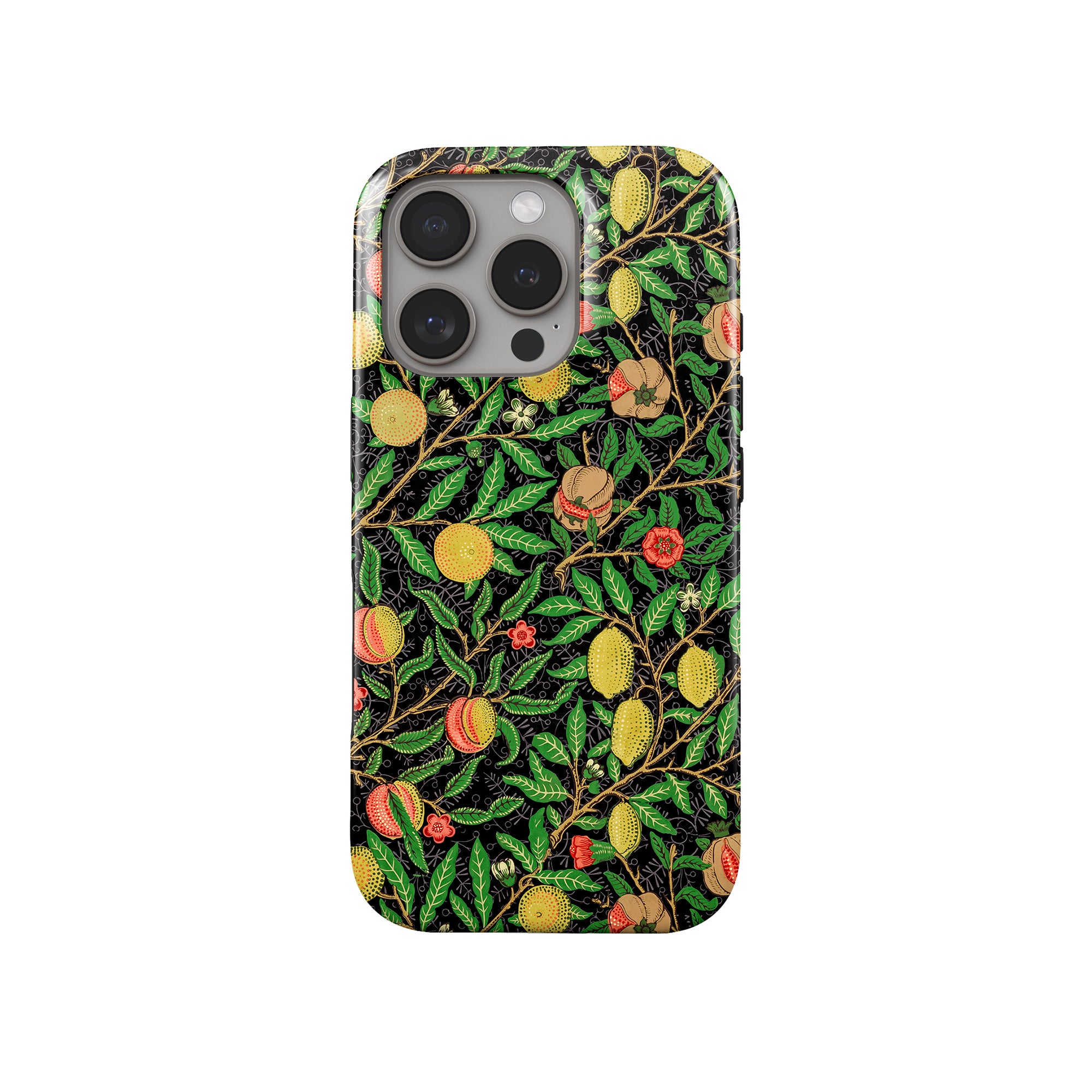 この携帯電話ケースは、ウィリアム・モリスにインスパイアされたデザインの優雅さを体現しており、濃い黒の背景にみずみずしい果物や葉が複雑に織り込まれています。鮮やかな色彩と精巧なアートワークが、時代を超えた洗練された外観を提供します。歴史的な芸術性と大胆な美学を大切にする人々にとって、「オーチャード ナイト」は文化の豊かさと現代的なスタイルのユニークな融合を提供し、デバイスを洗練されたアクセサリーに変えます。