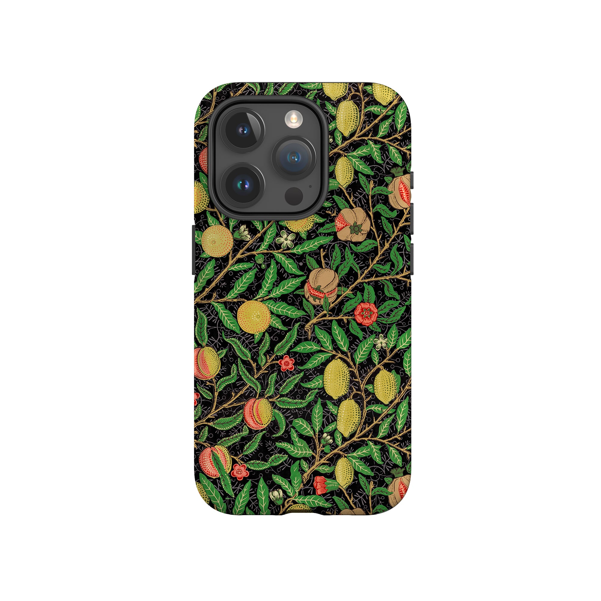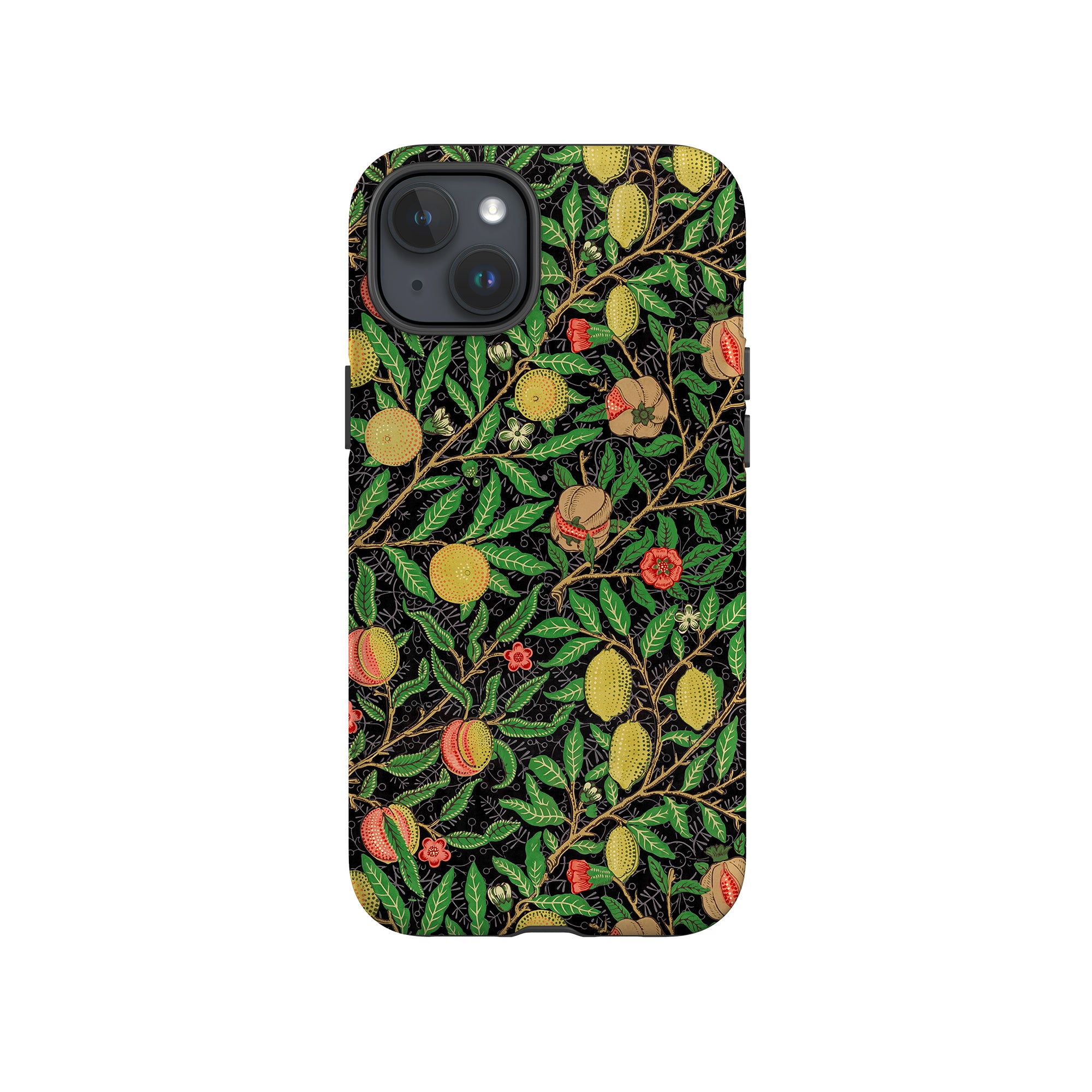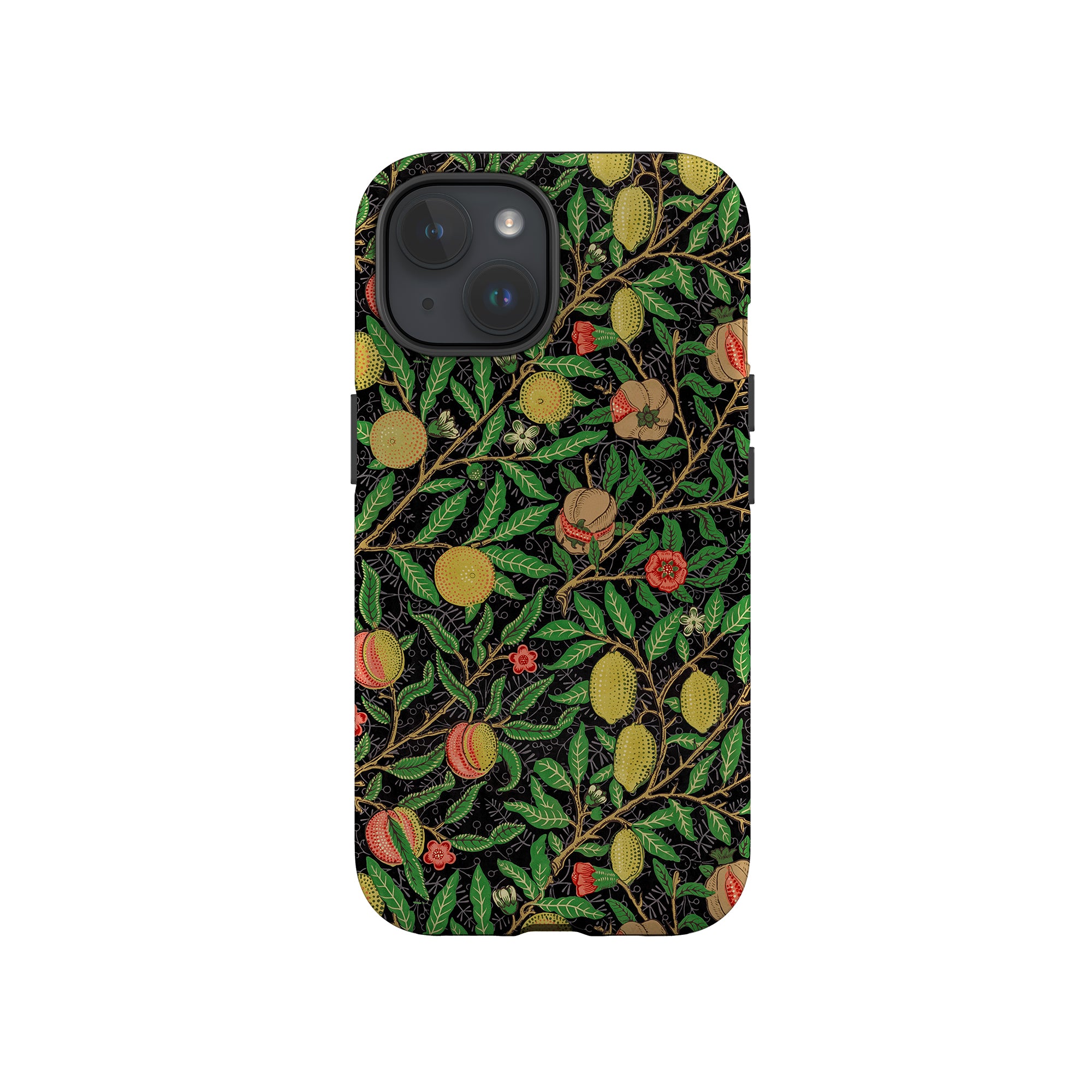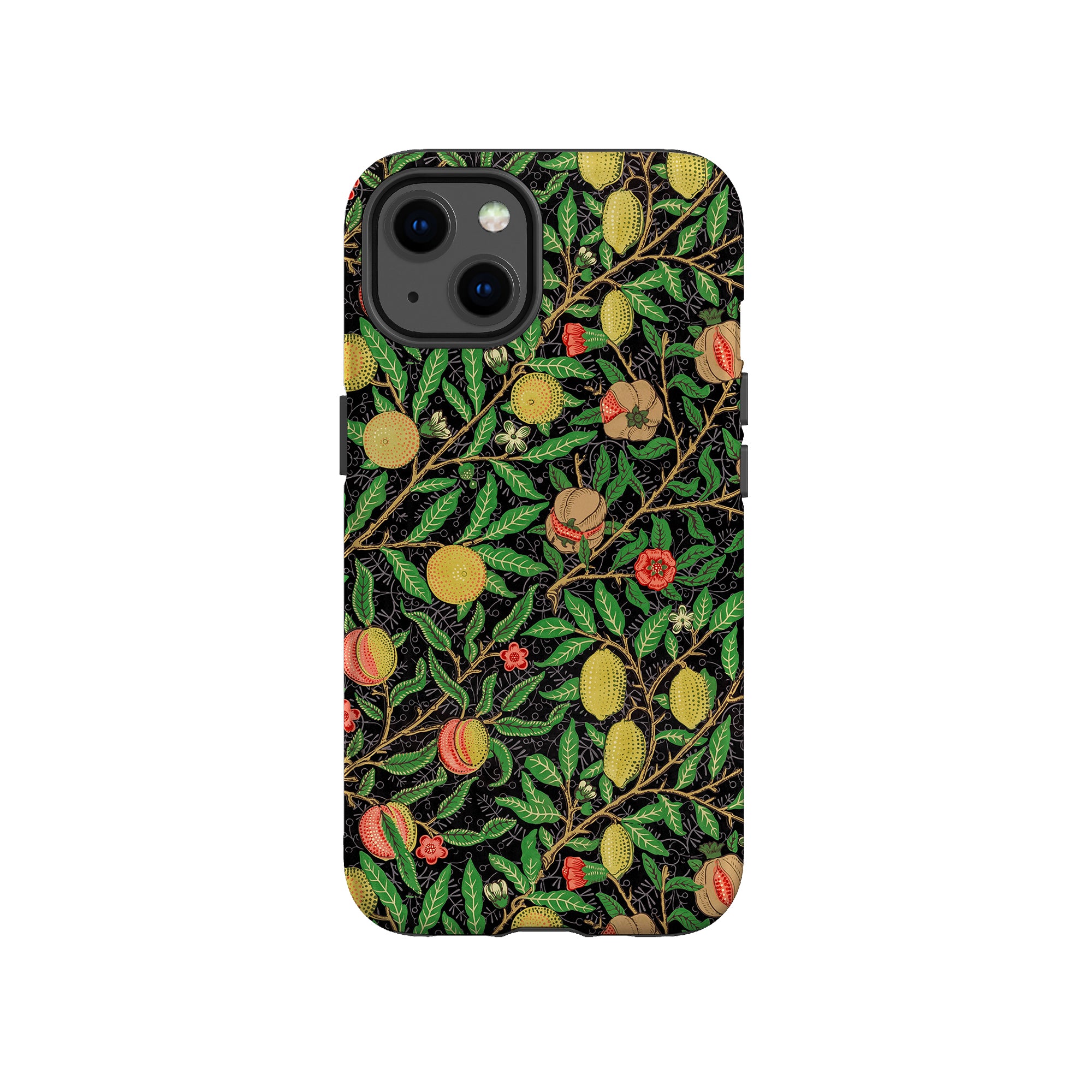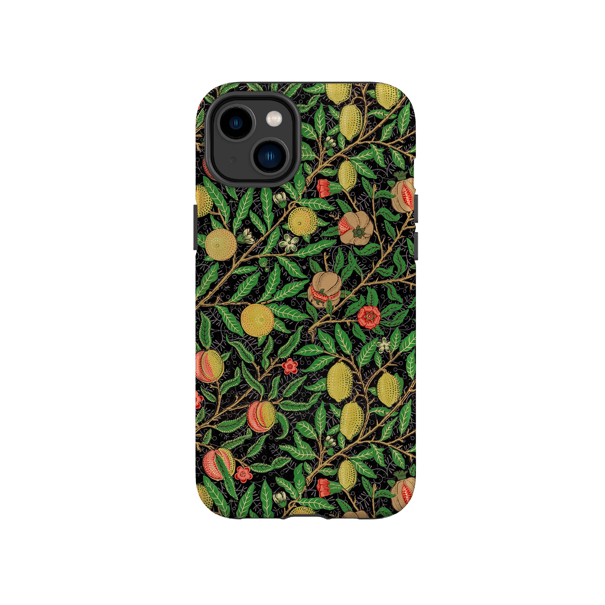 この携帯電話ケースは、ウィリアム・モリスにインスパイアされたデザインの優雅さを体現しており、濃い黒の背景にみずみずしい果物や葉が複雑に織り込まれています。鮮やかな色彩と精巧なアートワークが、時代を超えた洗練された外観を提供します。歴史的な芸術性と大胆な美学を大切にする人々にとって、「オーチャード ナイト」は文化の豊かさと現代的なスタイルのユニークな融合を提供し、デバイスを洗練されたアクセサリーに変えます。