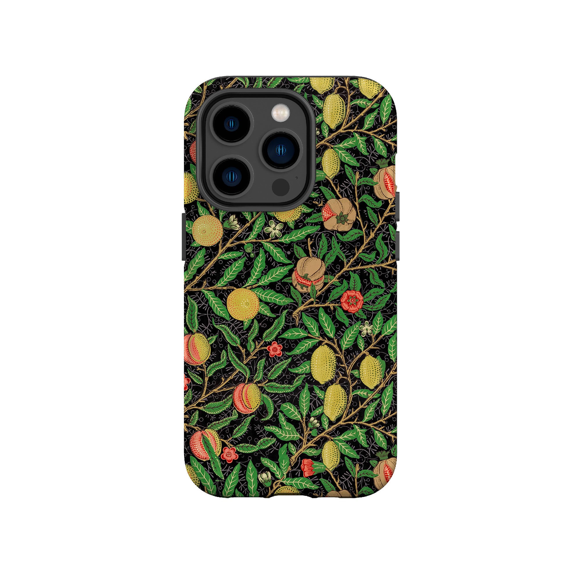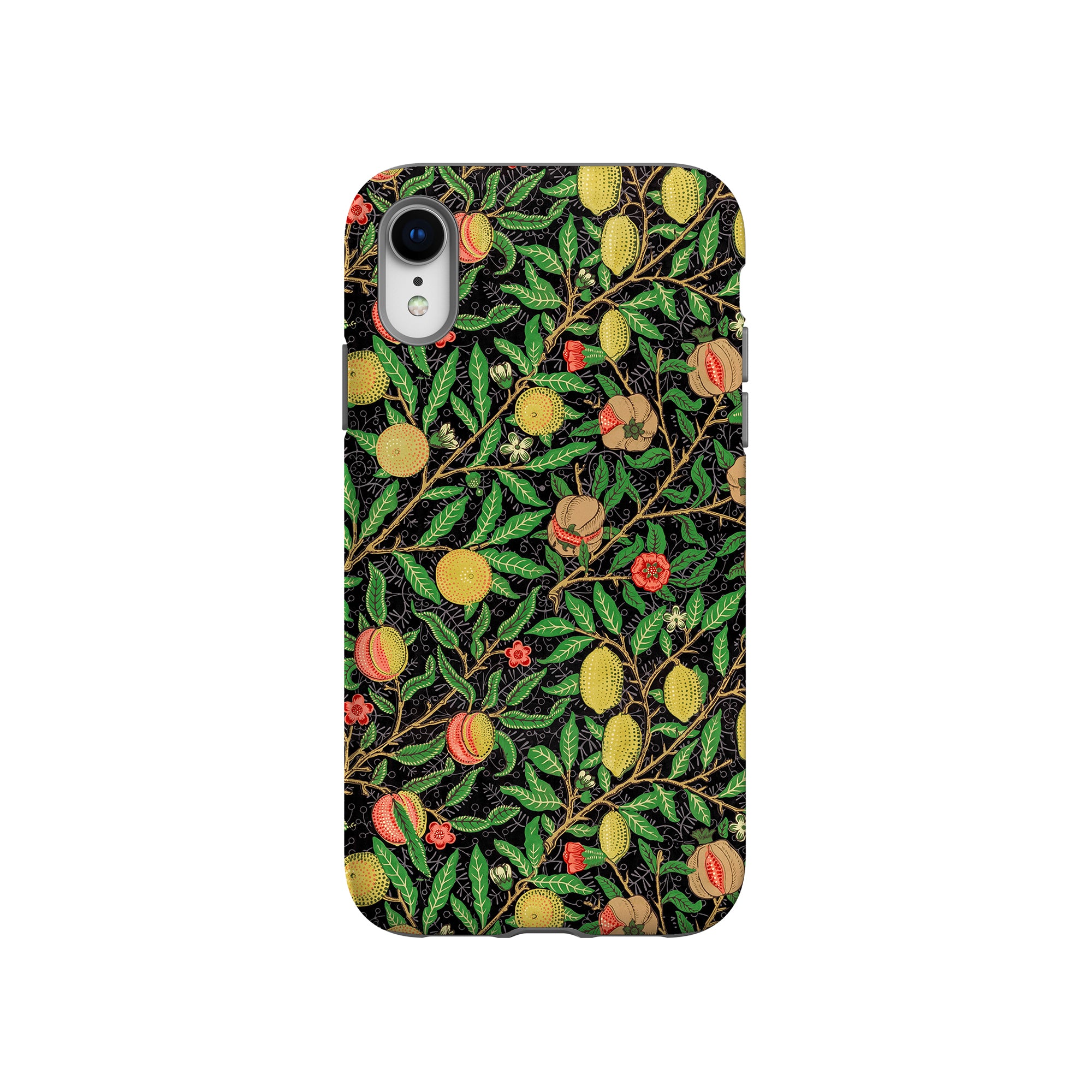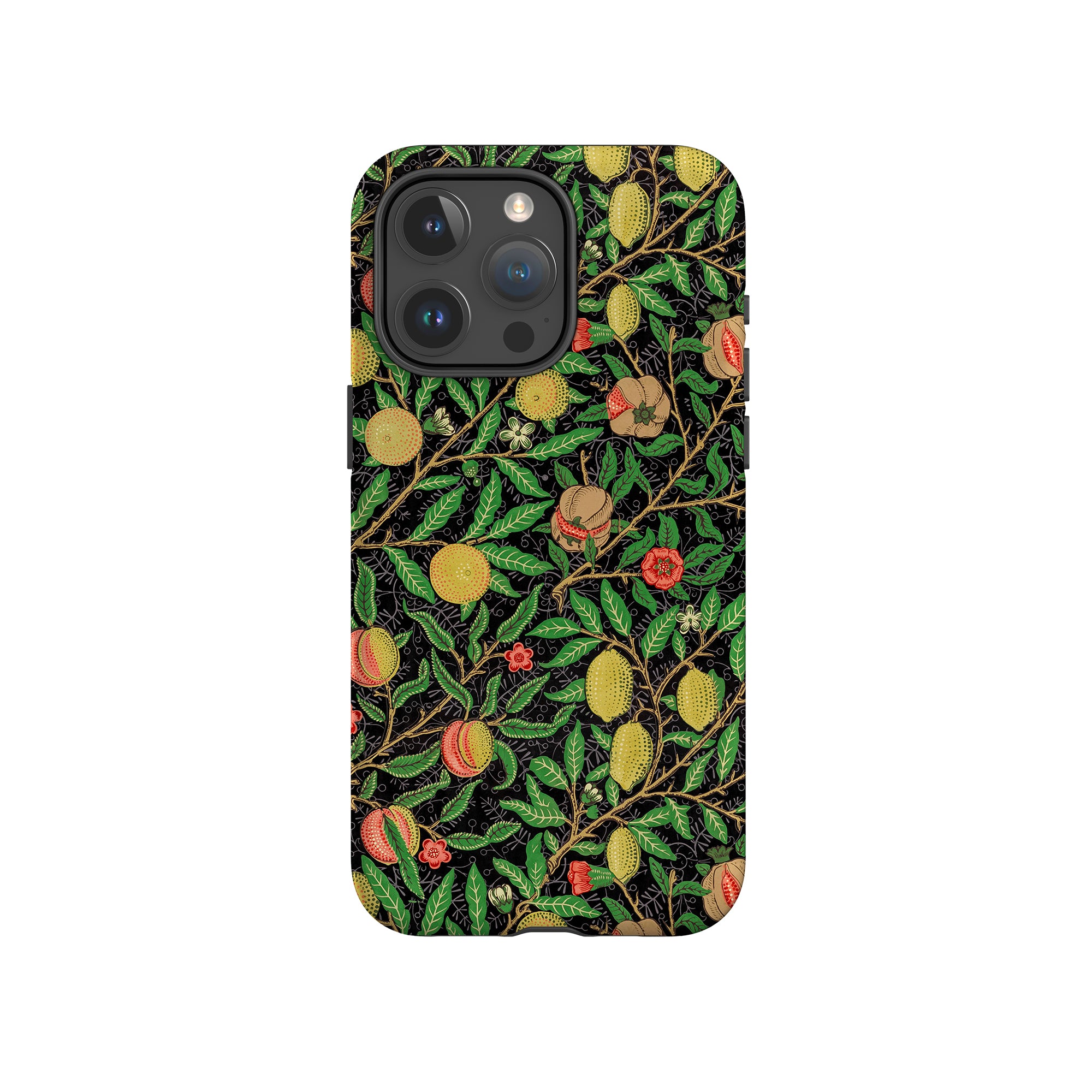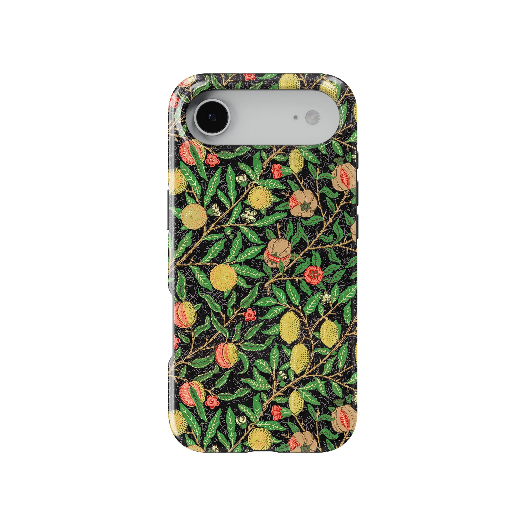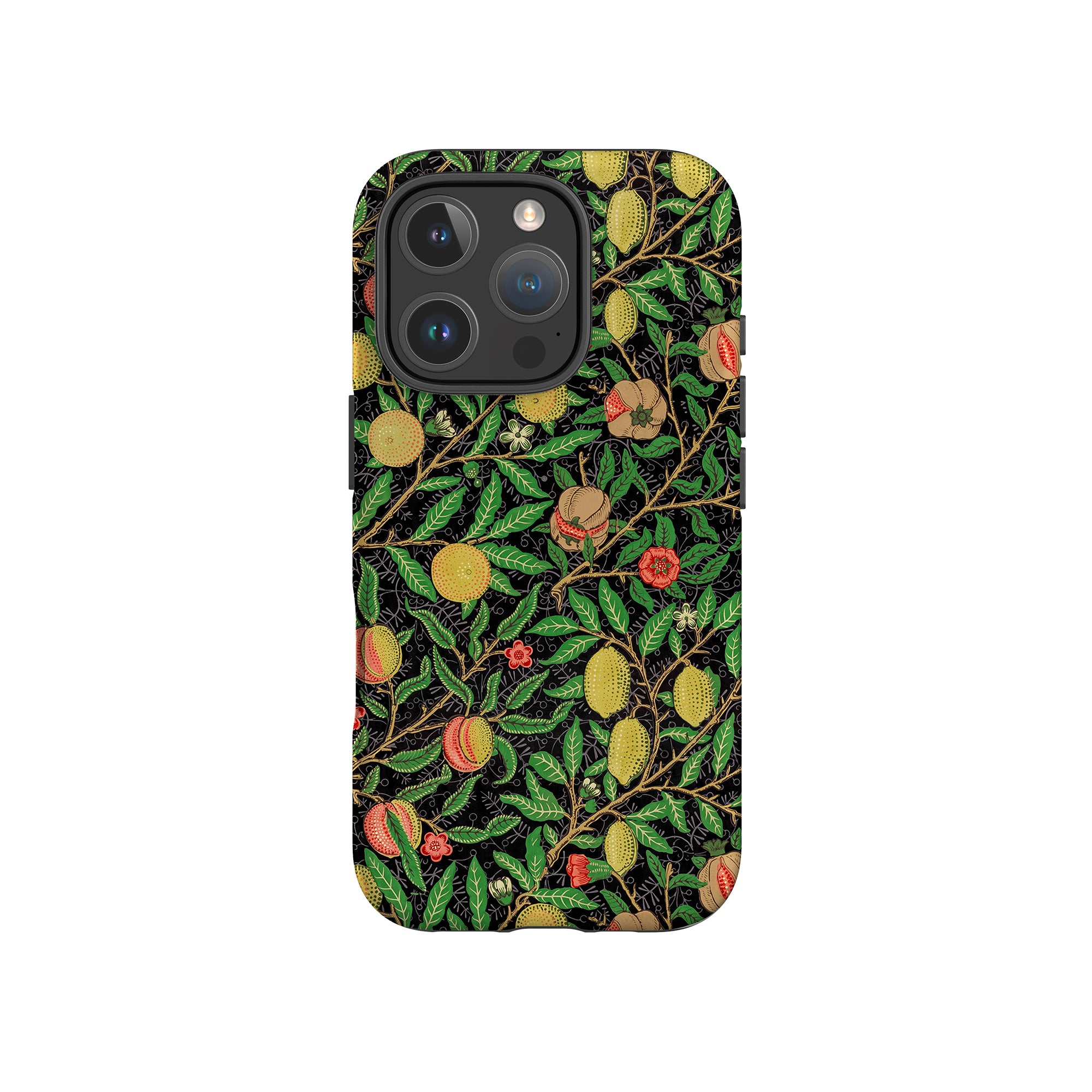 この携帯電話ケースは、ウィリアム・モリスにインスパイアされたデザインの優雅さを体現しており、濃い黒の背景にみずみずしい果物や葉が複雑に織り込まれています。鮮やかな色彩と精巧なアートワークが、時代を超えた洗練された外観を提供します。歴史的な芸術性と大胆な美学を大切にする人々にとって、「オーチャード ナイト」は文化の豊かさと現代的なスタイルのユニークな融合を提供し、デバイスを洗練されたアクセサリーに変えます。