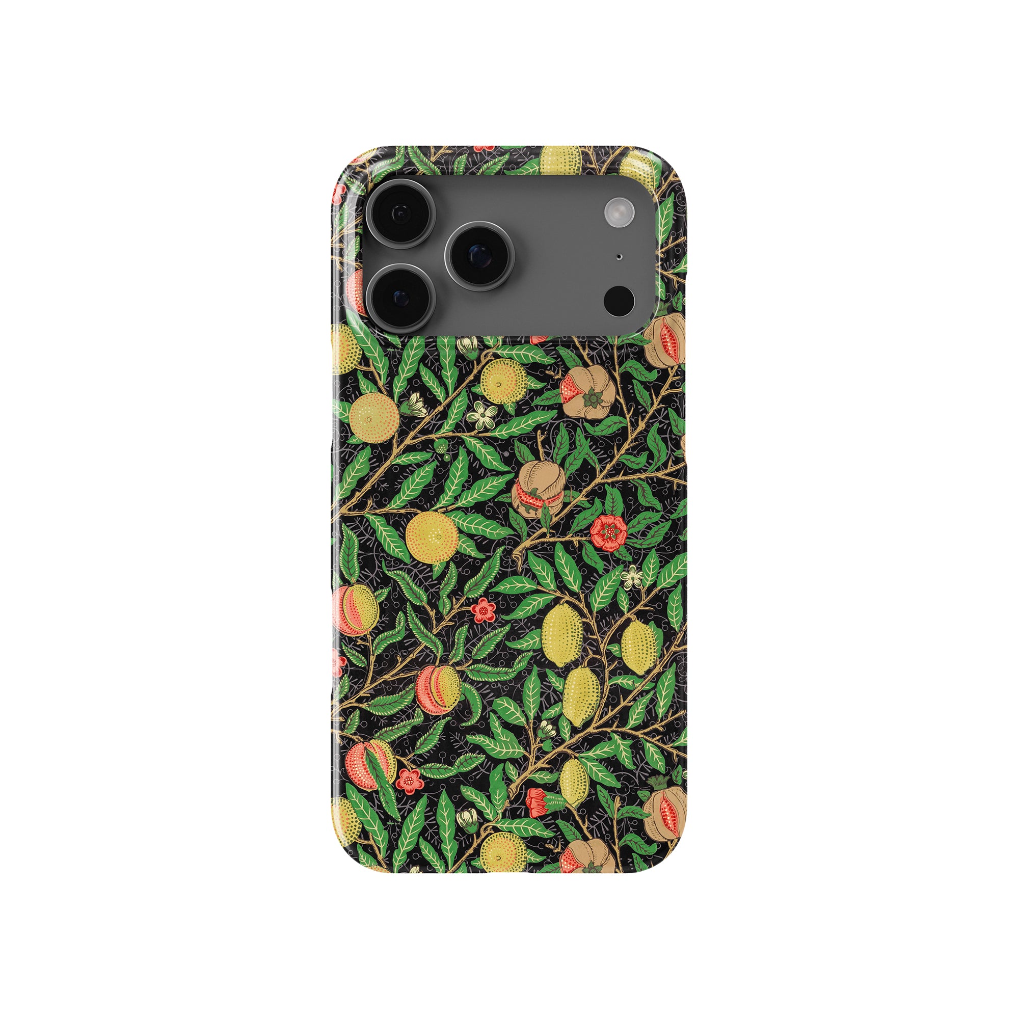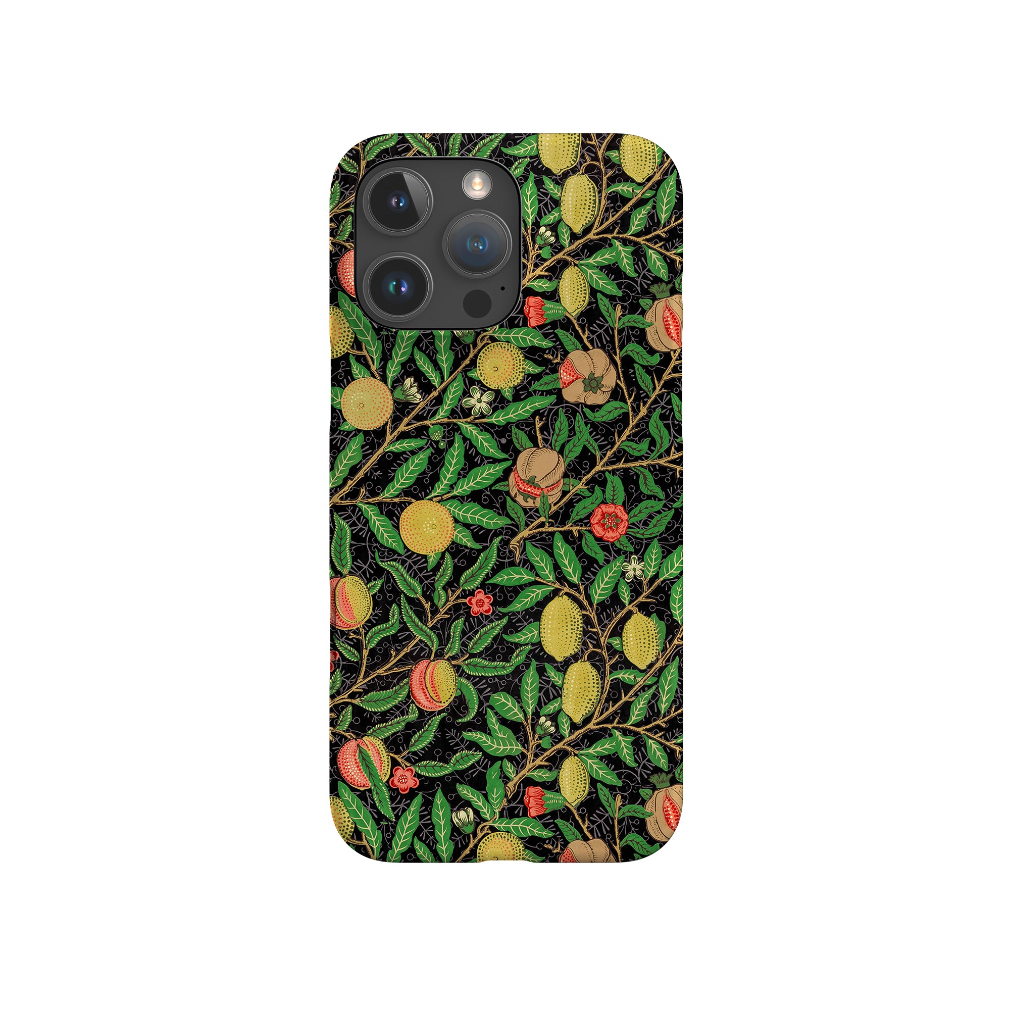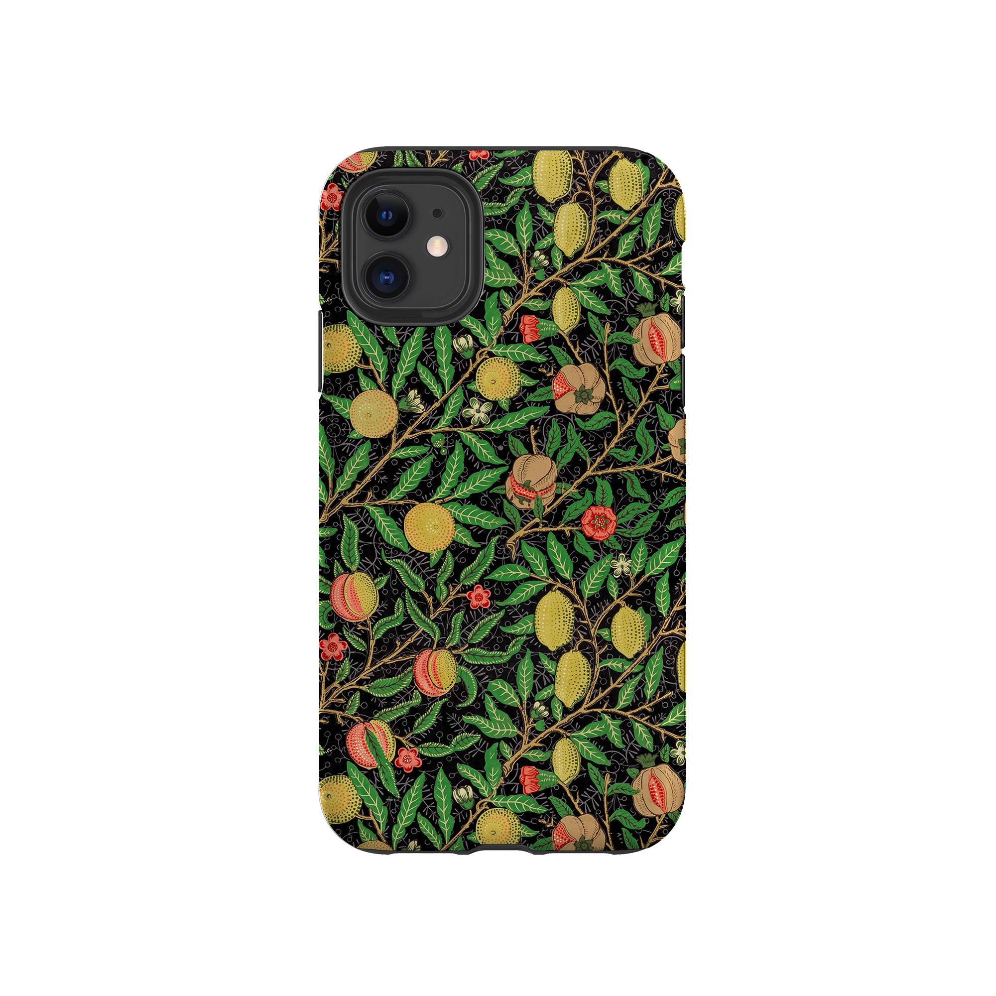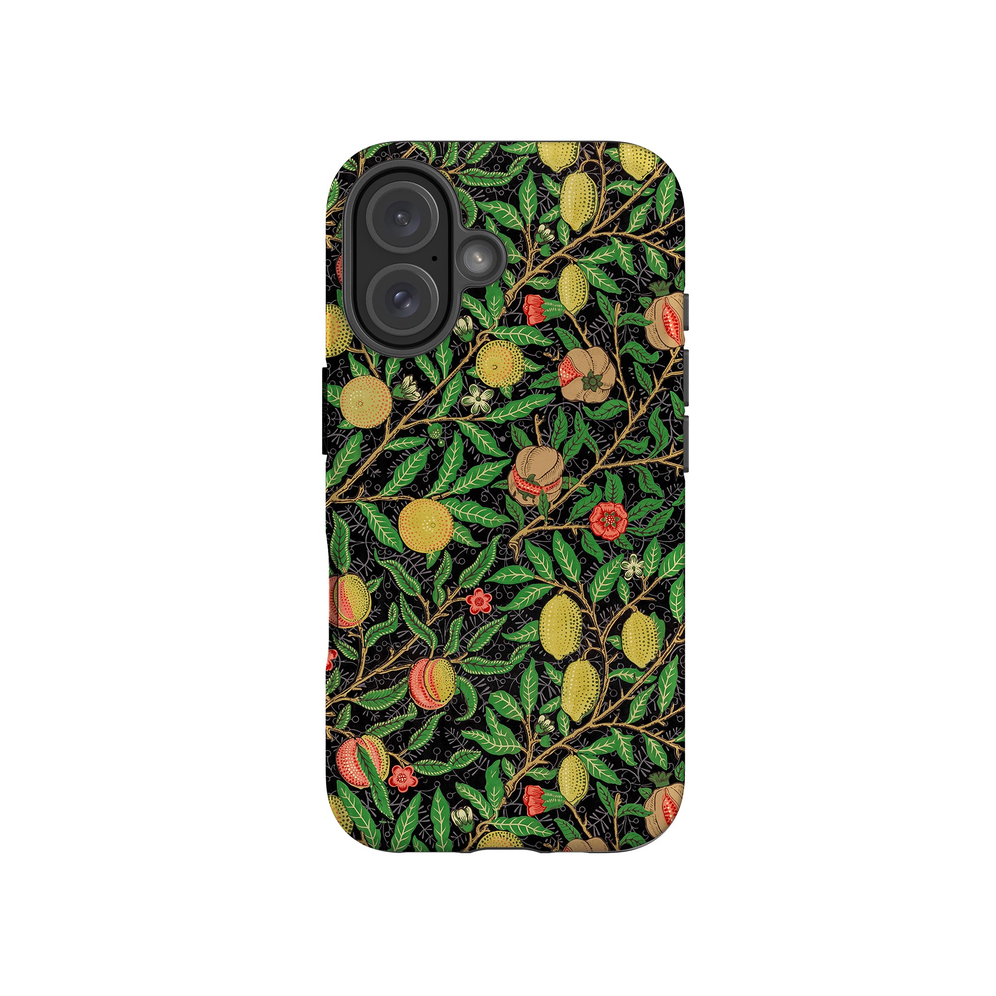 この携帯電話ケースは、ウィリアム・モリスにインスパイアされたデザインの優雅さを体現しており、濃い黒の背景にみずみずしい果物や葉が複雑に織り込まれています。鮮やかな色彩と精巧なアートワークが、時代を超えた洗練された外観を提供します。歴史的な芸術性と大胆な美学を大切にする人々にとって、「オーチャード ナイト」は文化の豊かさと現代的なスタイルのユニークな融合を提供し、デバイスを洗練されたアクセサリーに変えます。