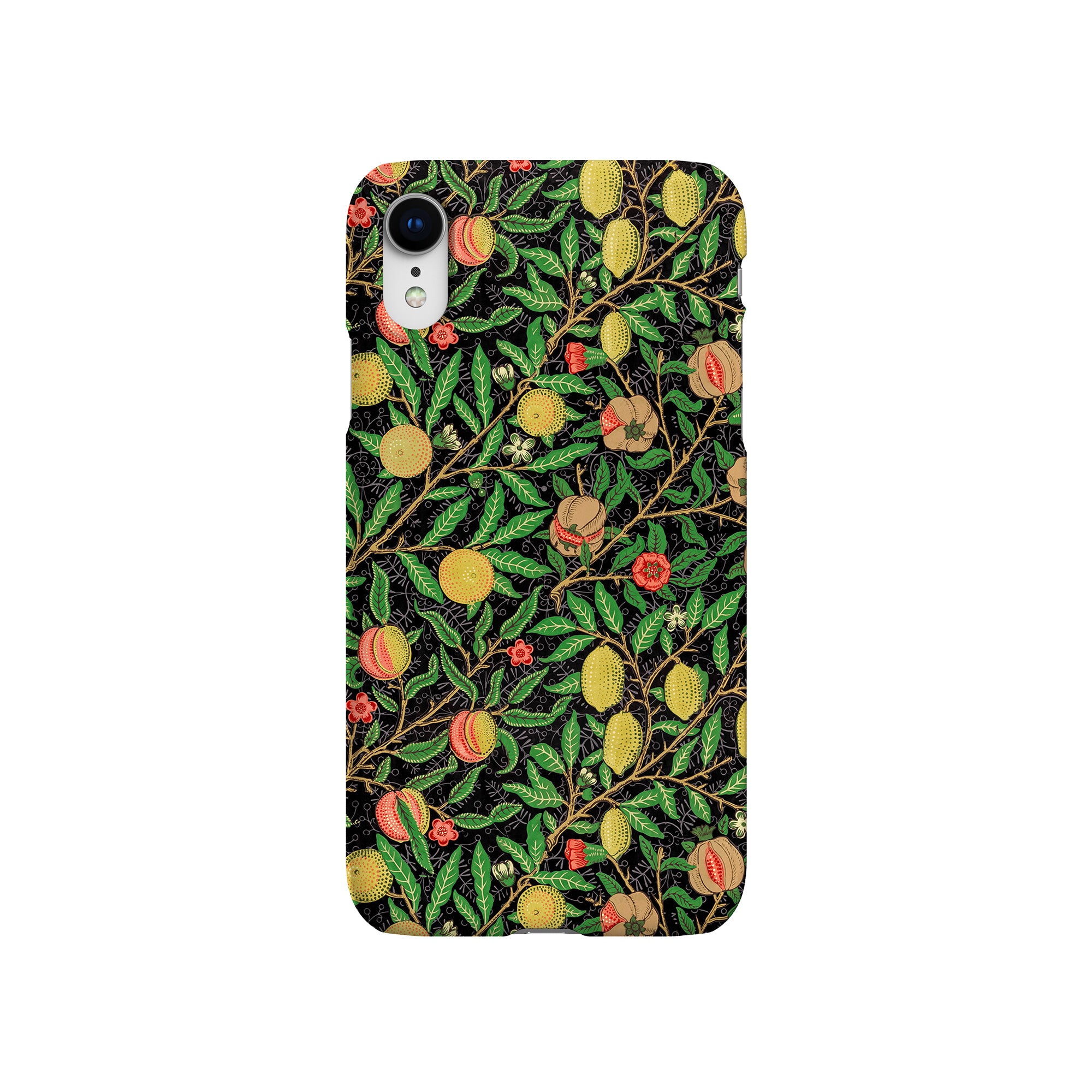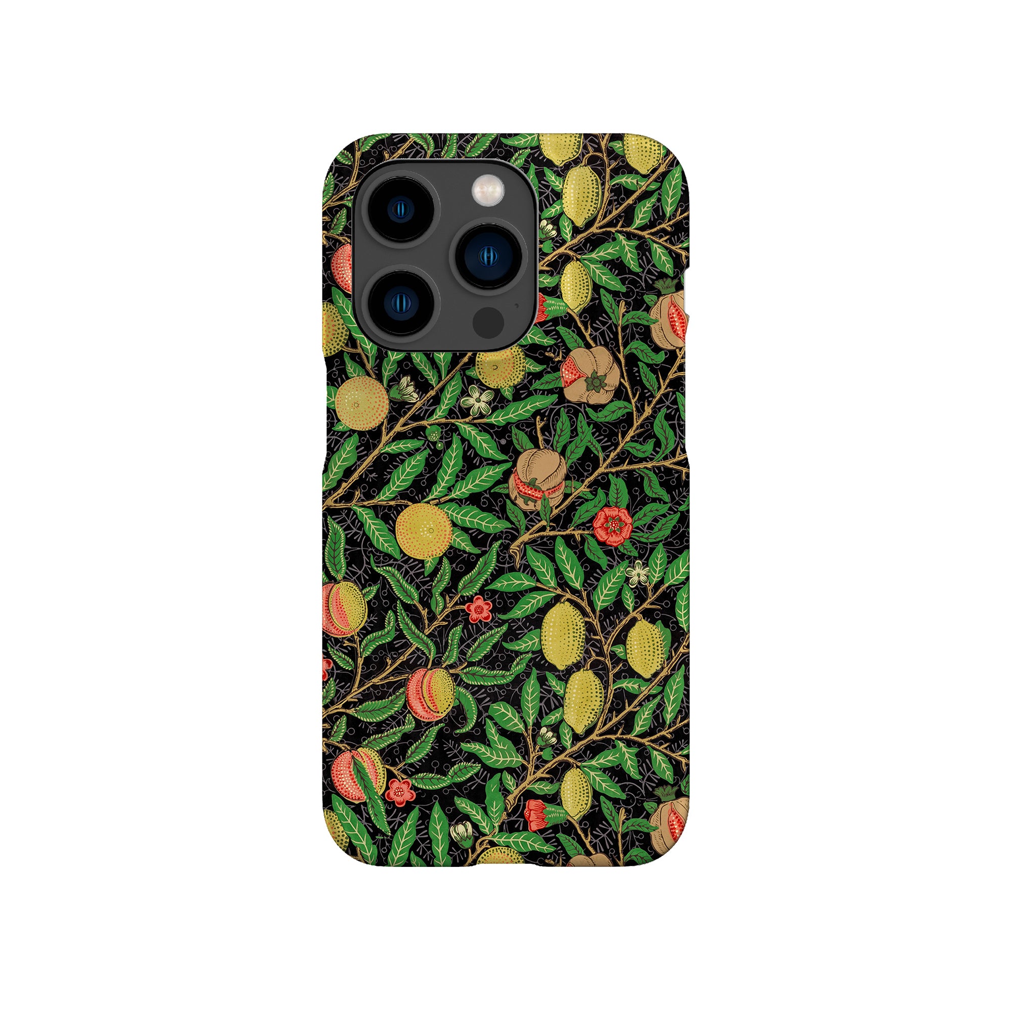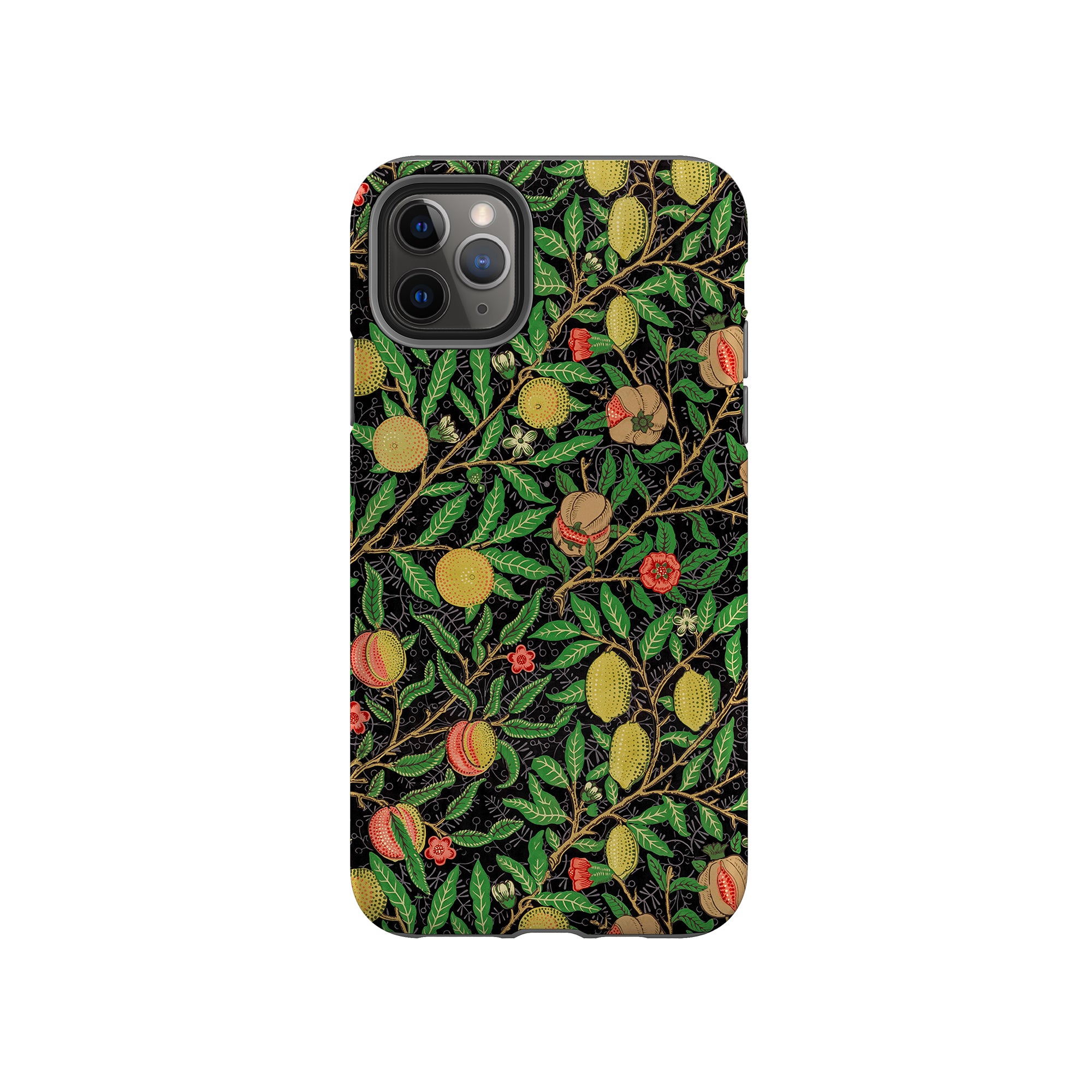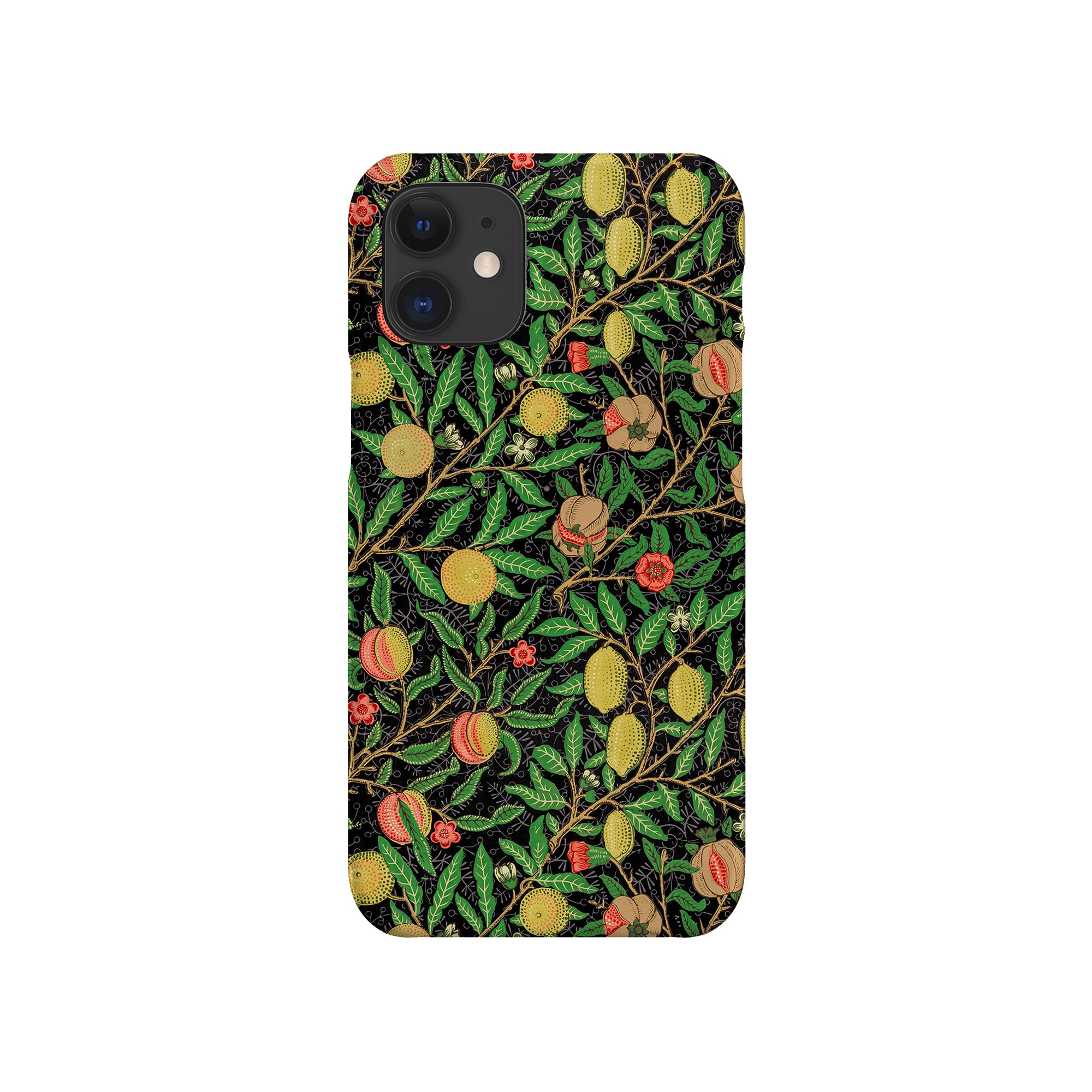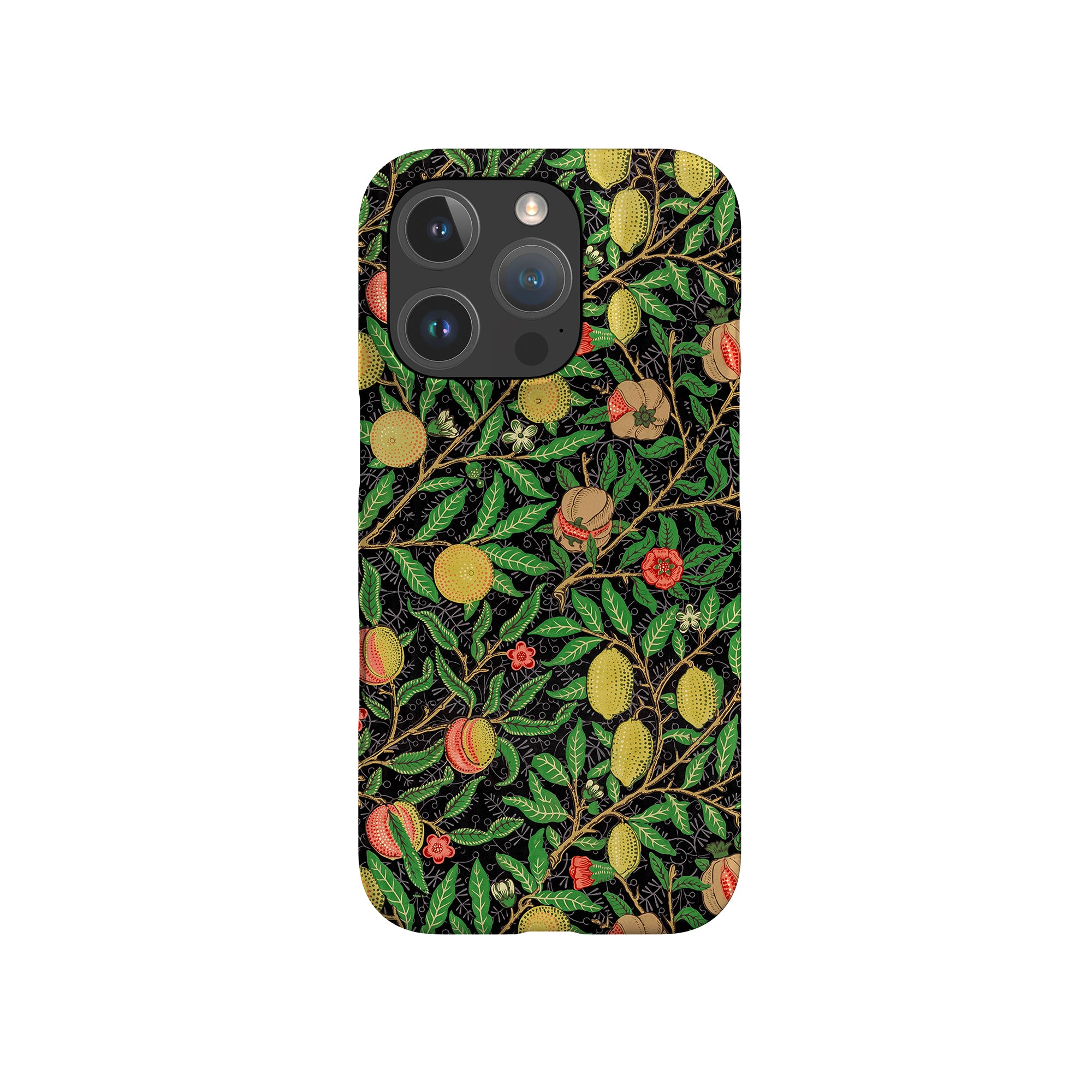 この携帯電話ケースは、ウィリアム・モリスにインスパイアされたデザインの優雅さを体現しており、濃い黒の背景にみずみずしい果物や葉が複雑に織り込まれています。鮮やかな色彩と精巧なアートワークが、時代を超えた洗練された外観を提供します。歴史的な芸術性と大胆な美学を大切にする人々にとって、「オーチャード ナイト」は文化の豊かさと現代的なスタイルのユニークな融合を提供し、デバイスを洗練されたアクセサリーに変えます。