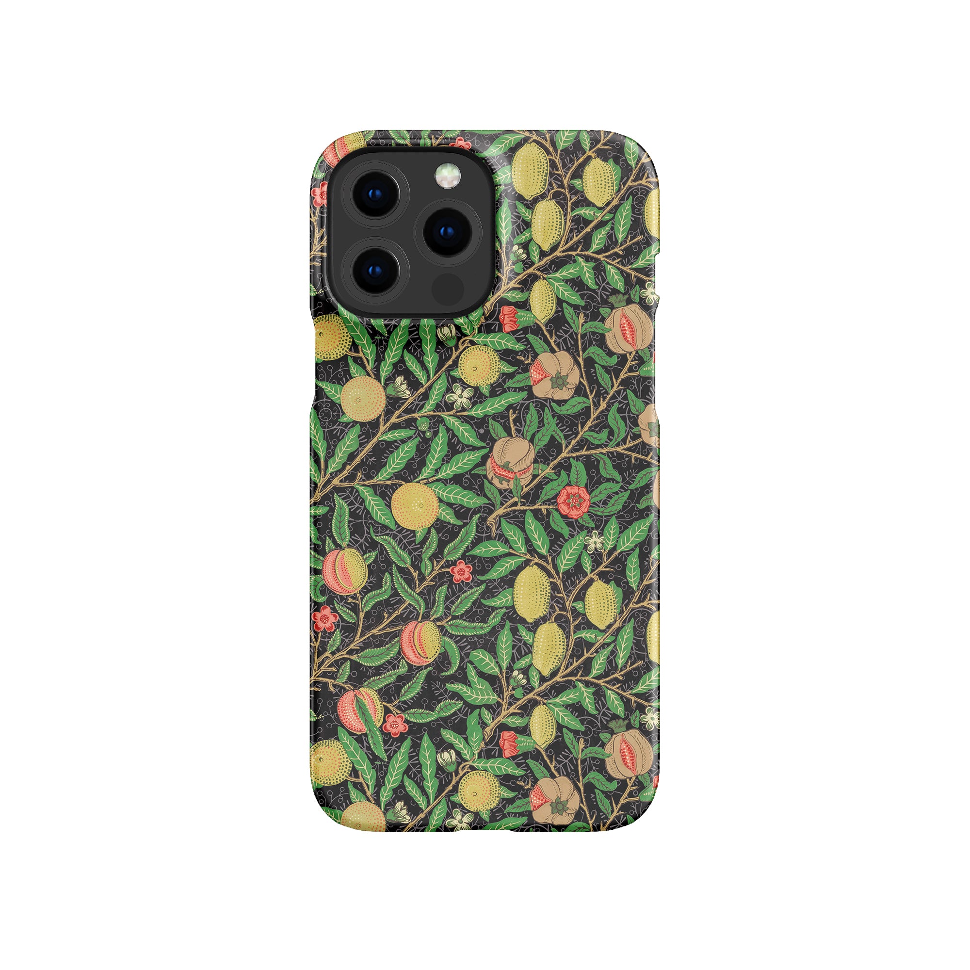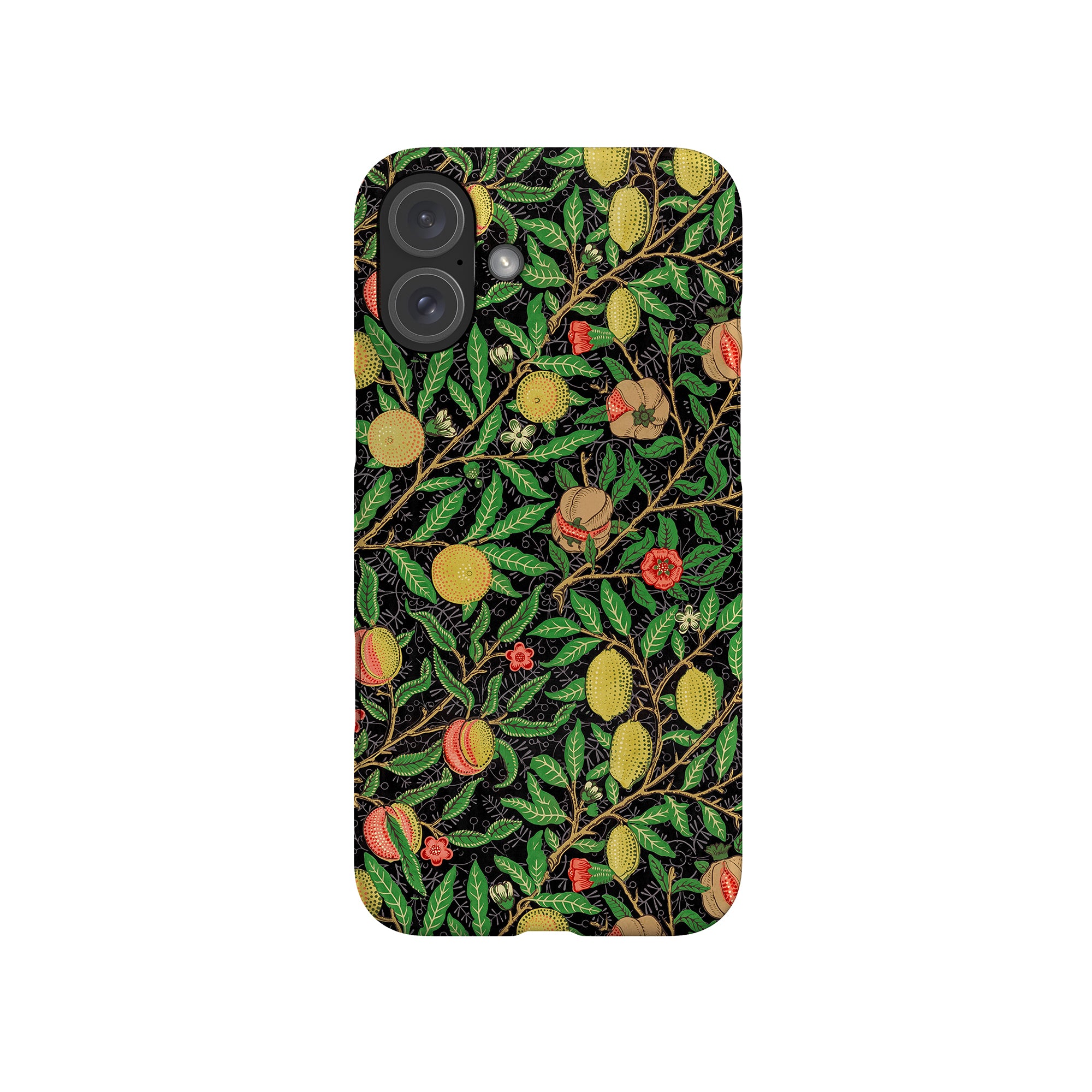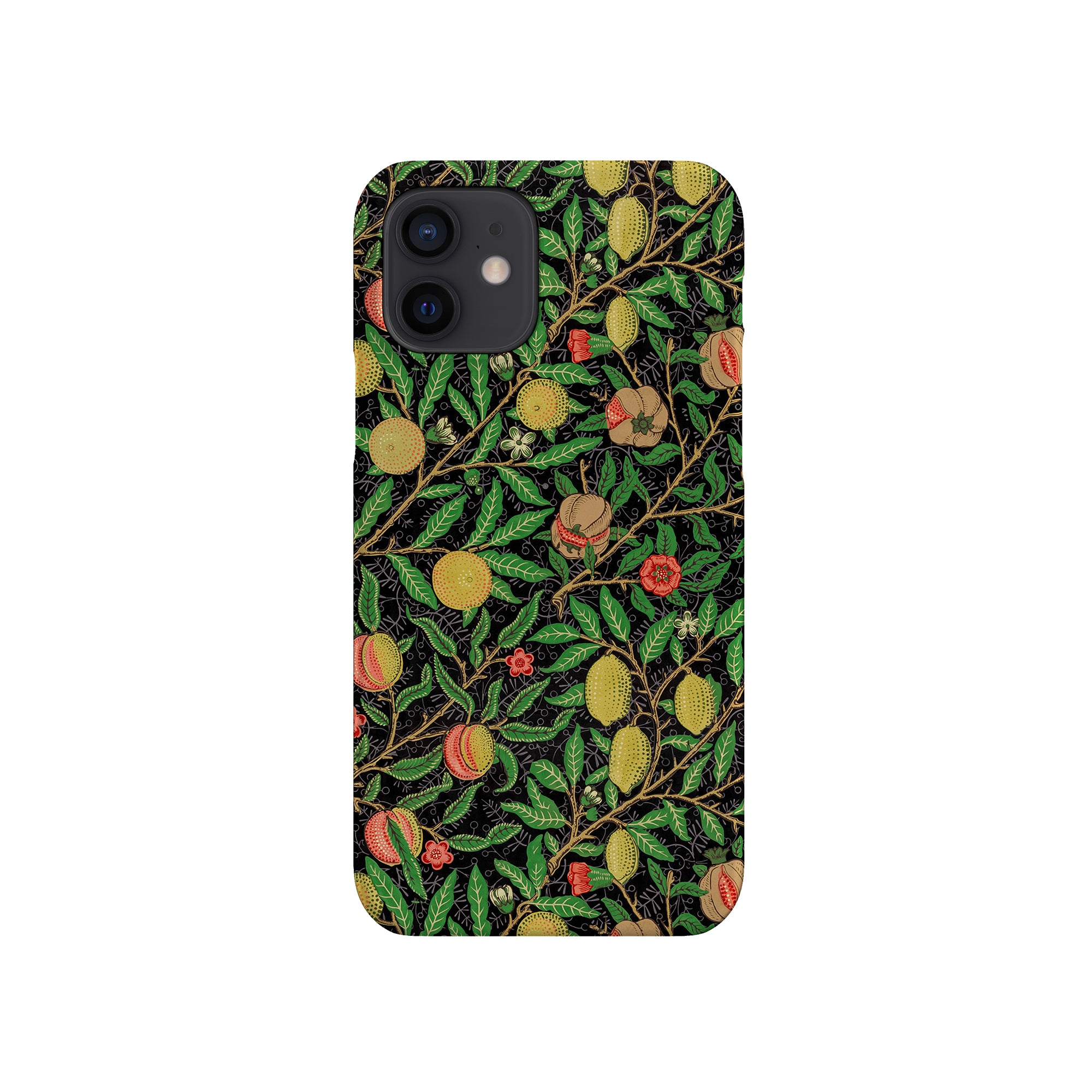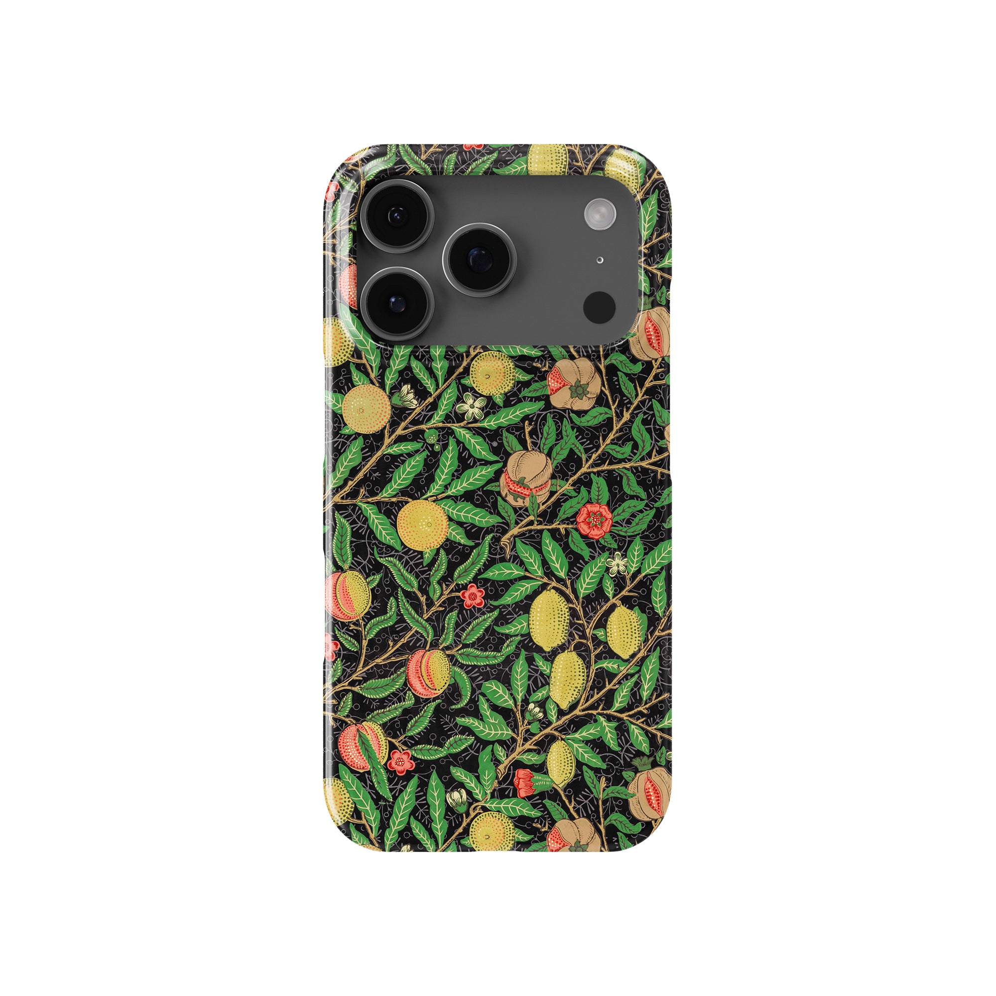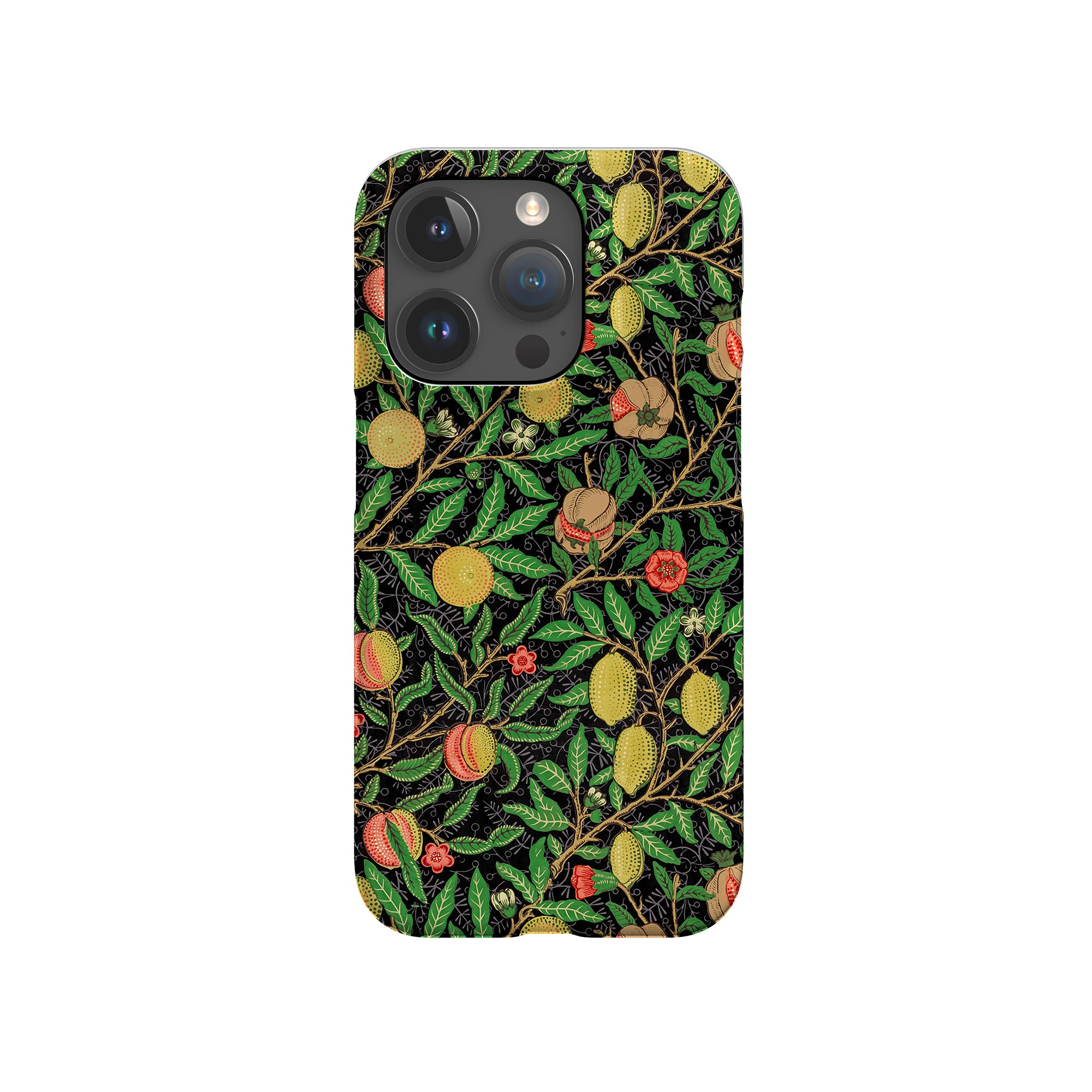 この携帯電話ケースは、ウィリアム・モリスにインスパイアされたデザインの優雅さを体現しており、濃い黒の背景にみずみずしい果物や葉が複雑に織り込まれています。鮮やかな色彩と精巧なアートワークが、時代を超えた洗練された外観を提供します。歴史的な芸術性と大胆な美学を大切にする人々にとって、「オーチャード ナイト」は文化の豊かさと現代的なスタイルのユニークな融合を提供し、デバイスを洗練されたアクセサリーに変えます。