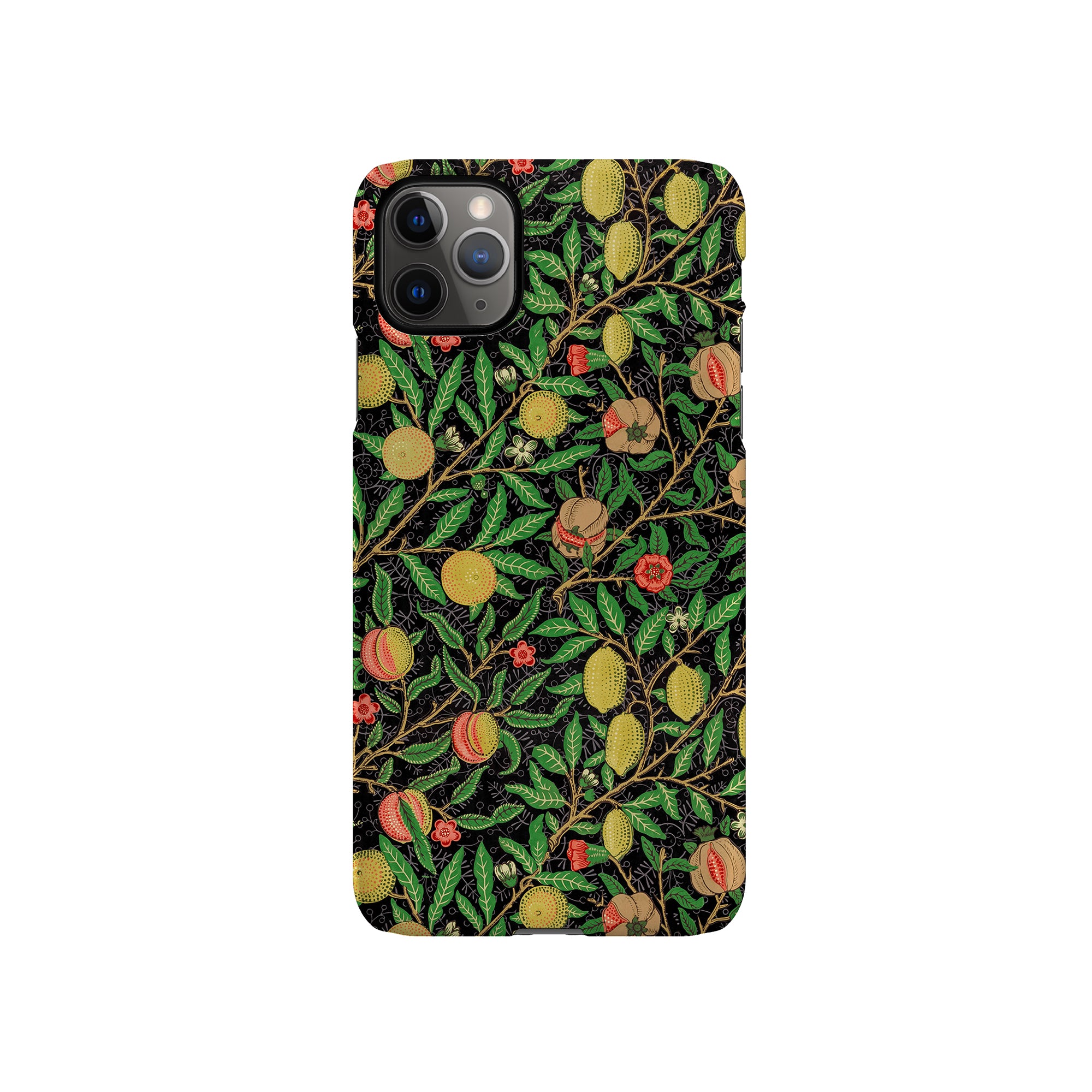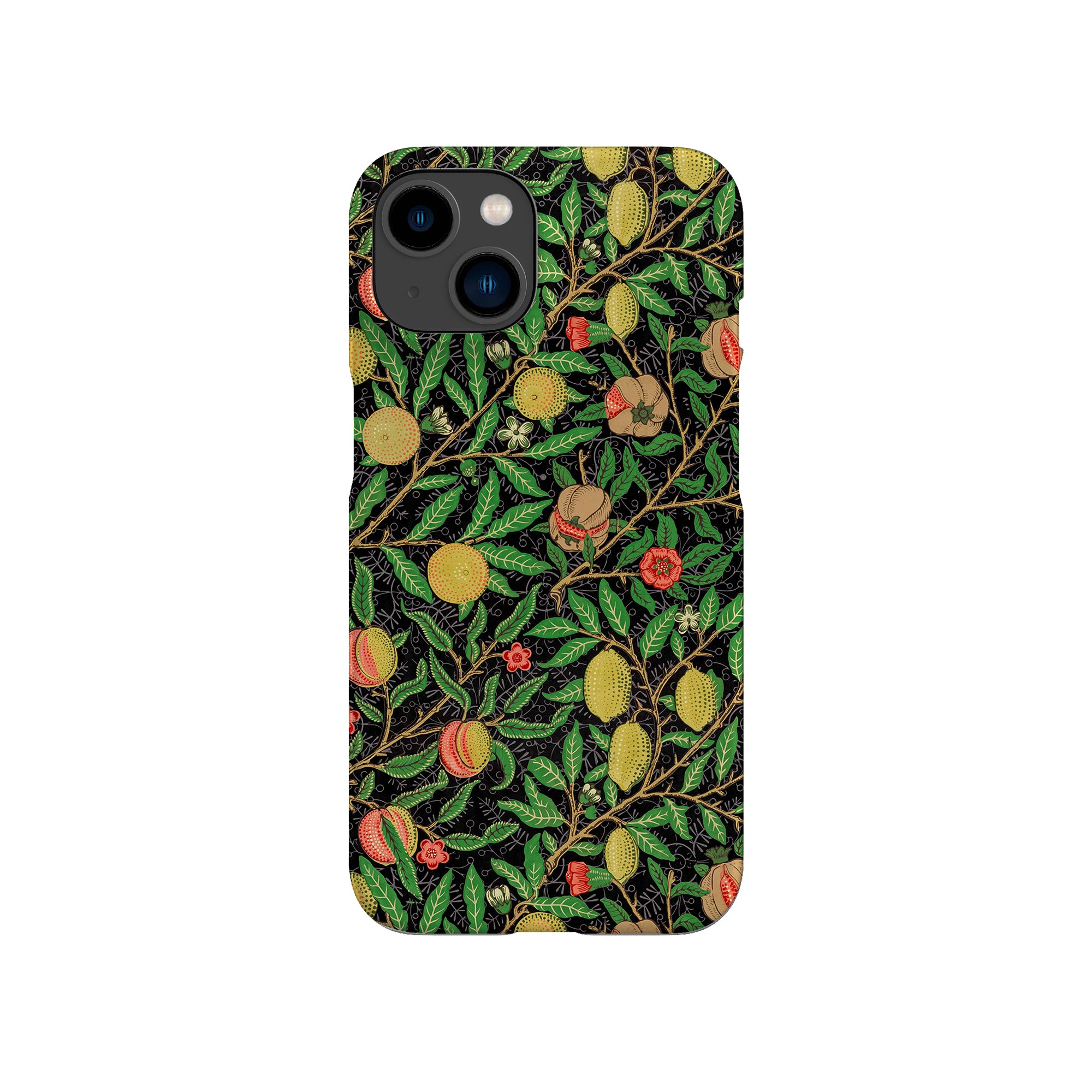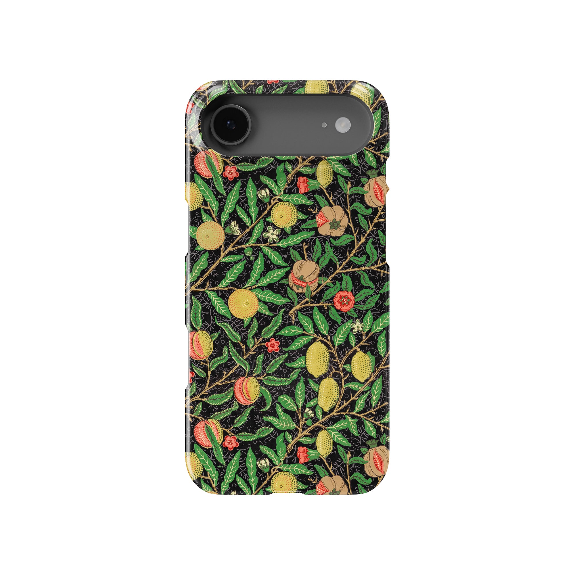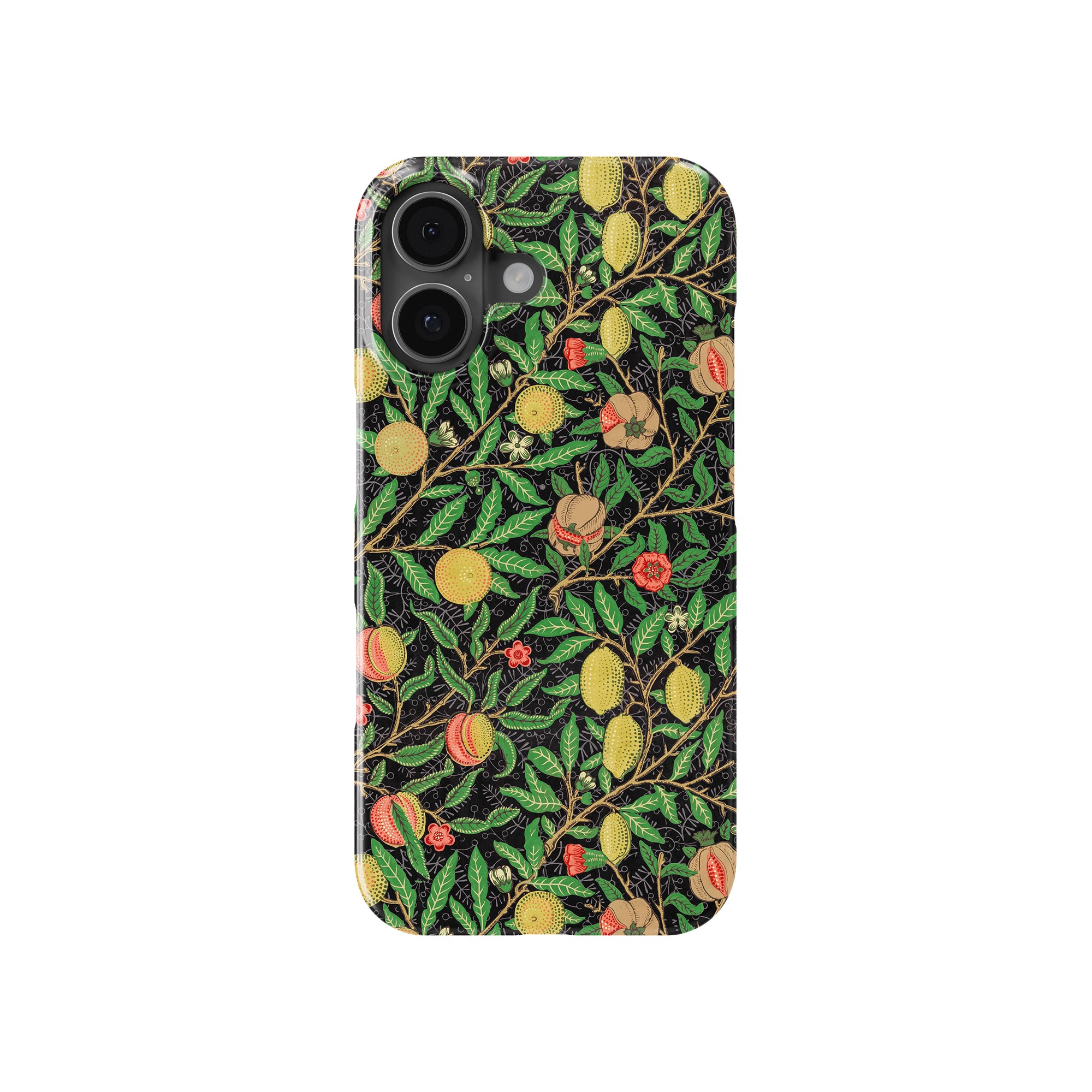 この携帯電話ケースは、ウィリアム・モリスにインスパイアされたデザインの優雅さを体現しており、濃い黒の背景にみずみずしい果物や葉が複雑に織り込まれています。鮮やかな色彩と精巧なアートワークが、時代を超えた洗練された外観を提供します。歴史的な芸術性と大胆な美学を大切にする人々にとって、「オーチャード ナイト」は文化の豊かさと現代的なスタイルのユニークな融合を提供し、デバイスを洗練されたアクセサリーに変えます。