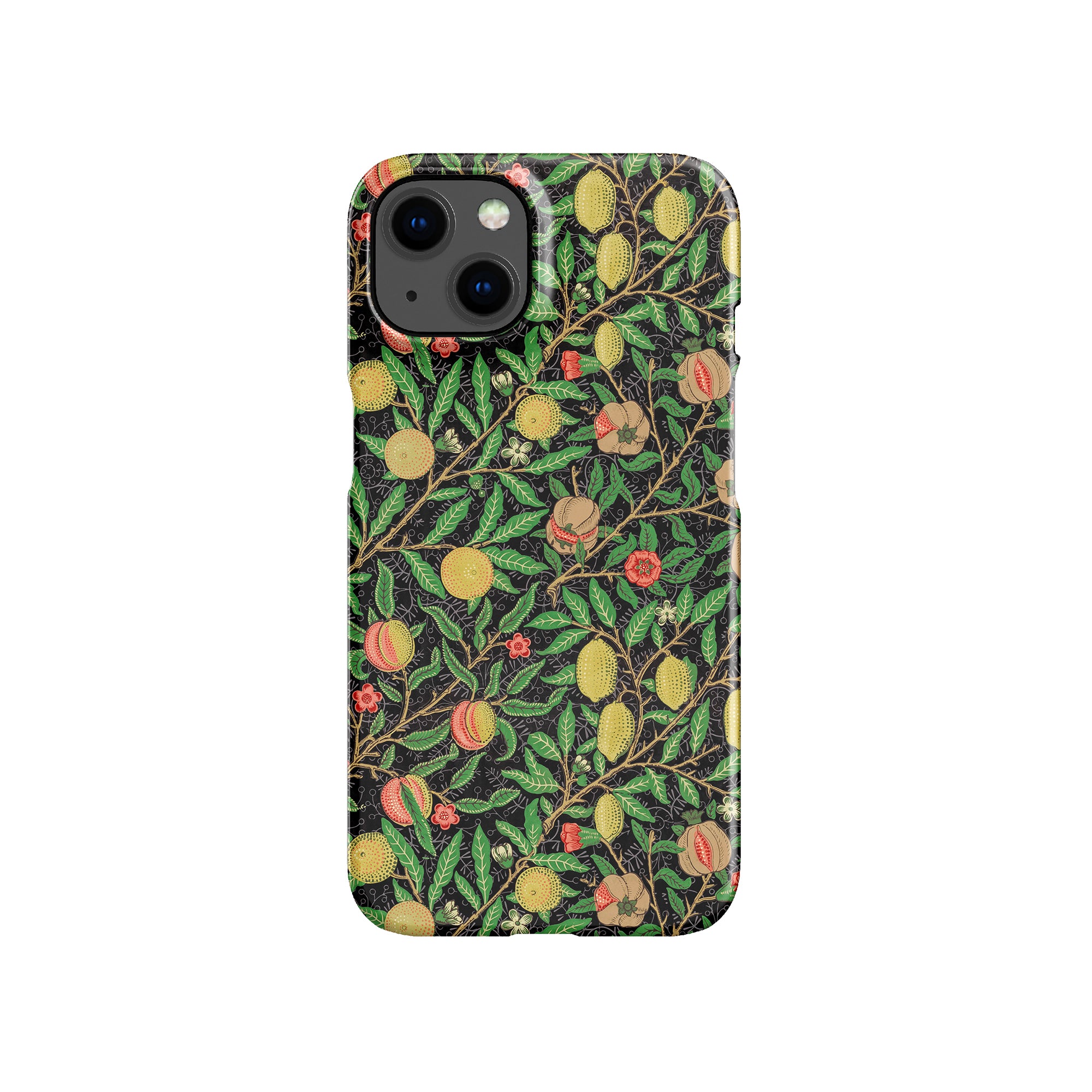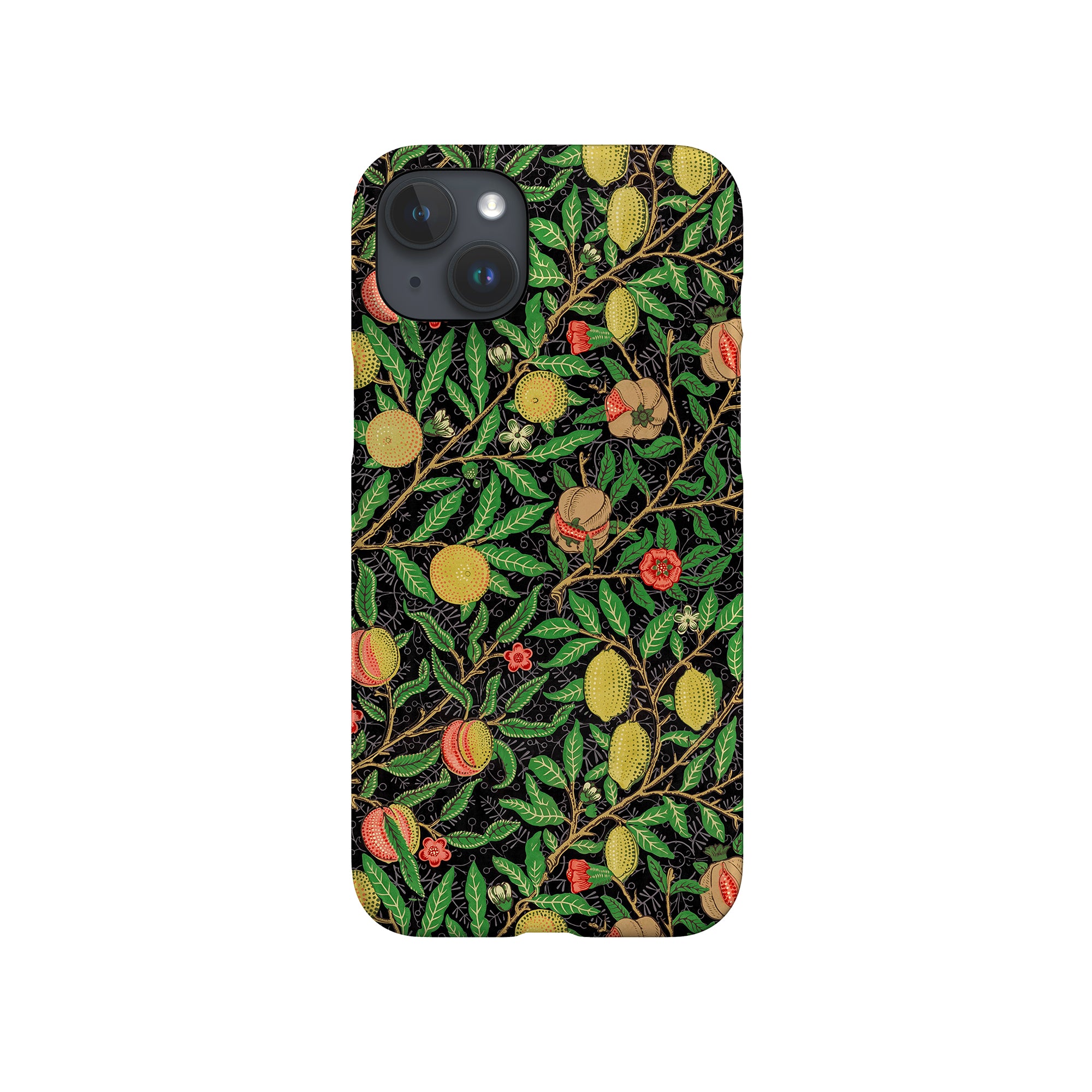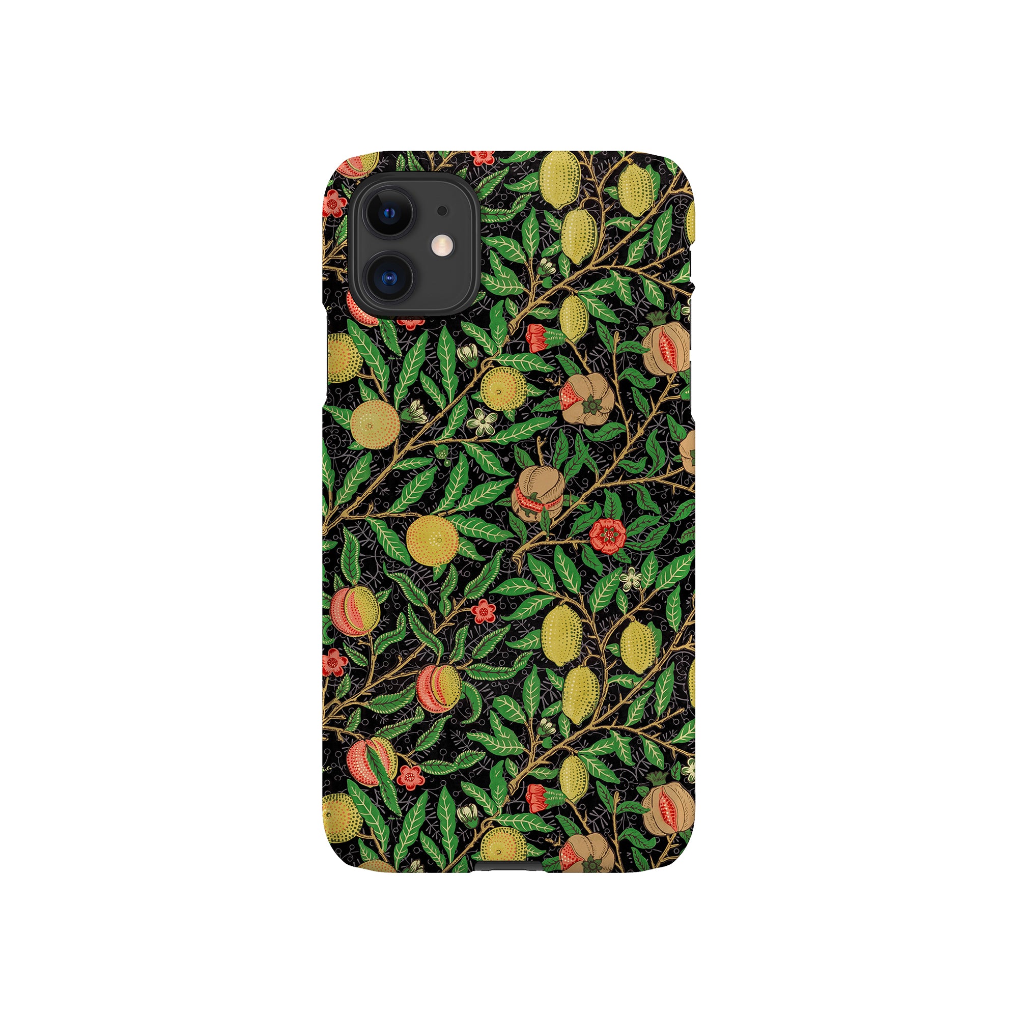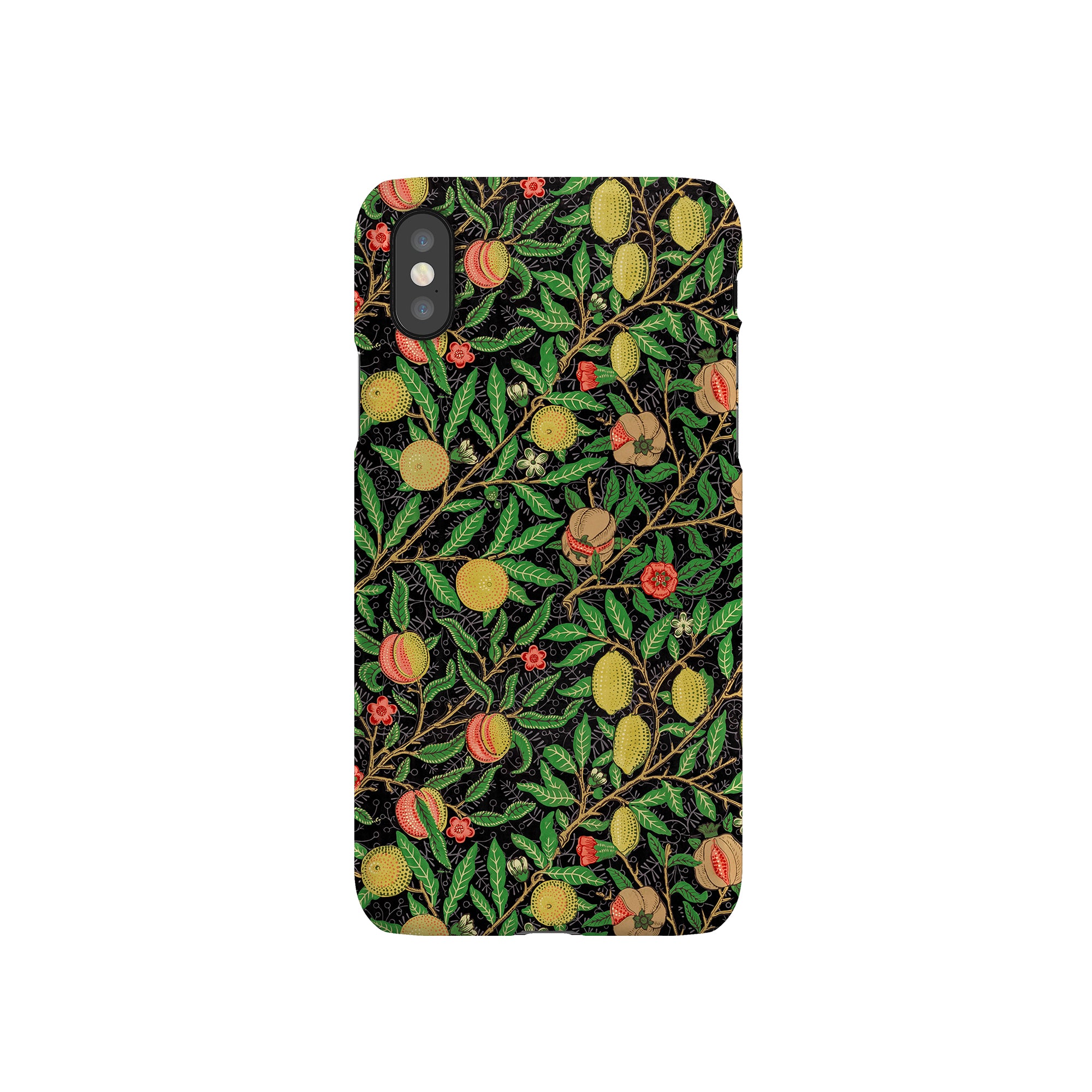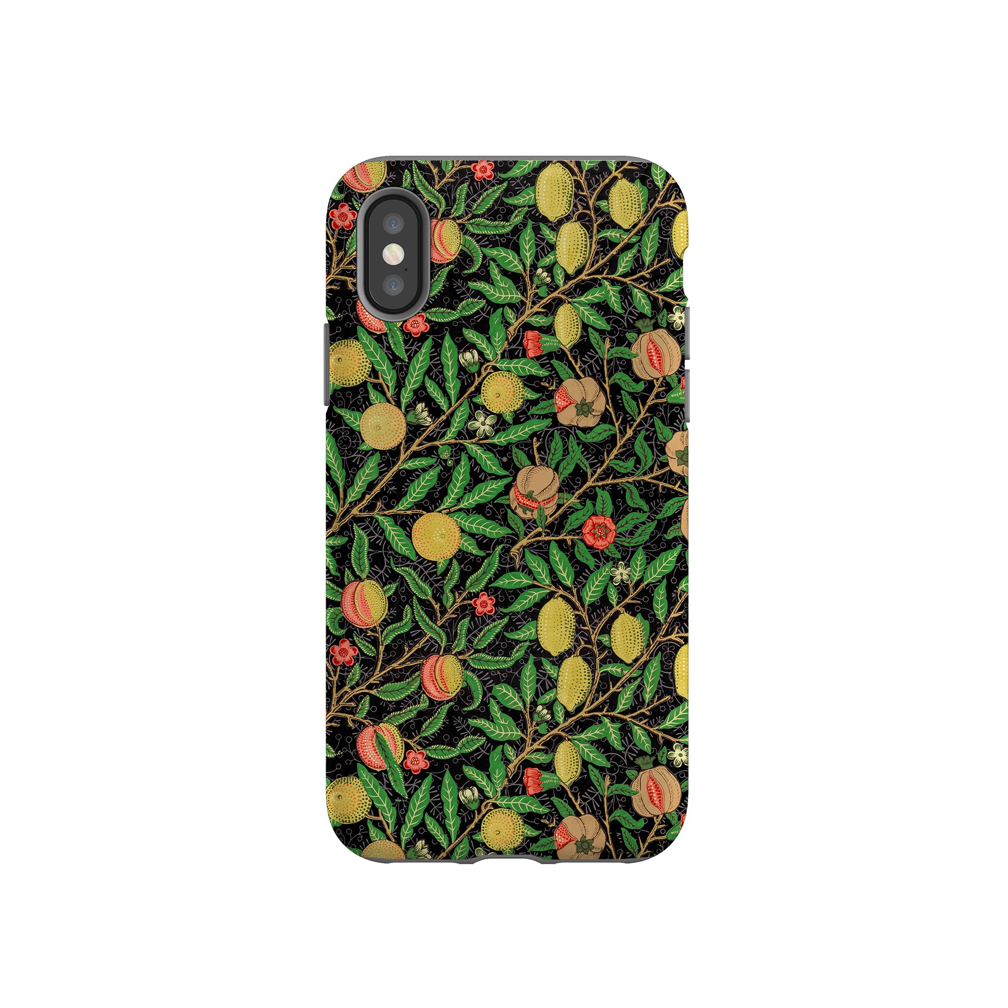 この携帯電話ケースは、ウィリアム・モリスにインスパイアされたデザインの優雅さを体現しており、濃い黒の背景にみずみずしい果物や葉が複雑に織り込まれています。鮮やかな色彩と精巧なアートワークが、時代を超えた洗練された外観を提供します。歴史的な芸術性と大胆な美学を大切にする人々にとって、「オーチャード ナイト」は文化の豊かさと現代的なスタイルのユニークな融合を提供し、デバイスを洗練されたアクセサリーに変えます。
