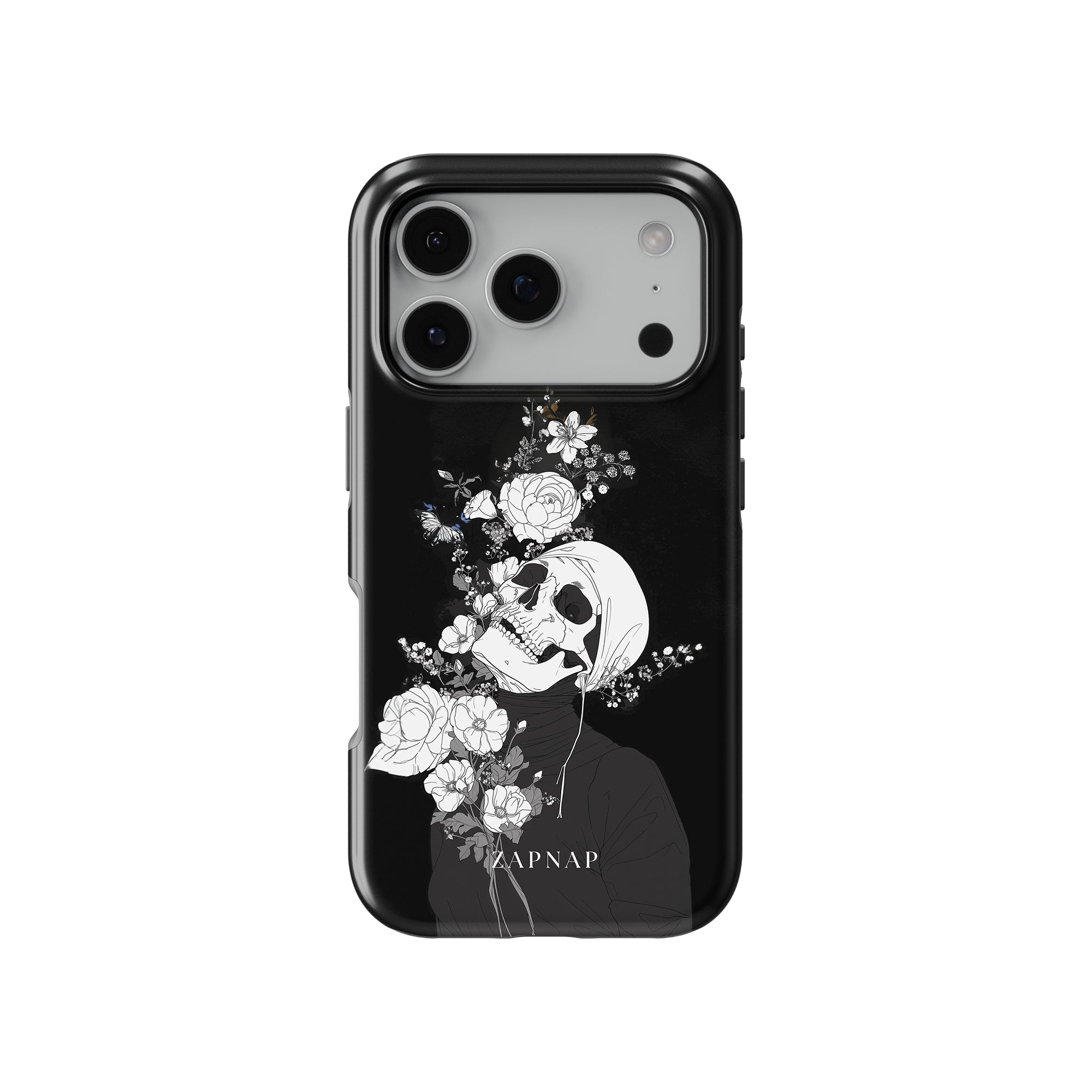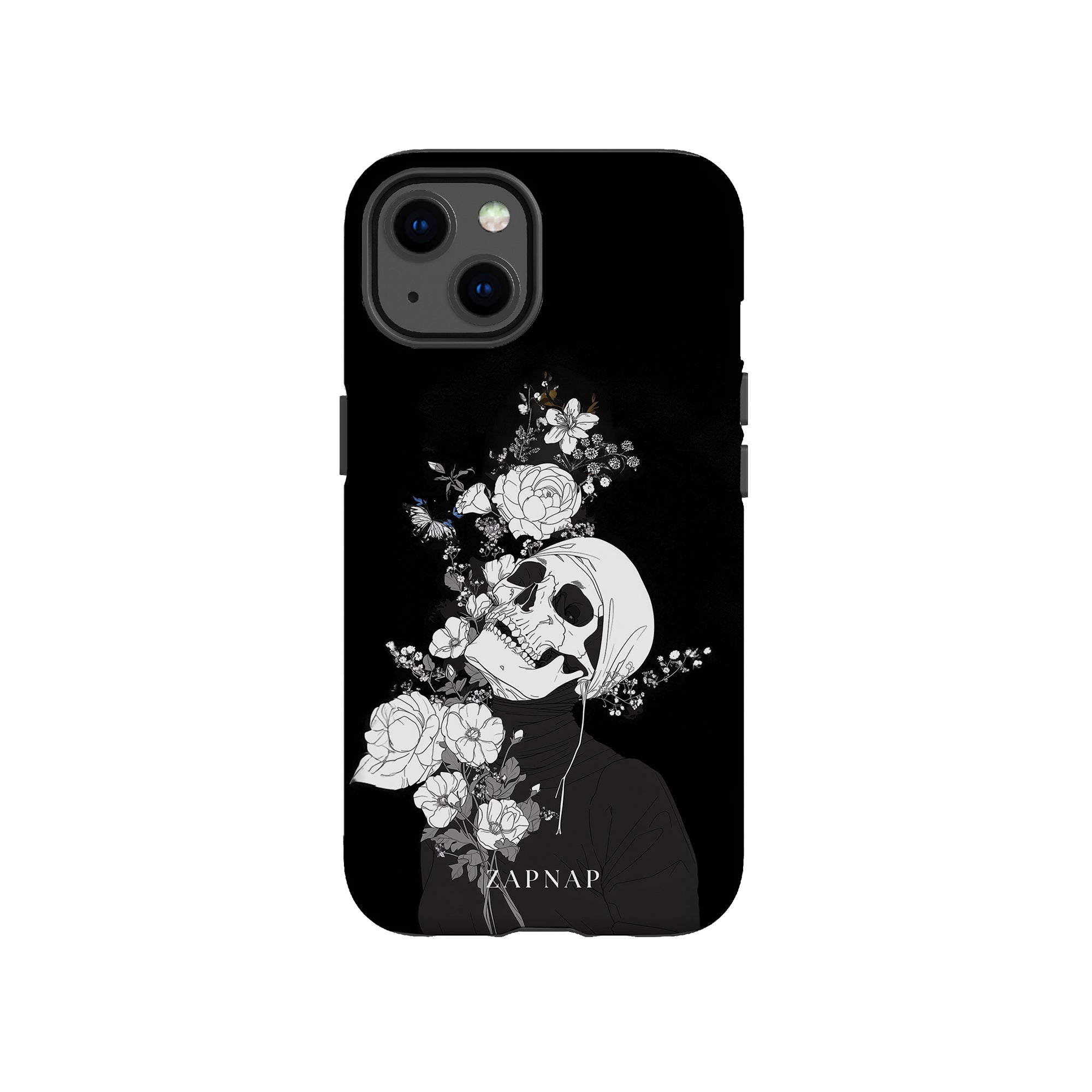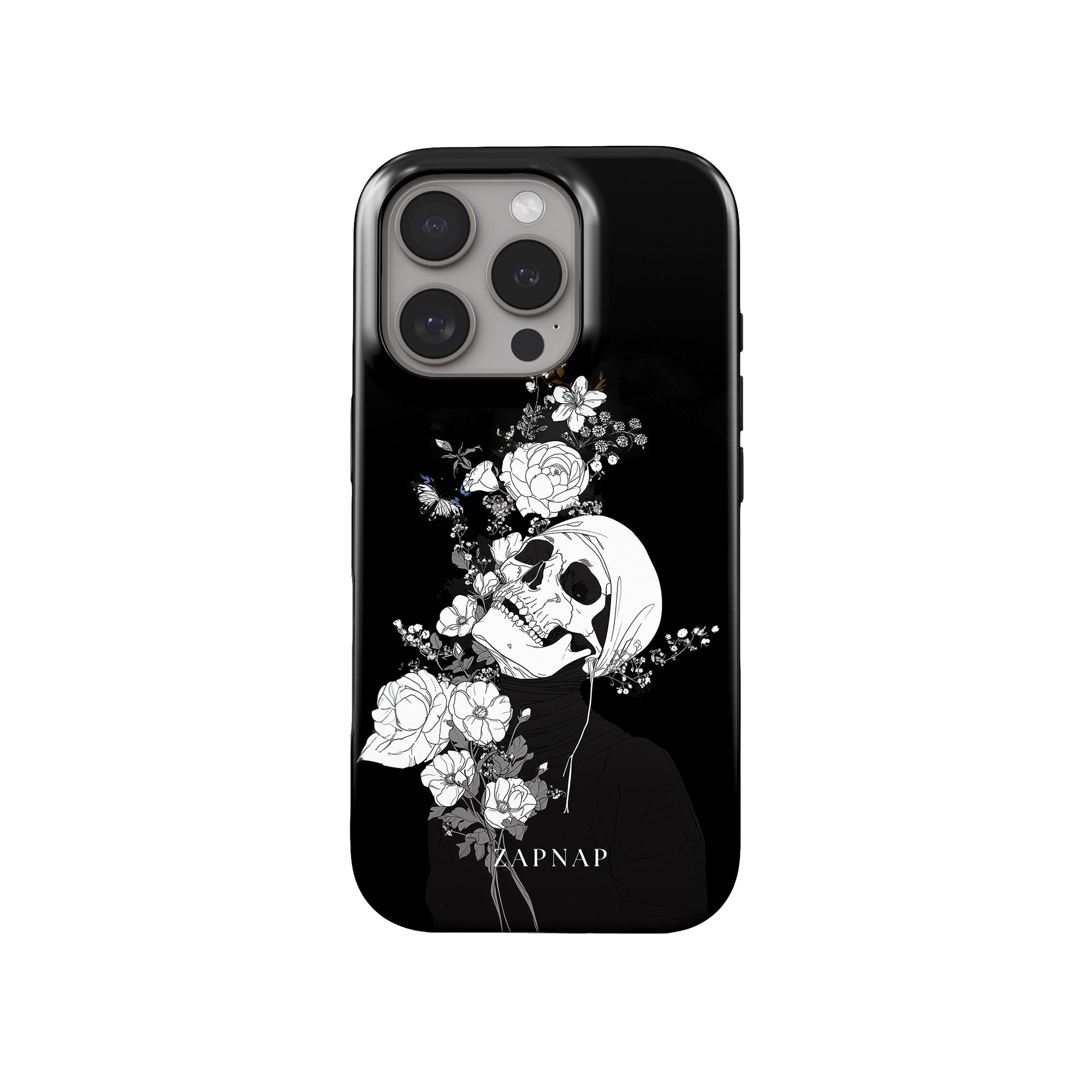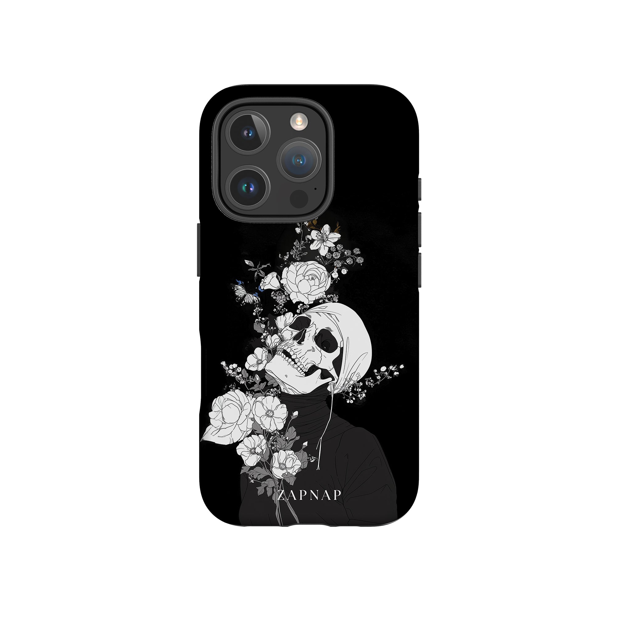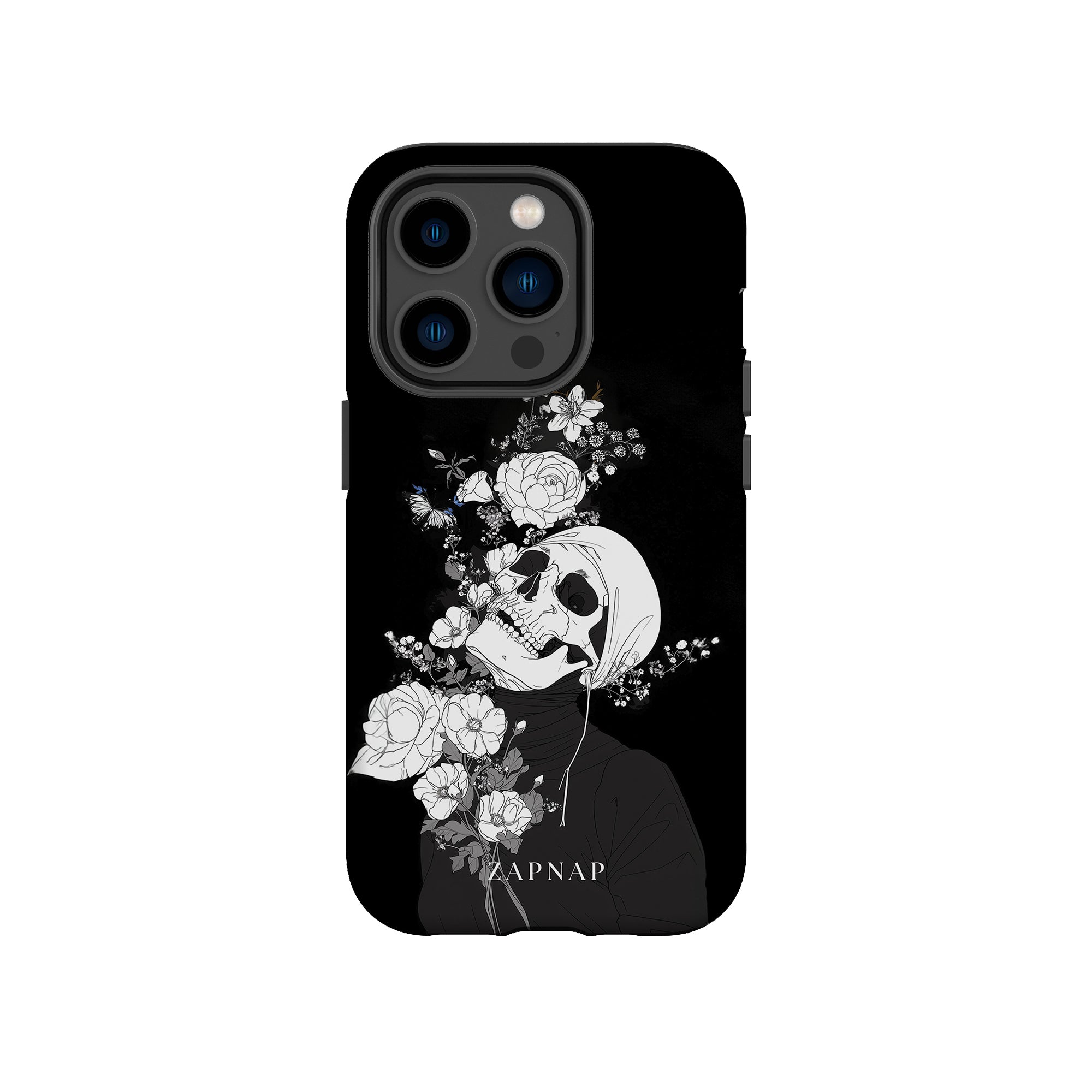 Veil of Petals toont een schedel omringd door een prachtige reeks bloemen, weergegeven in een opvallend zwart-wit palet. Dit gotische schilderij benadrukt de harmonie tussen leven en dood en biedt een visueel verbluffend en tot nadenken stemmend stuk dat de voorbijgaande schoonheid van het bestaan viert.
