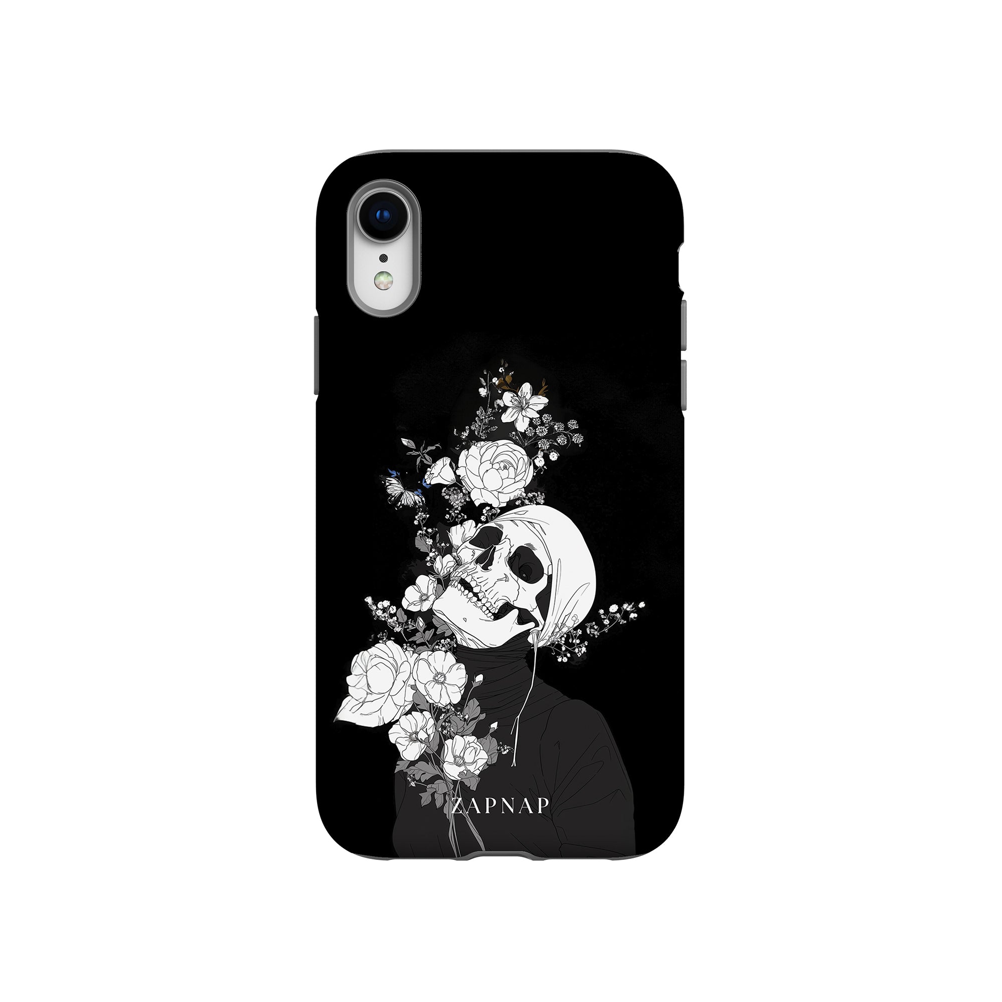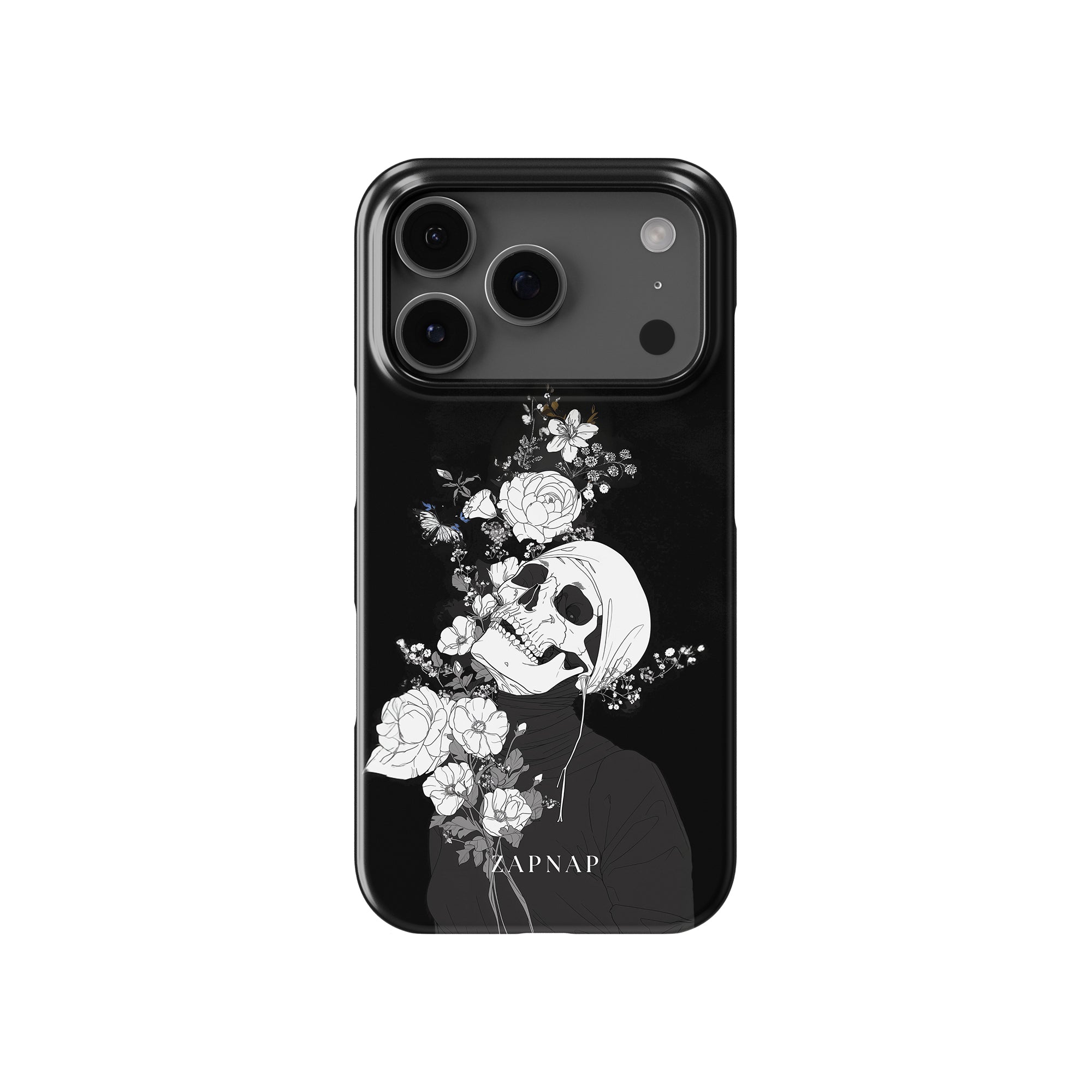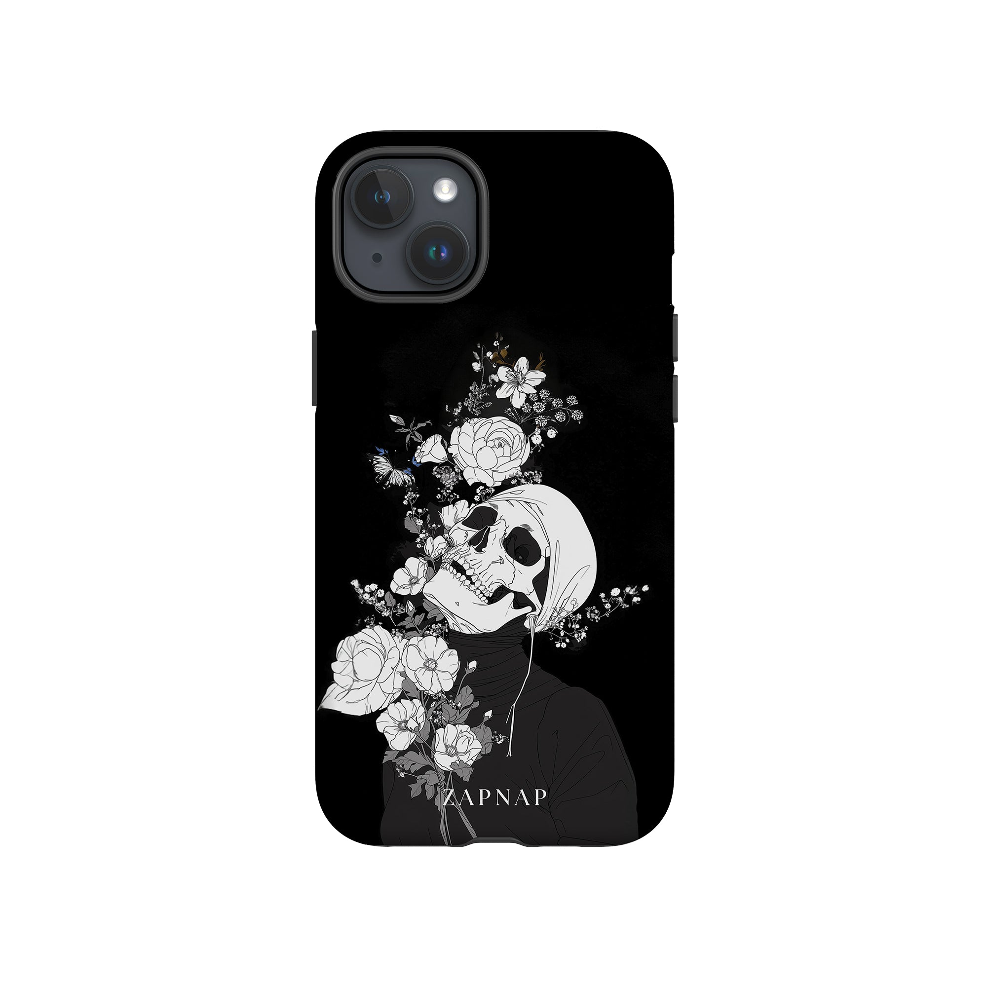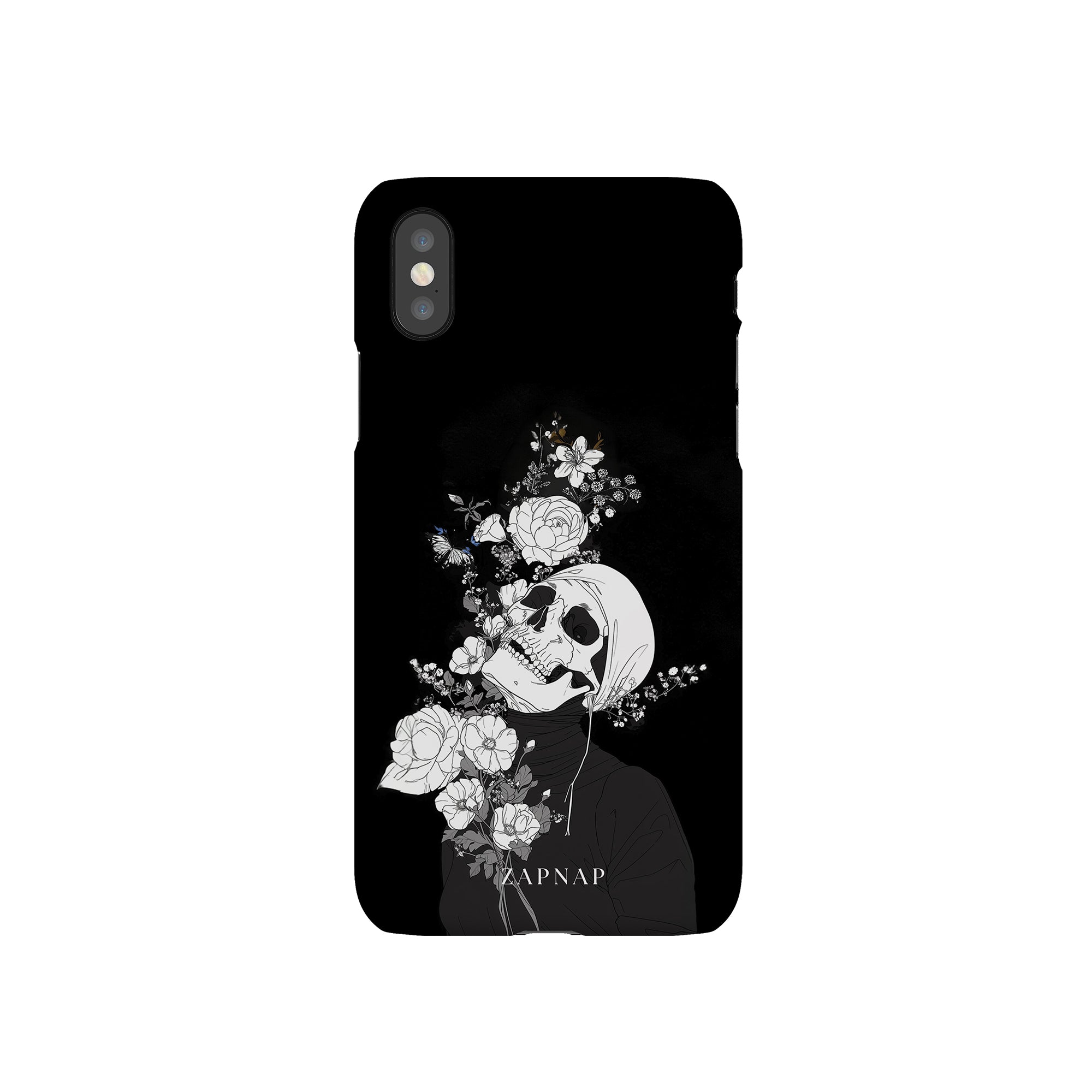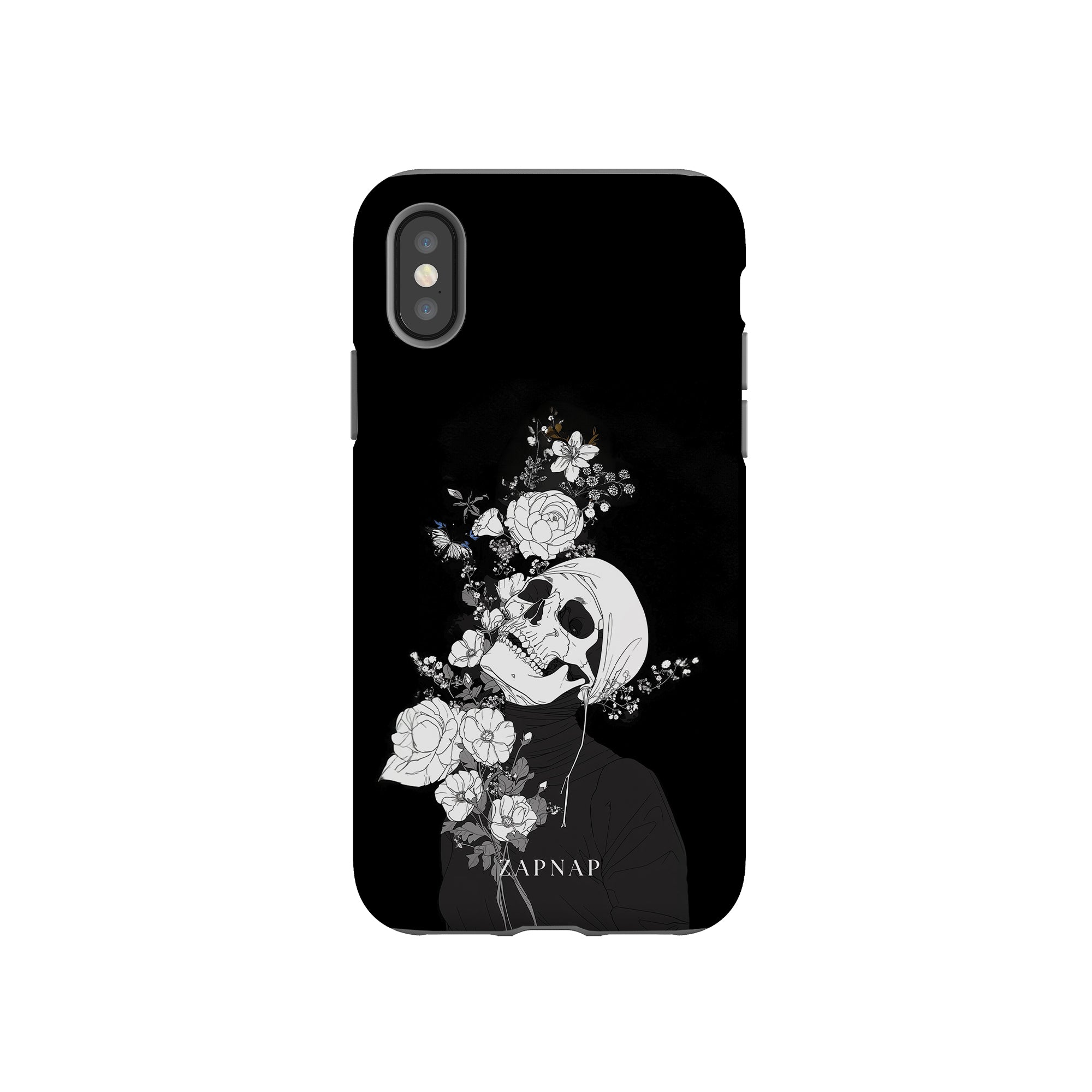 Veil of Petals toont een schedel omringd door een prachtige reeks bloemen, weergegeven in een opvallend zwart-wit palet. Dit gotische schilderij benadrukt de harmonie tussen leven en dood en biedt een visueel verbluffend en tot nadenken stemmend stuk dat de voorbijgaande schoonheid van het bestaan viert.