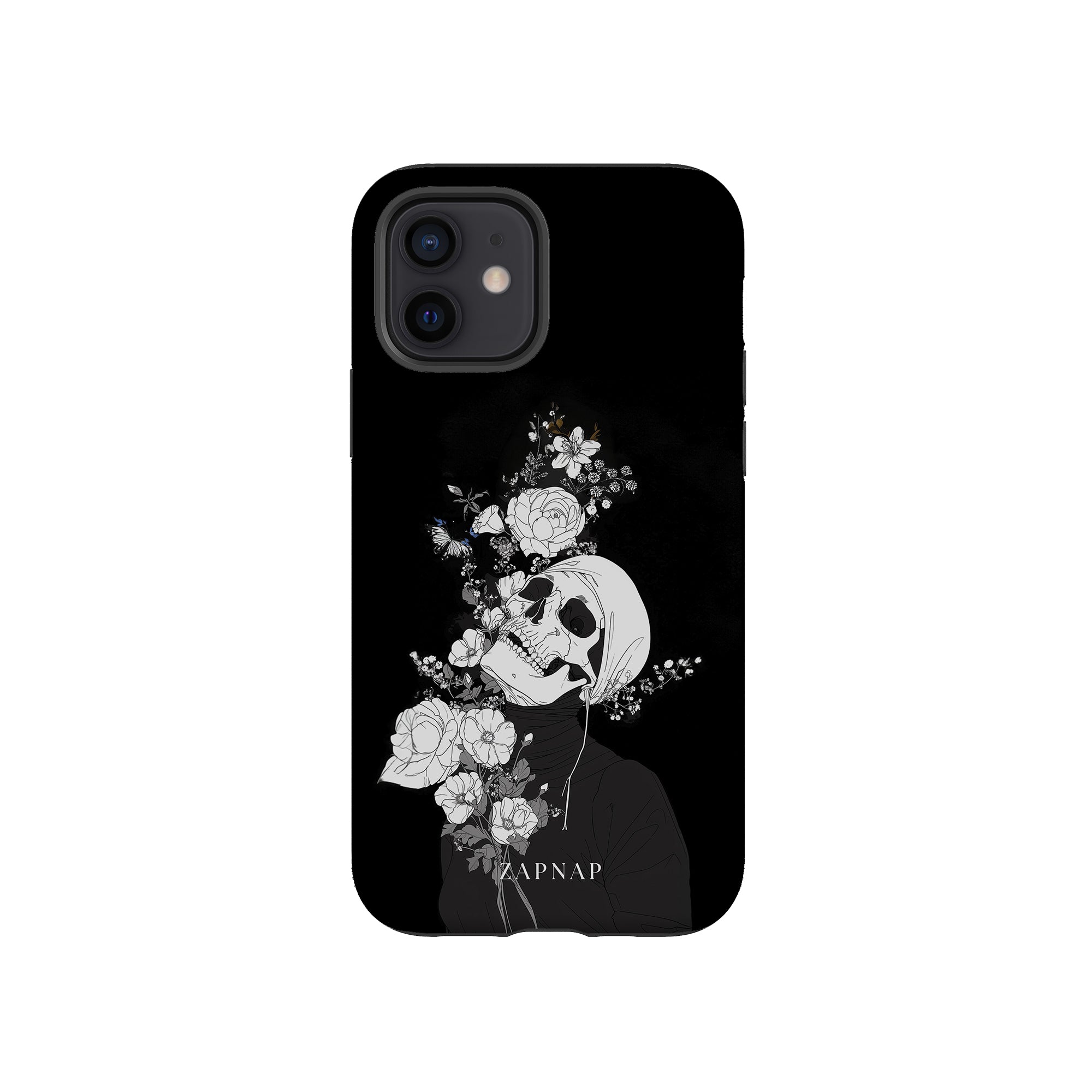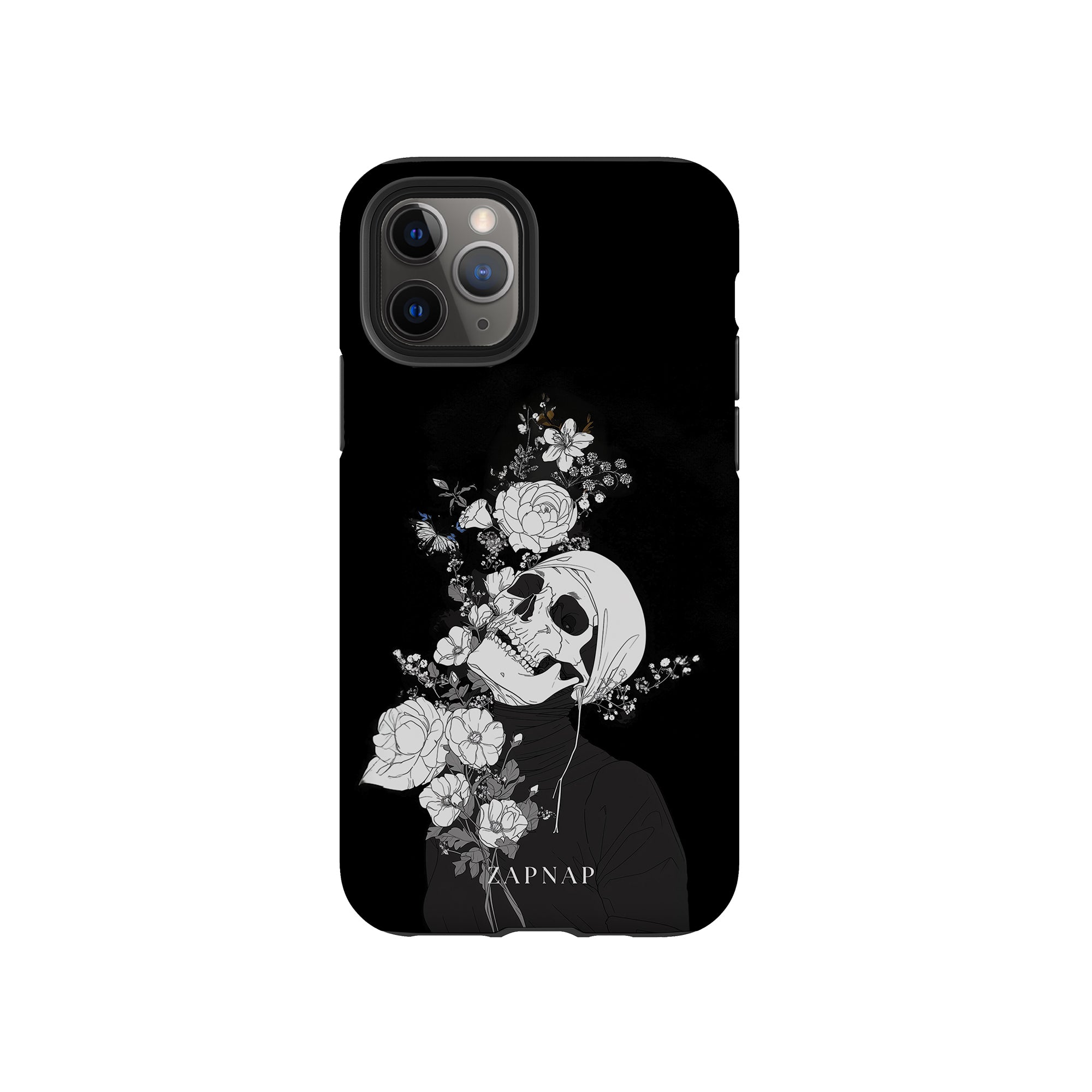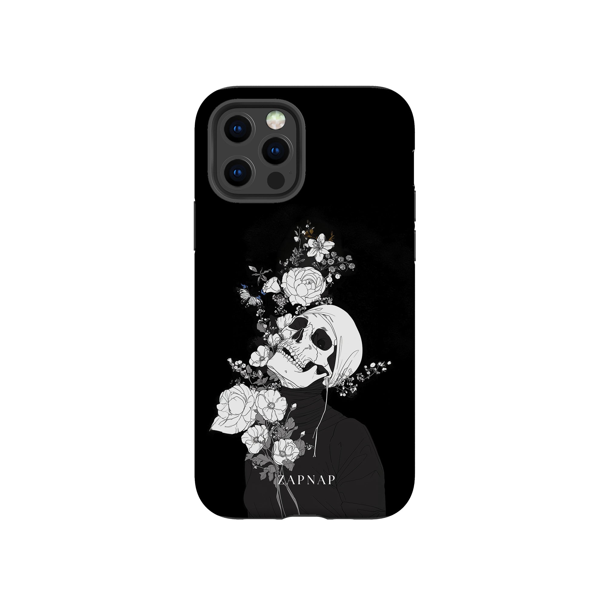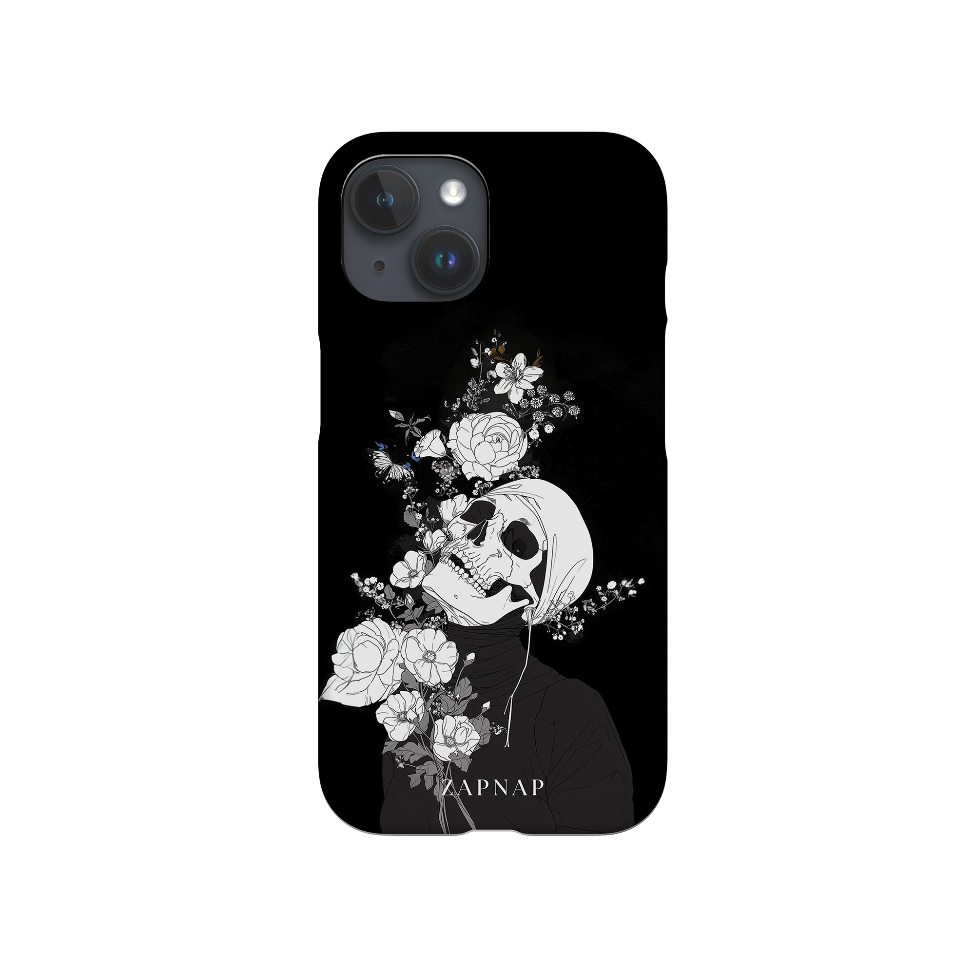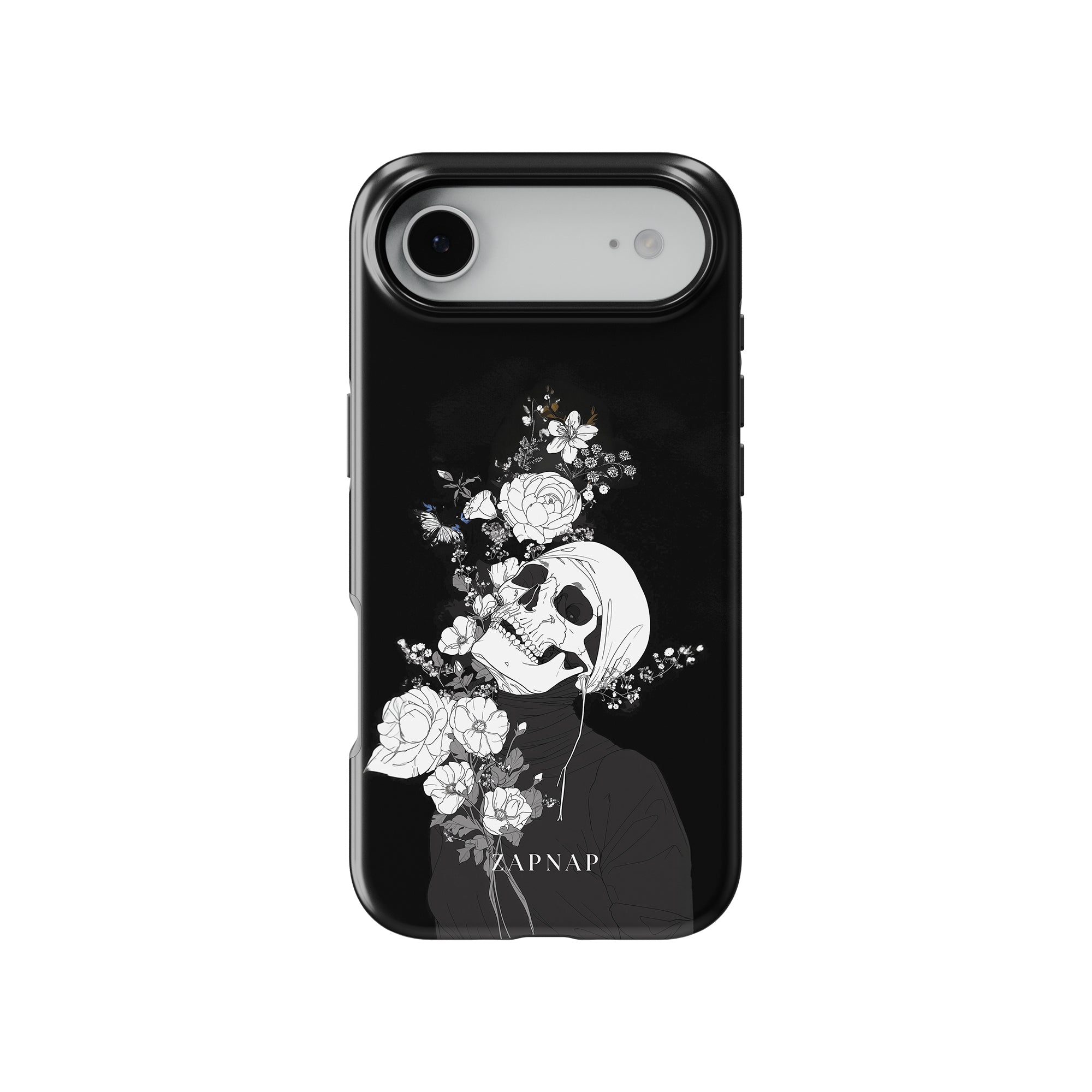 Veil of Petals toont een schedel omringd door een prachtige reeks bloemen, weergegeven in een opvallend zwart-wit palet. Dit gotische schilderij benadrukt de harmonie tussen leven en dood en biedt een visueel verbluffend en tot nadenken stemmend stuk dat de voorbijgaande schoonheid van het bestaan viert.