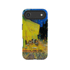 "Caféterras bij nacht" van Vincent van Gogh is een levendig schilderij dat een bruisend avondtafereel uitbeeldt in een café in Arles, Frankrijk. Het kunstwerk staat bekend om zijn gedurfde kleurgebruik en dynamische compositie, waardoor de warmte en levendigheid van het café onder een sterrenhemel worden vastgelegd.