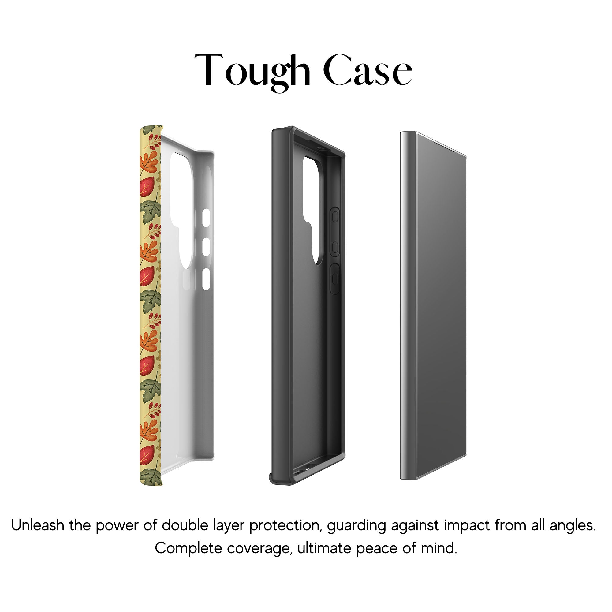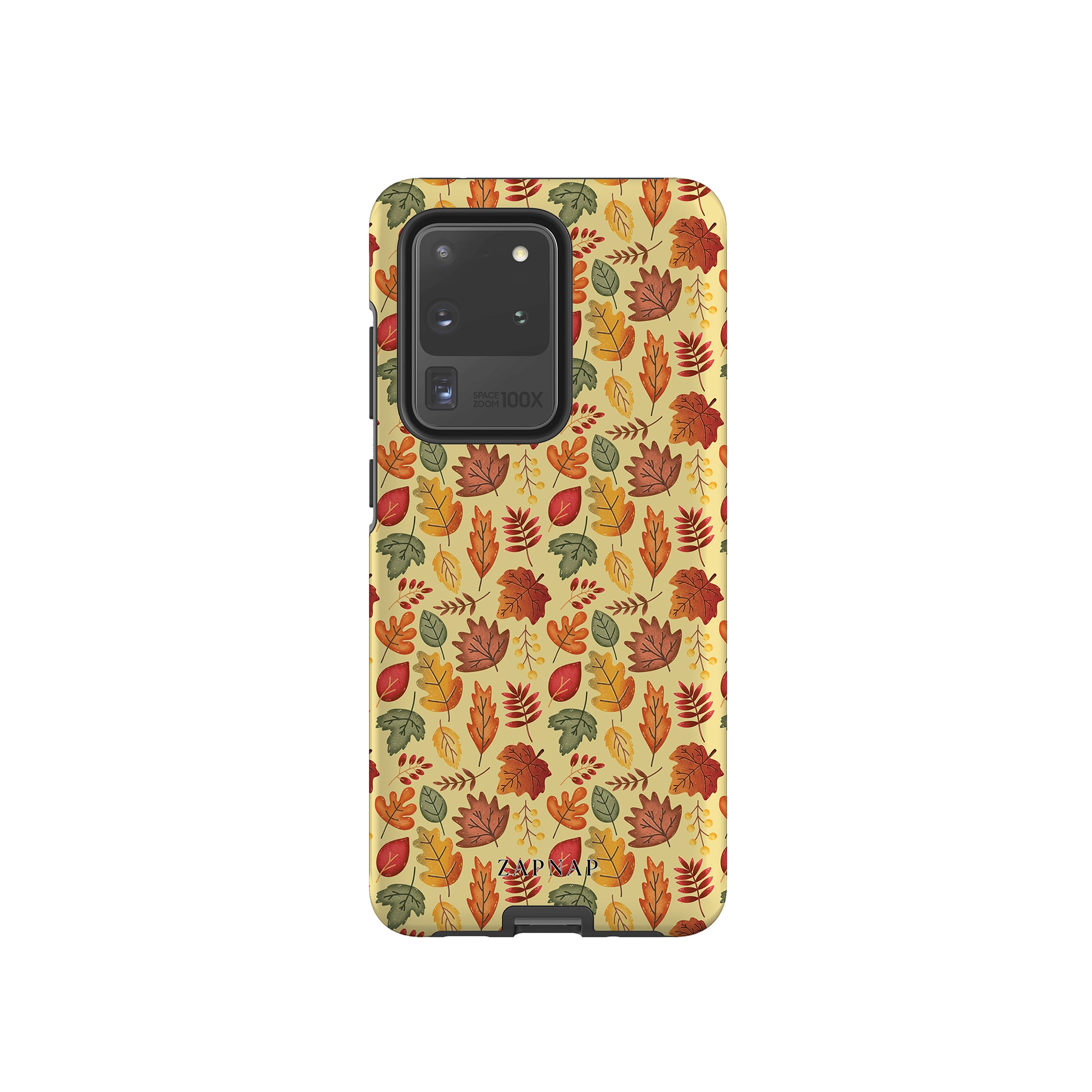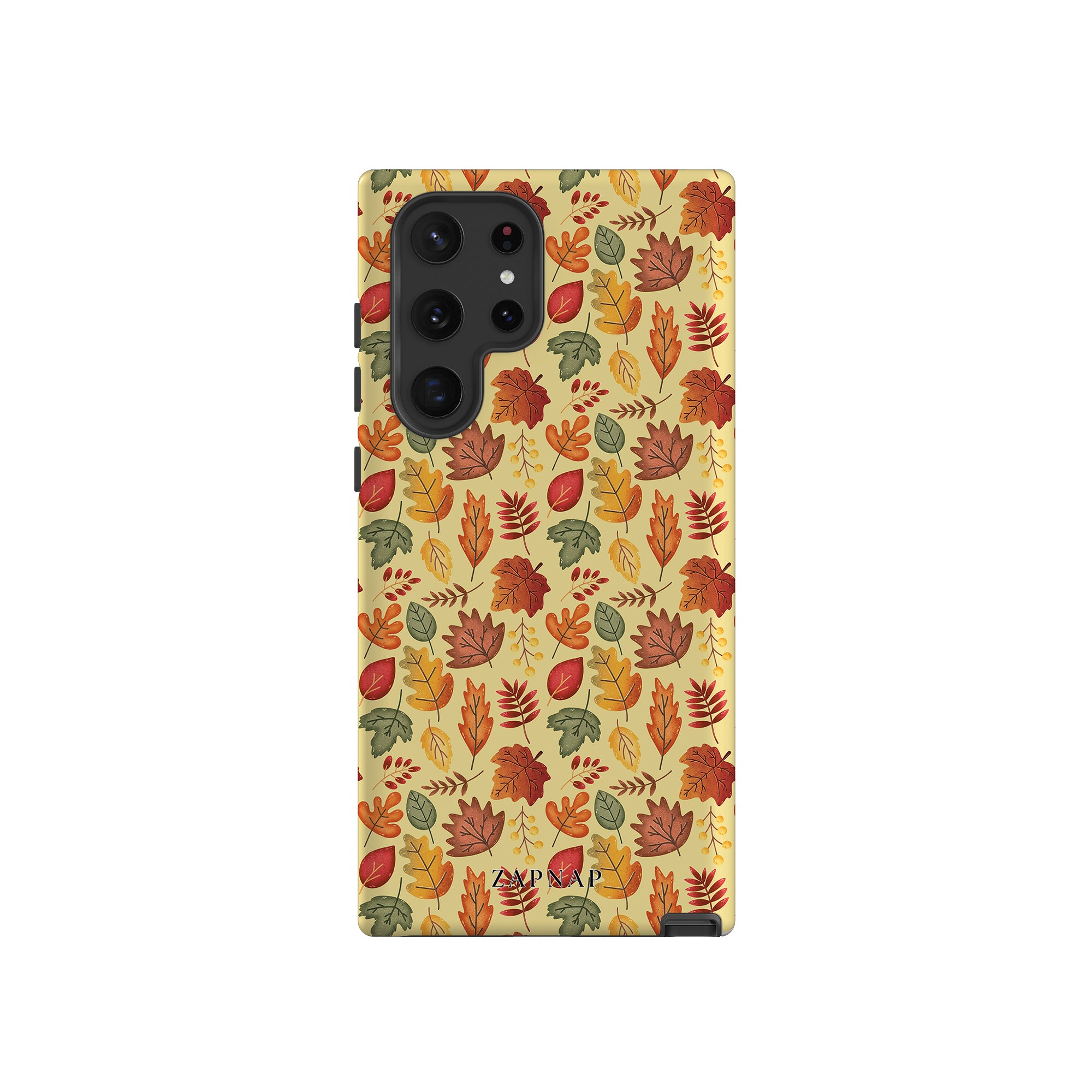 Het 'Golden Grove'-ontwerp bestaat uit een elegante reeks kleurrijke bladeren in de kleuren rood, oranje, groen en geel, verspreid over een zachte crèmekleurige achtergrond. Het straalt een natuurlijke, aardse charme uit, perfect om een warme, op de natuur geïnspireerde toets aan elk item toe te voegen.