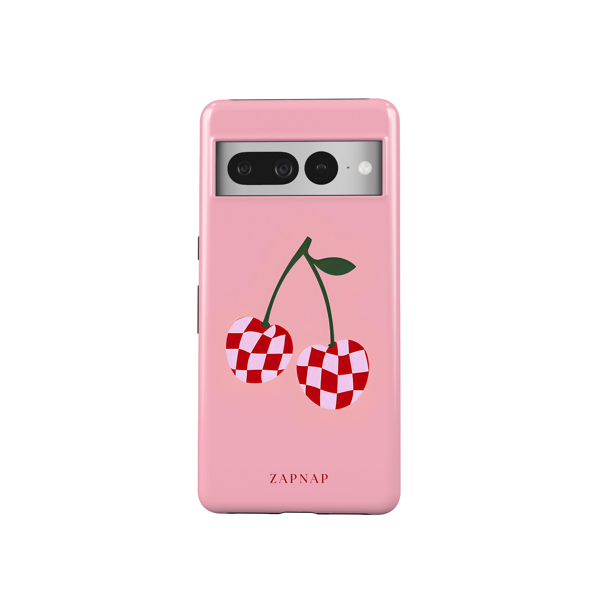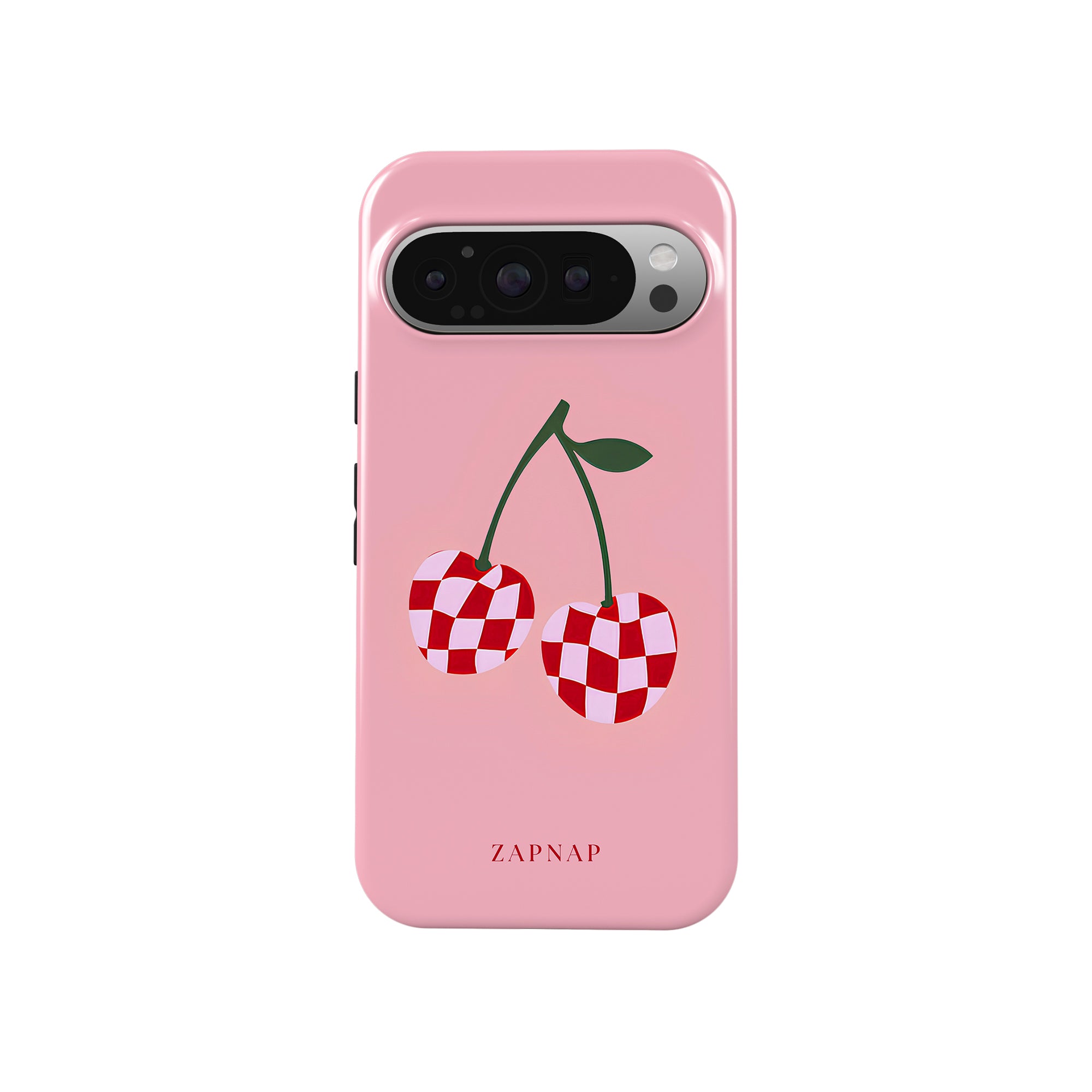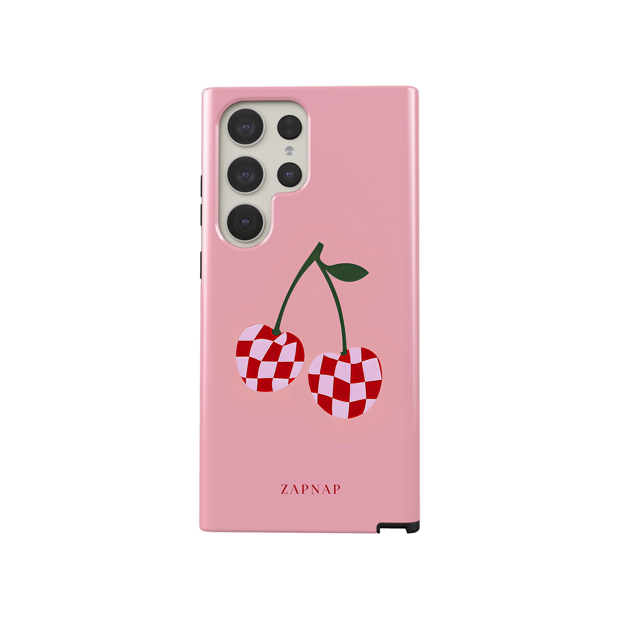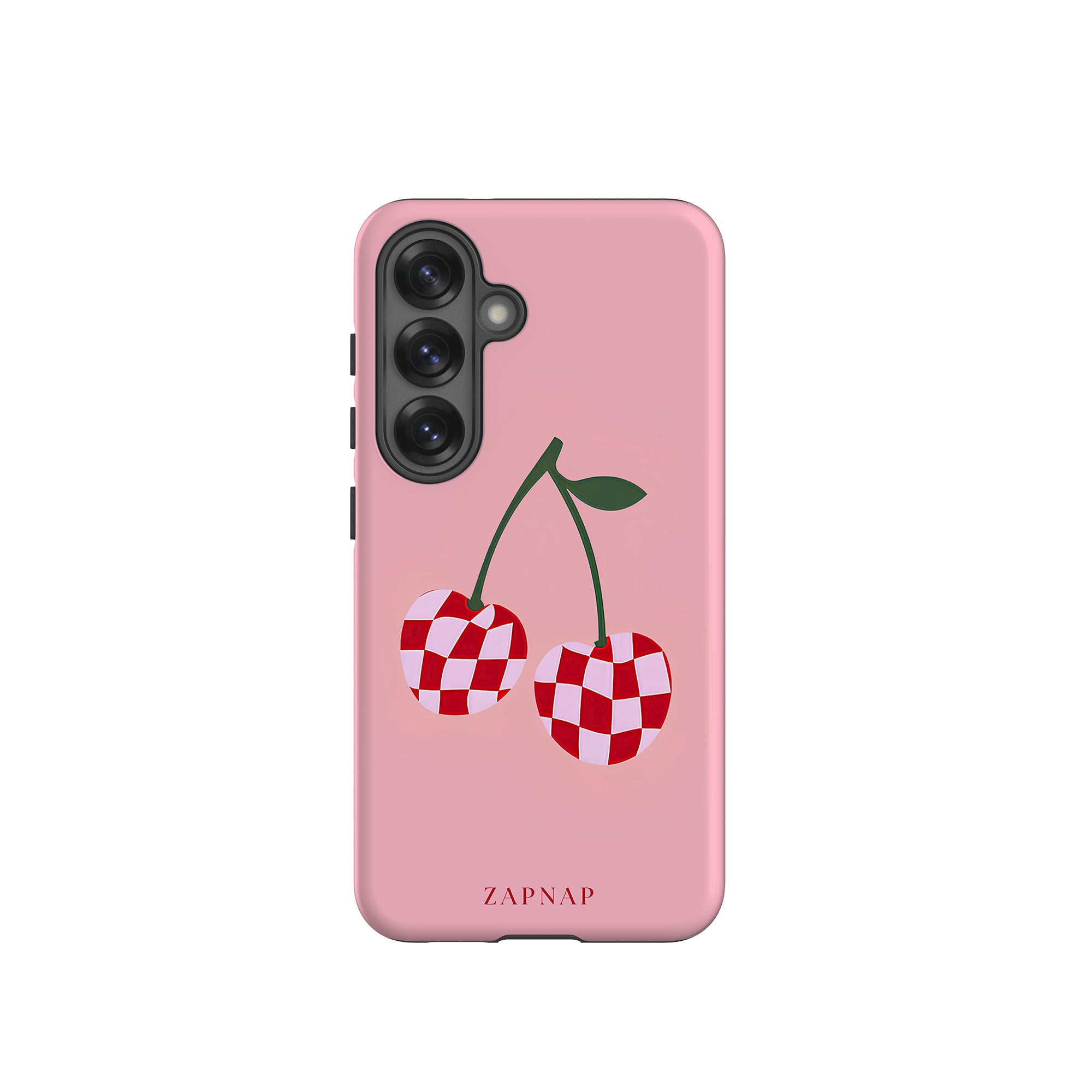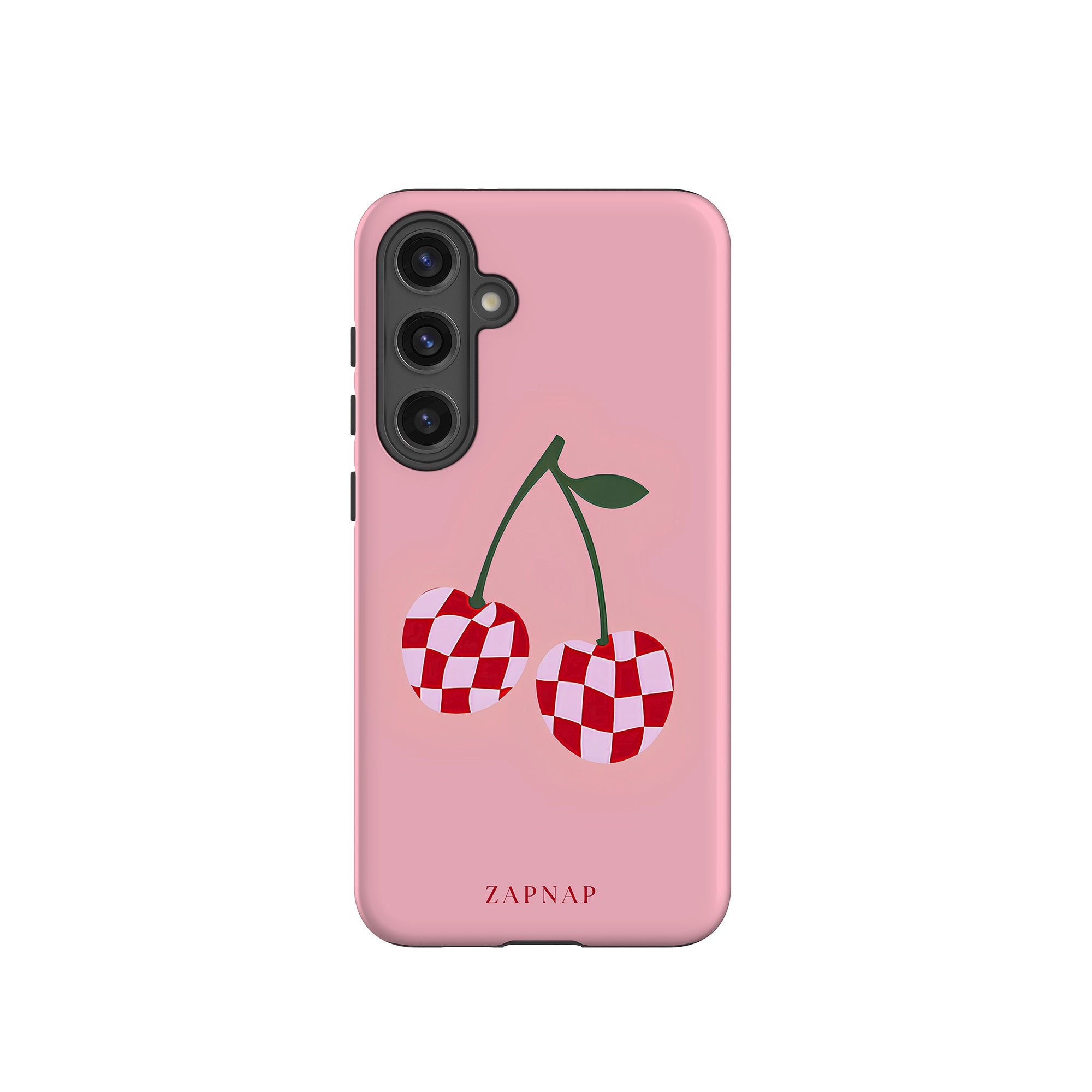Lief, stoer en oh zo speels! Het 'Cherrish'-ontwerp bevat levendige, geruite kersen op een zachtroze achtergrond en combineert retro charme met een moderne twist. Dit ontwerp is perfect voor iedereen die houdt van een vleugje plezier en een vleugje kleur. Het zal zeker een opvallende verschijning zijn in elk publiek.