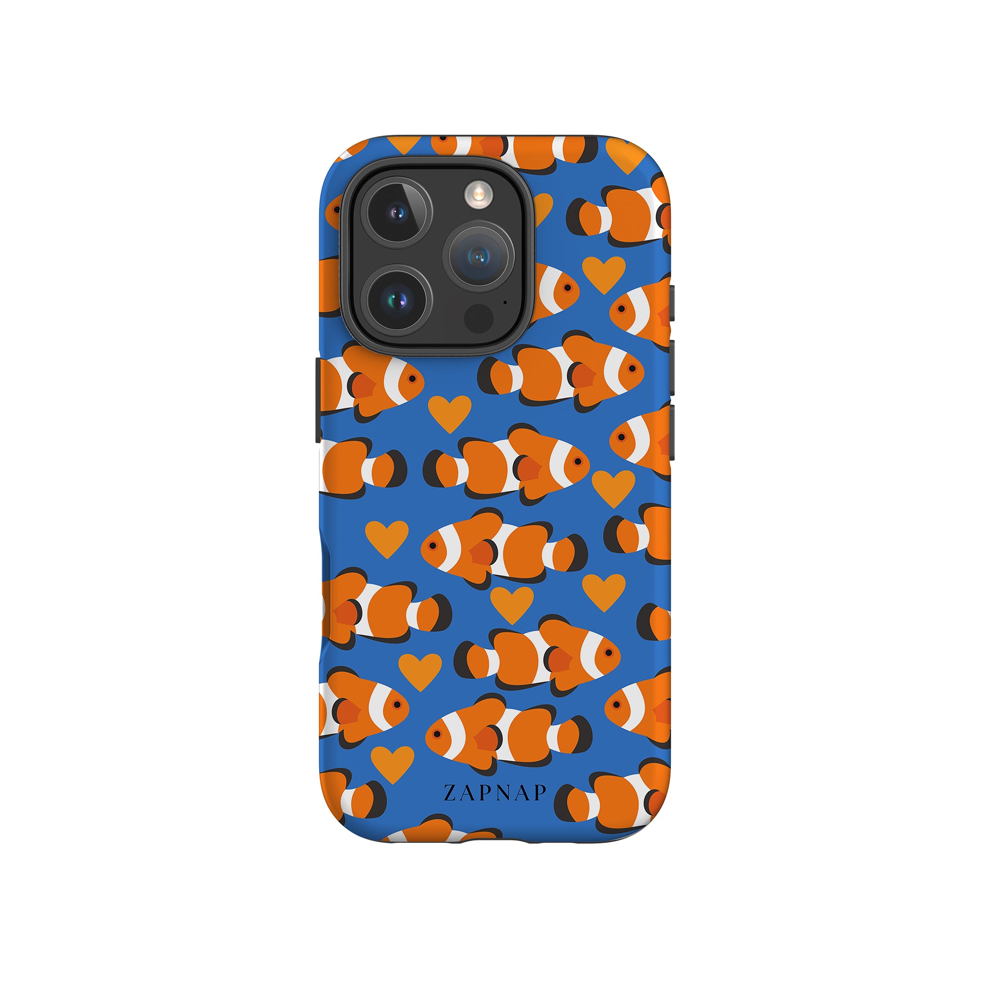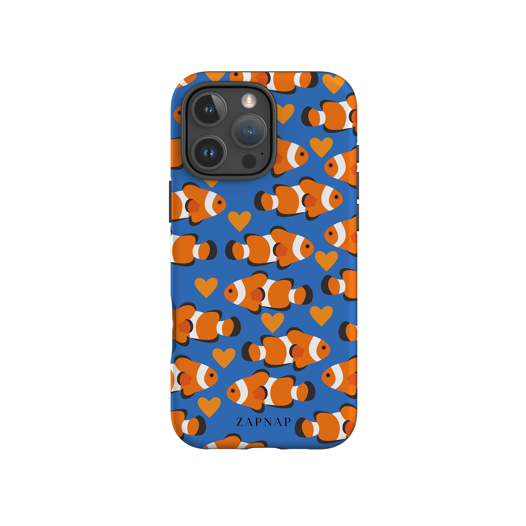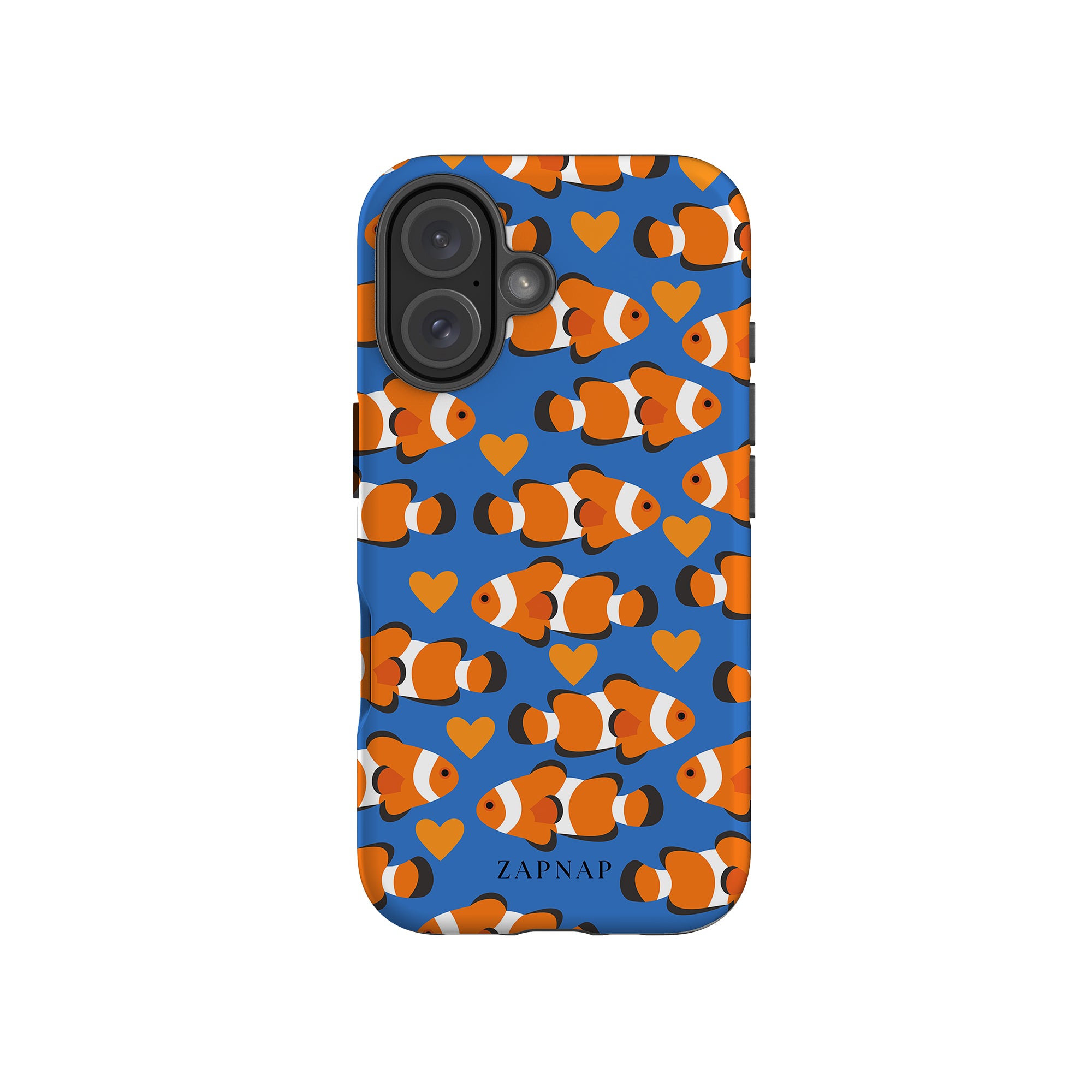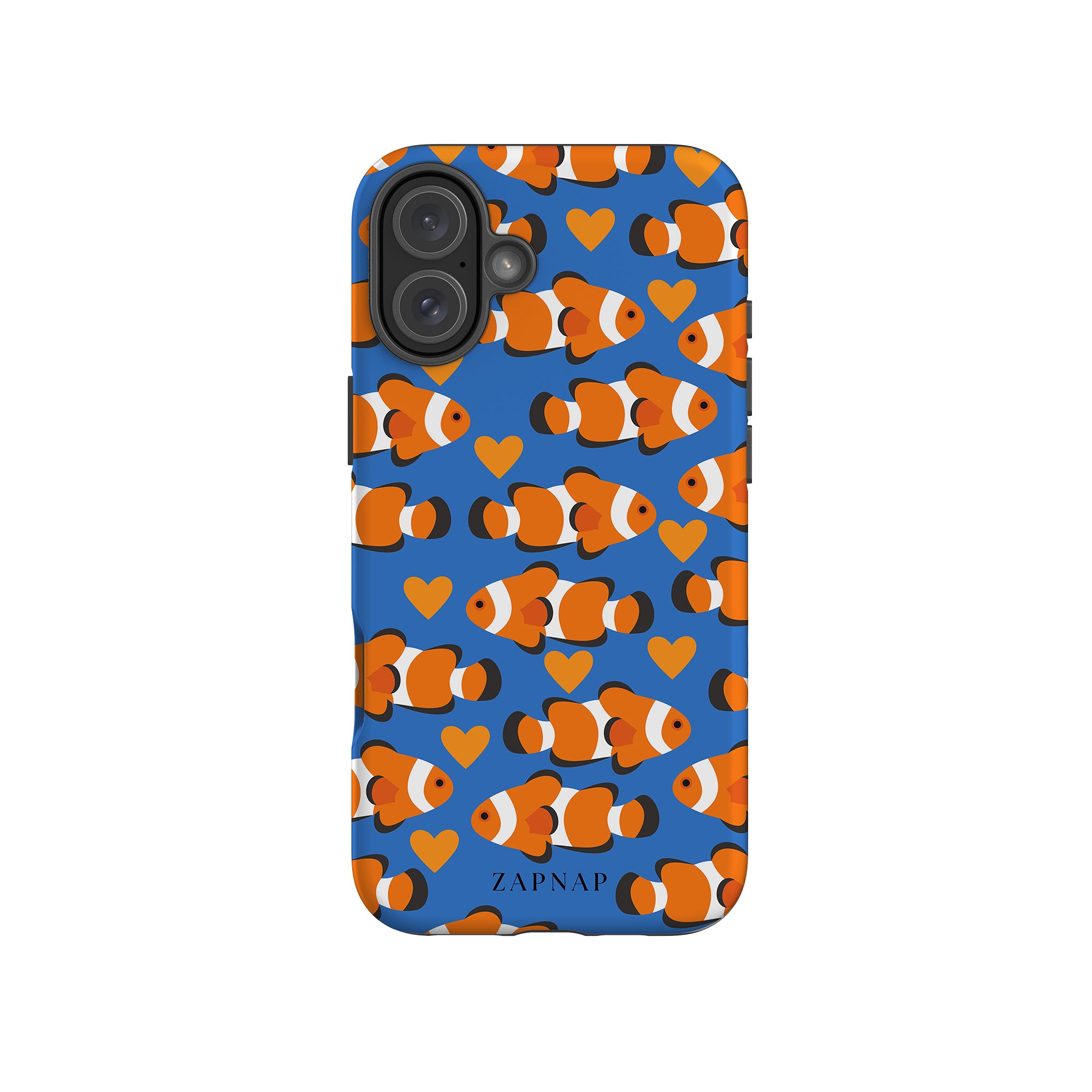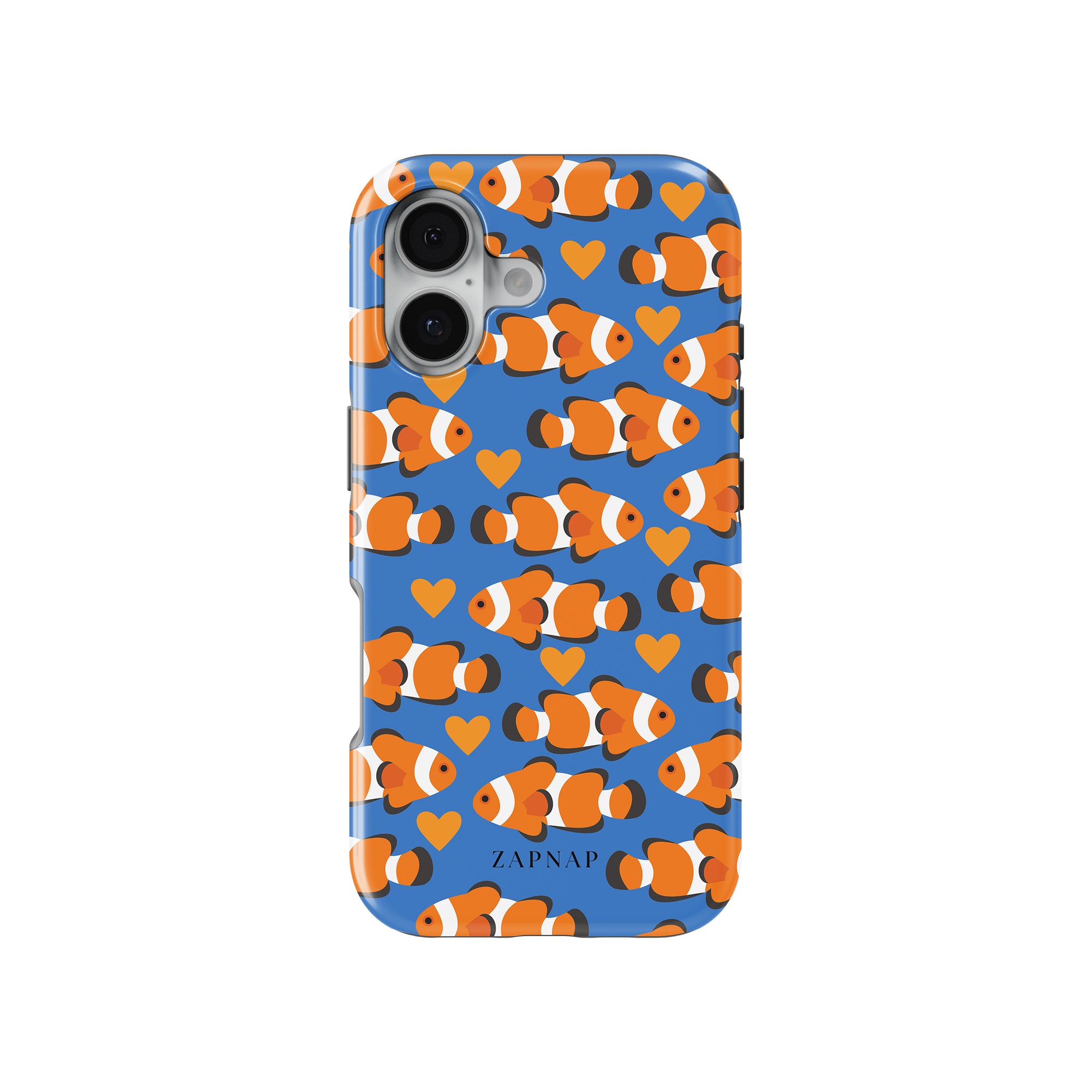 Dit speelse en levendige ontwerp bevat schattige oranje en witte clownvisjes die over een heldere blauwe achtergrond zwemmen, afgewisseld met vrolijke hartvormen. De speelse indeling en gedurfde kleuren roepen een gevoel van vreugde en de wonderen van het onderwaterleven op. Perfect voor oceaanliefhebbers of iedereen die op zoek is naar een ontwerp vol charme en warmte!
