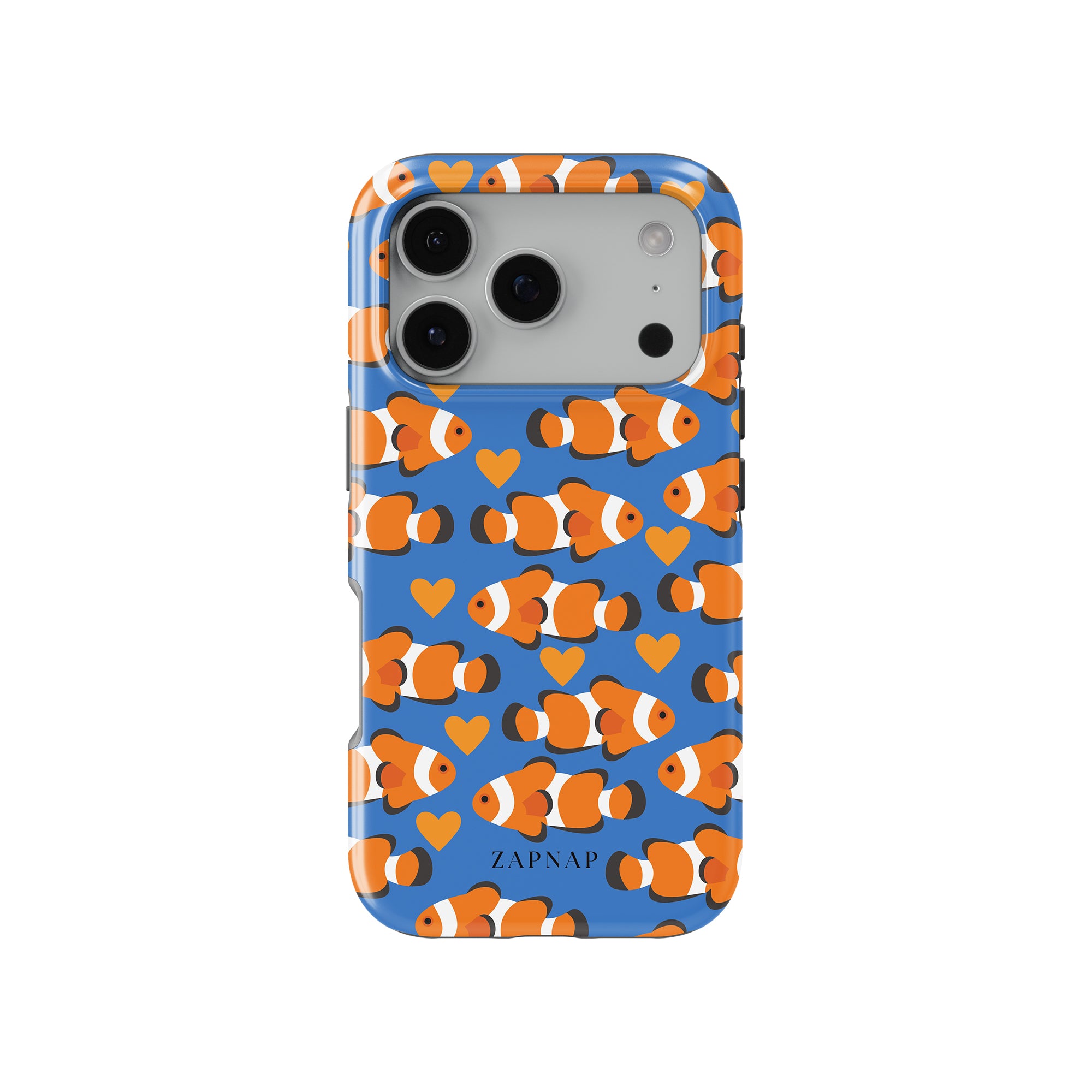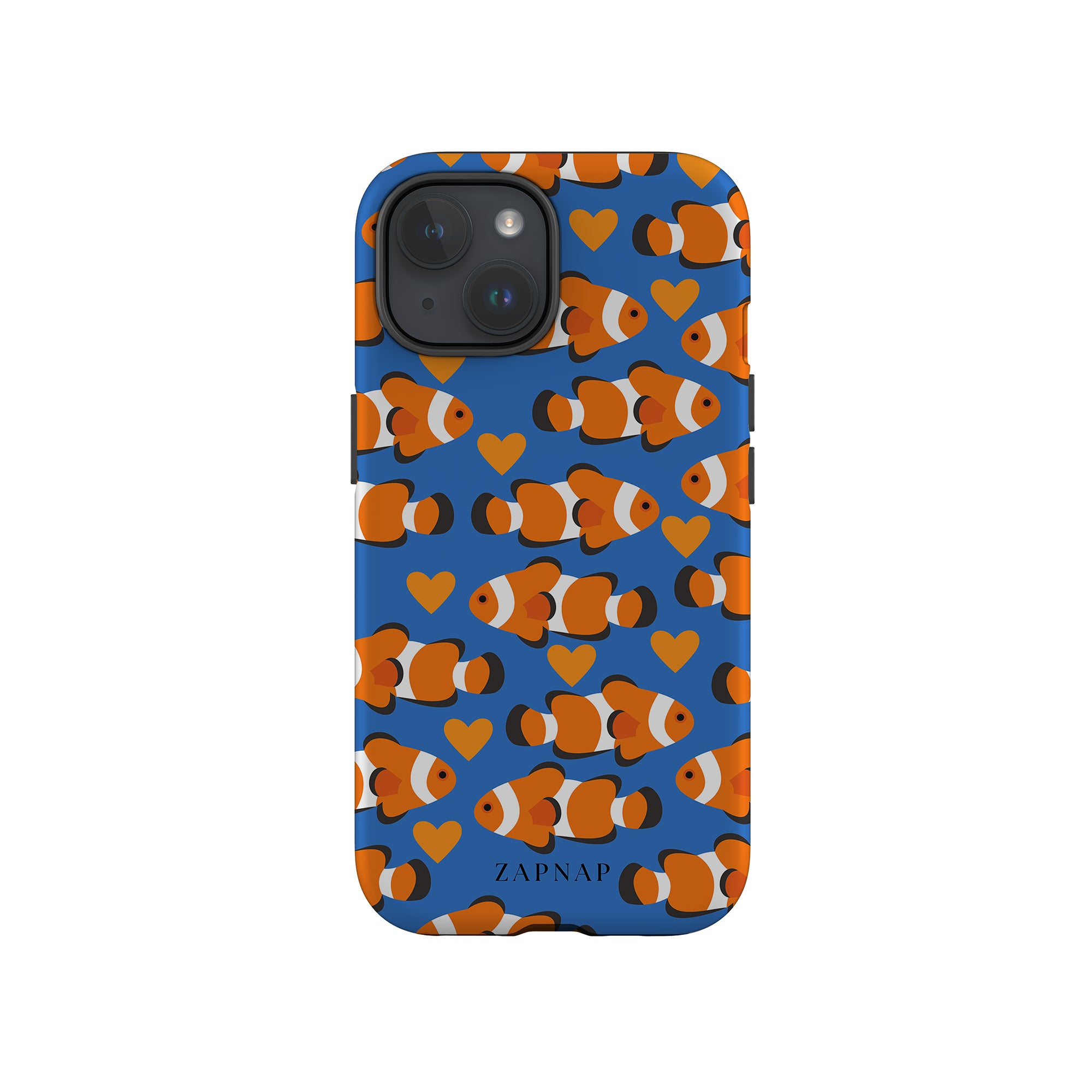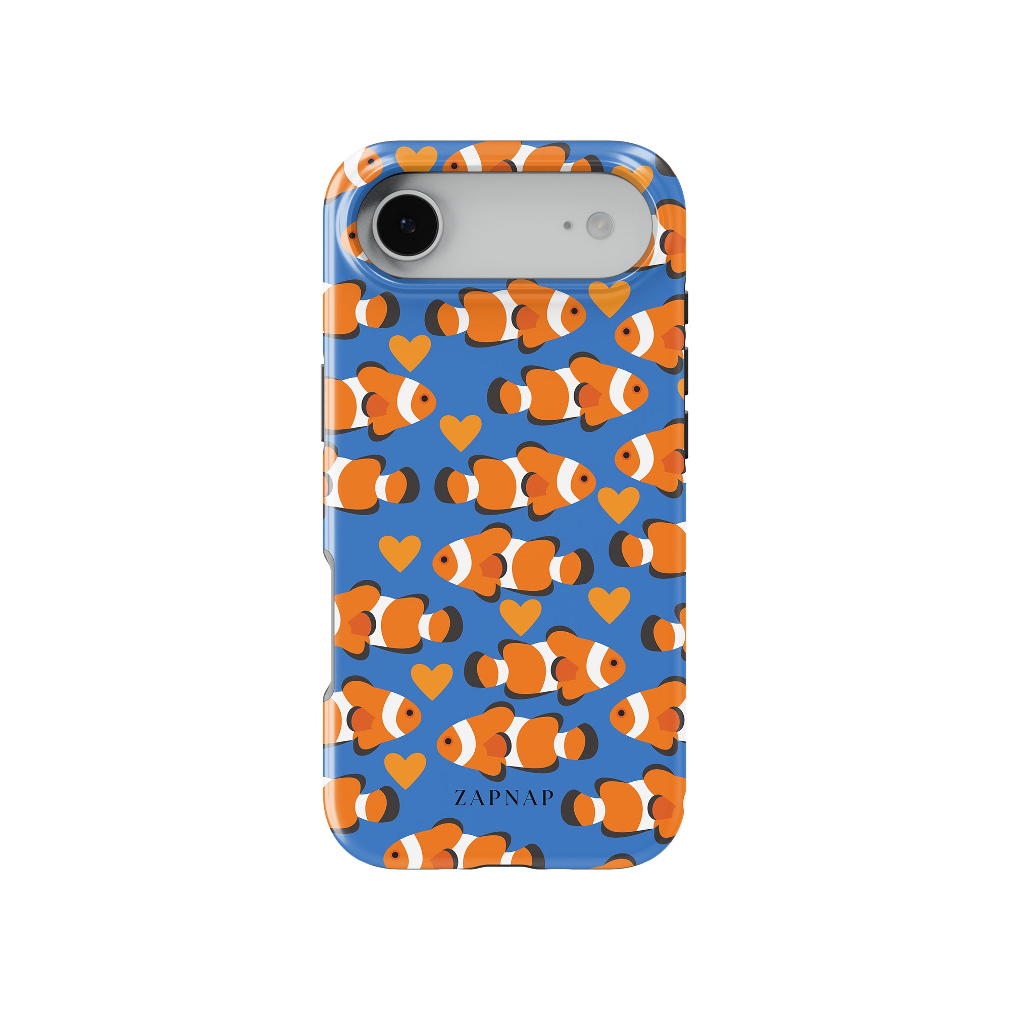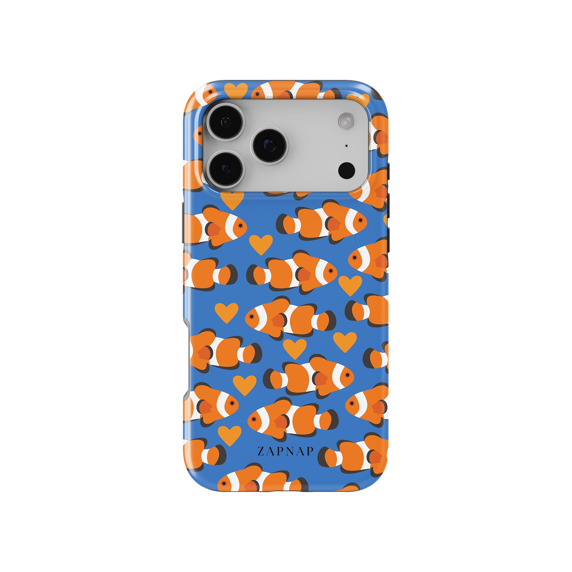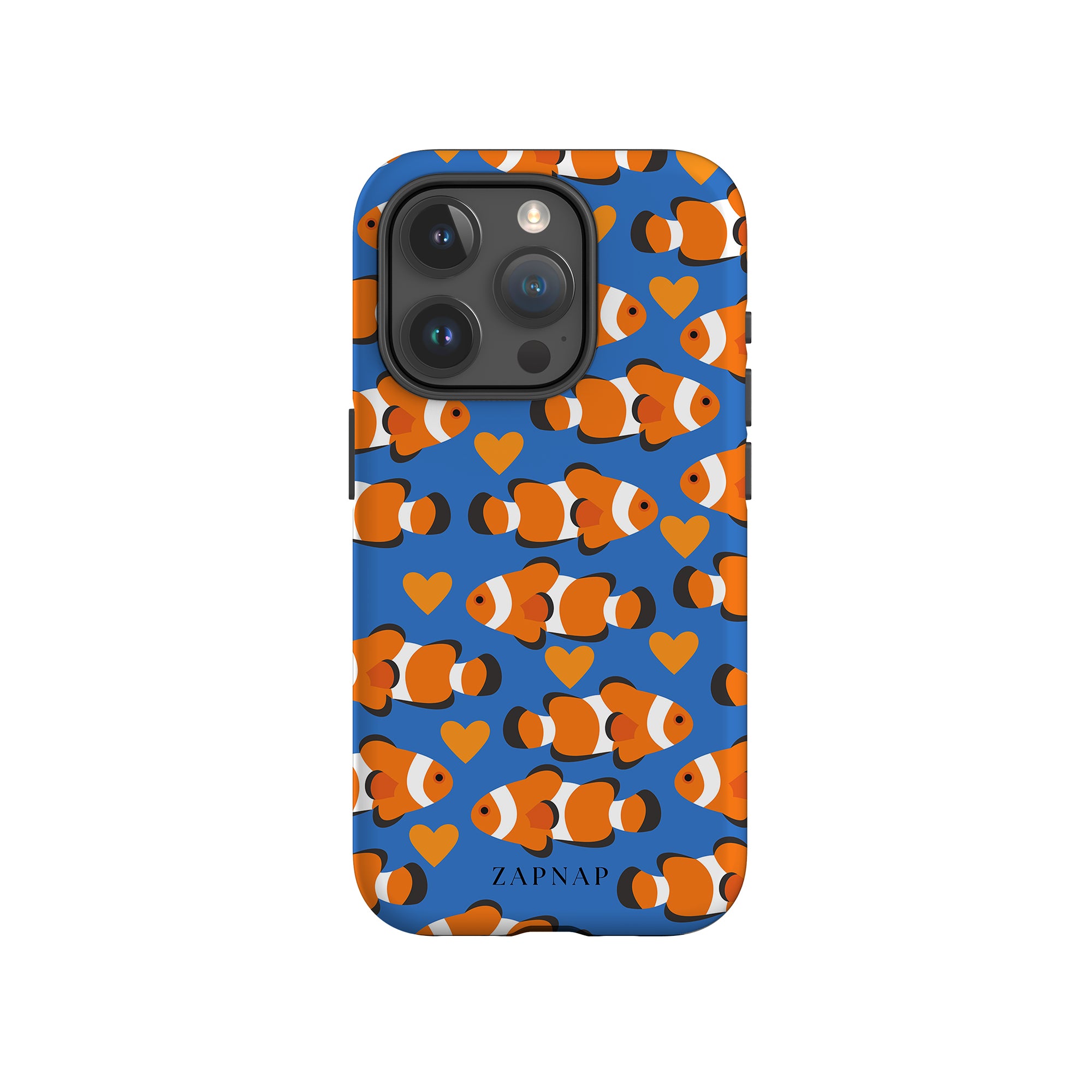 Dit speelse en levendige ontwerp bevat schattige oranje en witte clownvisjes die over een heldere blauwe achtergrond zwemmen, afgewisseld met vrolijke hartvormen. De speelse indeling en gedurfde kleuren roepen een gevoel van vreugde en de wonderen van het onderwaterleven op. Perfect voor oceaanliefhebbers of iedereen die op zoek is naar een ontwerp vol charme en warmte!