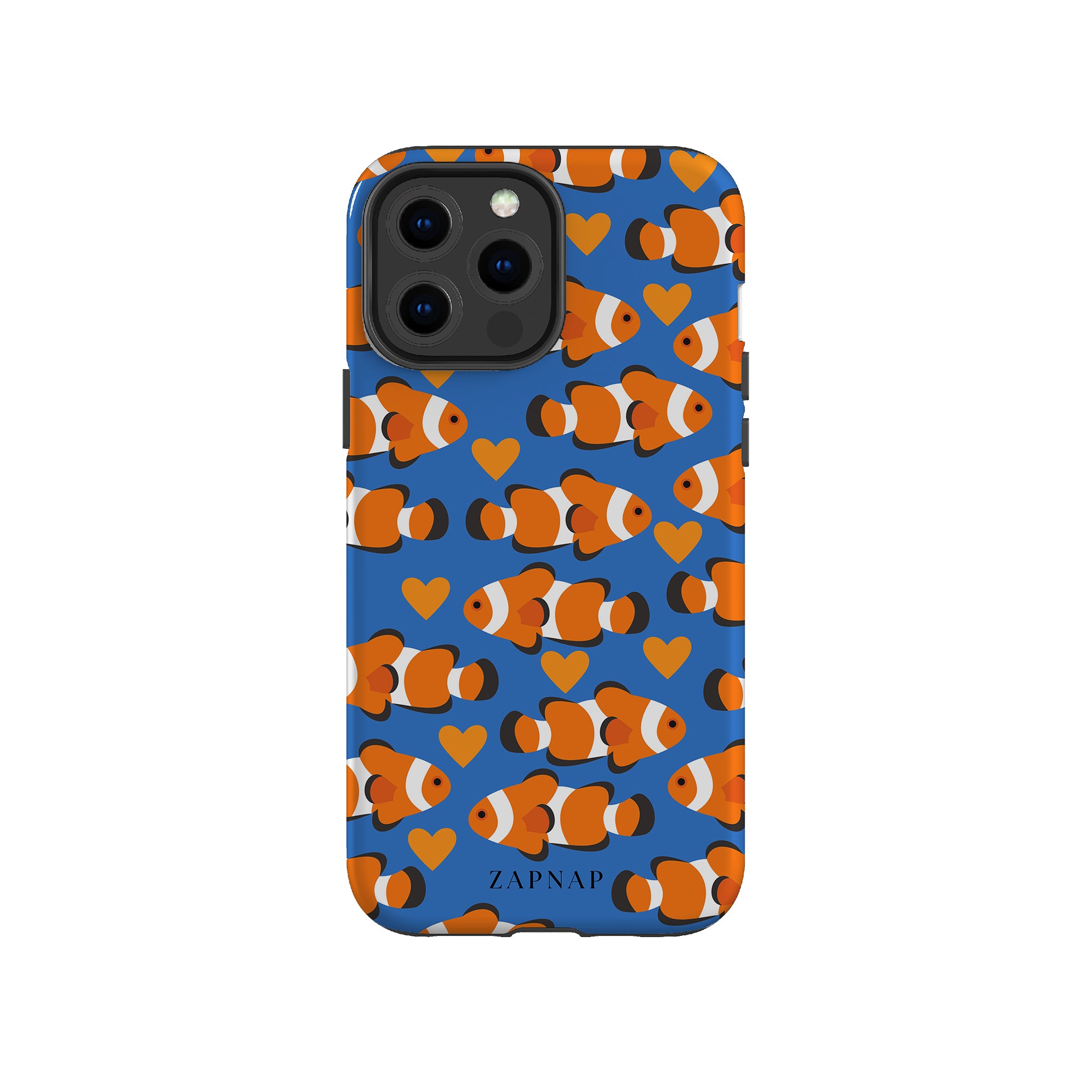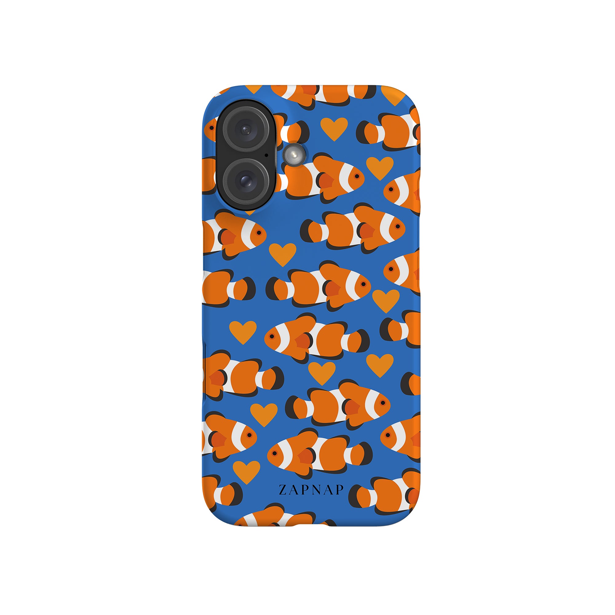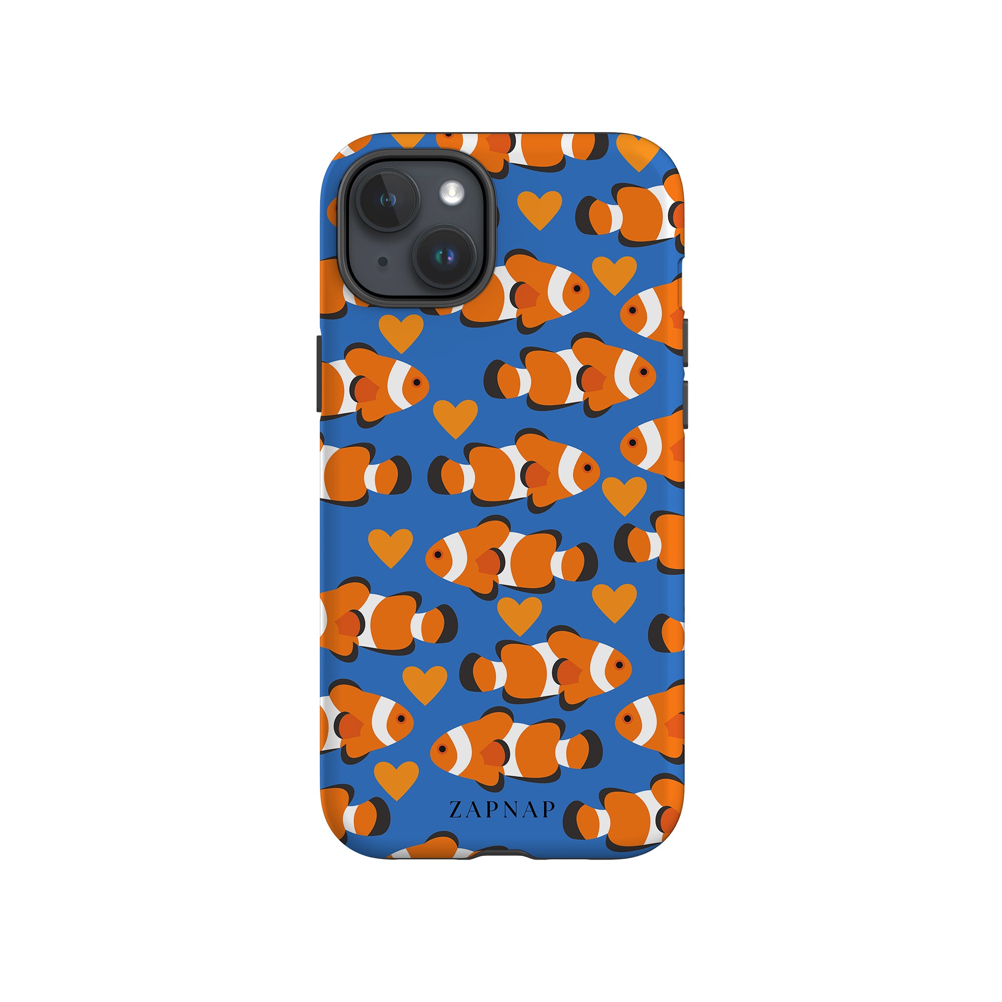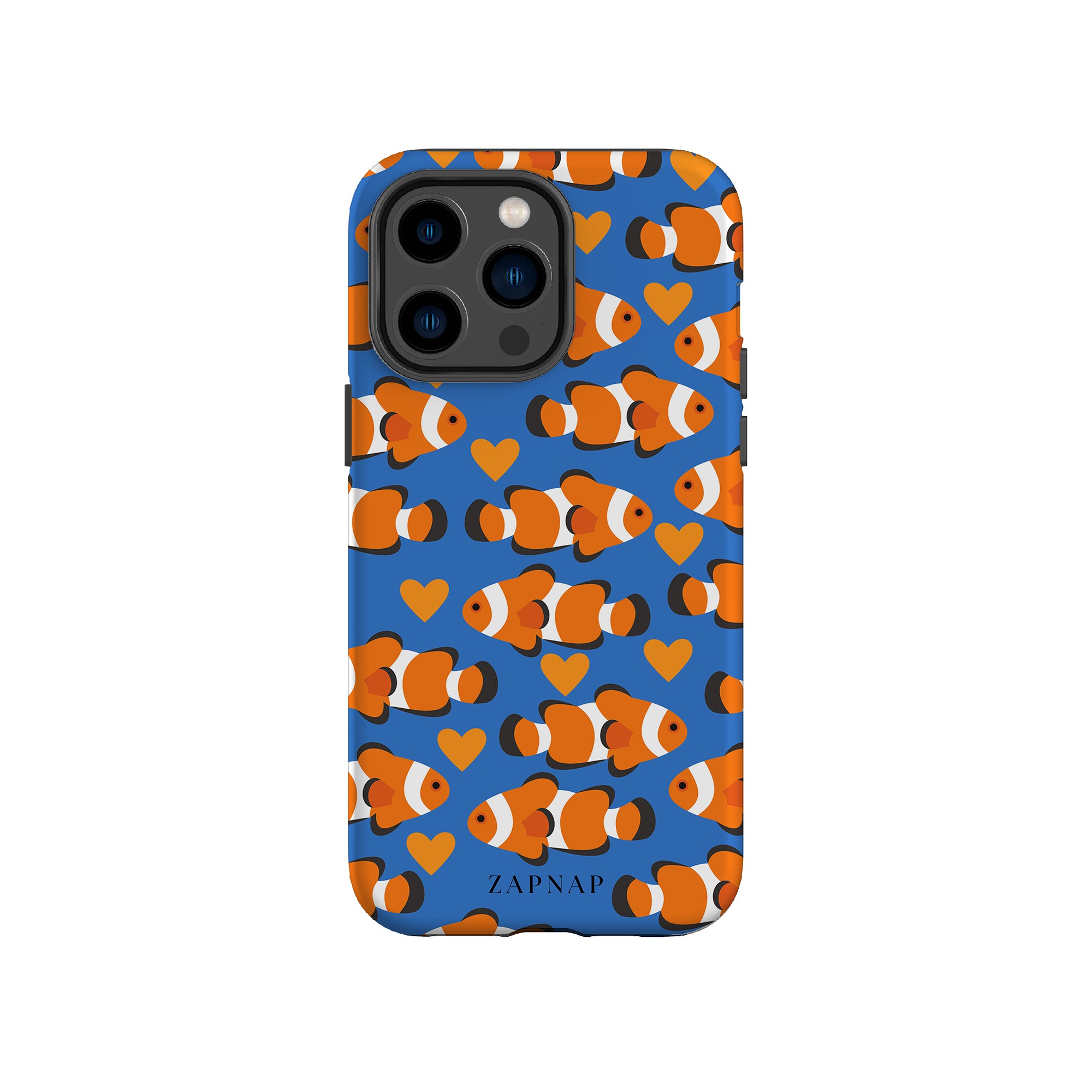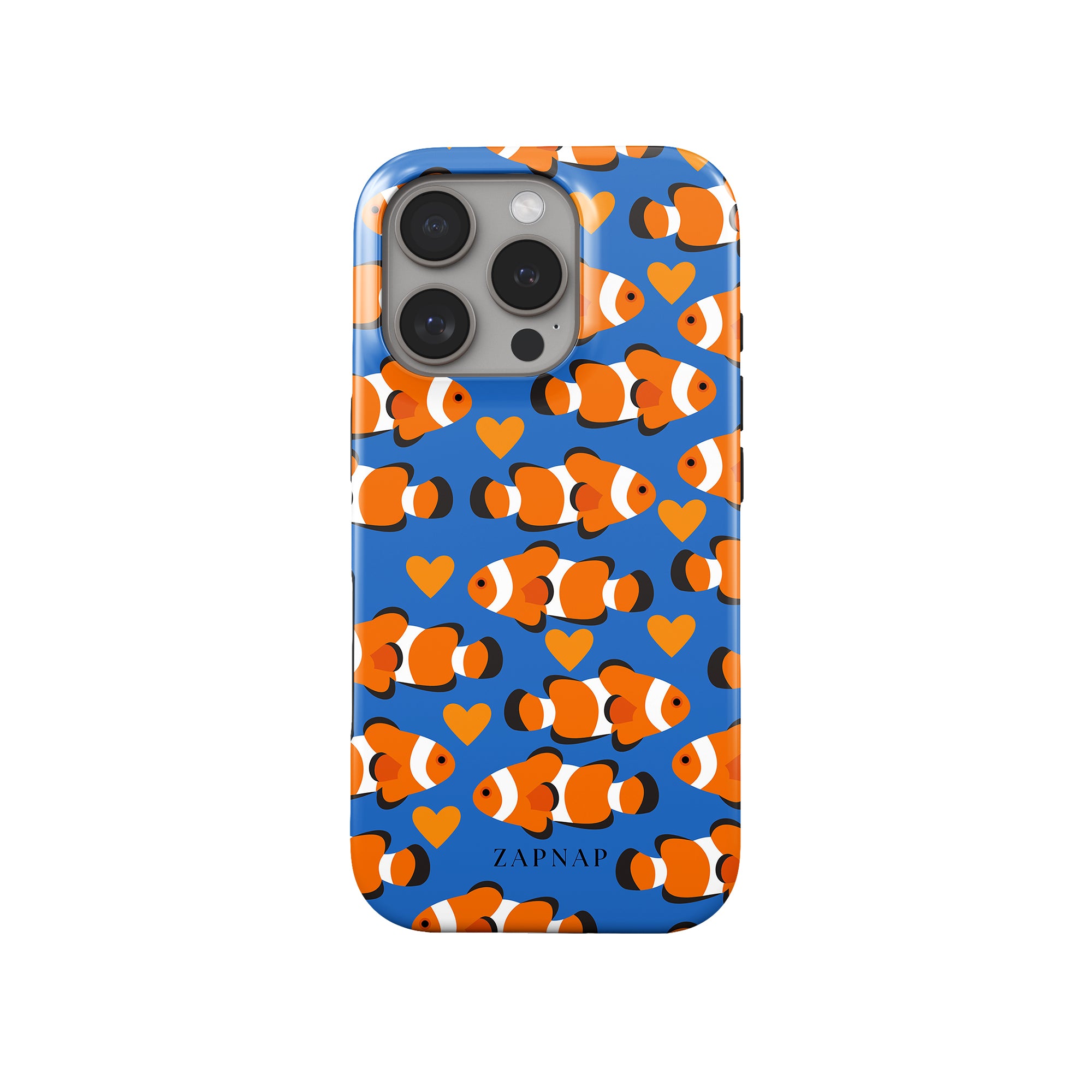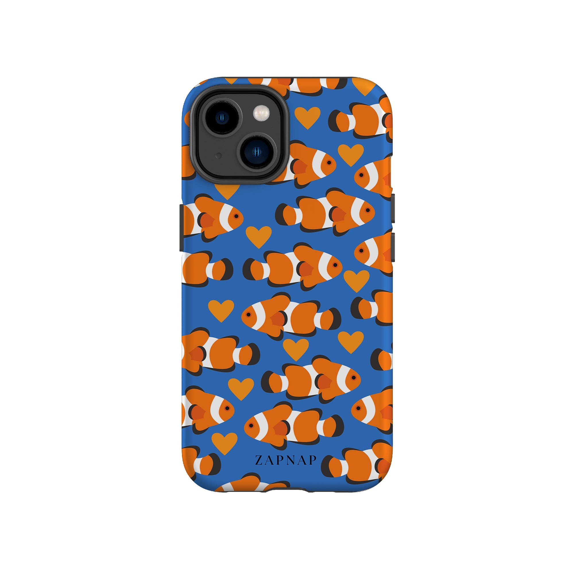 Dit speelse en levendige ontwerp bevat schattige oranje en witte clownvisjes die over een heldere blauwe achtergrond zwemmen, afgewisseld met vrolijke hartvormen. De speelse indeling en gedurfde kleuren roepen een gevoel van vreugde en de wonderen van het onderwaterleven op. Perfect voor oceaanliefhebbers of iedereen die op zoek is naar een ontwerp vol charme en warmte!