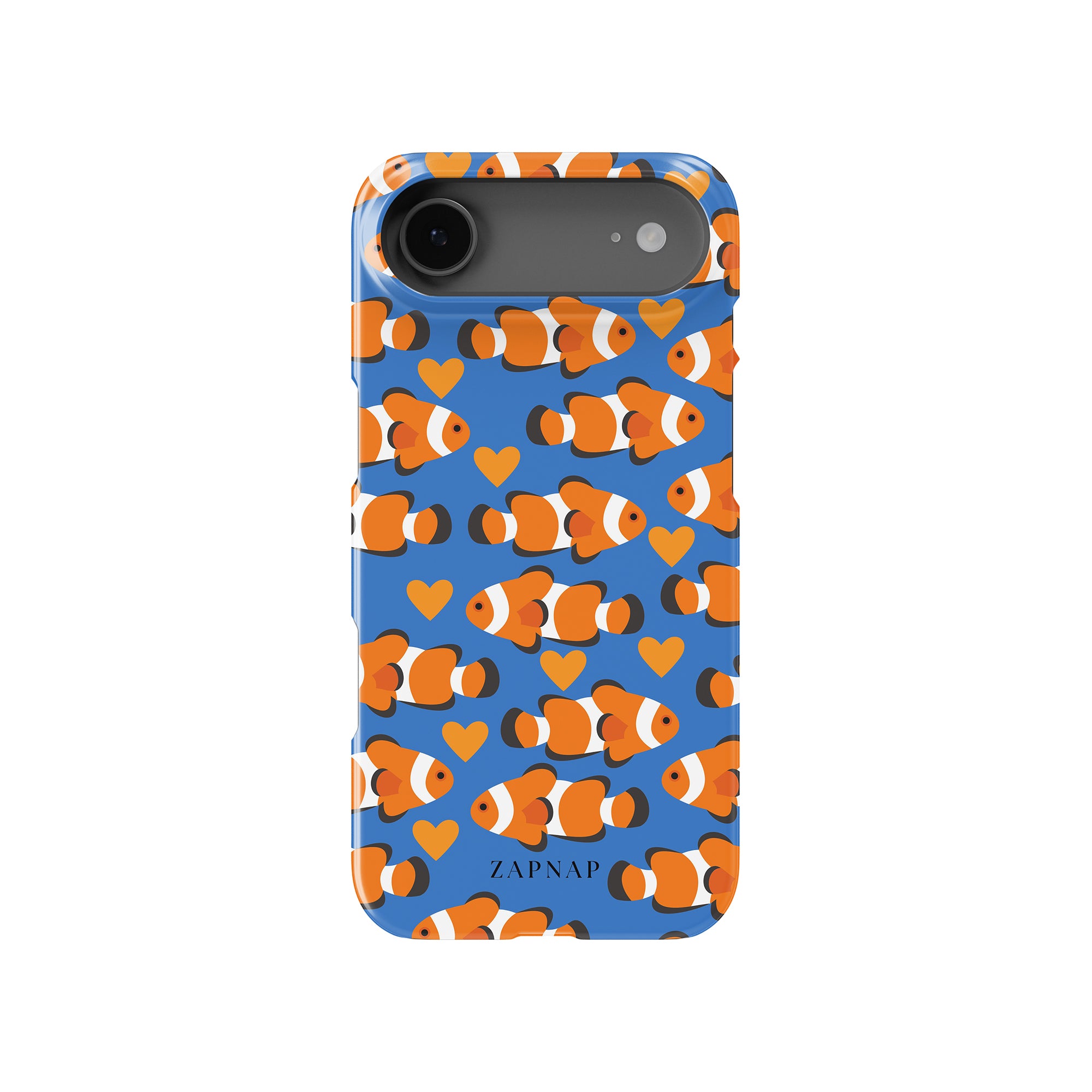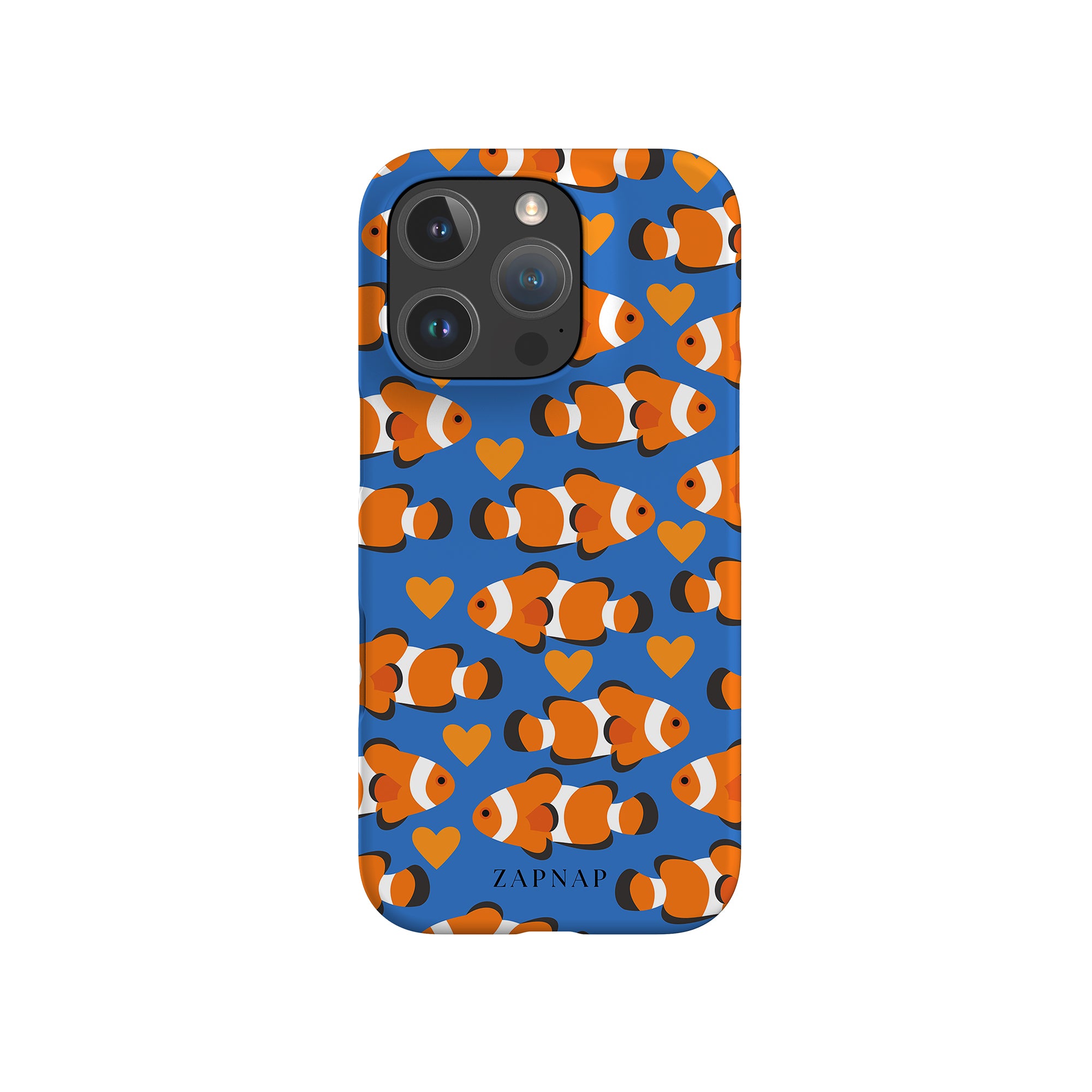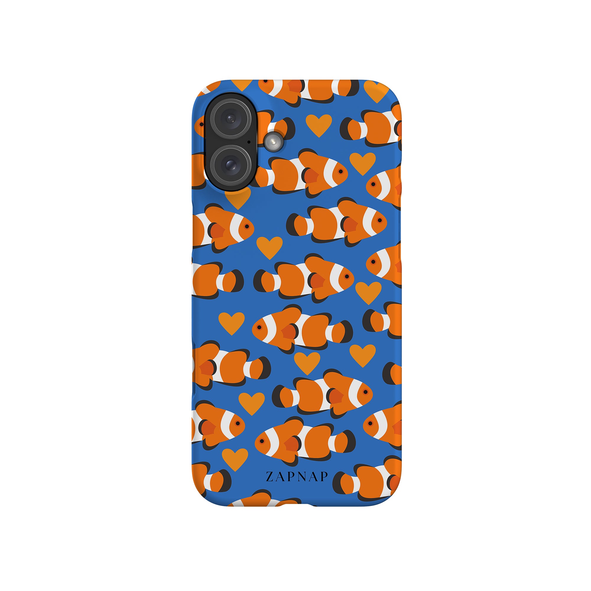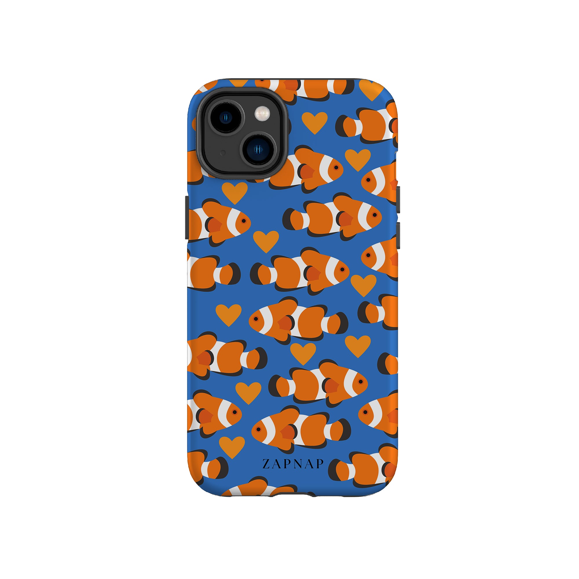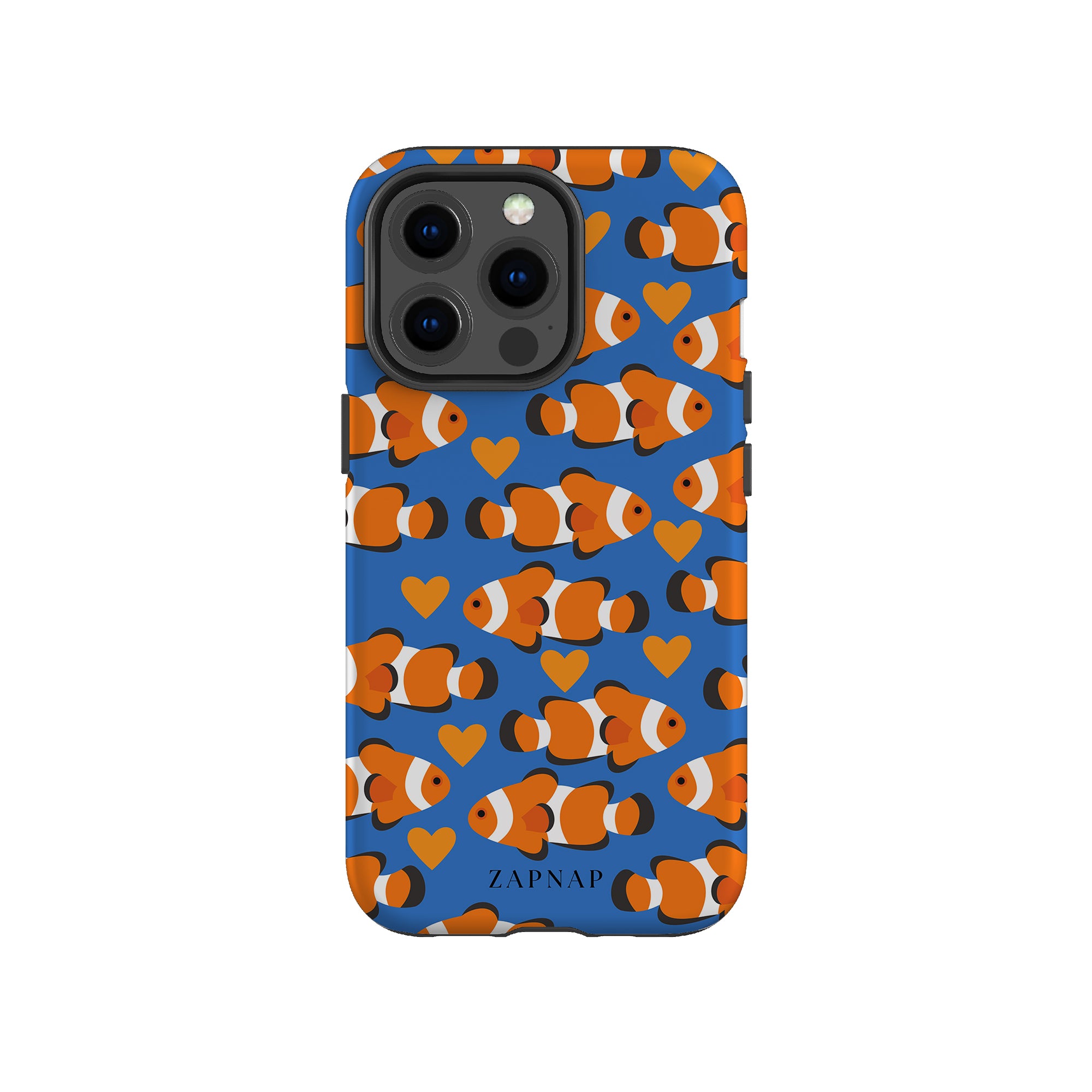 Dit speelse en levendige ontwerp bevat schattige oranje en witte clownvisjes die over een heldere blauwe achtergrond zwemmen, afgewisseld met vrolijke hartvormen. De speelse indeling en gedurfde kleuren roepen een gevoel van vreugde en de wonderen van het onderwaterleven op. Perfect voor oceaanliefhebbers of iedereen die op zoek is naar een ontwerp vol charme en warmte!