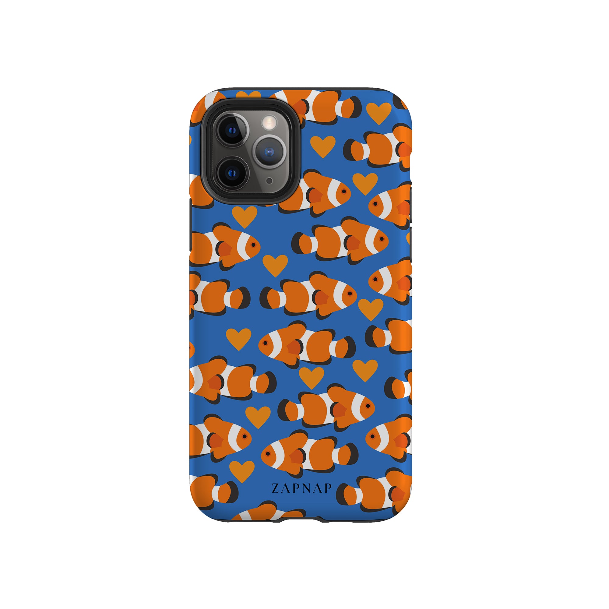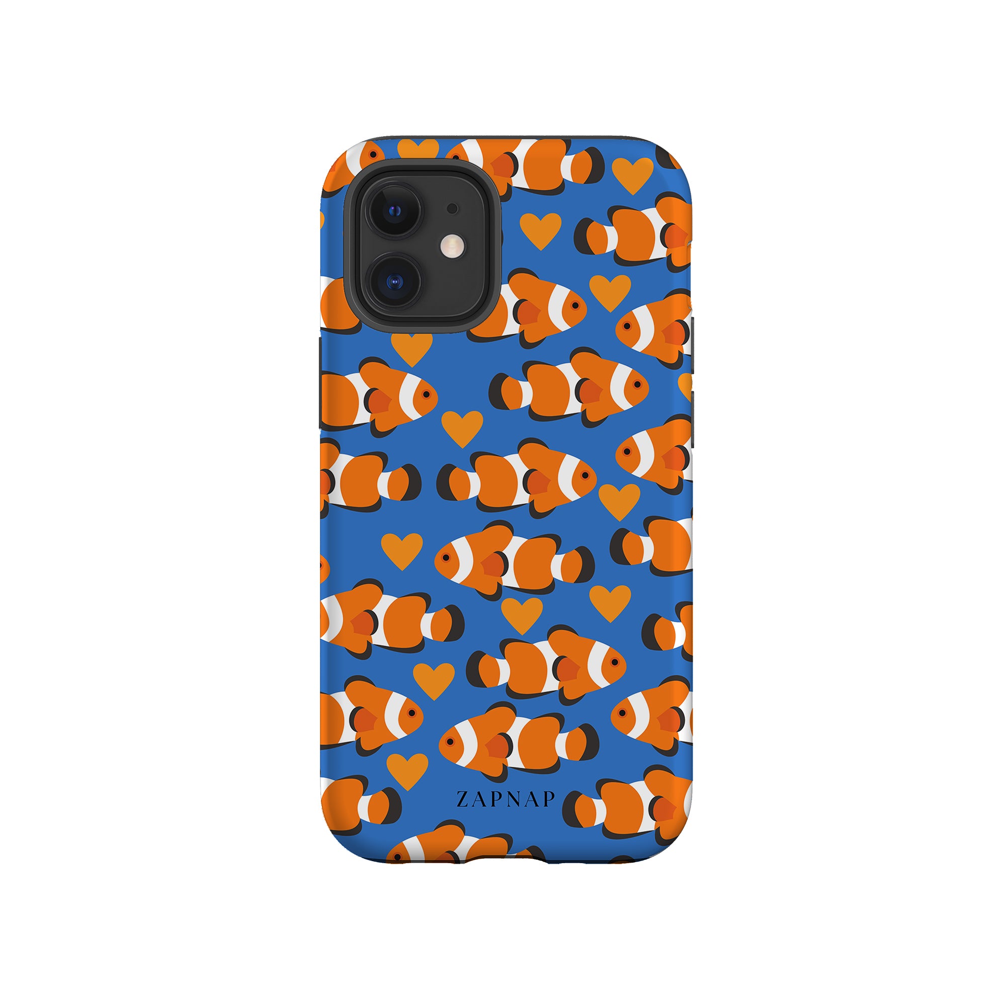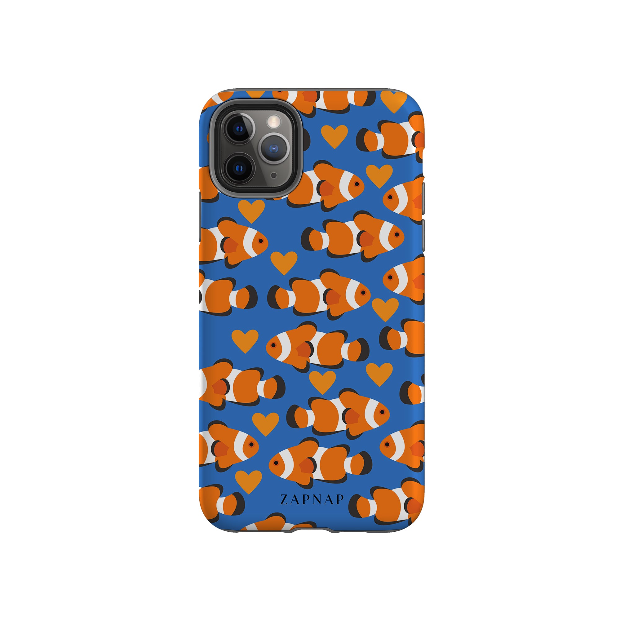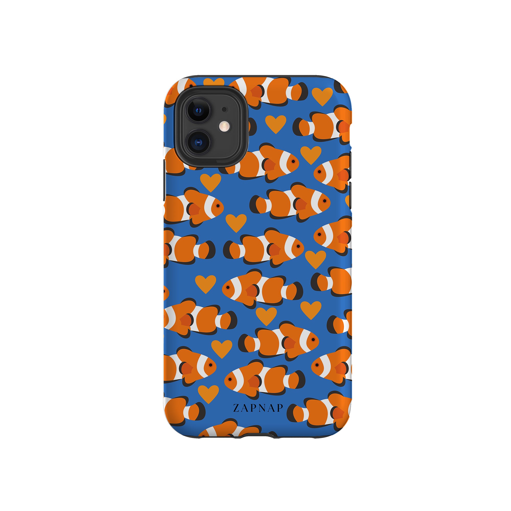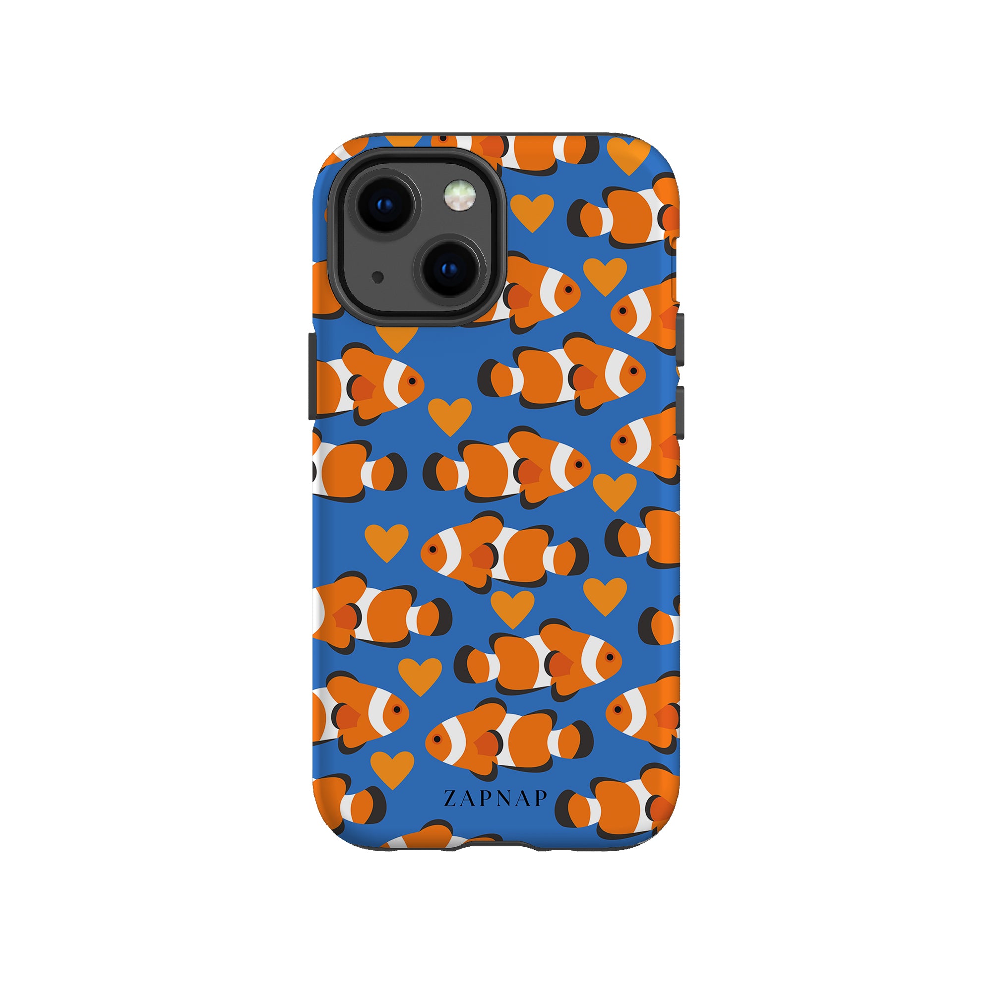 Dit speelse en levendige ontwerp bevat schattige oranje en witte clownvisjes die over een heldere blauwe achtergrond zwemmen, afgewisseld met vrolijke hartvormen. De speelse indeling en gedurfde kleuren roepen een gevoel van vreugde en de wonderen van het onderwaterleven op. Perfect voor oceaanliefhebbers of iedereen die op zoek is naar een ontwerp vol charme en warmte!
