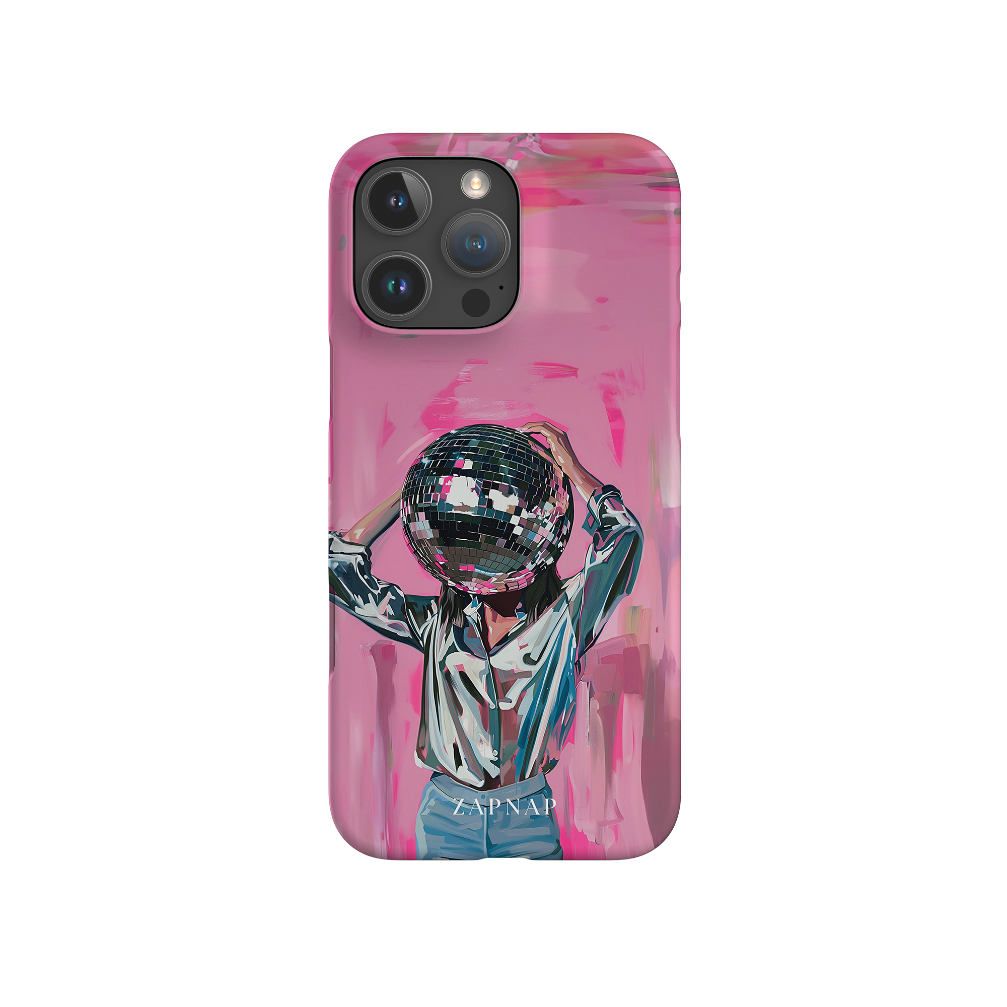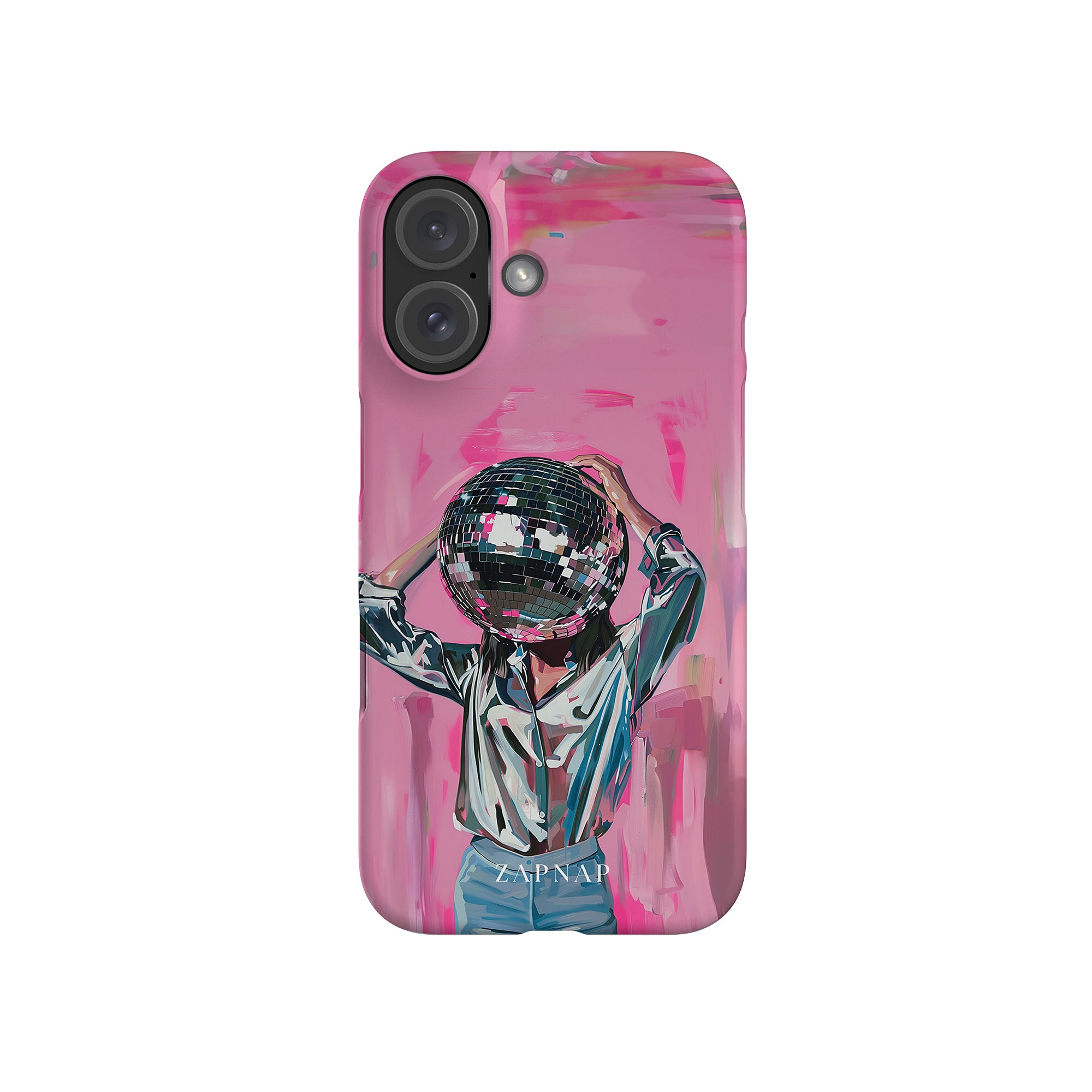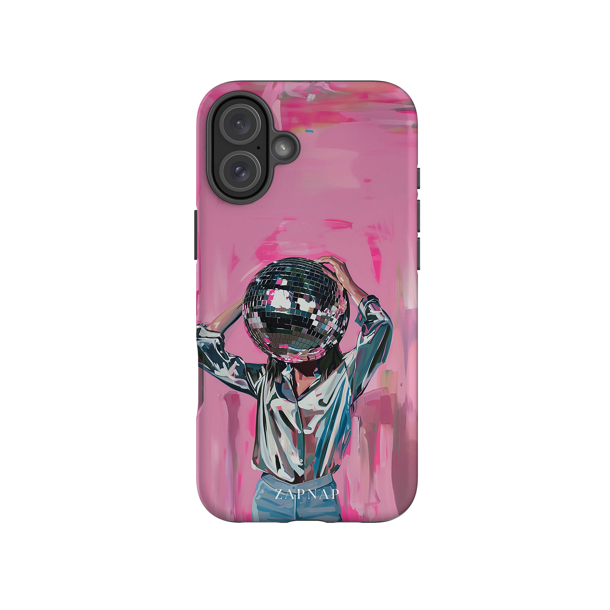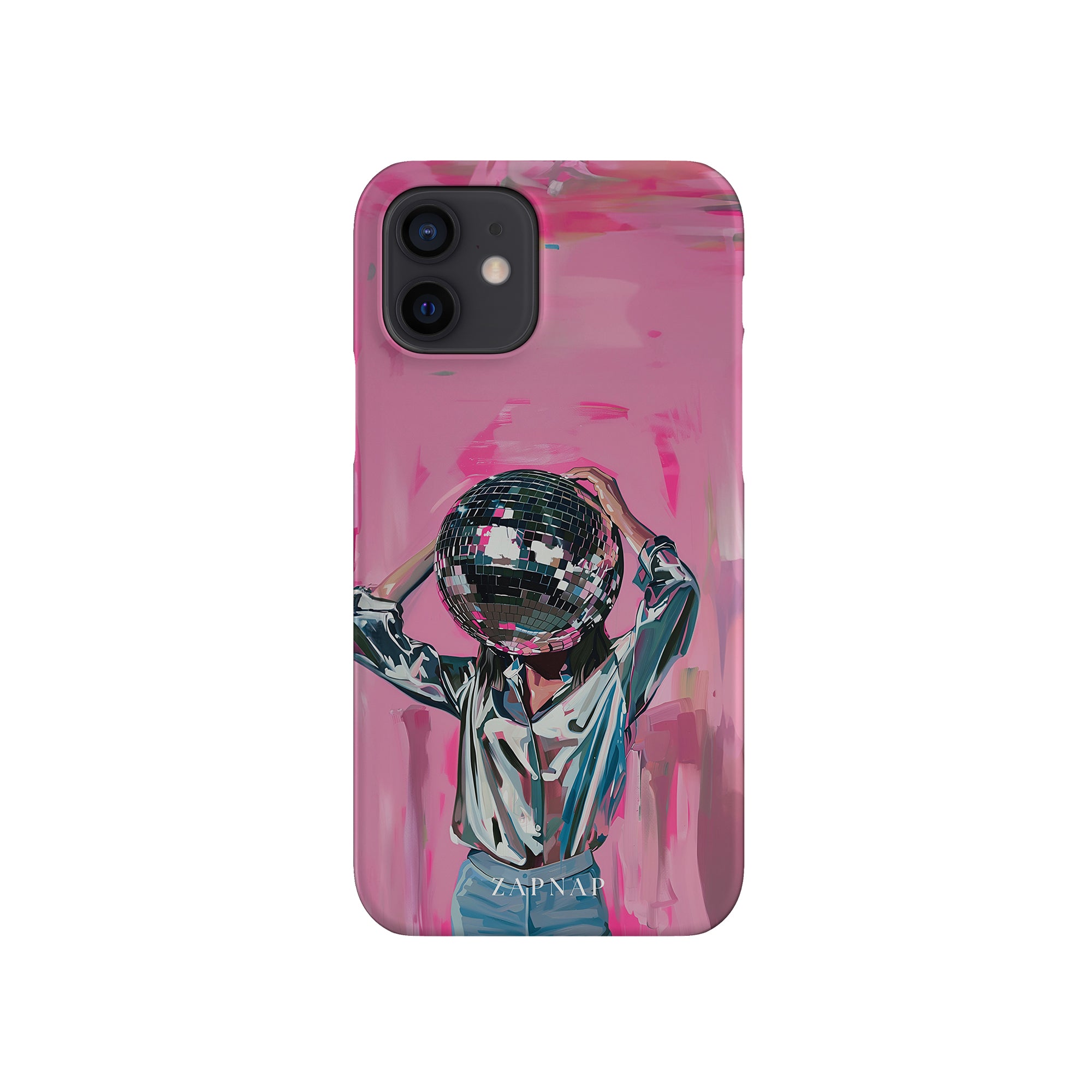 Disco Dream is een surrealistisch schilderij dat de grillige essentie van het discotijdperk vastlegt. Het kunstwerk toont een figuur met een discobal als hoofd, gekleed in een glanzend metallic shirt en spijkerbroek, tegen een levendig roze achtergrond. Dit fantasierijke stuk combineert elementen van fantasie en nostalgie en nodigt kijkers uit om zich onder te dompelen in de speelse en energieke wereld van disco.