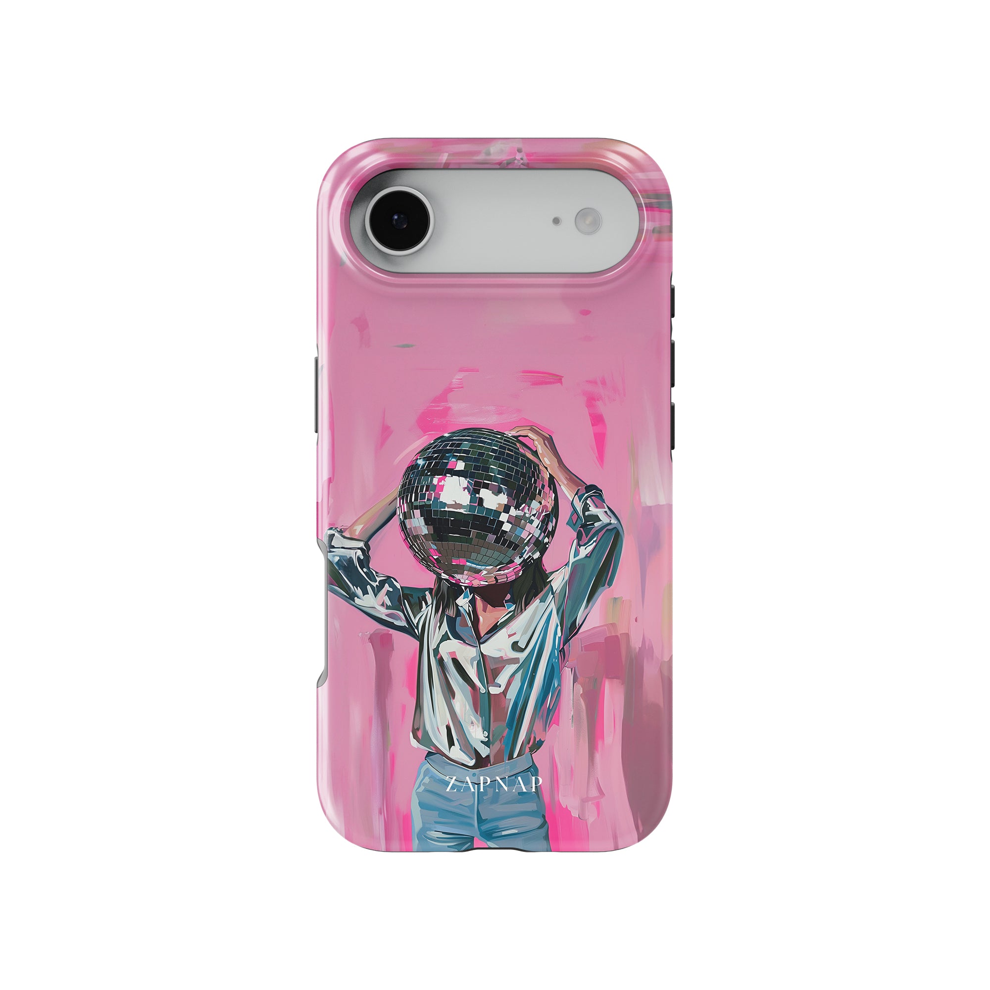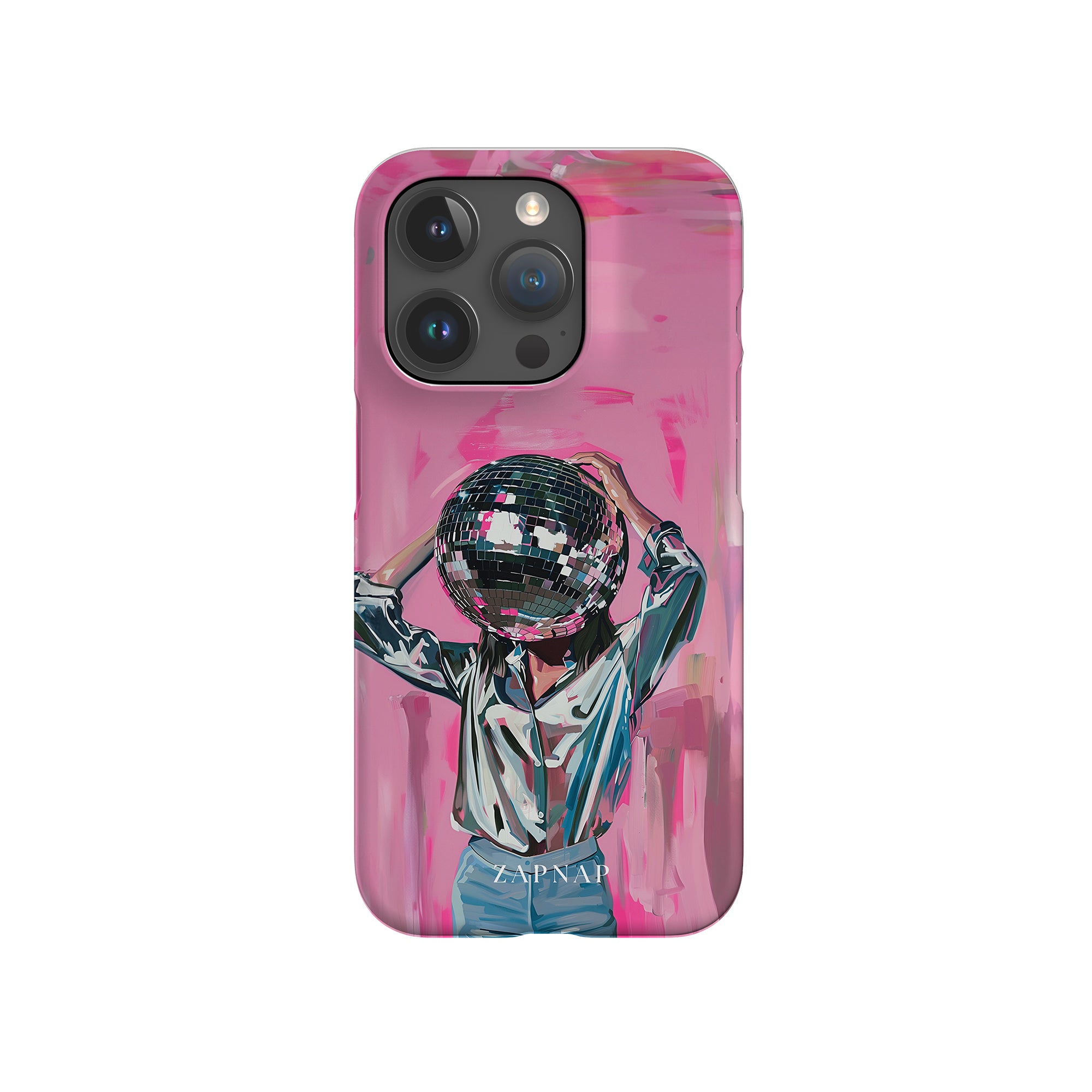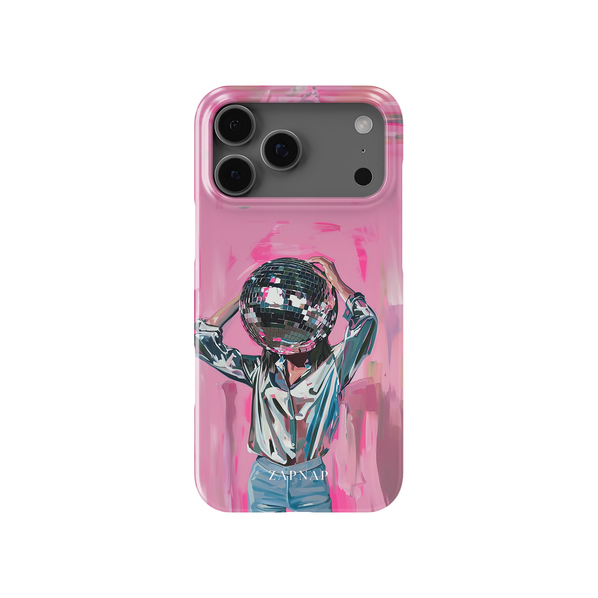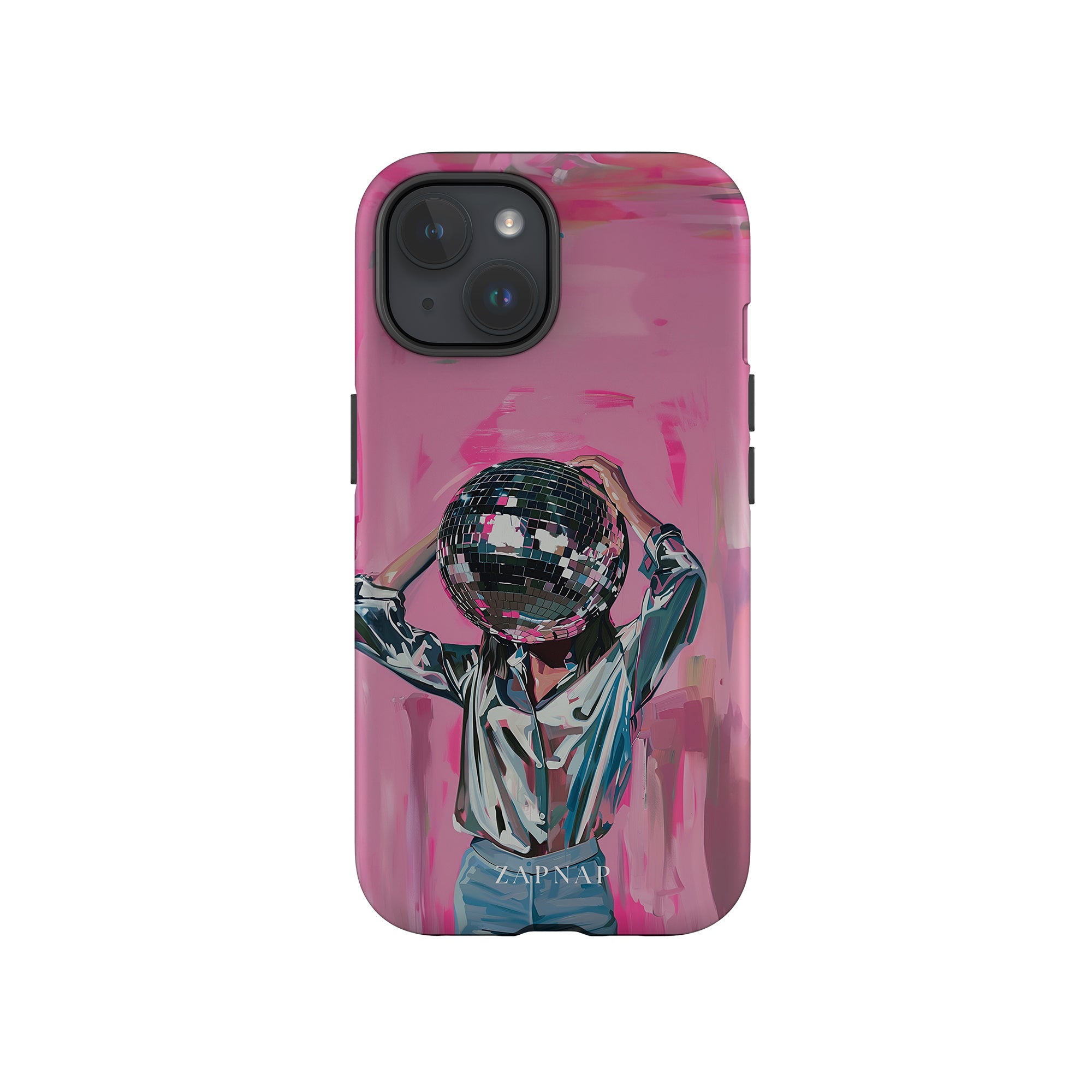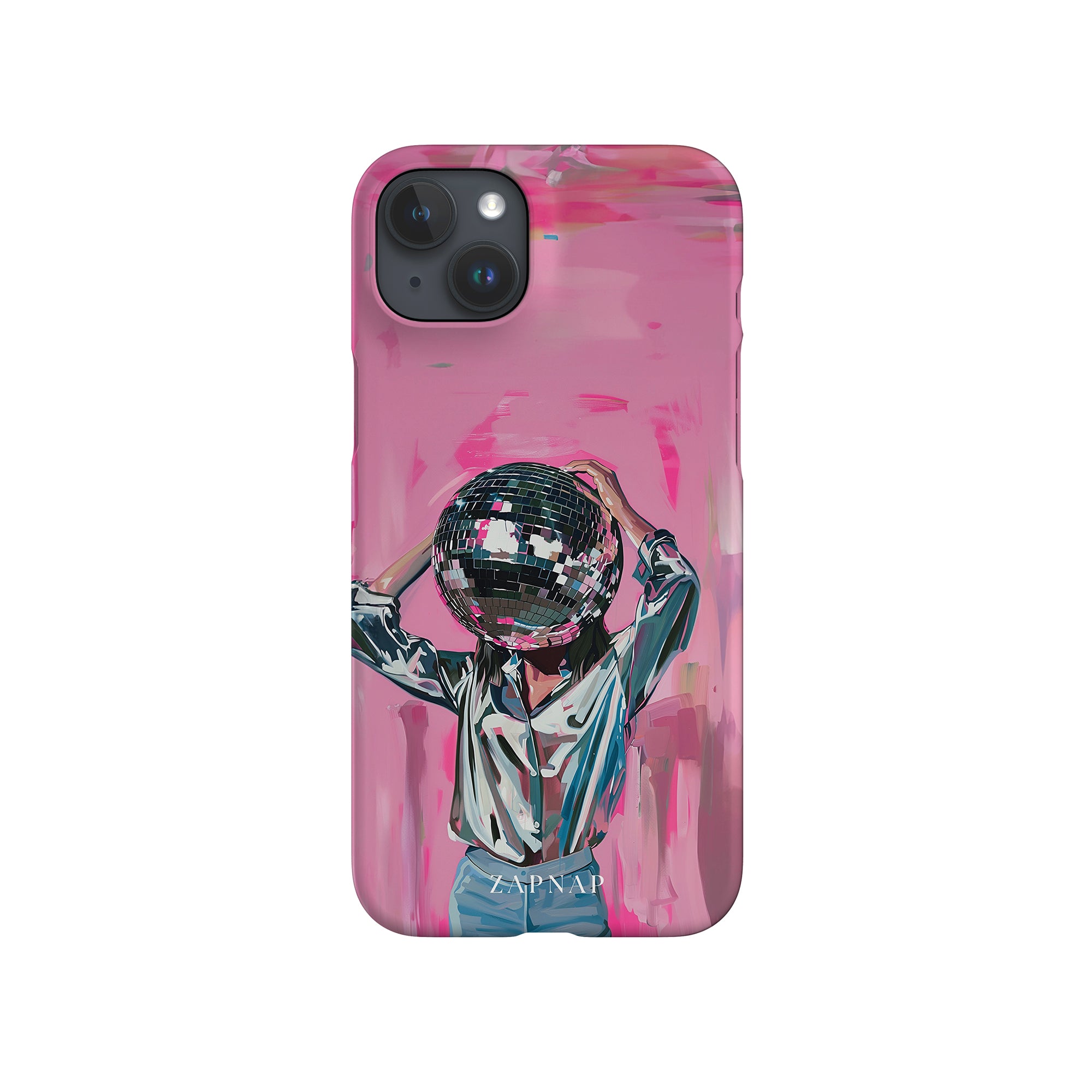 Disco Dream is een surrealistisch schilderij dat de grillige essentie van het discotijdperk vastlegt. Het kunstwerk toont een figuur met een discobal als hoofd, gekleed in een glanzend metallic shirt en spijkerbroek, tegen een levendig roze achtergrond. Dit fantasierijke stuk combineert elementen van fantasie en nostalgie en nodigt kijkers uit om zich onder te dompelen in de speelse en energieke wereld van disco.