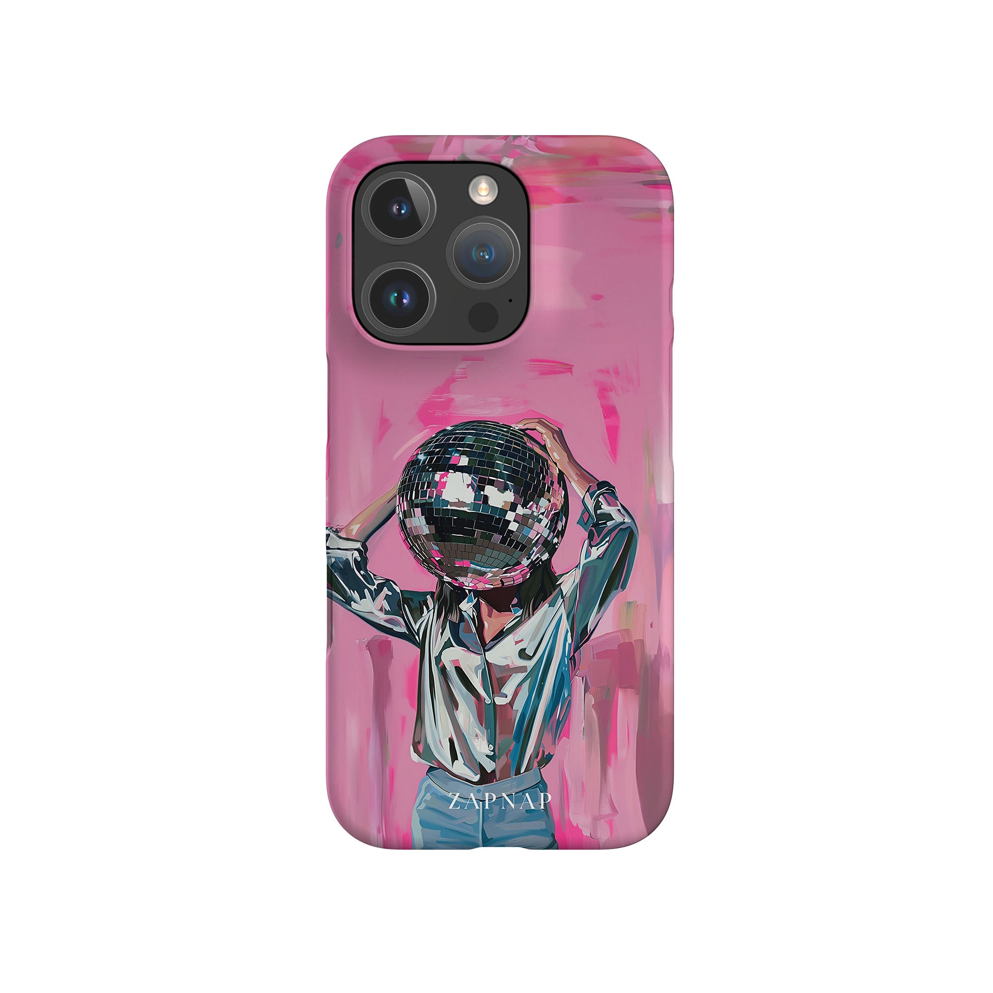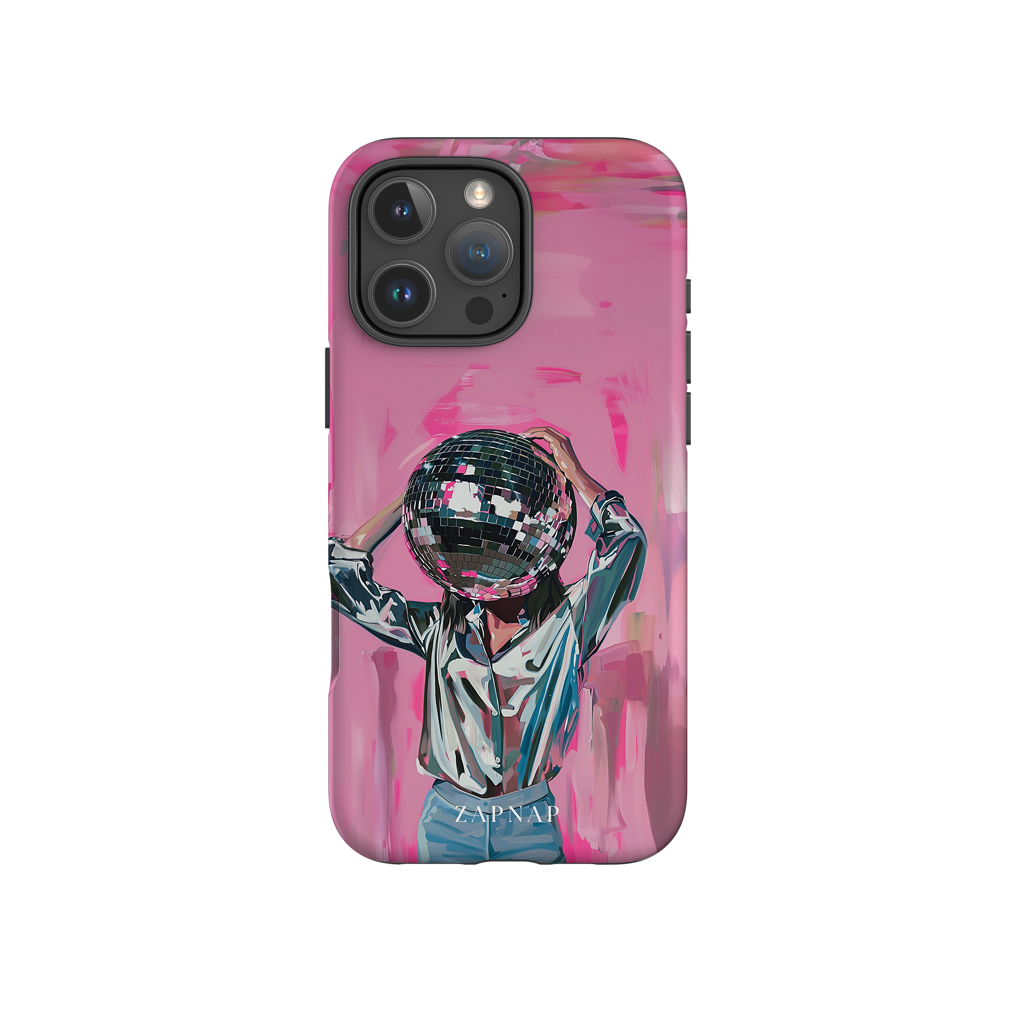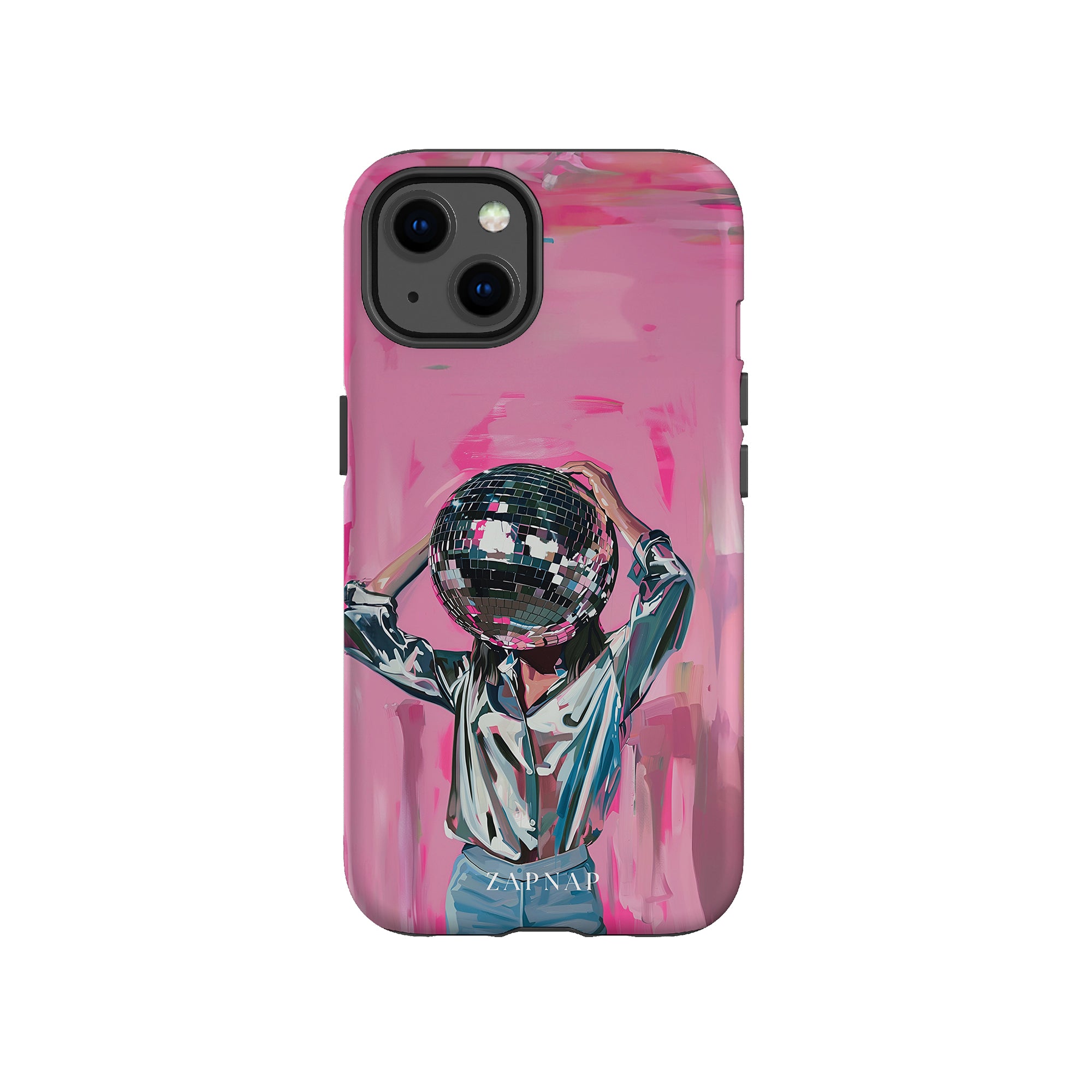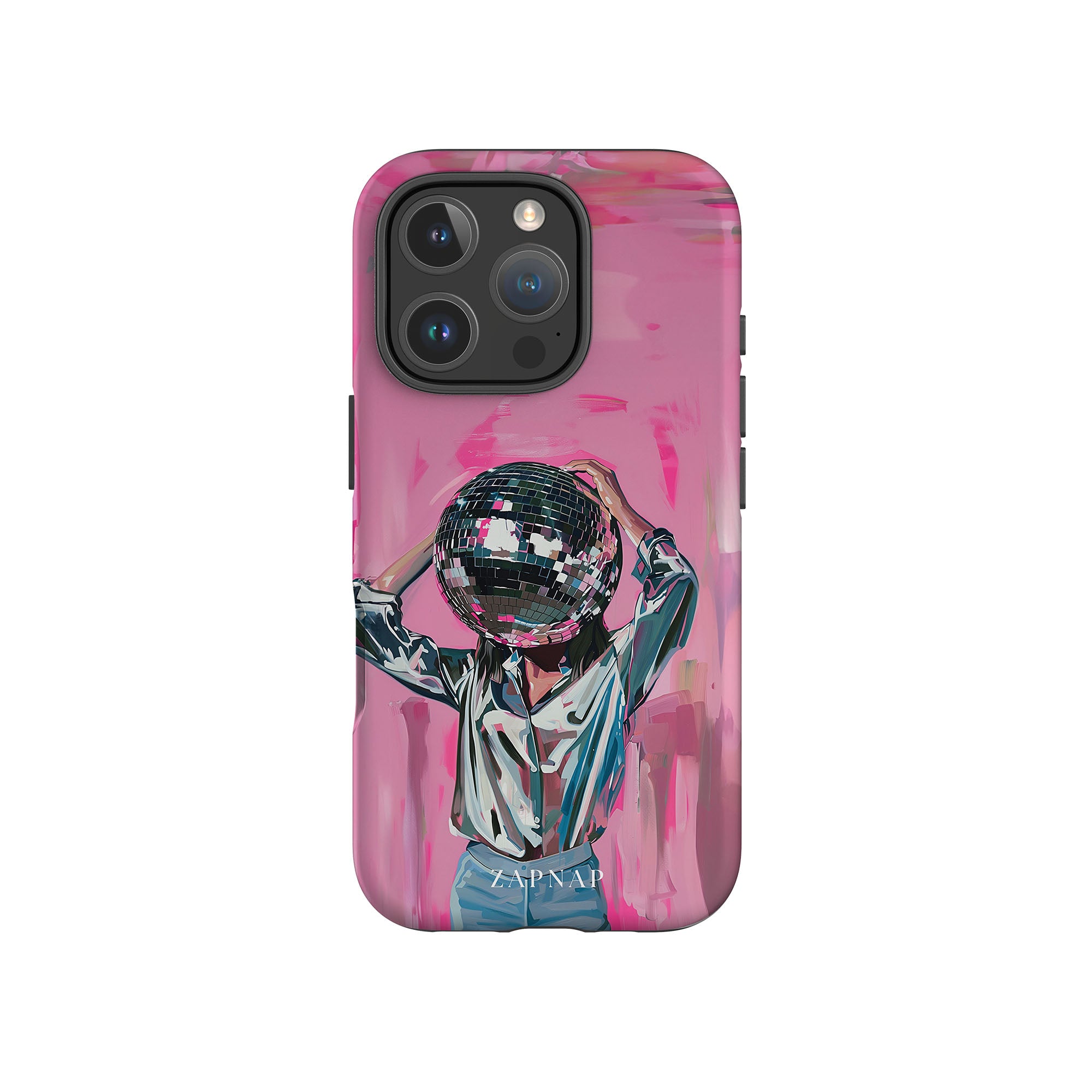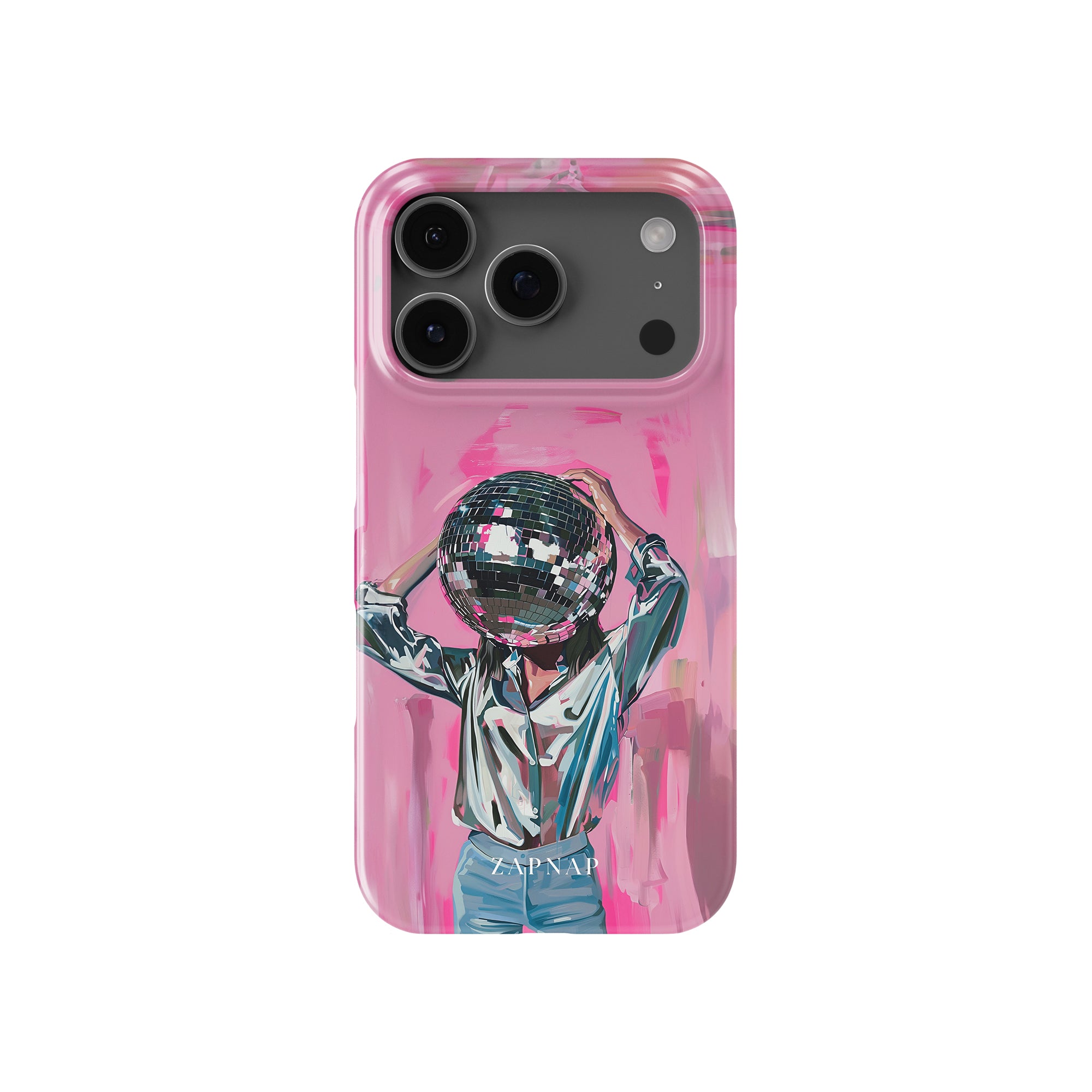 Disco Dream is een surrealistisch schilderij dat de grillige essentie van het discotijdperk vastlegt. Het kunstwerk toont een figuur met een discobal als hoofd, gekleed in een glanzend metallic shirt en spijkerbroek, tegen een levendig roze achtergrond. Dit fantasierijke stuk combineert elementen van fantasie en nostalgie en nodigt kijkers uit om zich onder te dompelen in de speelse en energieke wereld van disco.