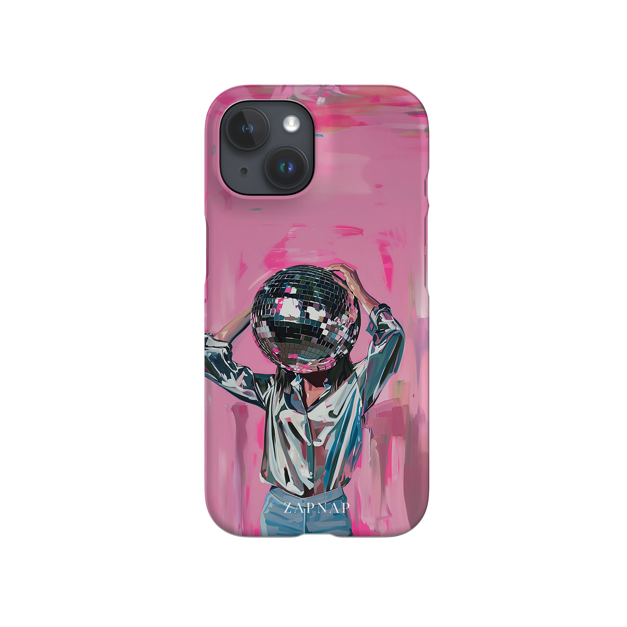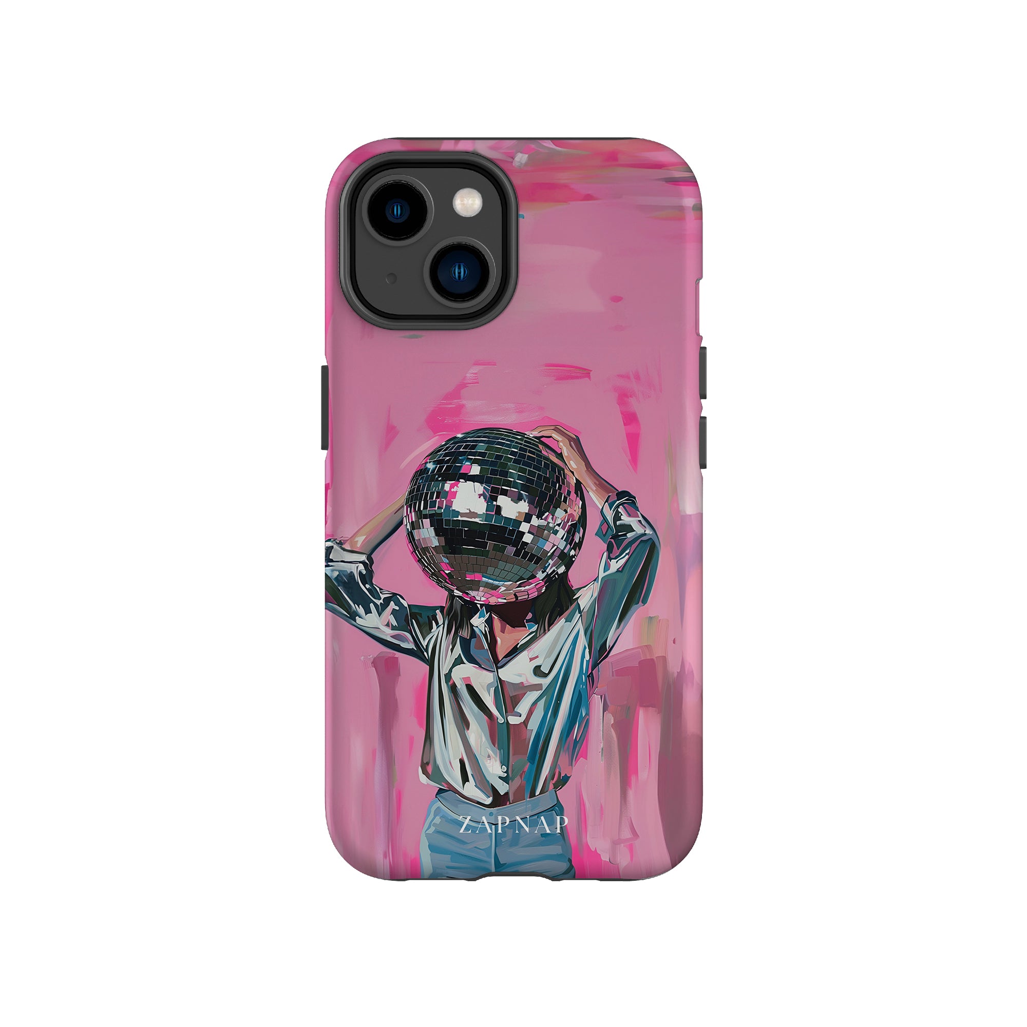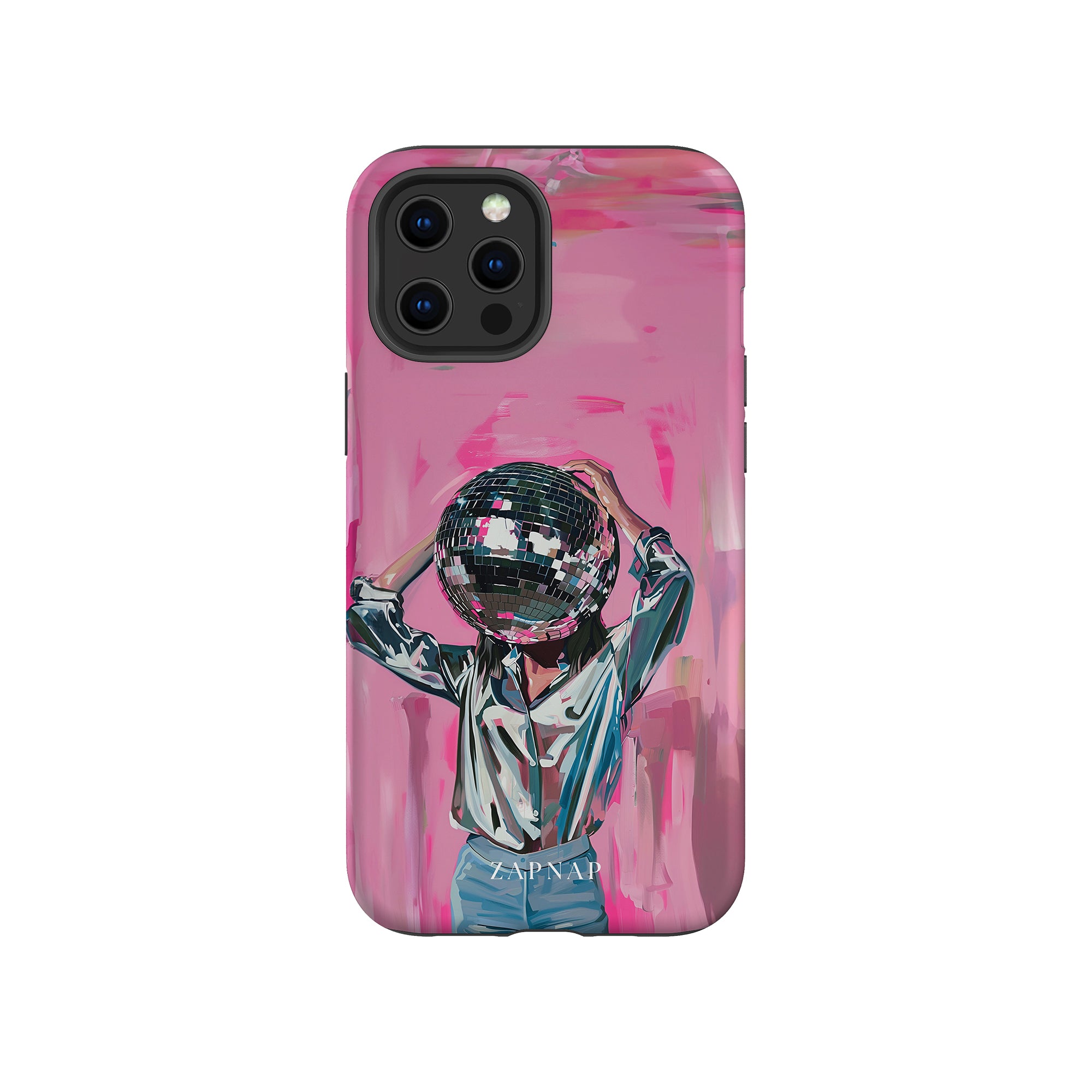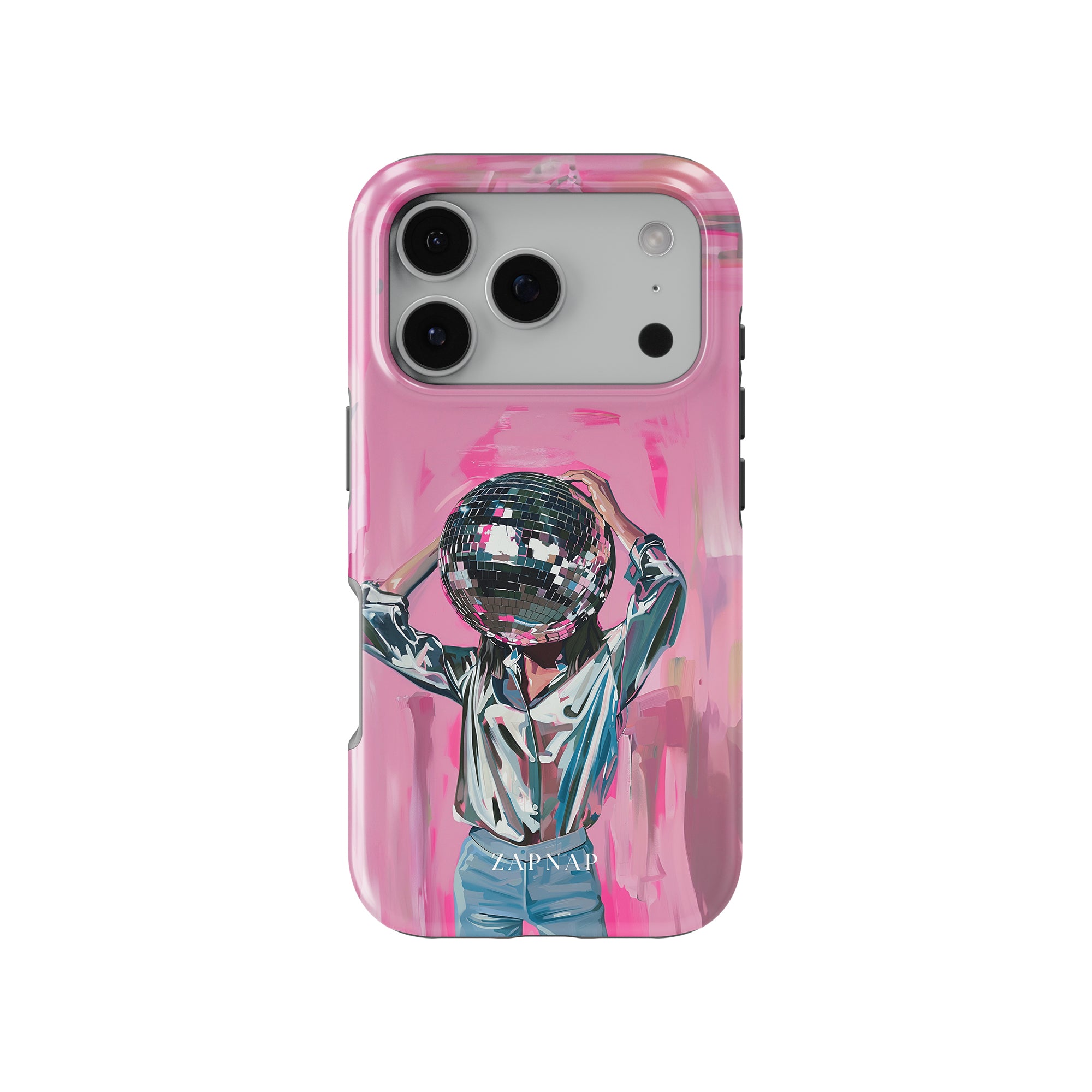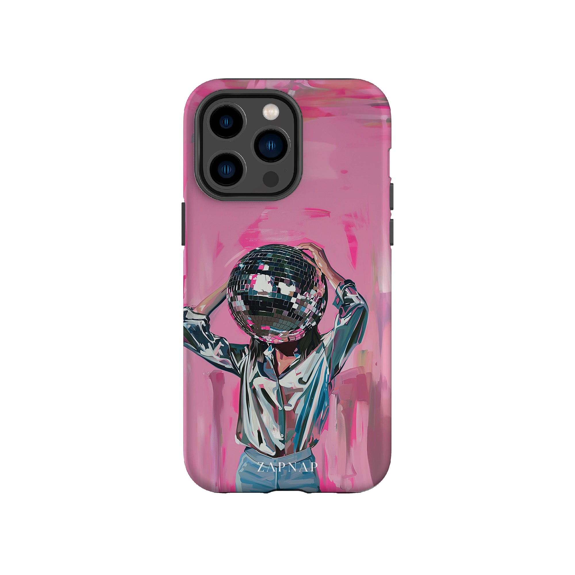 Disco Dream is een surrealistisch schilderij dat de grillige essentie van het discotijdperk vastlegt. Het kunstwerk toont een figuur met een discobal als hoofd, gekleed in een glanzend metallic shirt en spijkerbroek, tegen een levendig roze achtergrond. Dit fantasierijke stuk combineert elementen van fantasie en nostalgie en nodigt kijkers uit om zich onder te dompelen in de speelse en energieke wereld van disco.