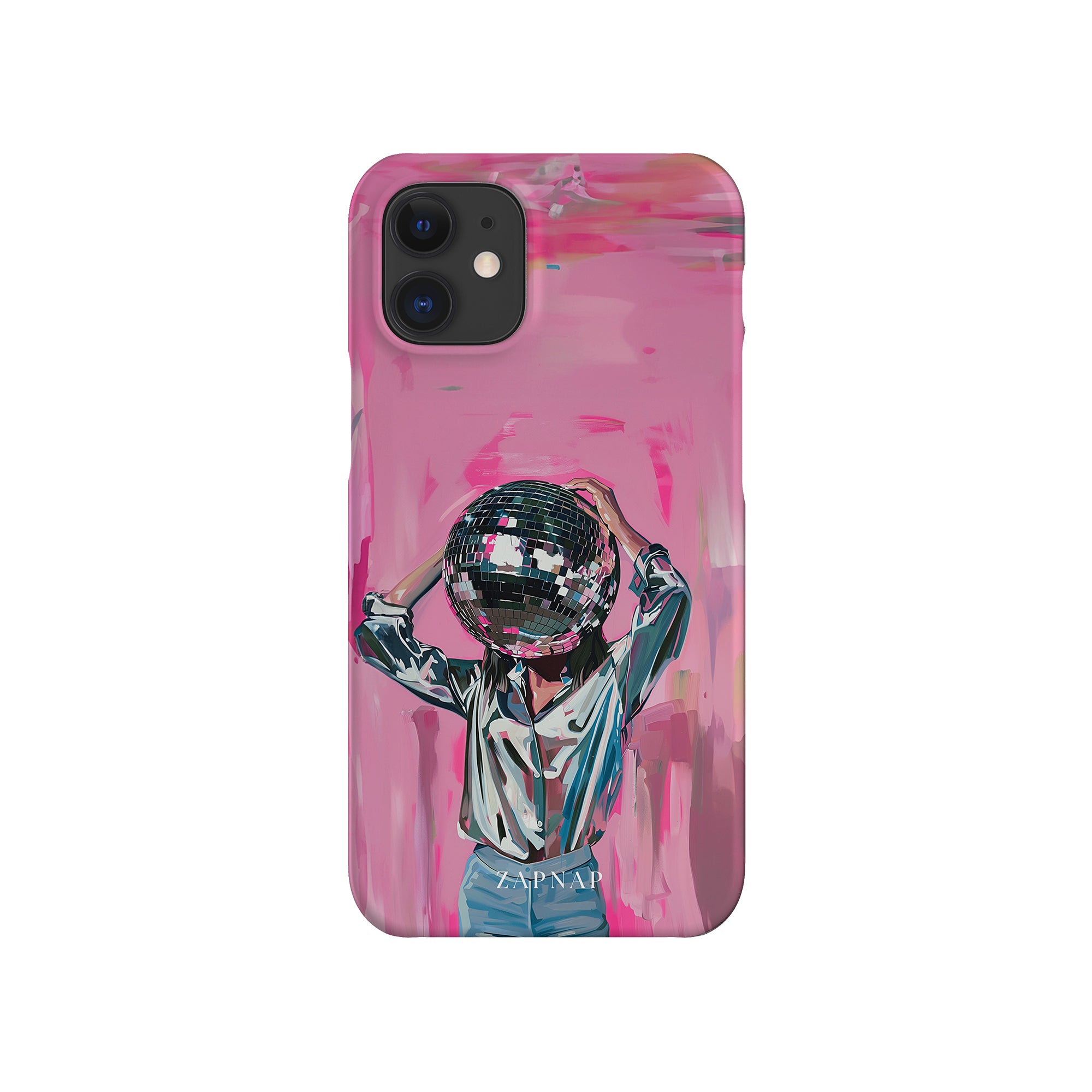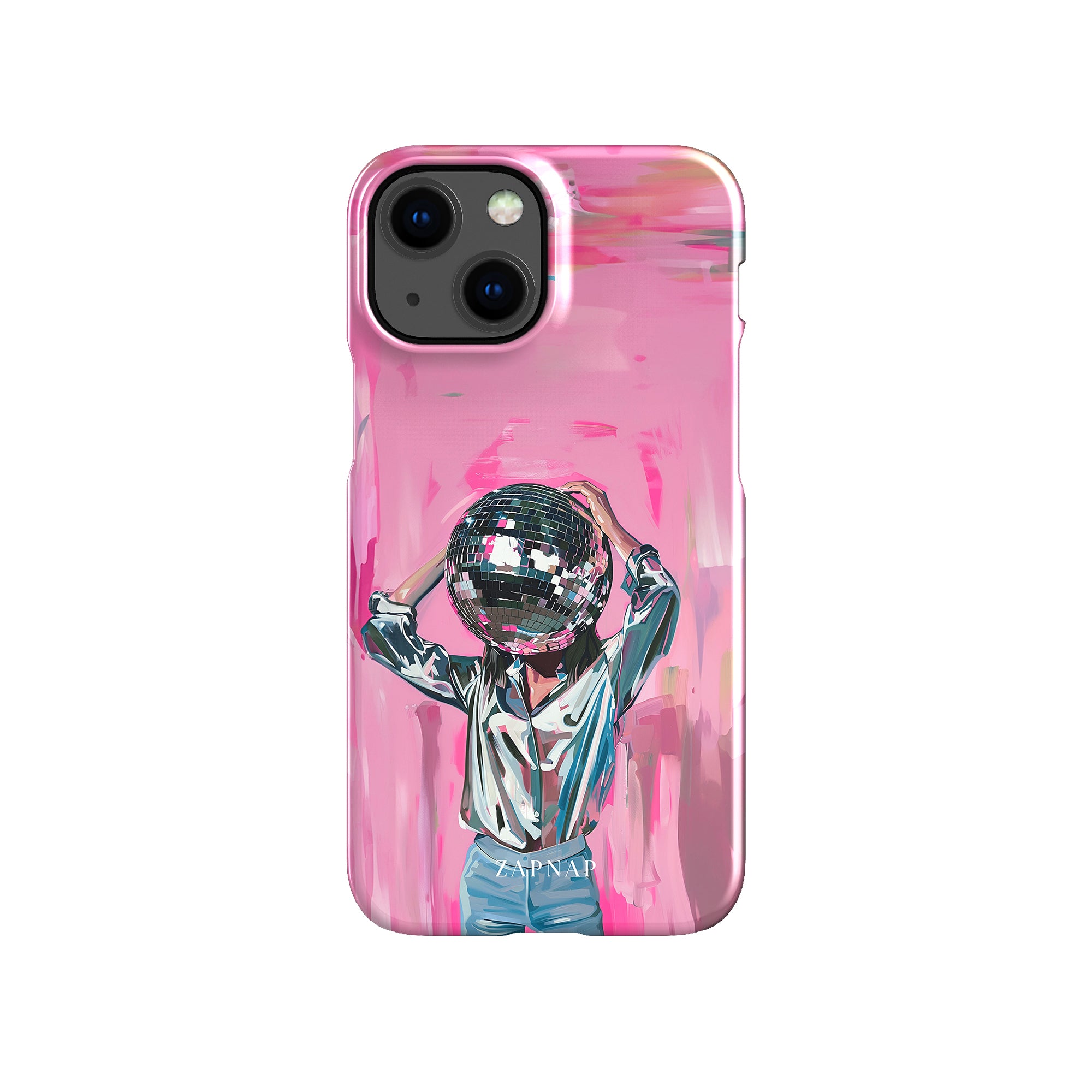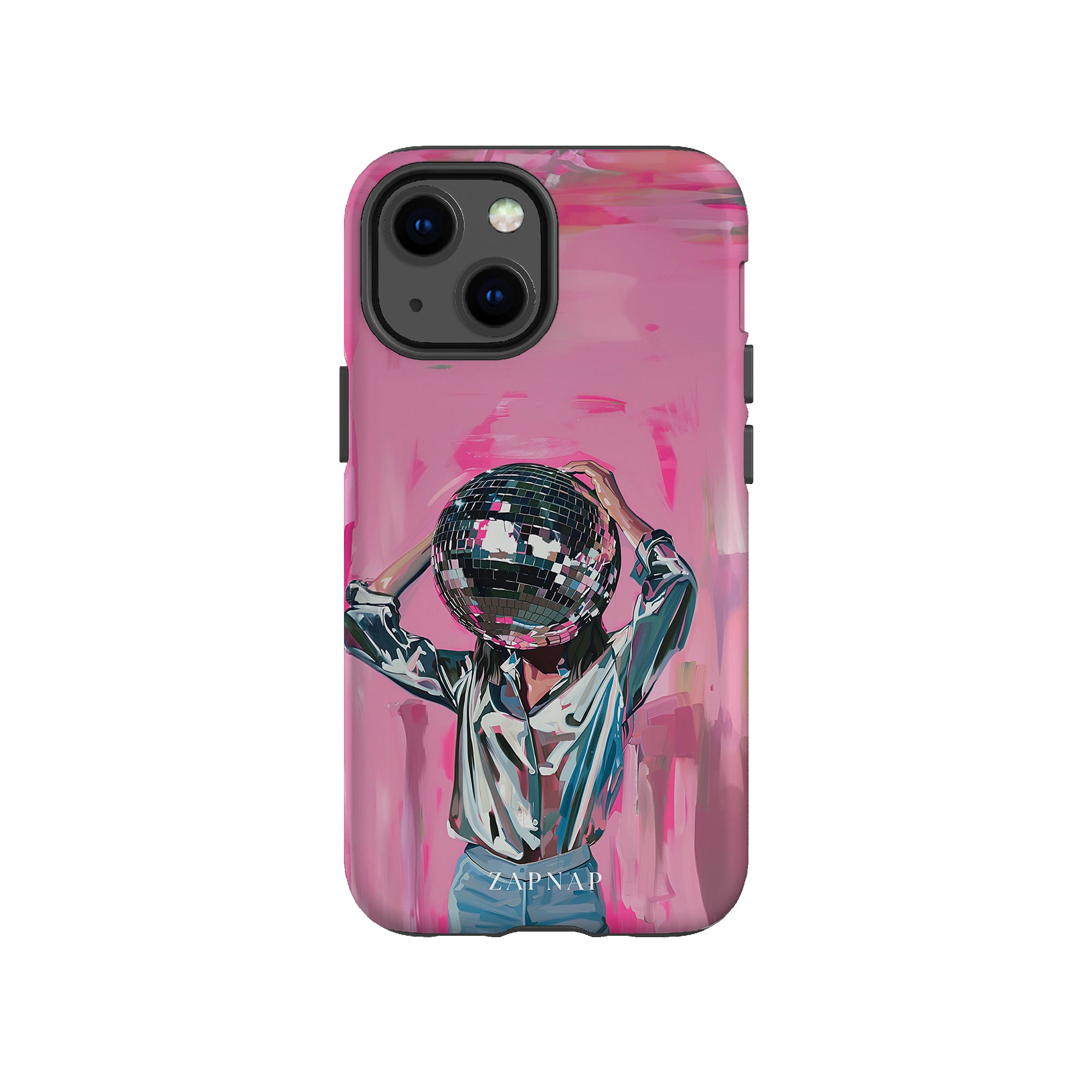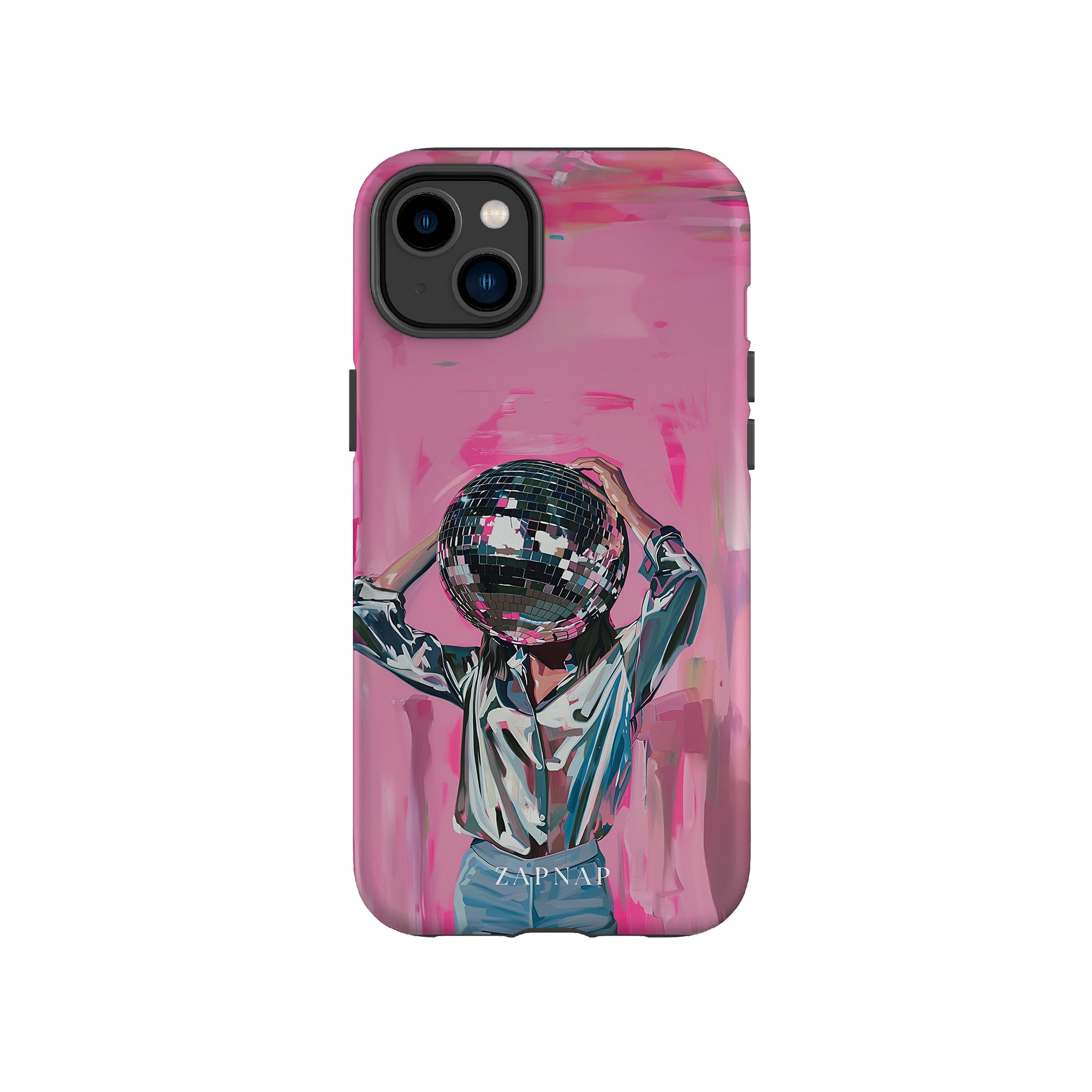 Disco Dream is een surrealistisch schilderij dat de grillige essentie van het discotijdperk vastlegt. Het kunstwerk toont een figuur met een discobal als hoofd, gekleed in een glanzend metallic shirt en spijkerbroek, tegen een levendig roze achtergrond. Dit fantasierijke stuk combineert elementen van fantasie en nostalgie en nodigt kijkers uit om zich onder te dompelen in de speelse en energieke wereld van disco.