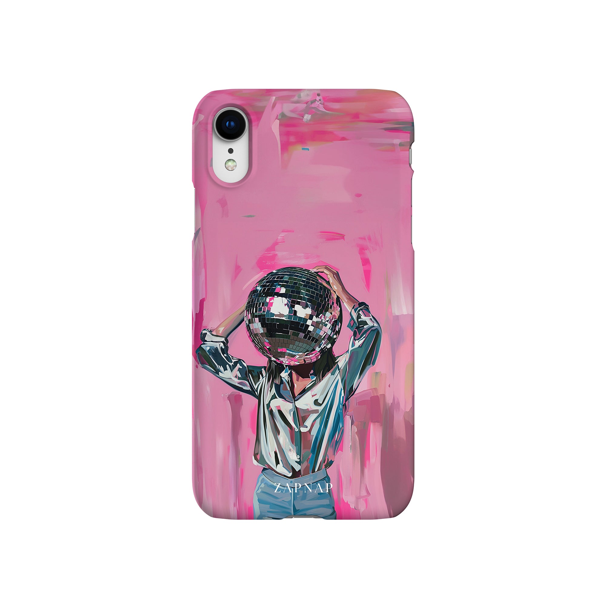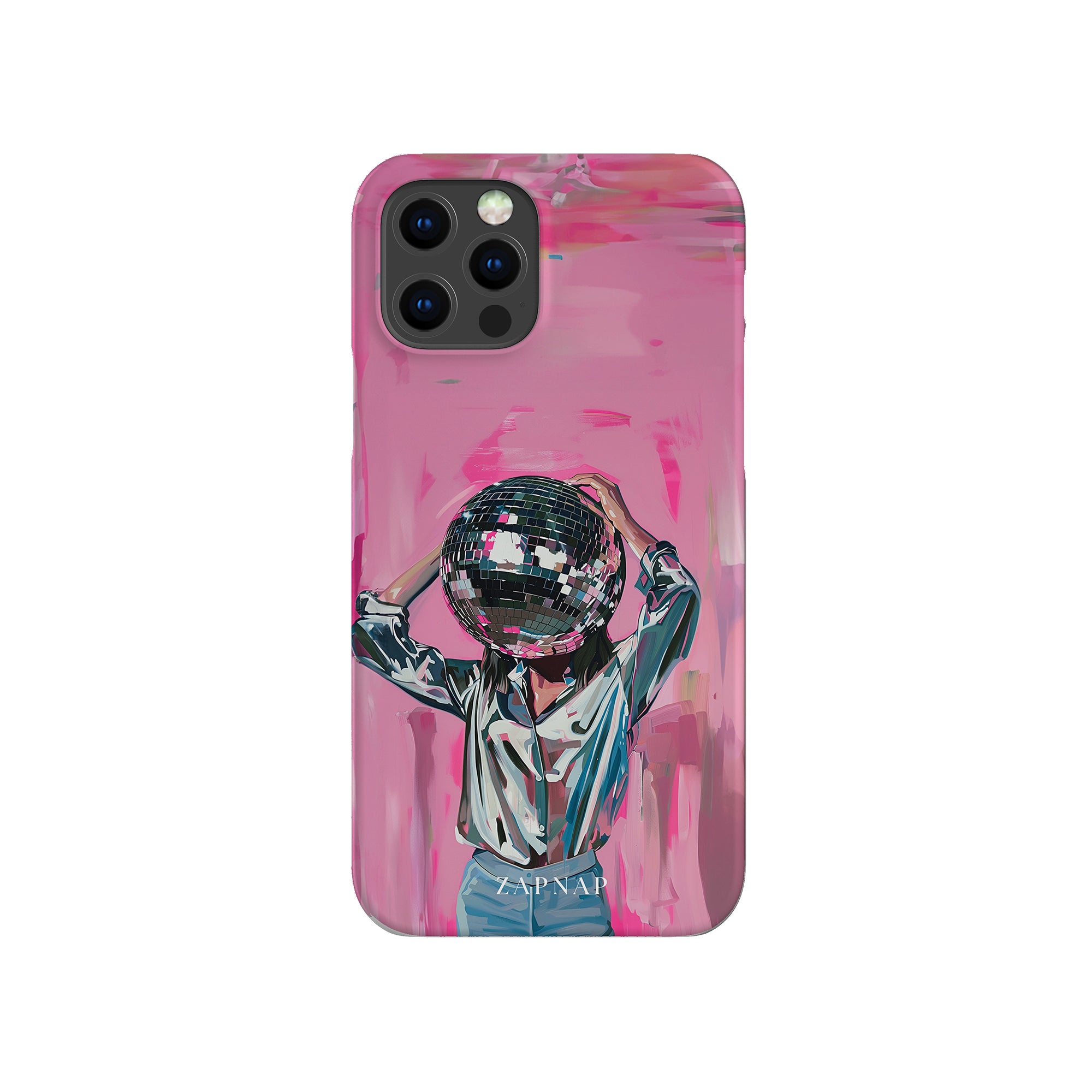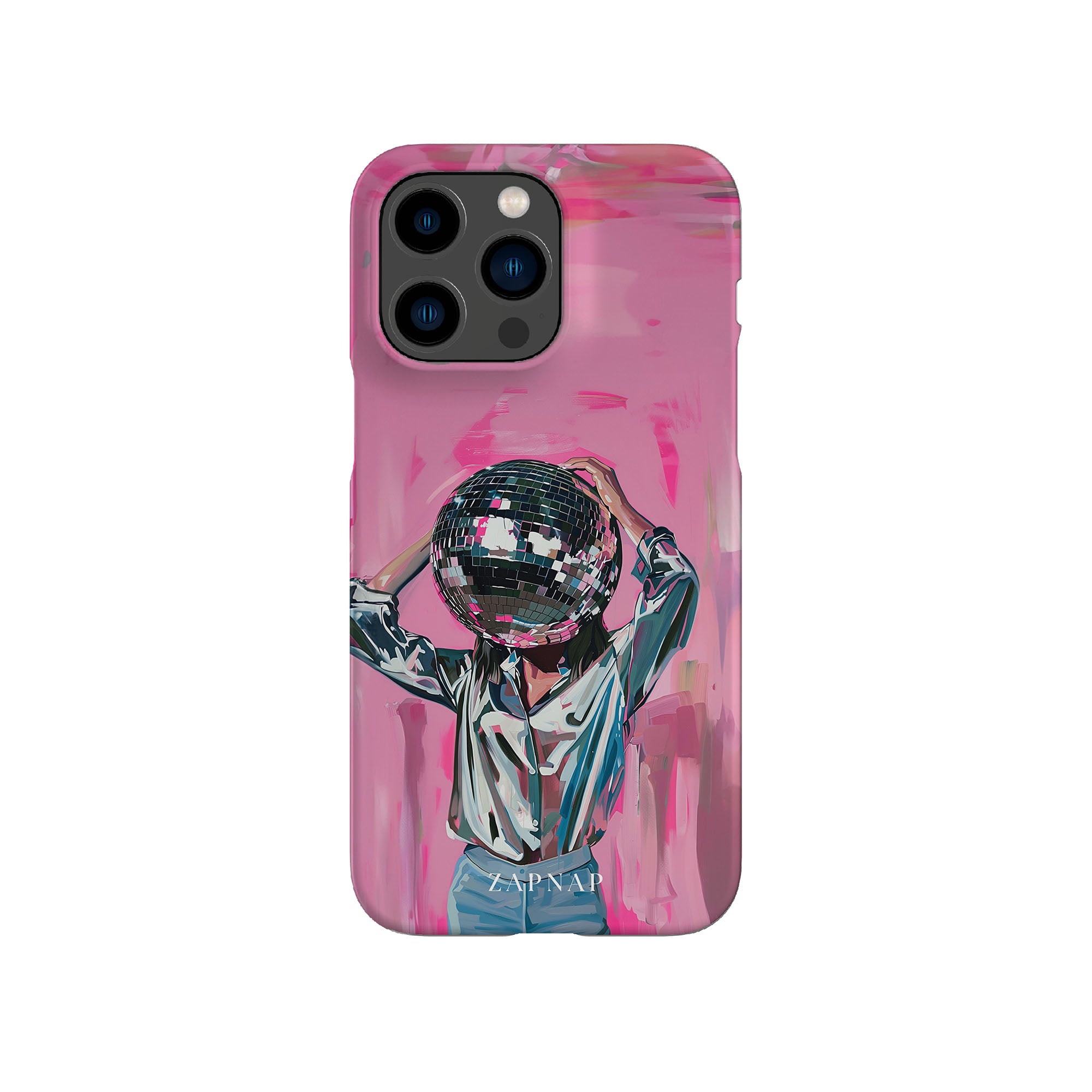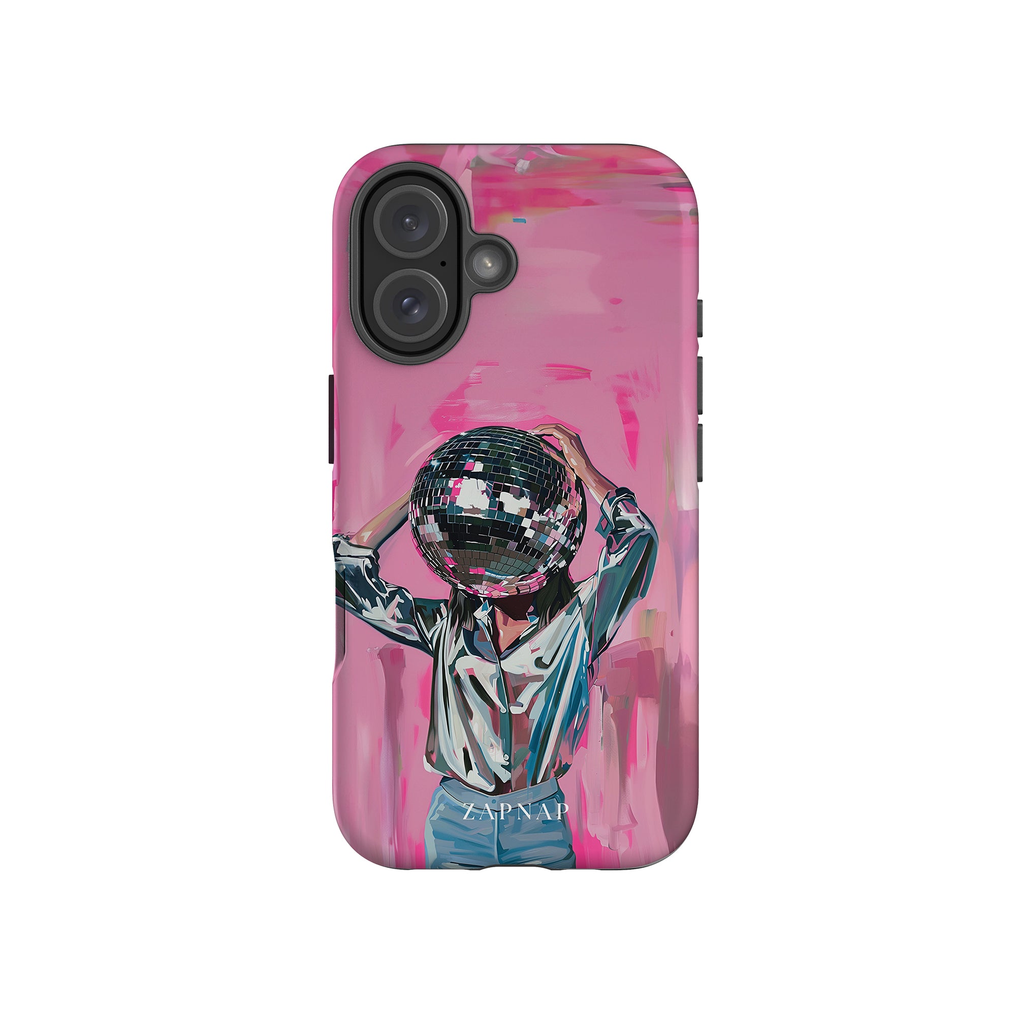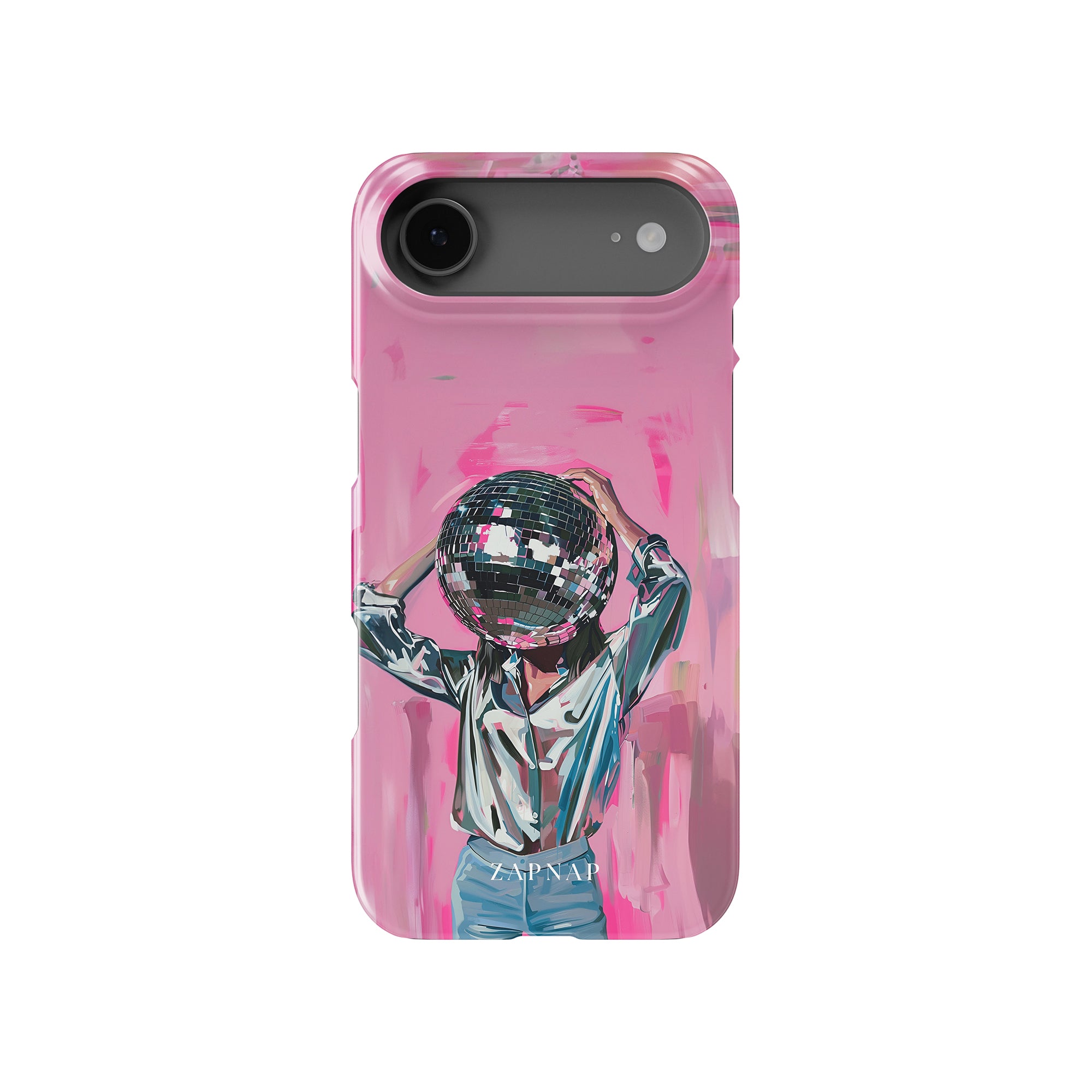 Disco Dream is een surrealistisch schilderij dat de grillige essentie van het discotijdperk vastlegt. Het kunstwerk toont een figuur met een discobal als hoofd, gekleed in een glanzend metallic shirt en spijkerbroek, tegen een levendig roze achtergrond. Dit fantasierijke stuk combineert elementen van fantasie en nostalgie en nodigt kijkers uit om zich onder te dompelen in de speelse en energieke wereld van disco.
