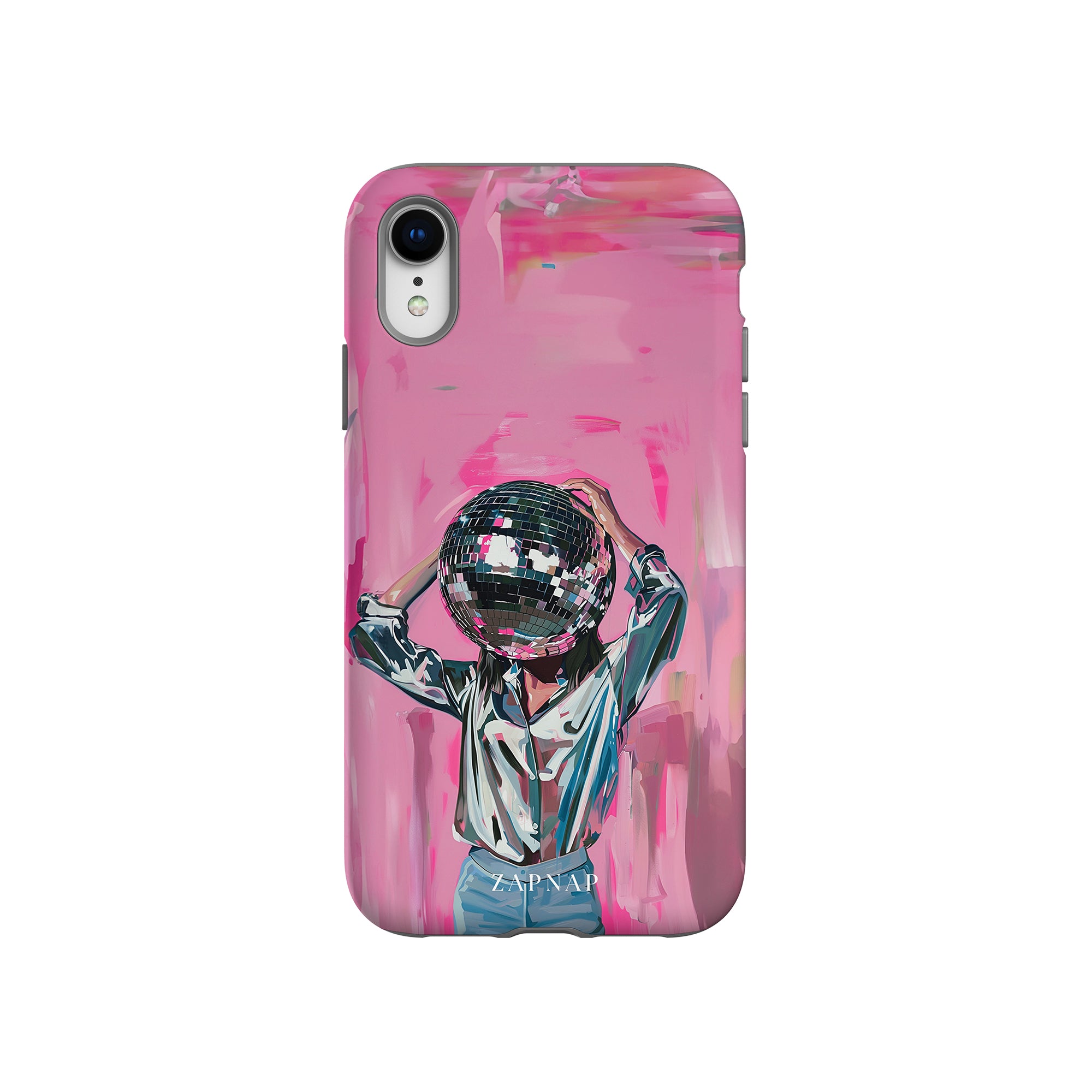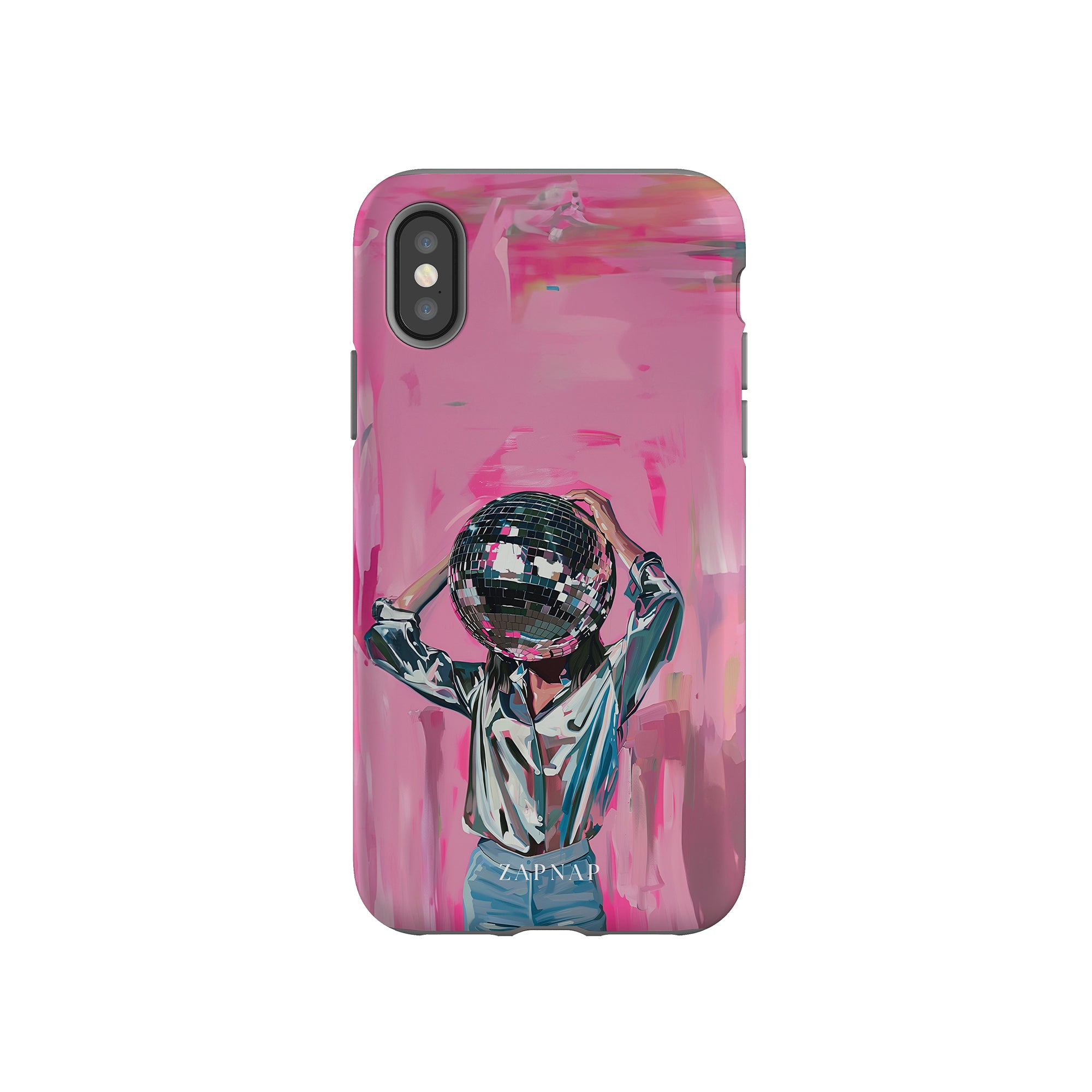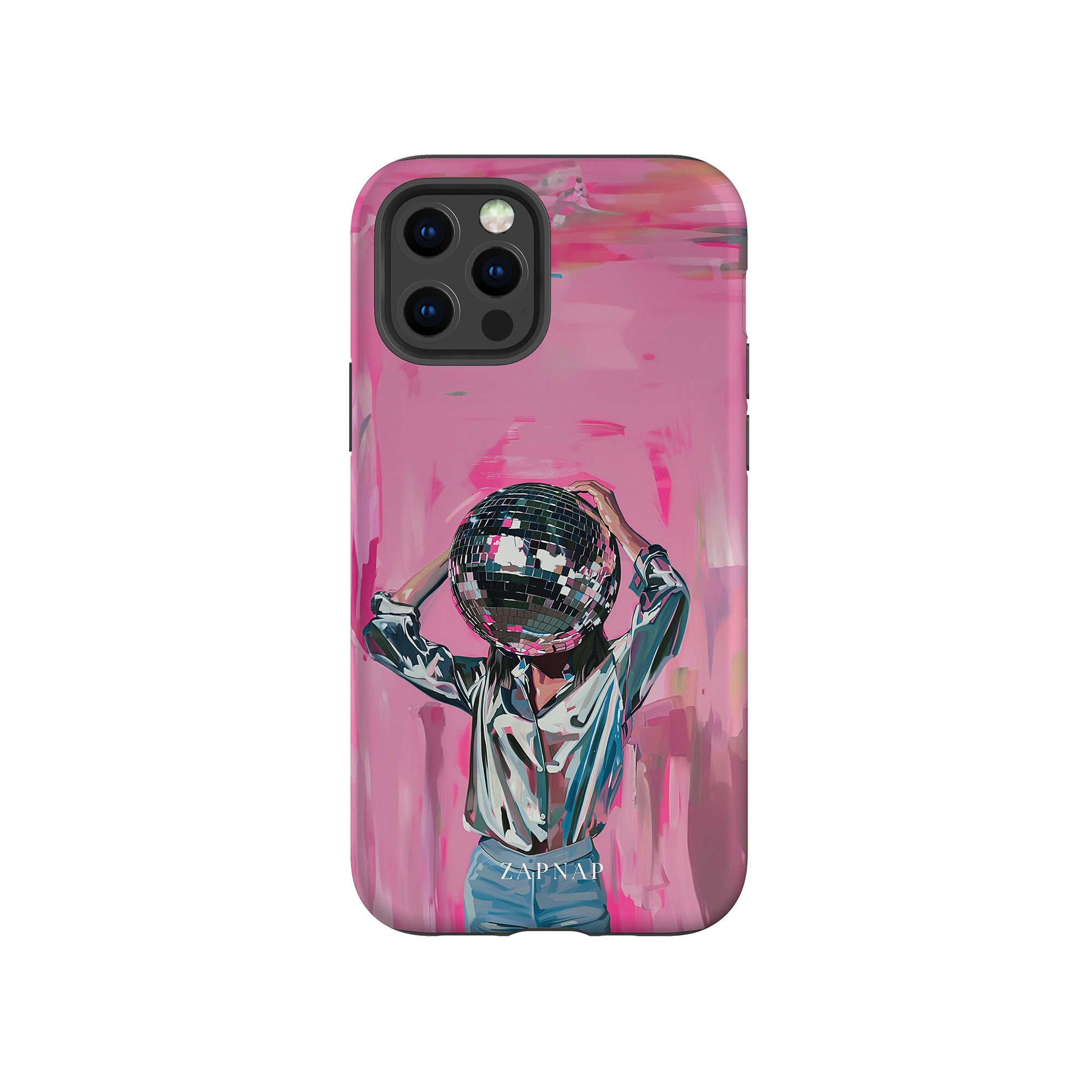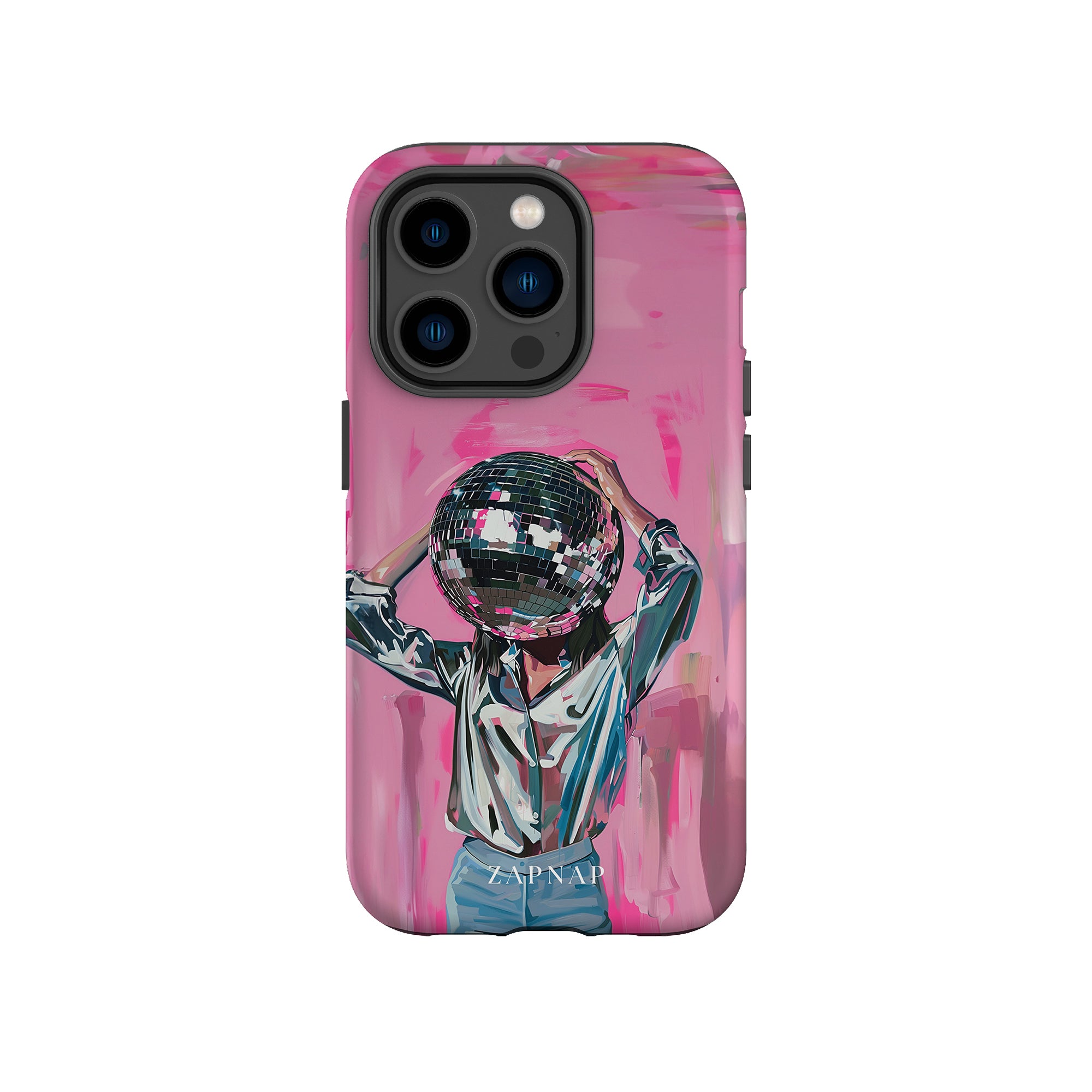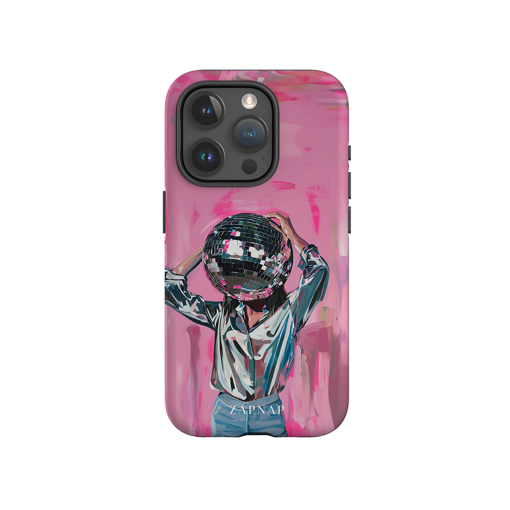 Disco Dream is een surrealistisch schilderij dat de grillige essentie van het discotijdperk vastlegt. Het kunstwerk toont een figuur met een discobal als hoofd, gekleed in een glanzend metallic shirt en spijkerbroek, tegen een levendig roze achtergrond. Dit fantasierijke stuk combineert elementen van fantasie en nostalgie en nodigt kijkers uit om zich onder te dompelen in de speelse en energieke wereld van disco.