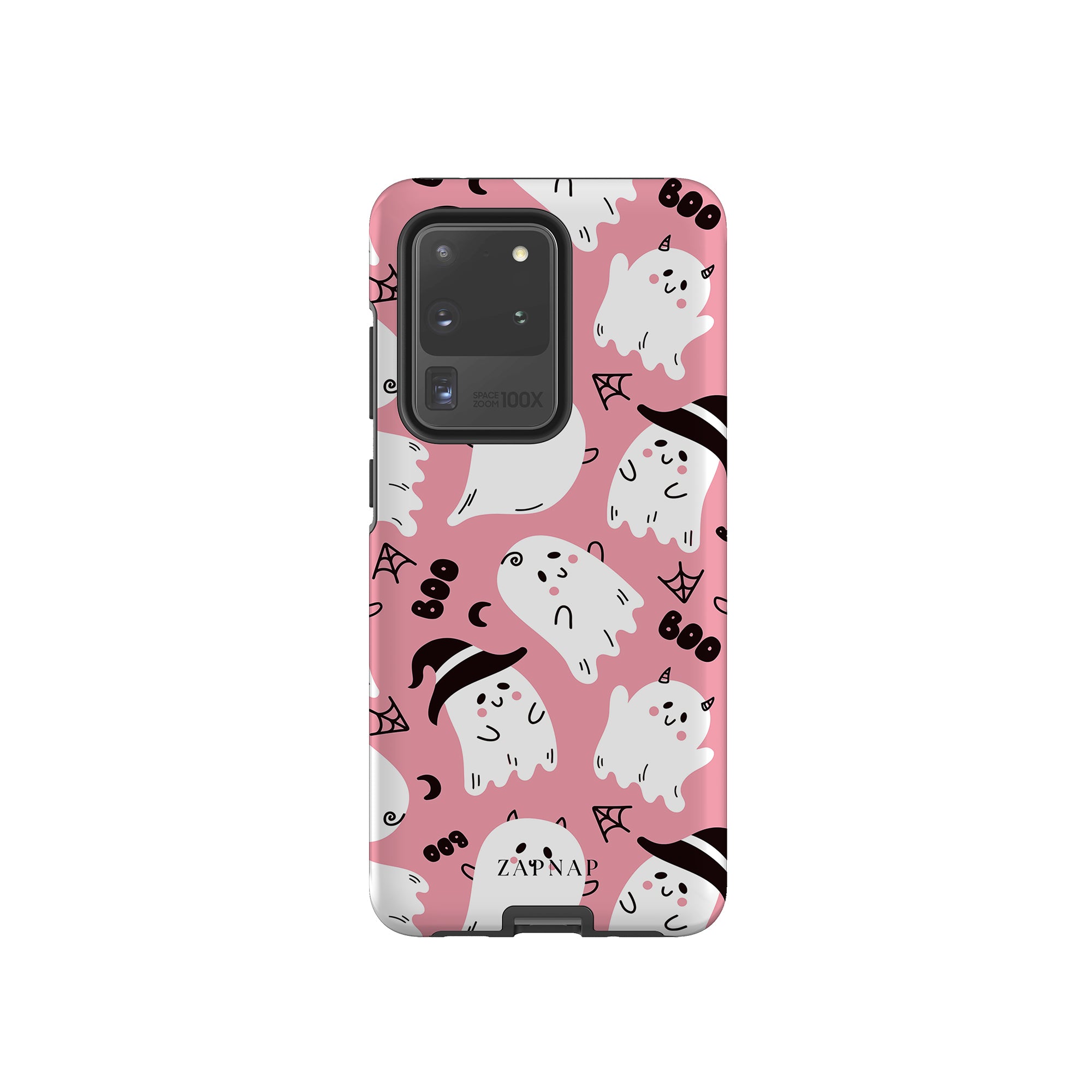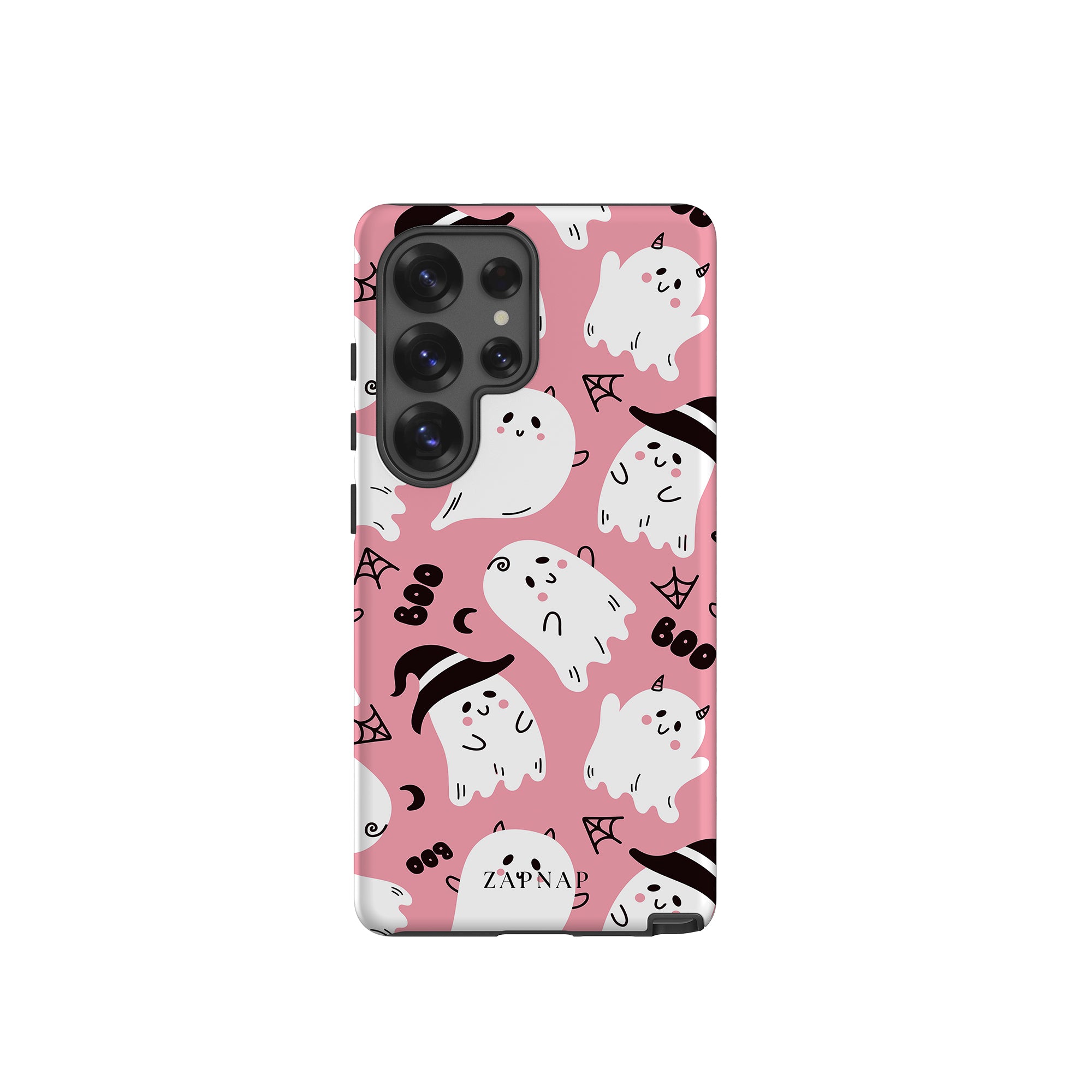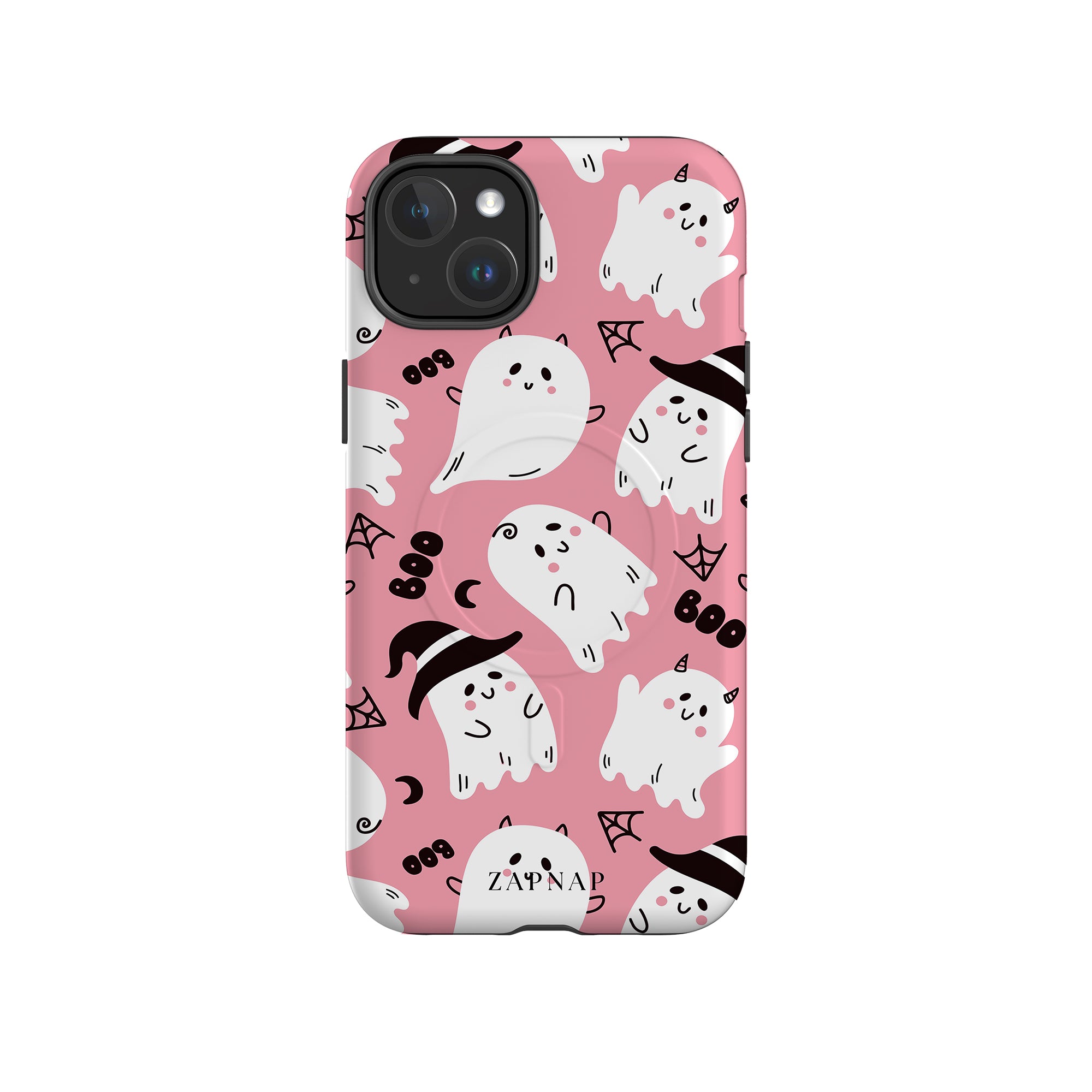 Het ''Spooky Bash''-ontwerp bevat speelse, schattige geesten verspreid over een levendige roze achtergrond, perfect voor het toevoegen van een leuk en feestelijk tintje aan je Halloween-seizoen. Dit luchtige patroon weerspiegelt de geest van Halloween met een schattige, grillige twist.