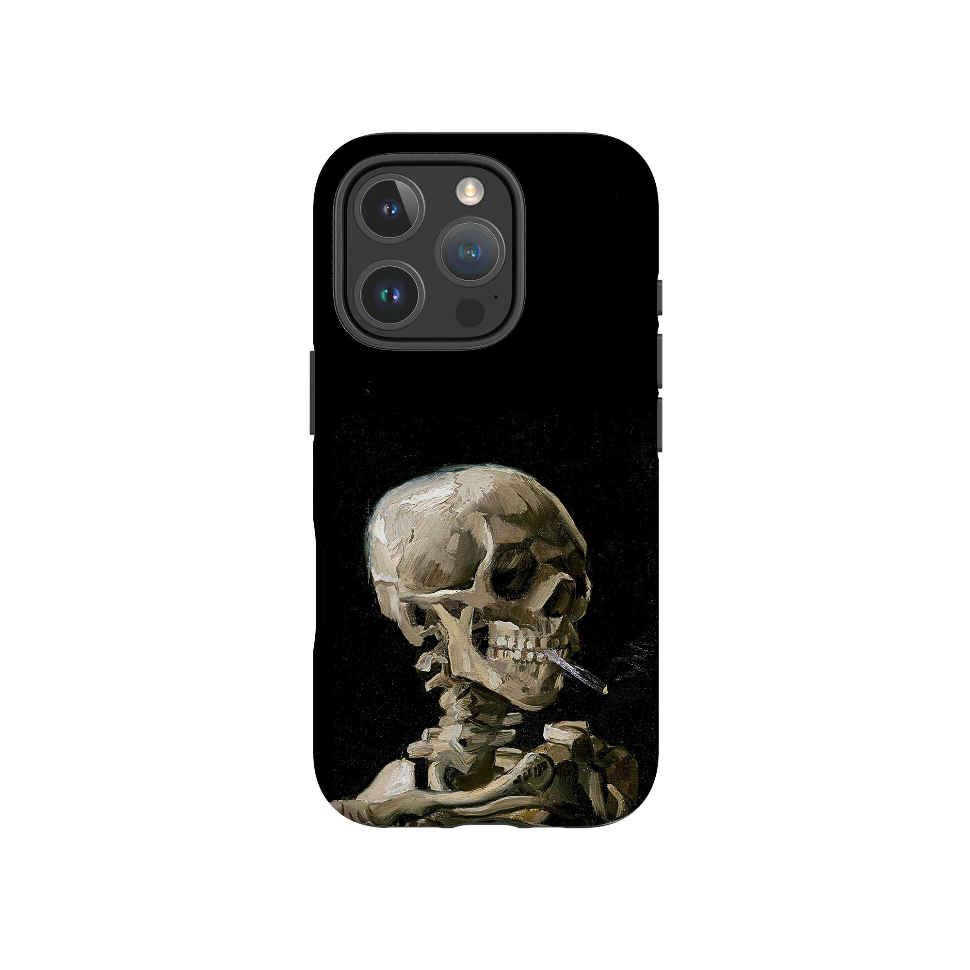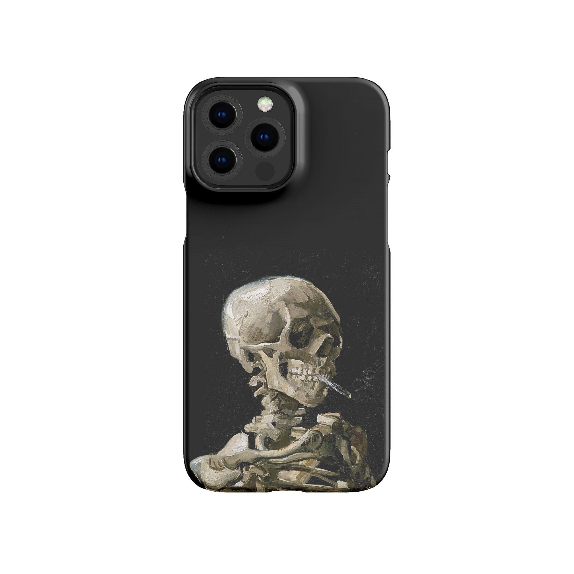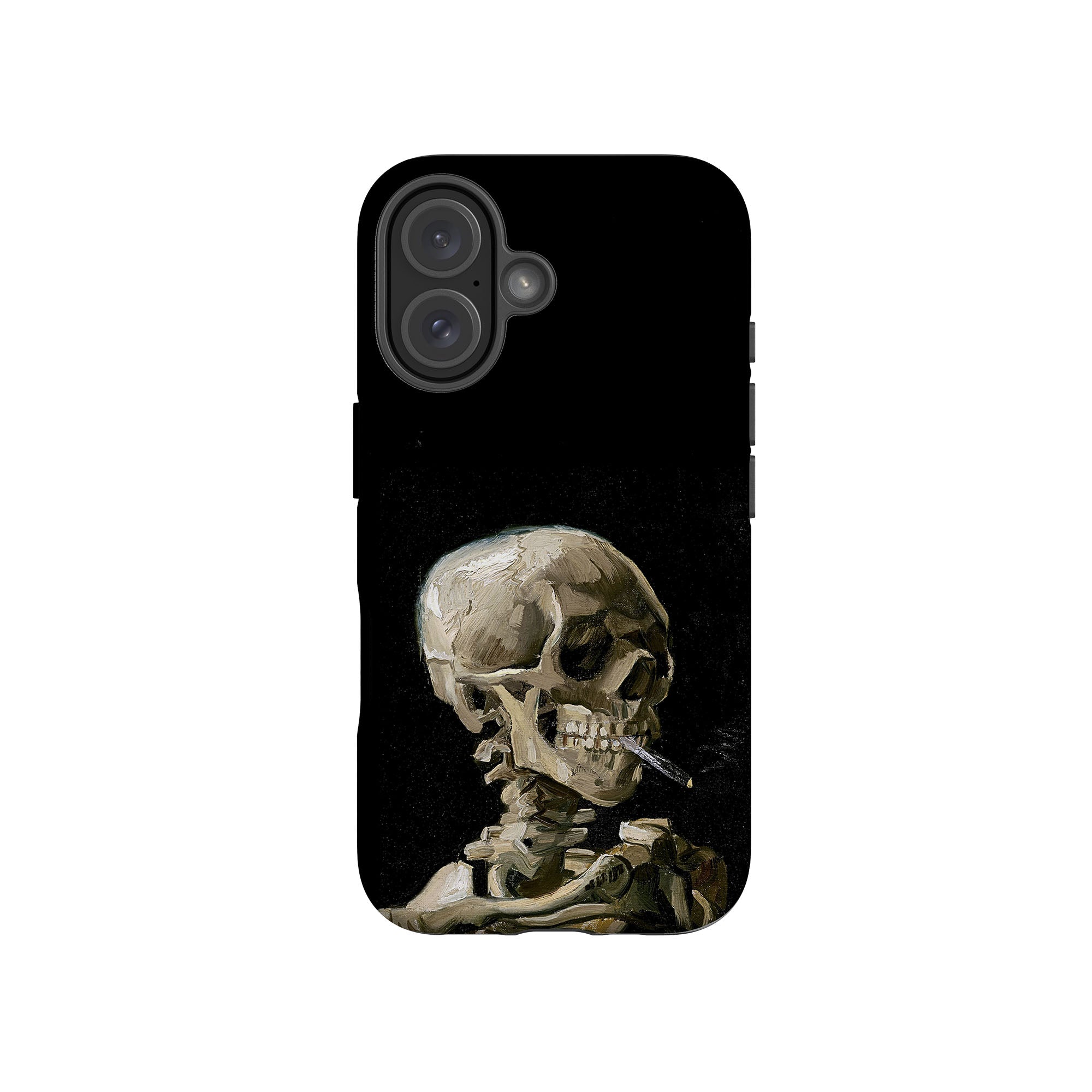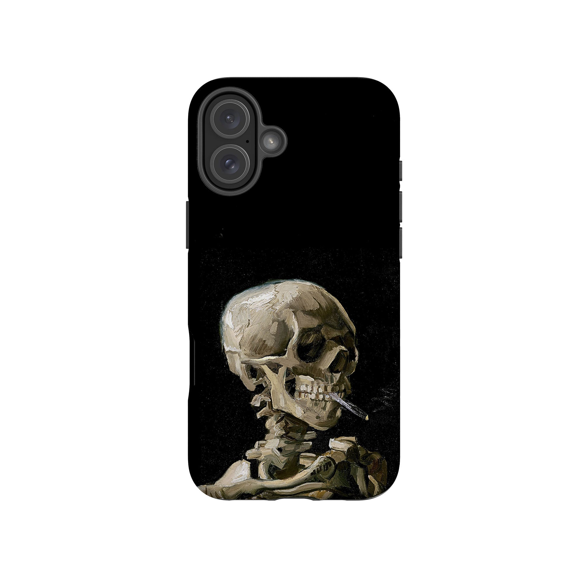 ‘Schedel van een skelet met brandende sigaret’ van Vincent van Gogh, gemaakt rond 1886-1887, is een opvallend en onconventioneel stuk. Het werd geschilderd tijdens zijn studie in Antwerpen en combineert donkere humor met een vleugje rebellie. Het terloops rokende skelet contrasteert met traditionele anatomiestudies en laat Van Goghs humor en kritiek op de rigide academische opleiding zien. De griezelige gloed van de sigaret tegen de grimmige schedel creëert een gedenkwaardig en tot nadenken stemmend beeld, dat zijn evoluerende artistieke stijl weerspiegelt.