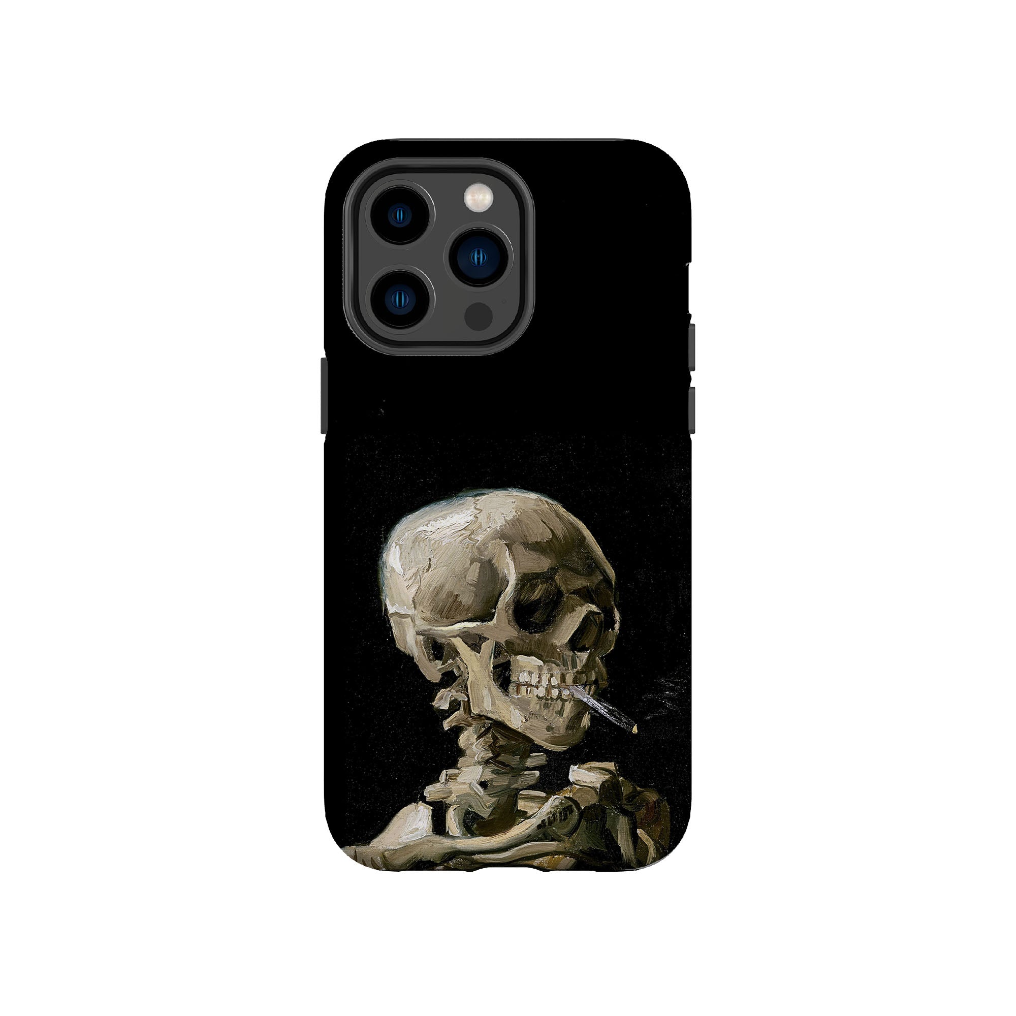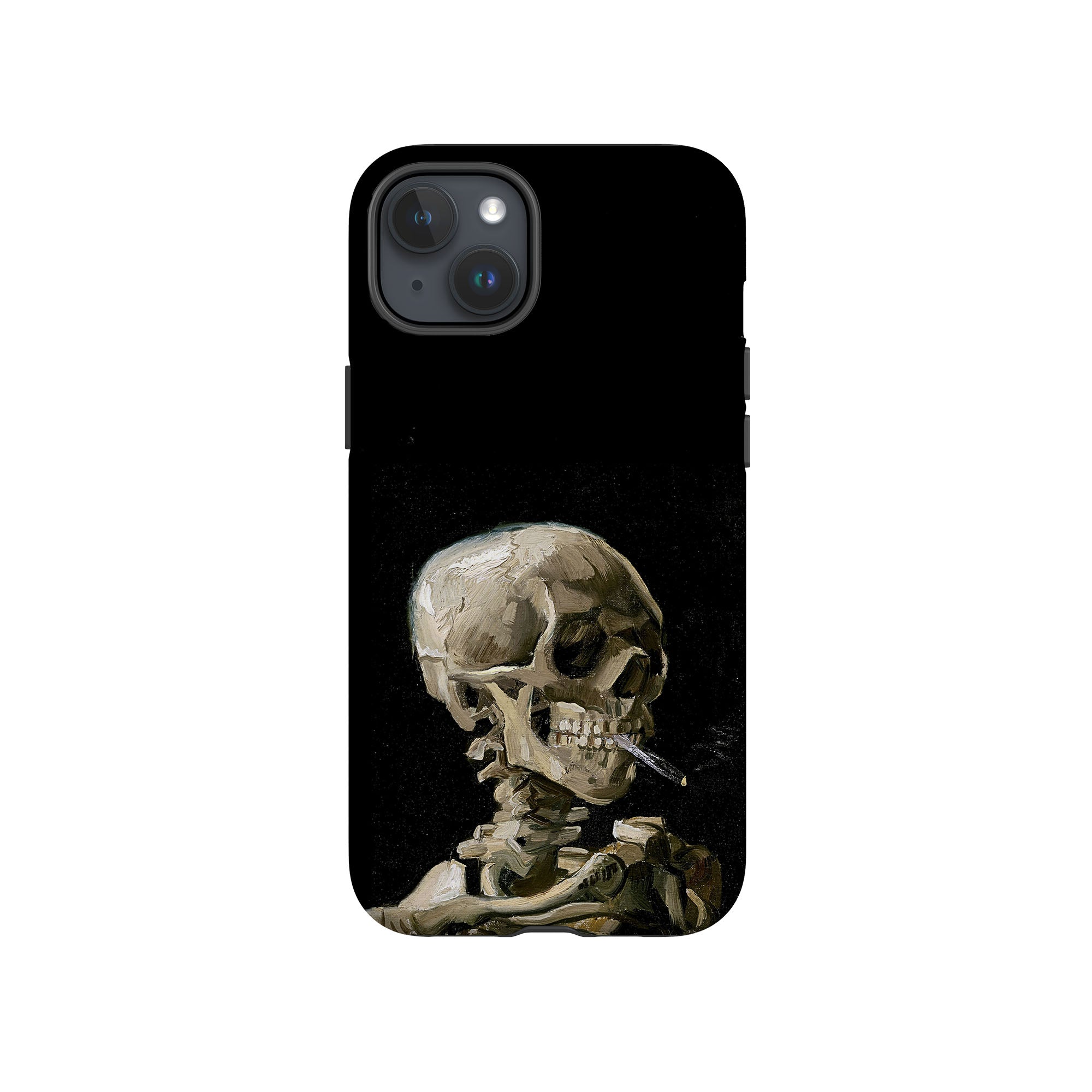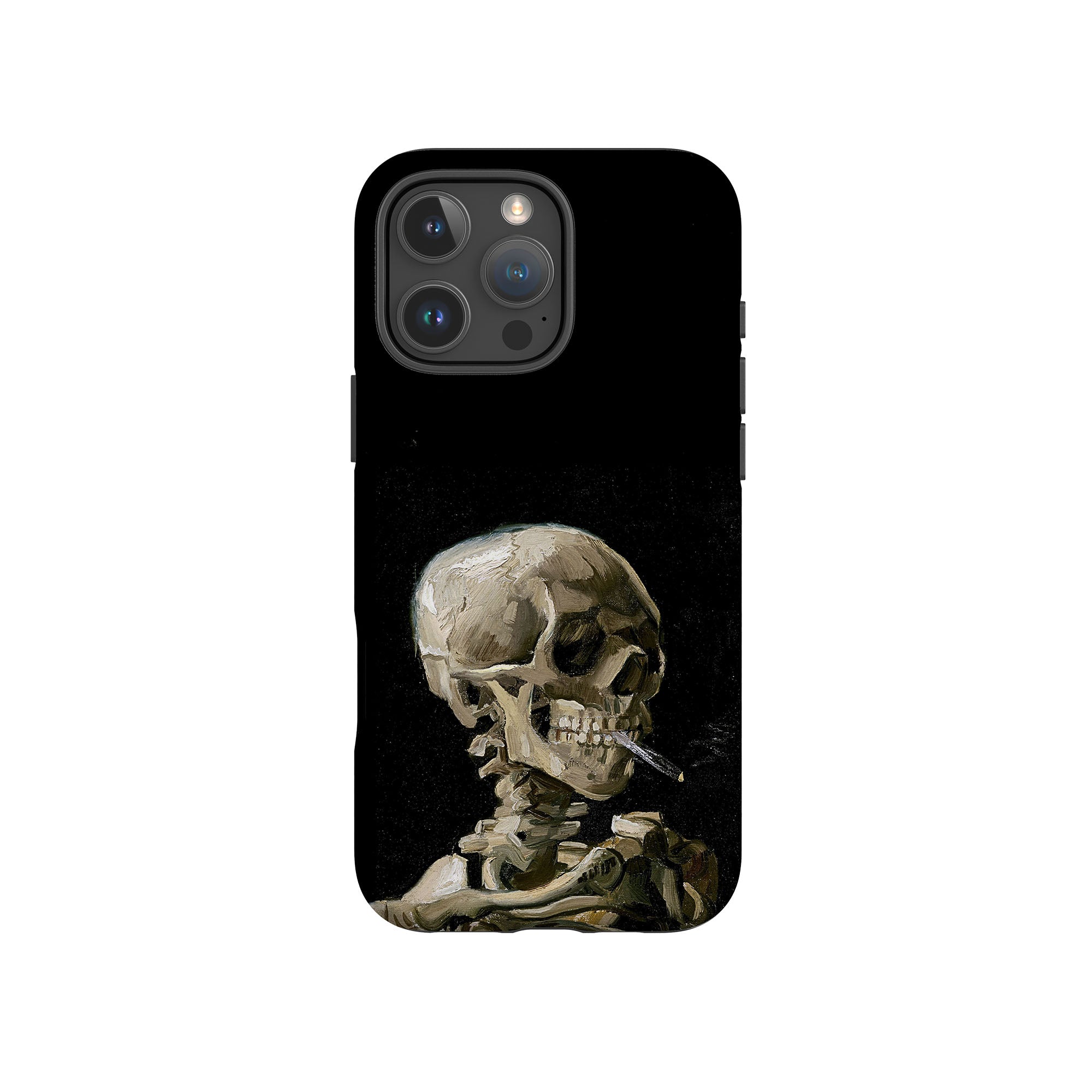 ‘Schedel van een skelet met brandende sigaret’ van Vincent van Gogh, gemaakt rond 1886-1887, is een opvallend en onconventioneel stuk. Het werd geschilderd tijdens zijn studie in Antwerpen en combineert donkere humor met een vleugje rebellie. Het terloops rokende skelet contrasteert met traditionele anatomiestudies en laat Van Goghs humor en kritiek op de rigide academische opleiding zien. De griezelige gloed van de sigaret tegen de grimmige schedel creëert een gedenkwaardig en tot nadenken stemmend beeld, dat zijn evoluerende artistieke stijl weerspiegelt.